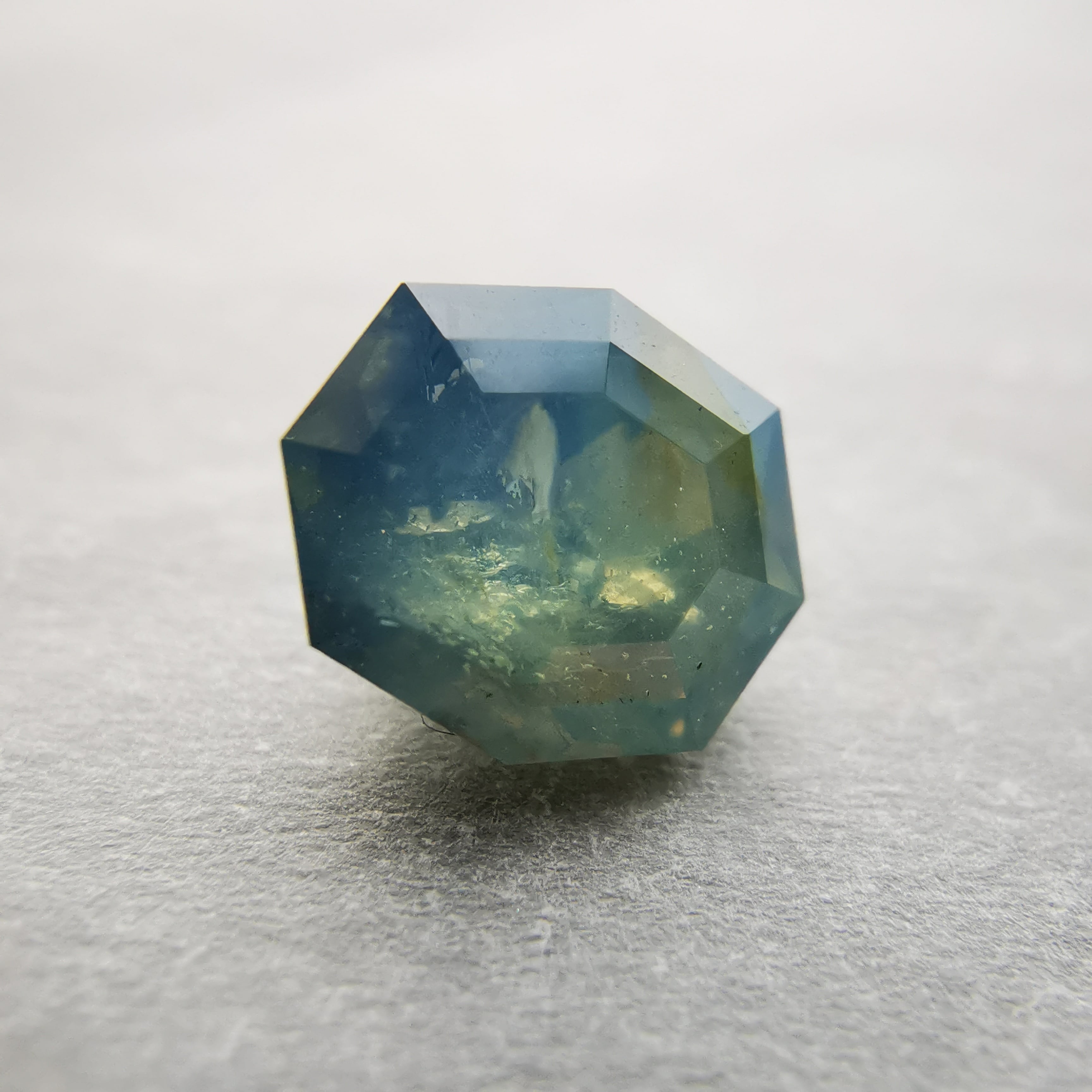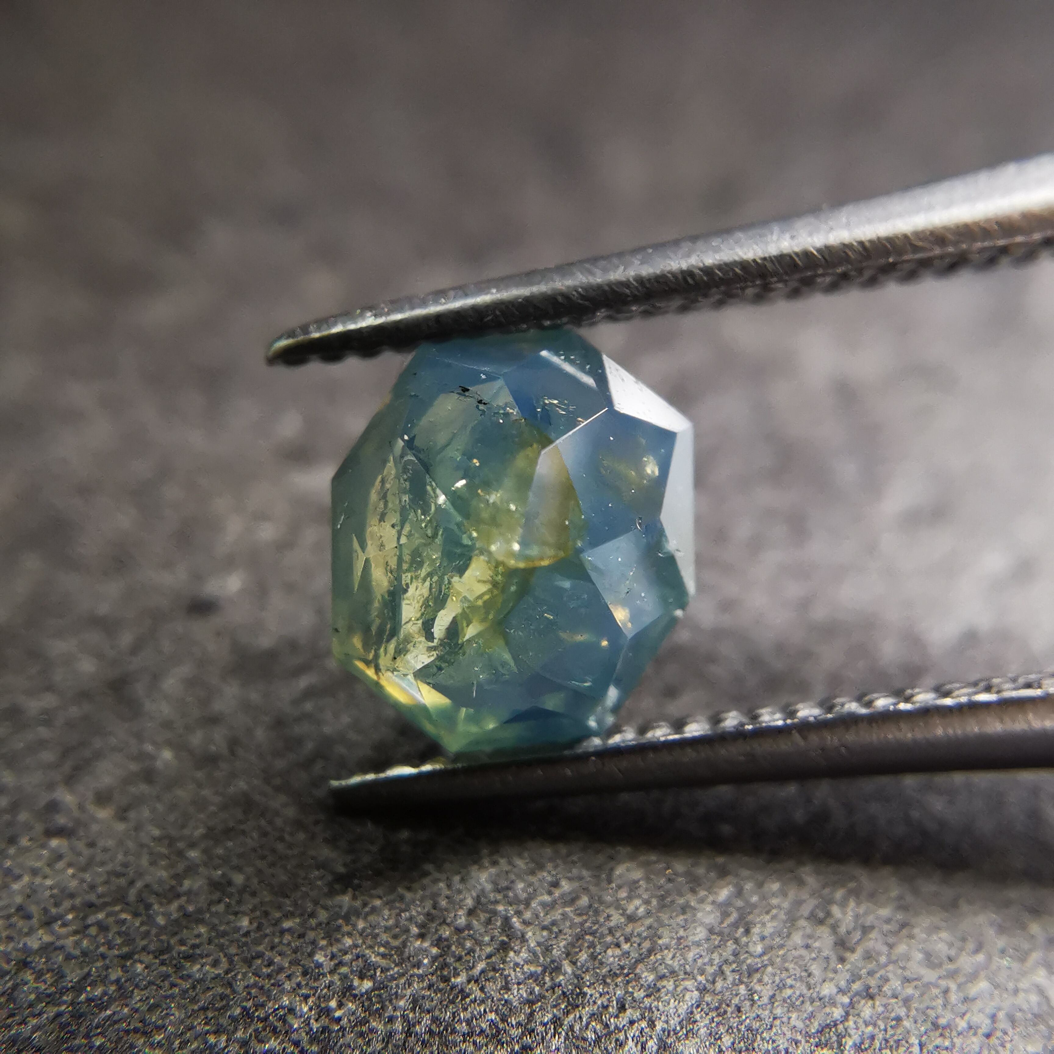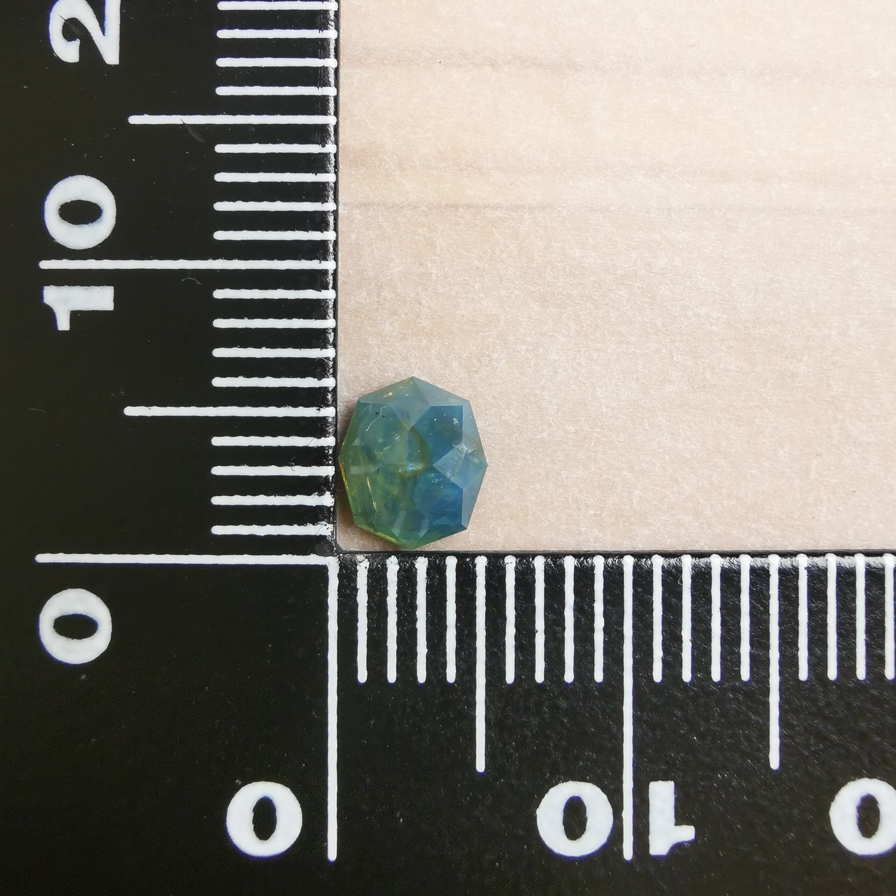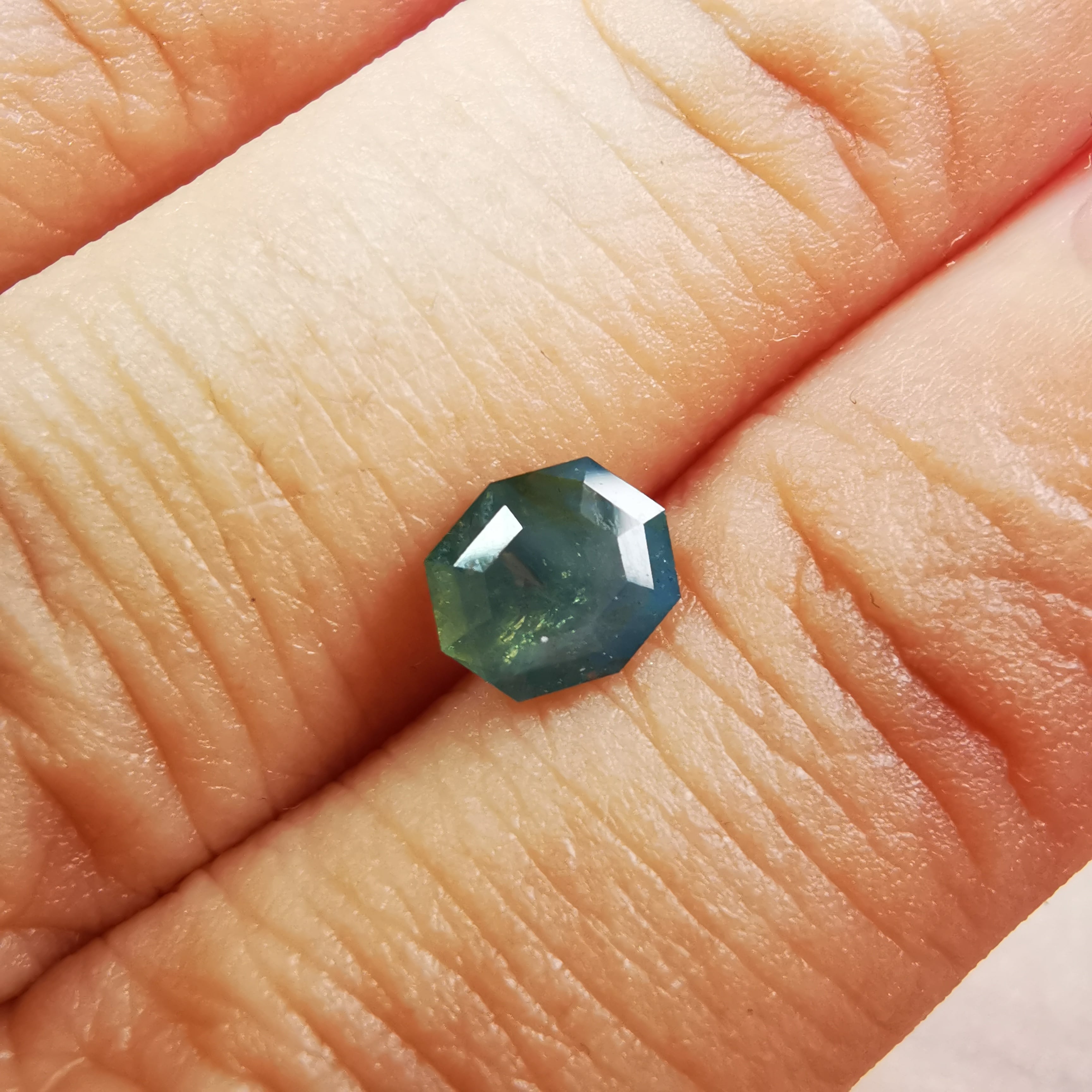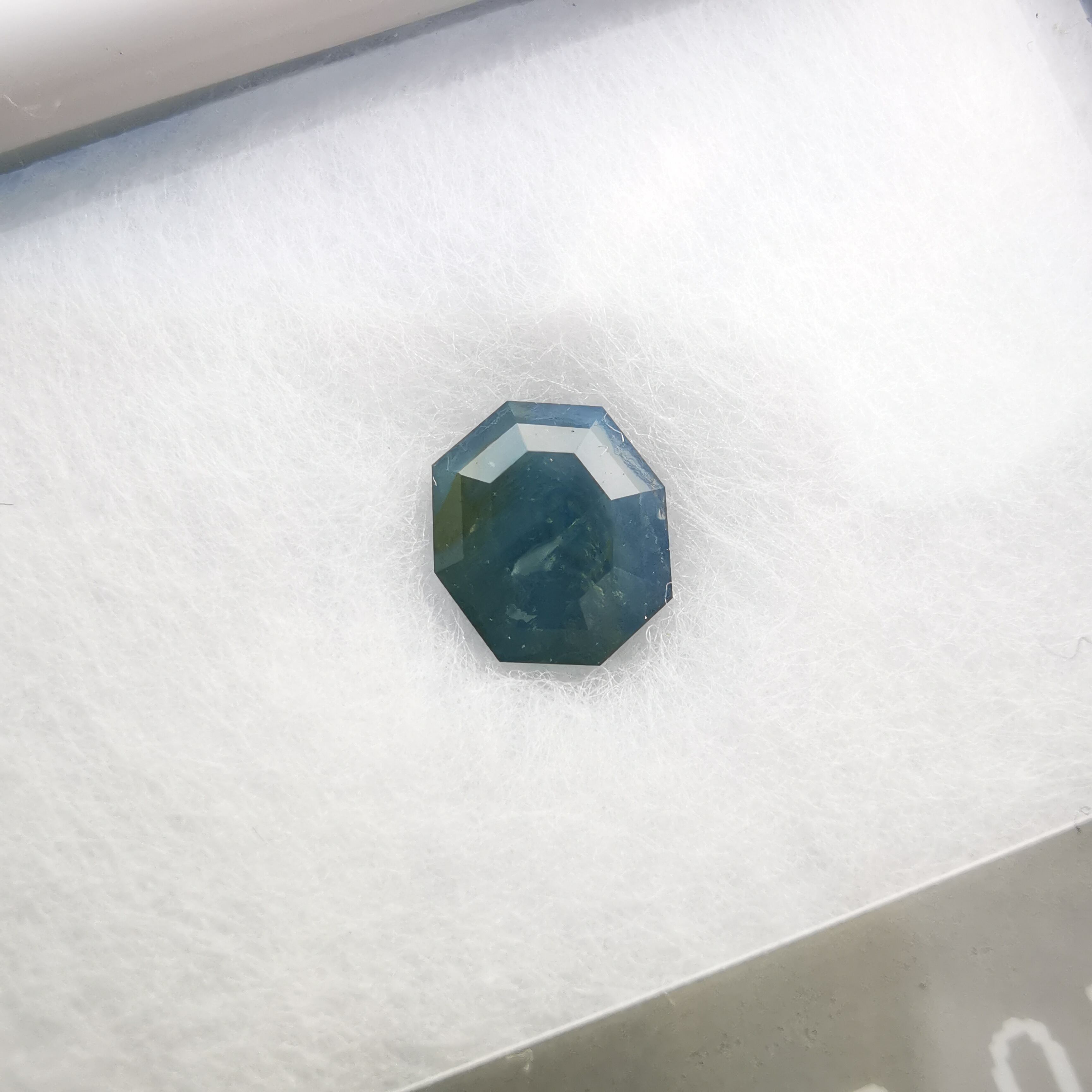 暗くくすんだ青みの緑/とくさ色のサファイアです。