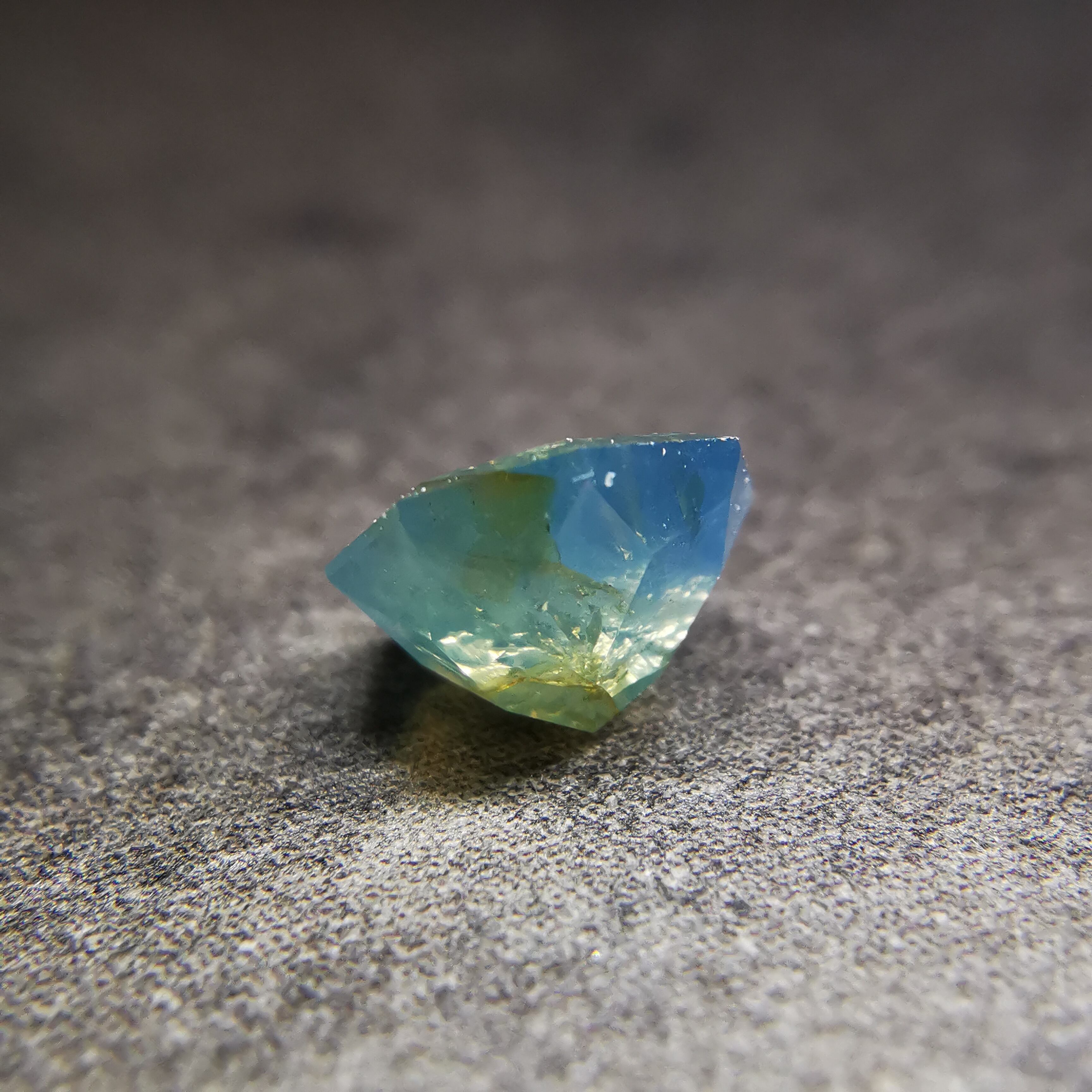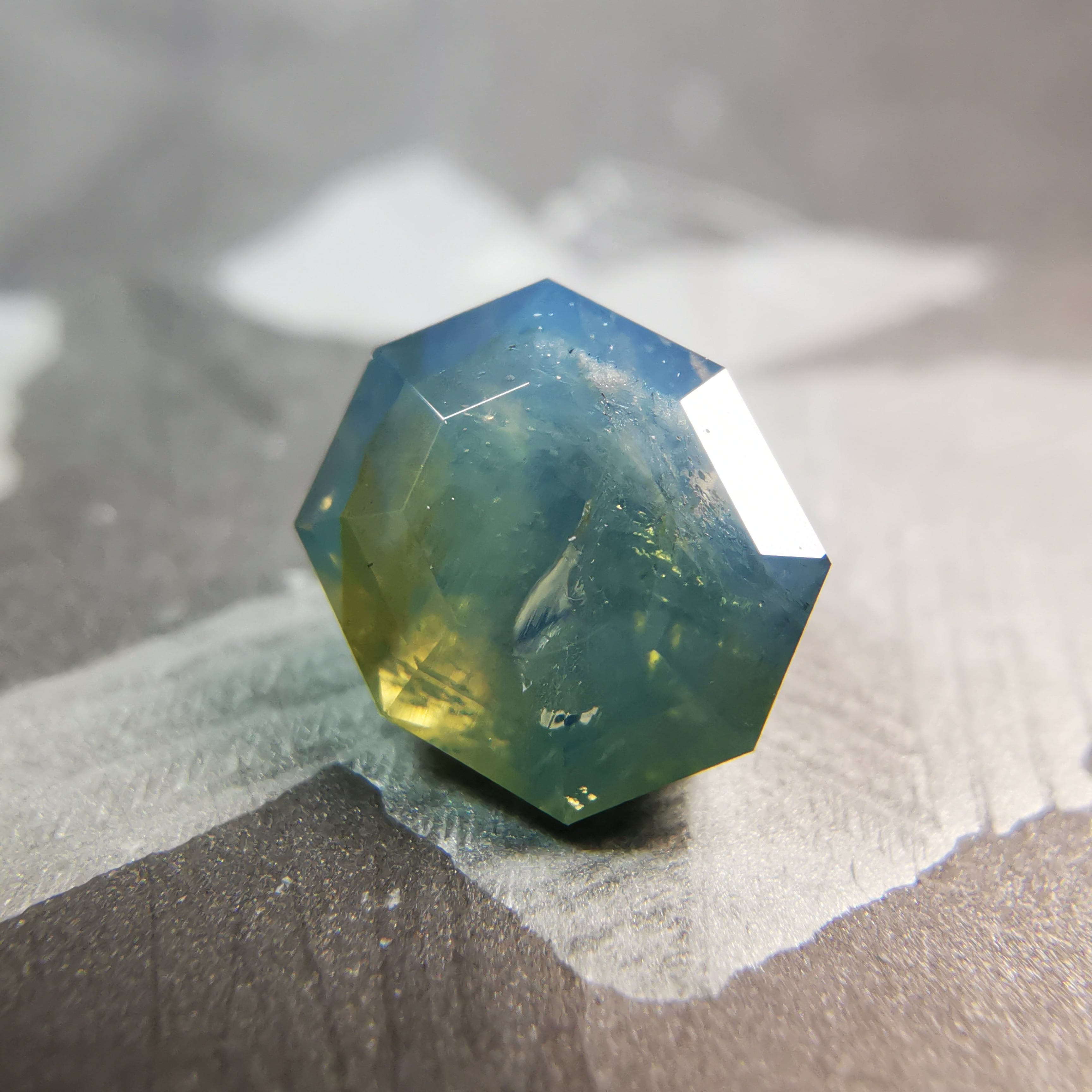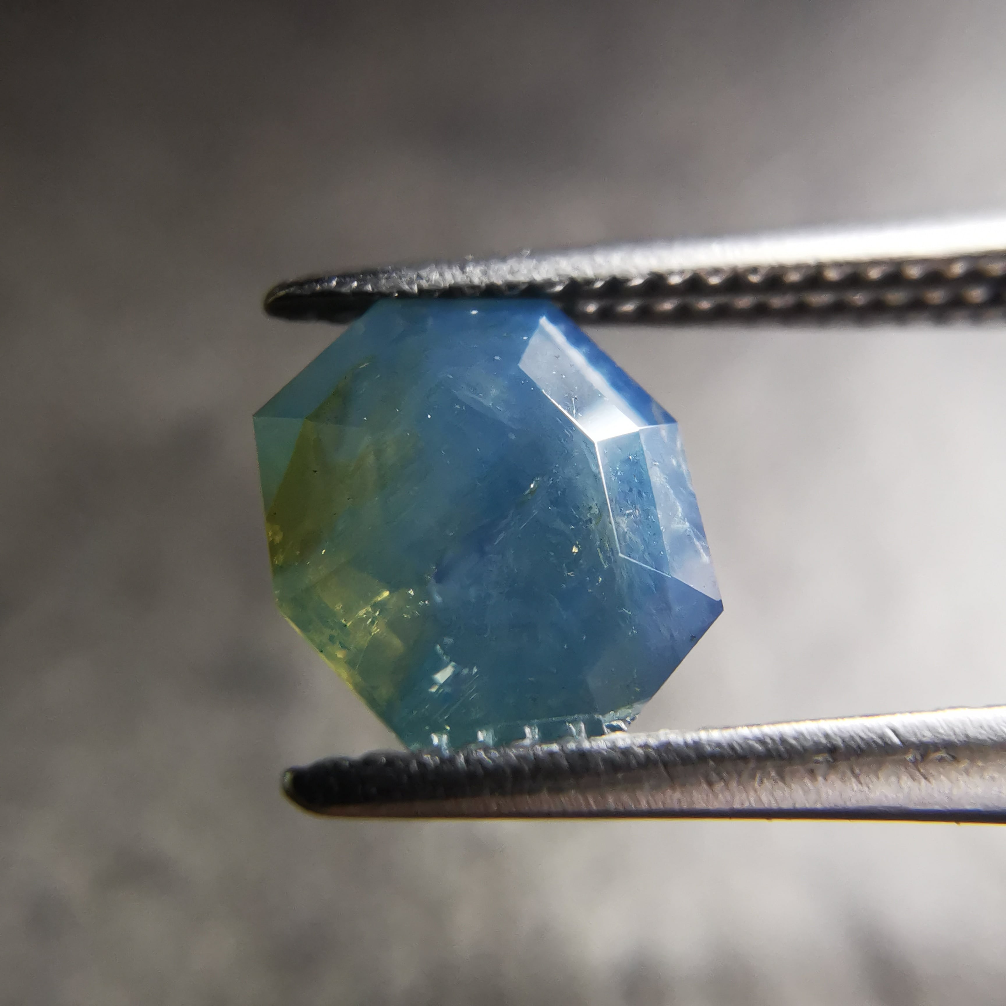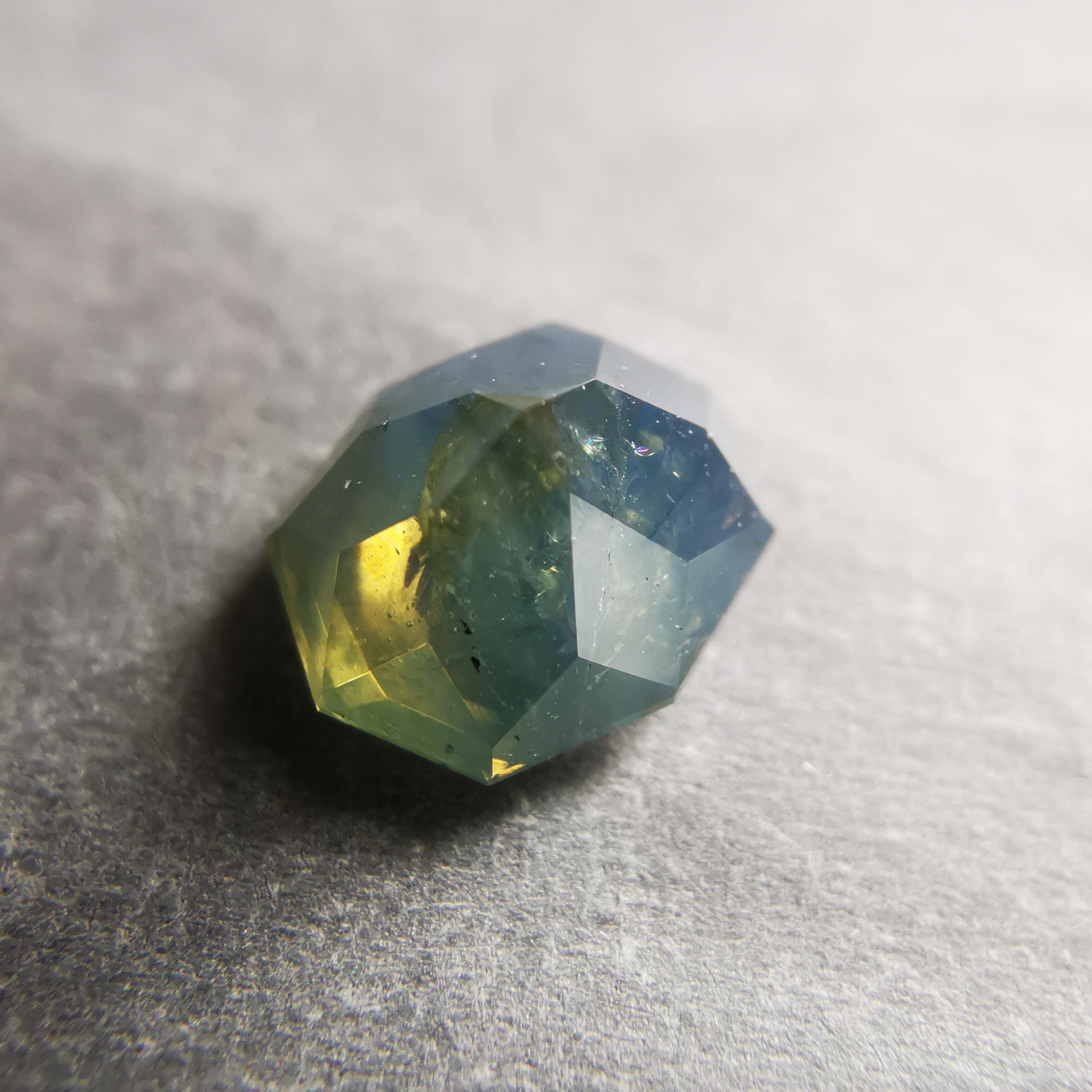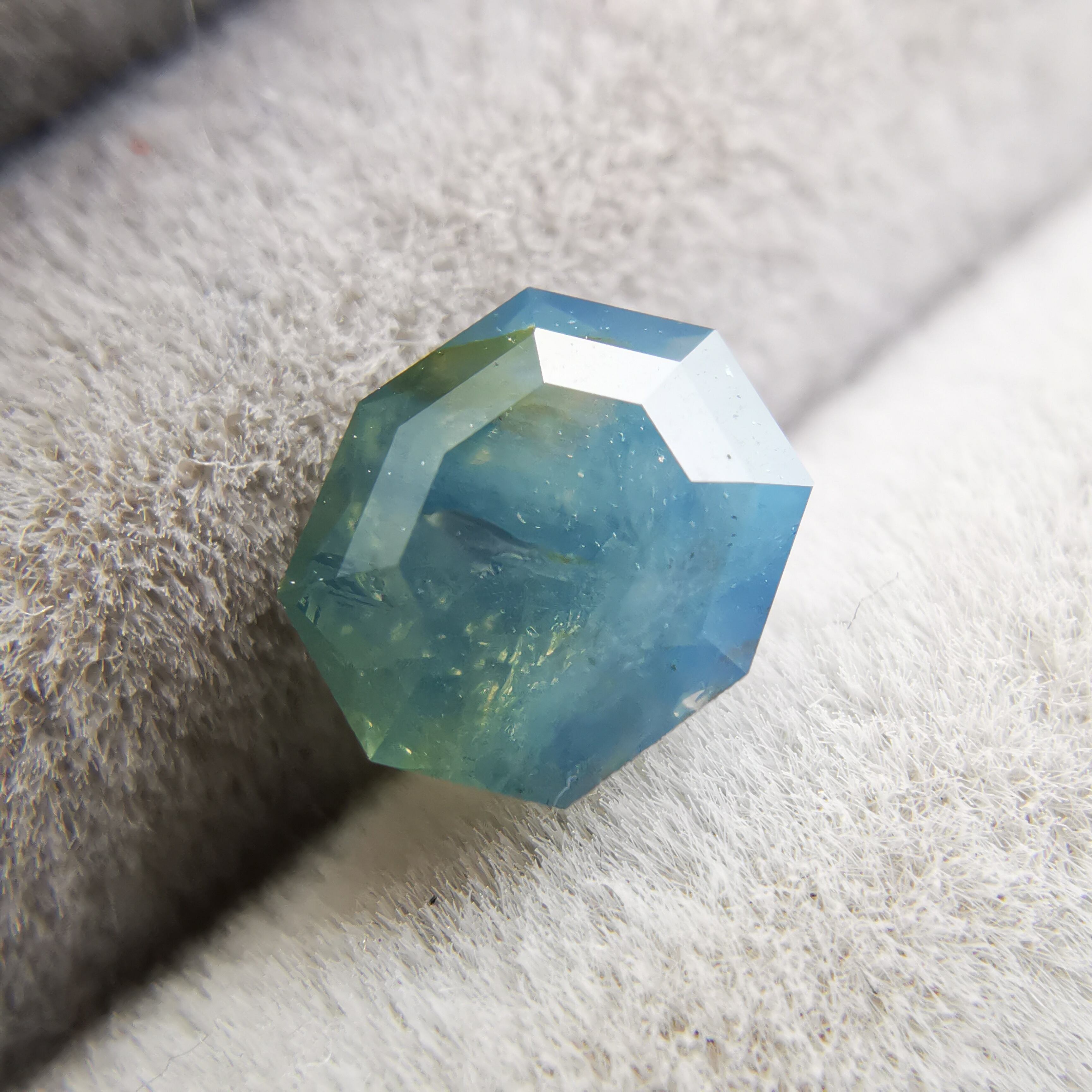 暗くくすんだ青みの緑/とくさ色のサファイアです。