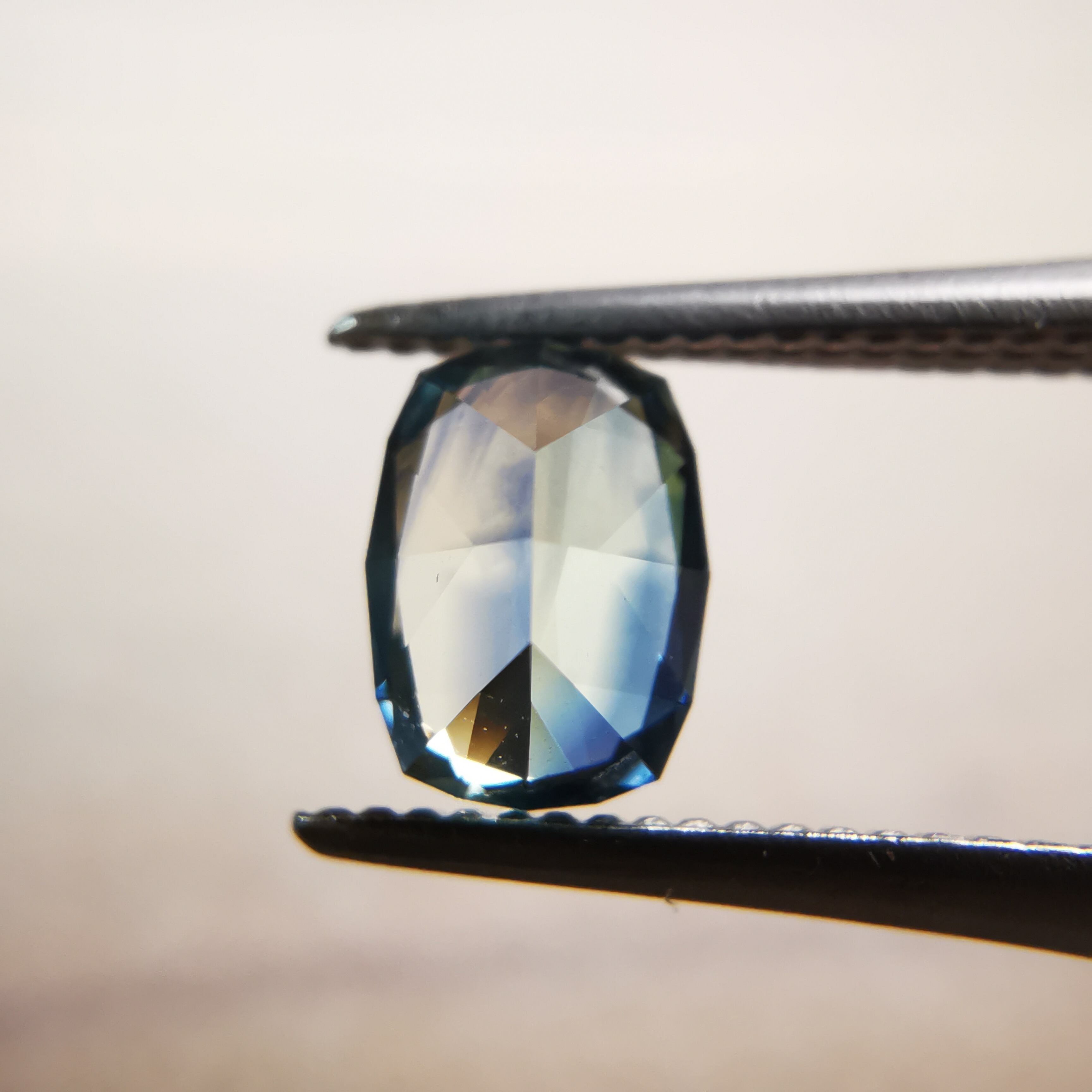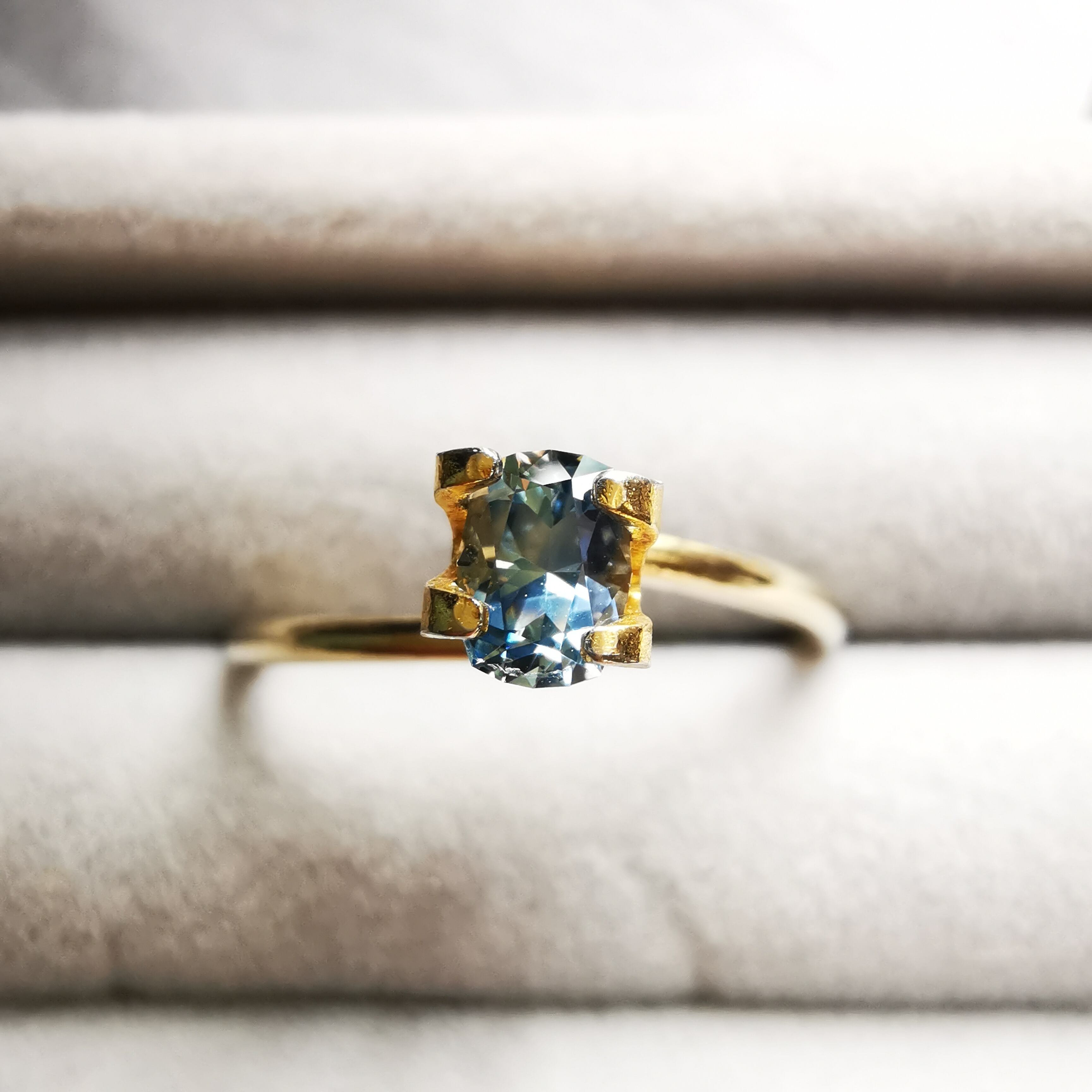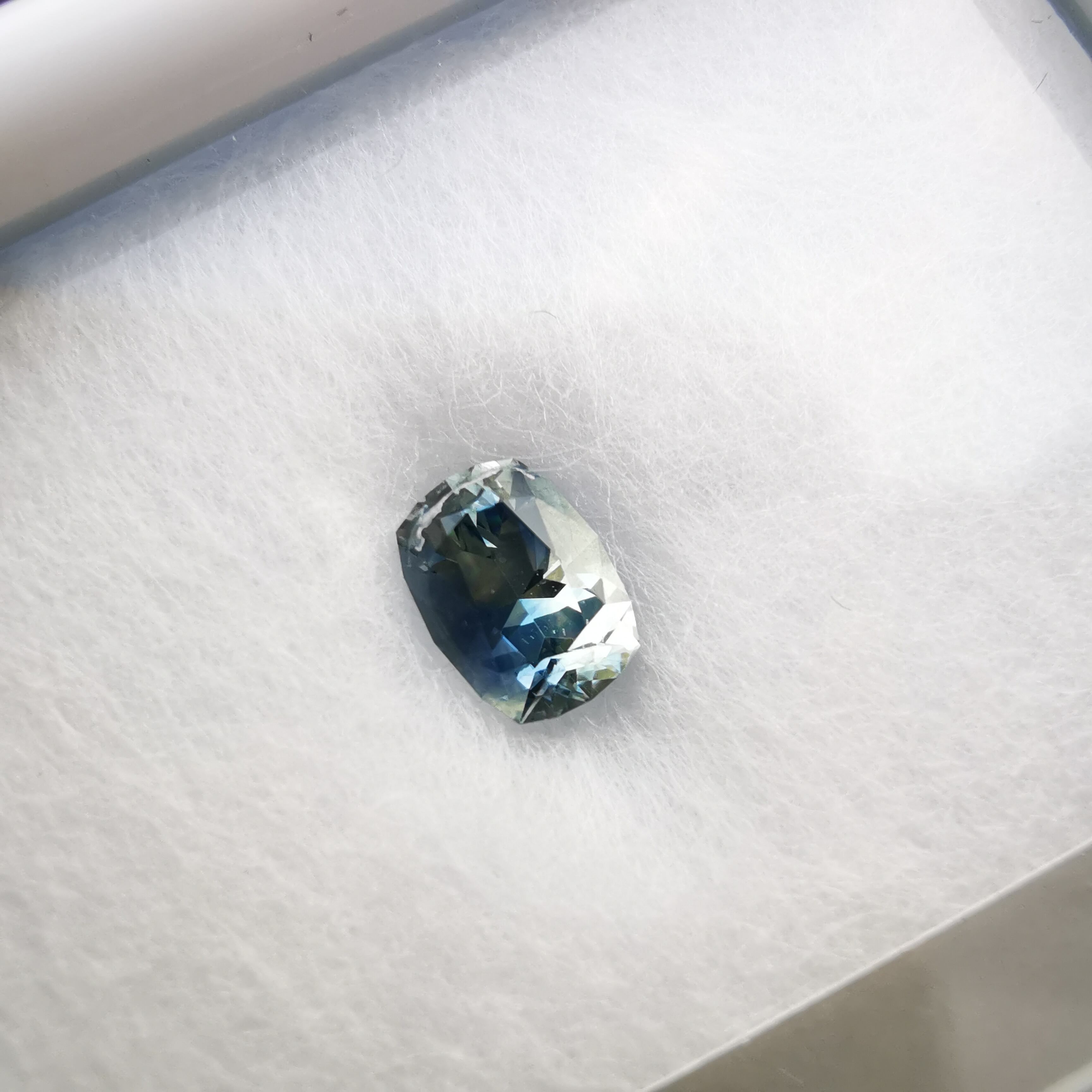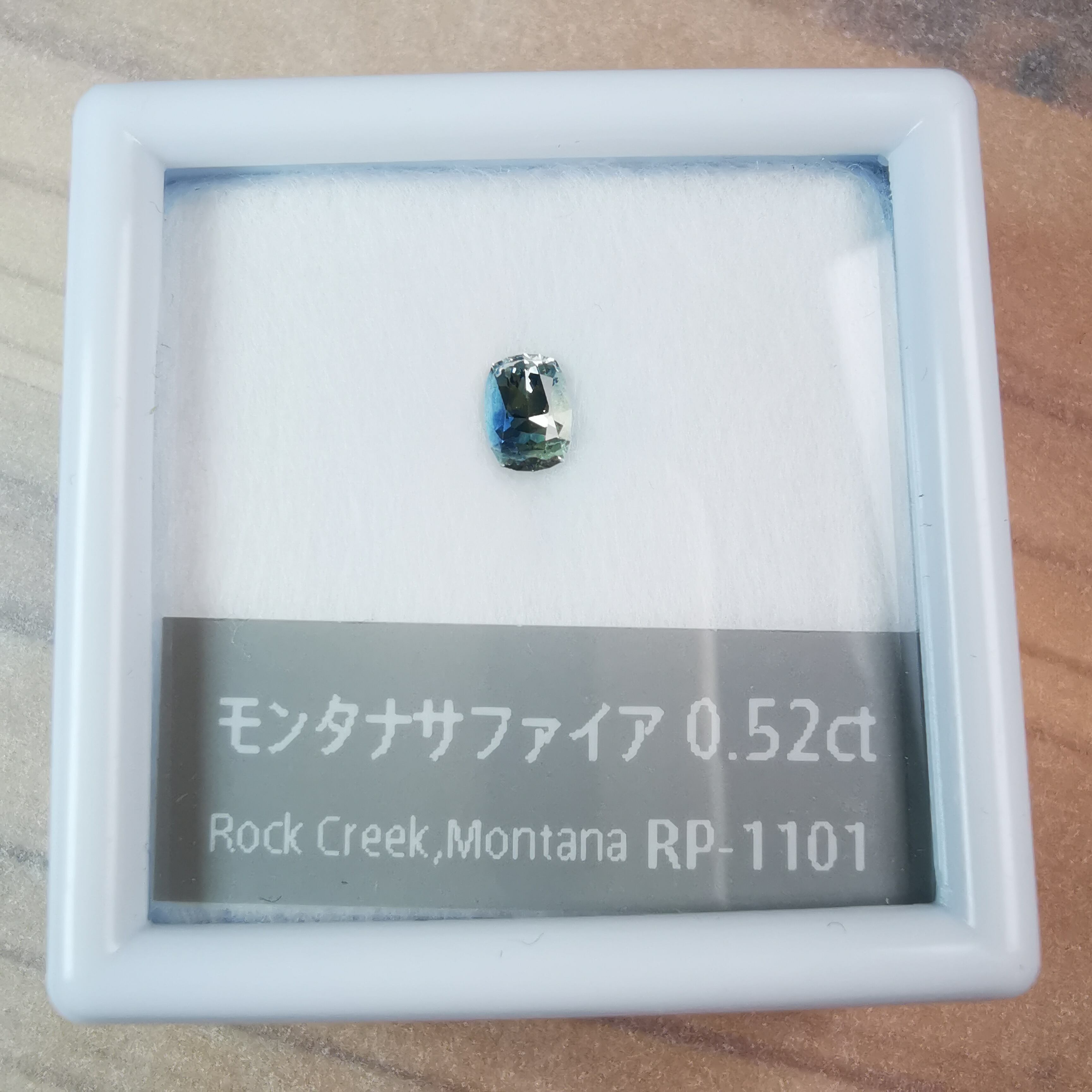 ごくごく淡いイエローに、じわりと紺色が広がるモンタナサファイアです。