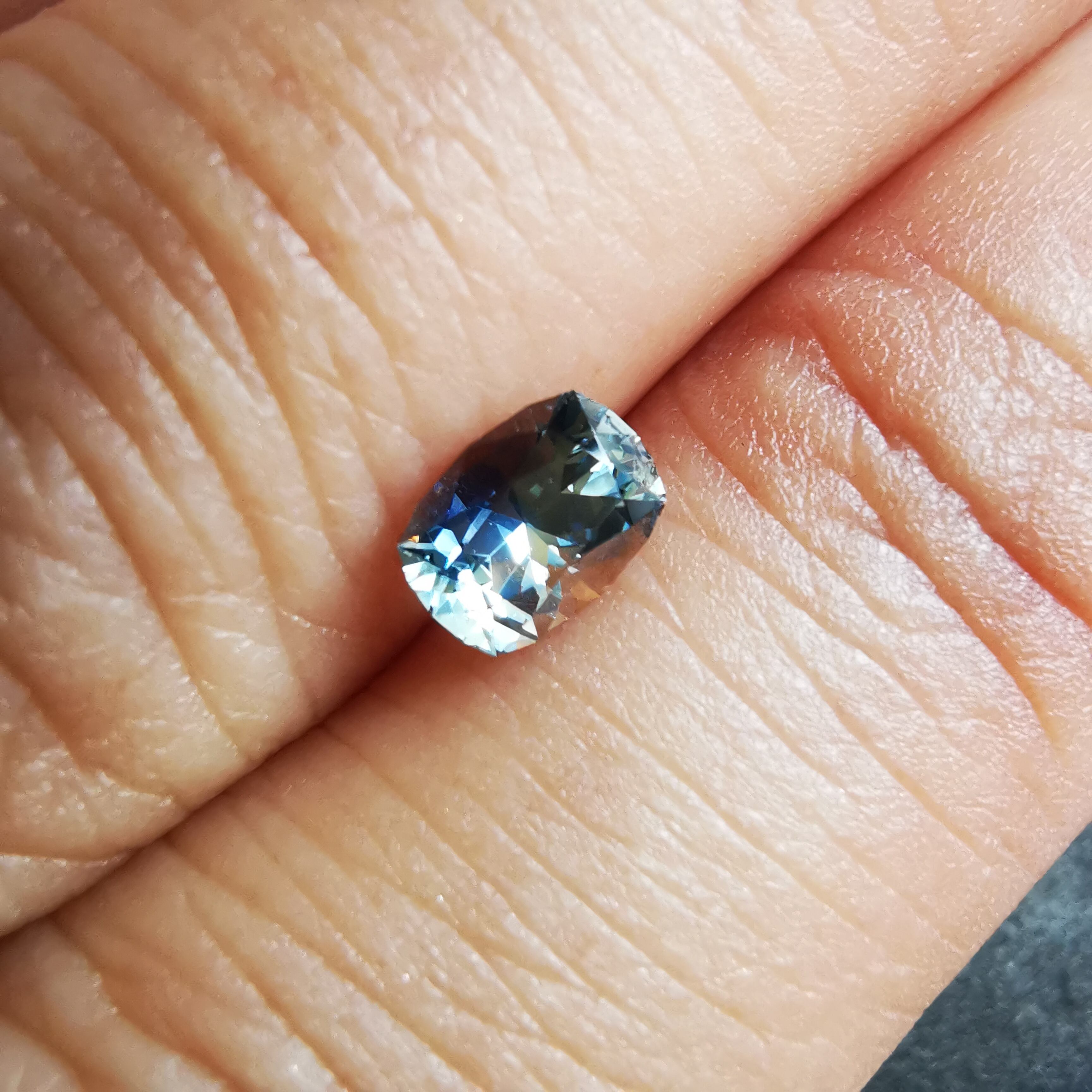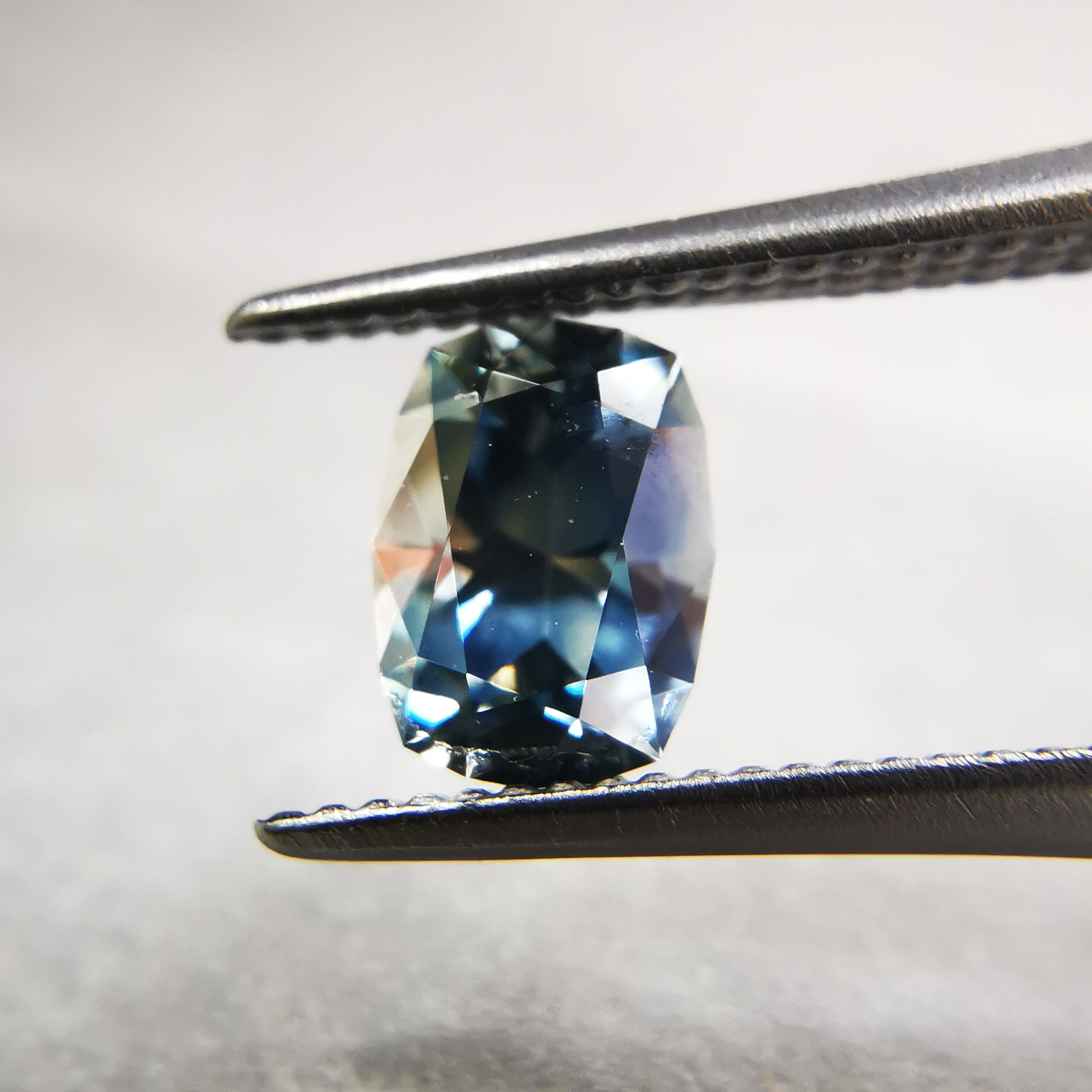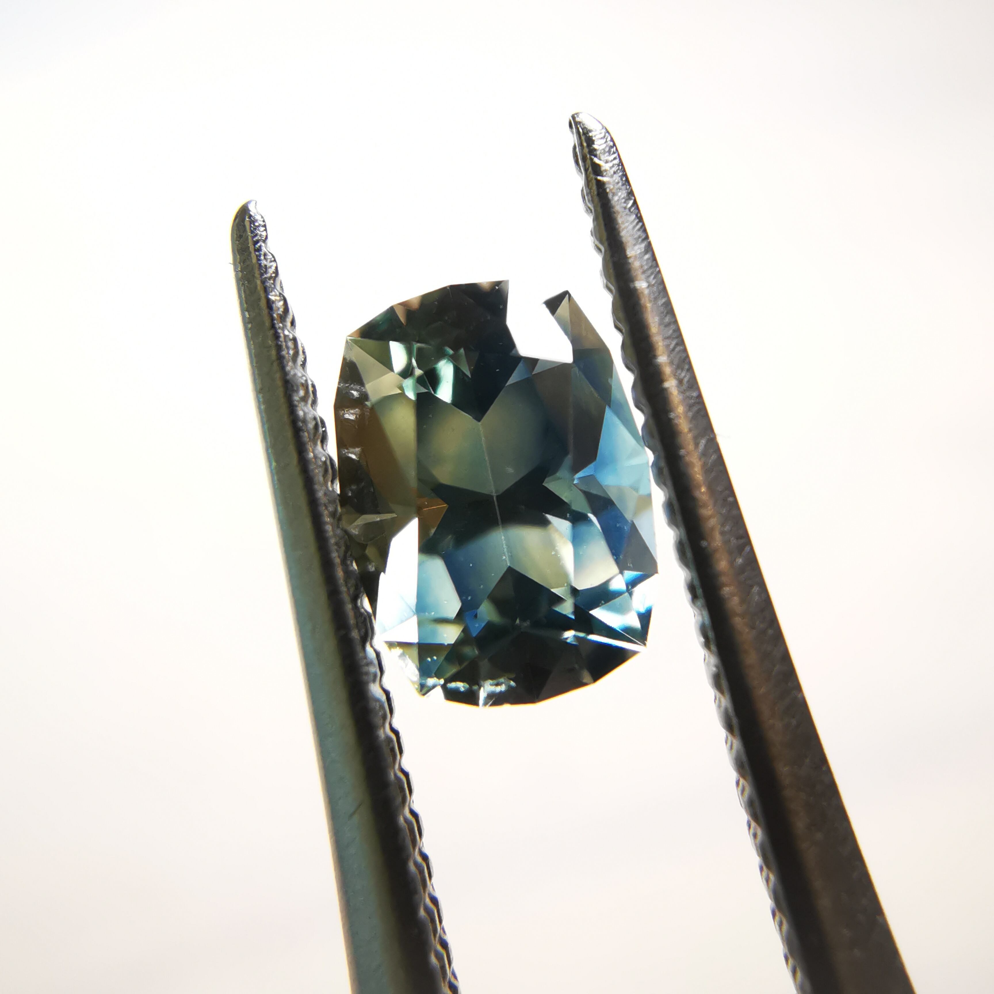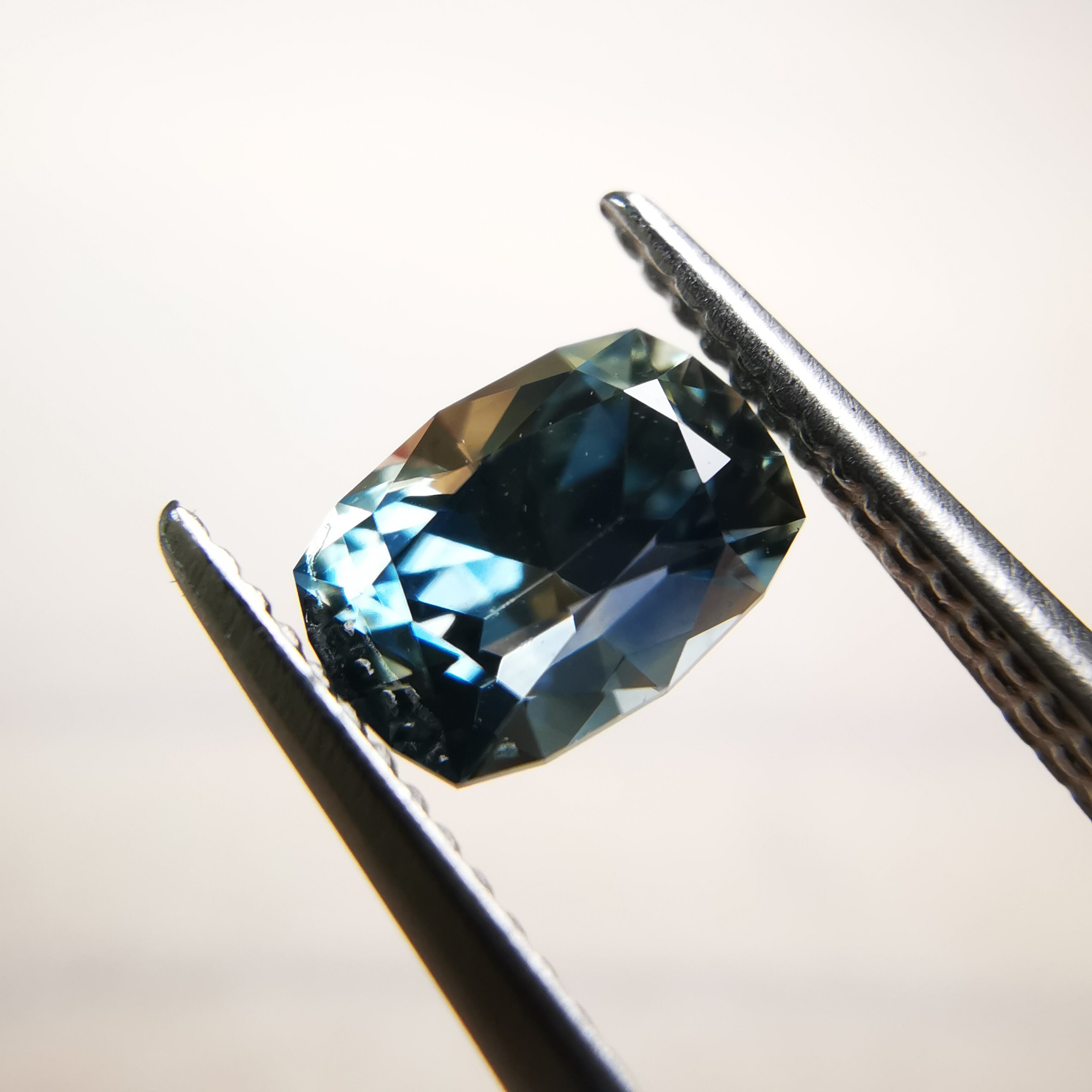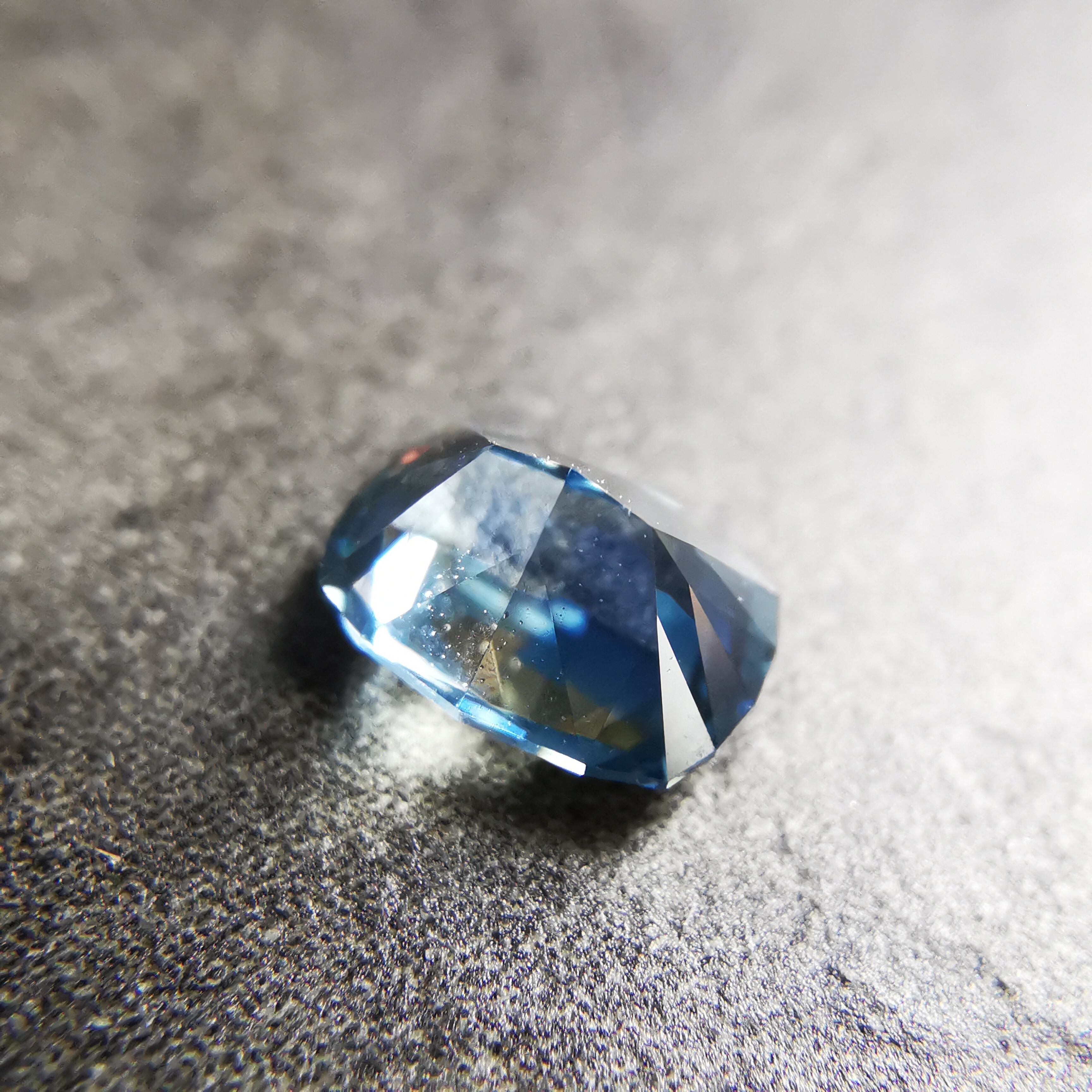 ごくごく淡いイエローに、じわりと紺色が広がるモンタナサファイアです。