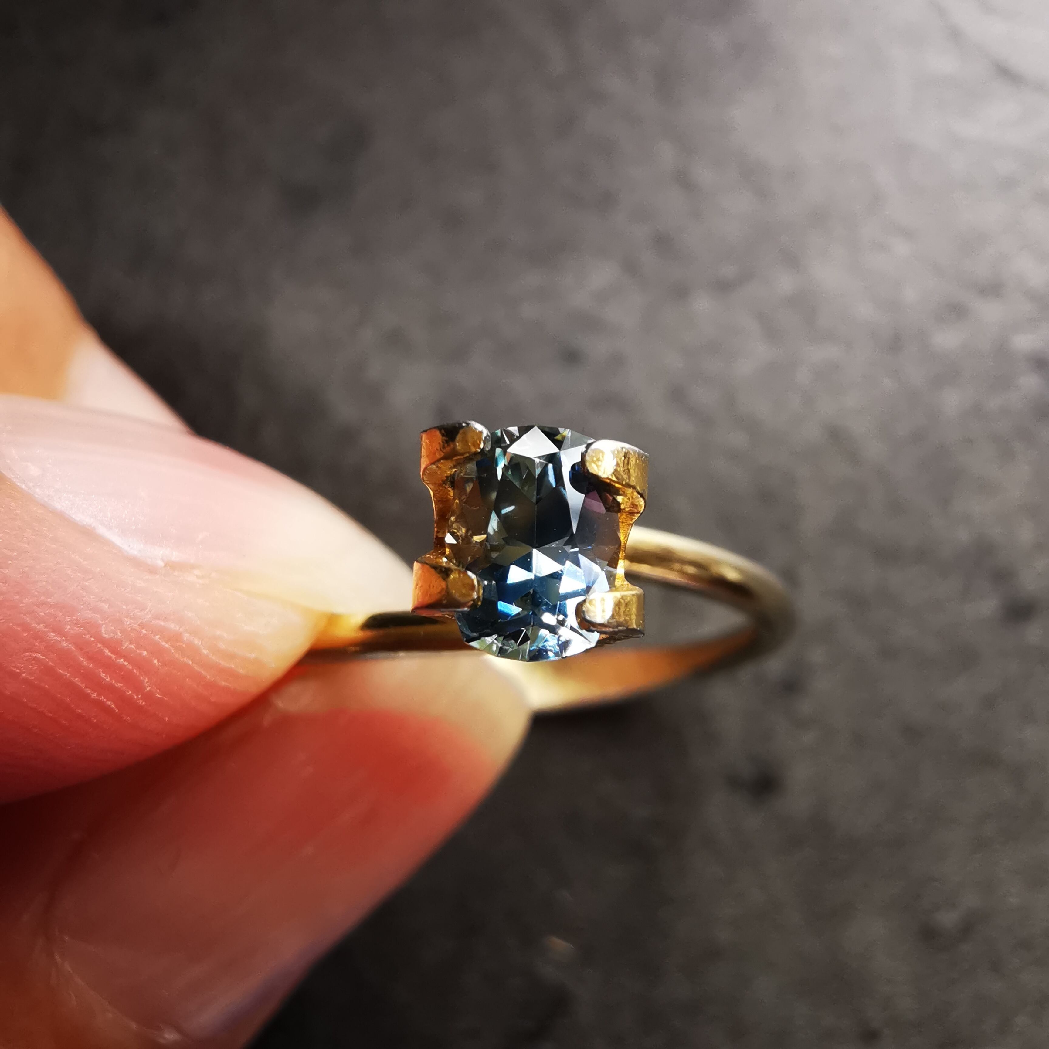 一部にインクを垂らしたような色の入り方が、モンタナサファイアらしい一石です。