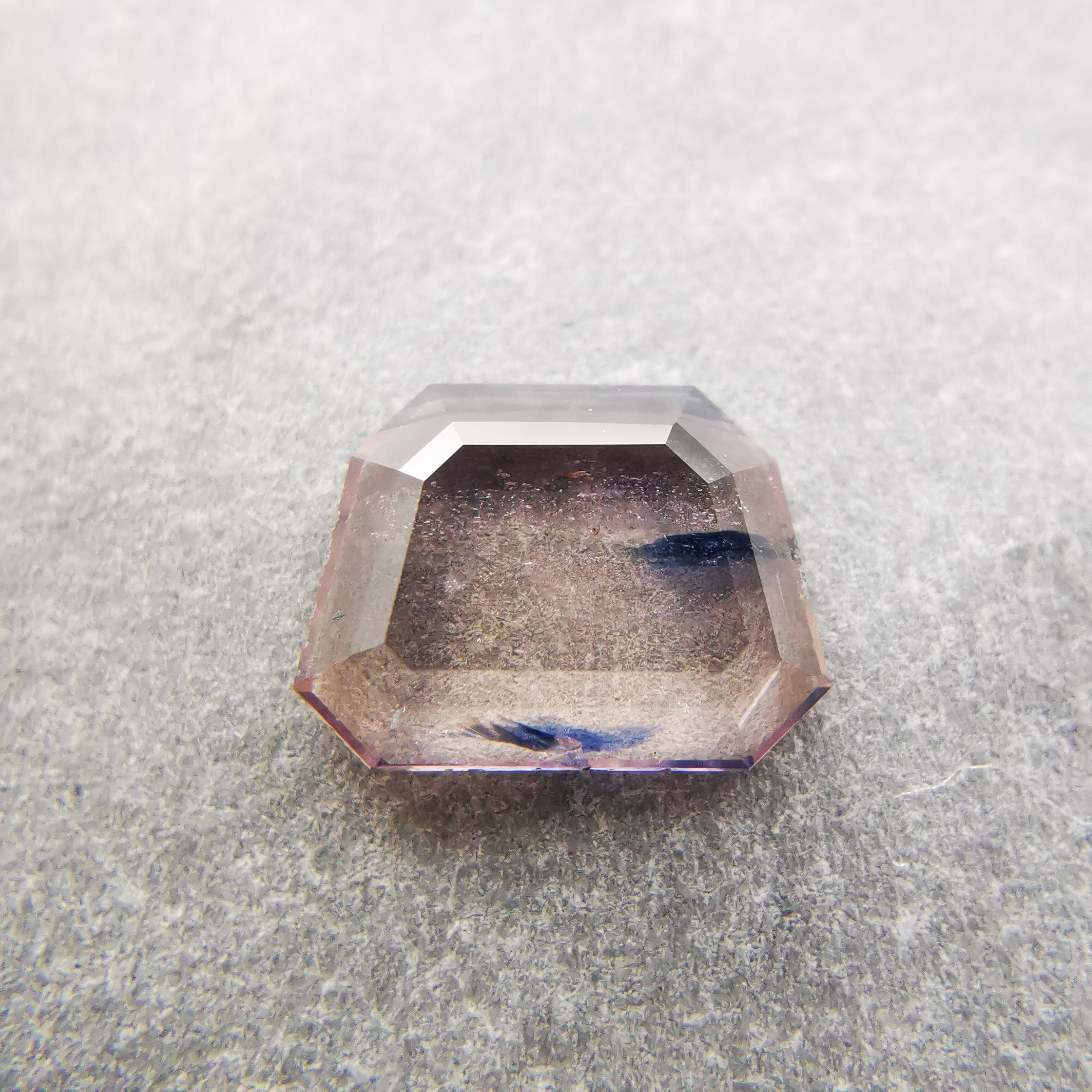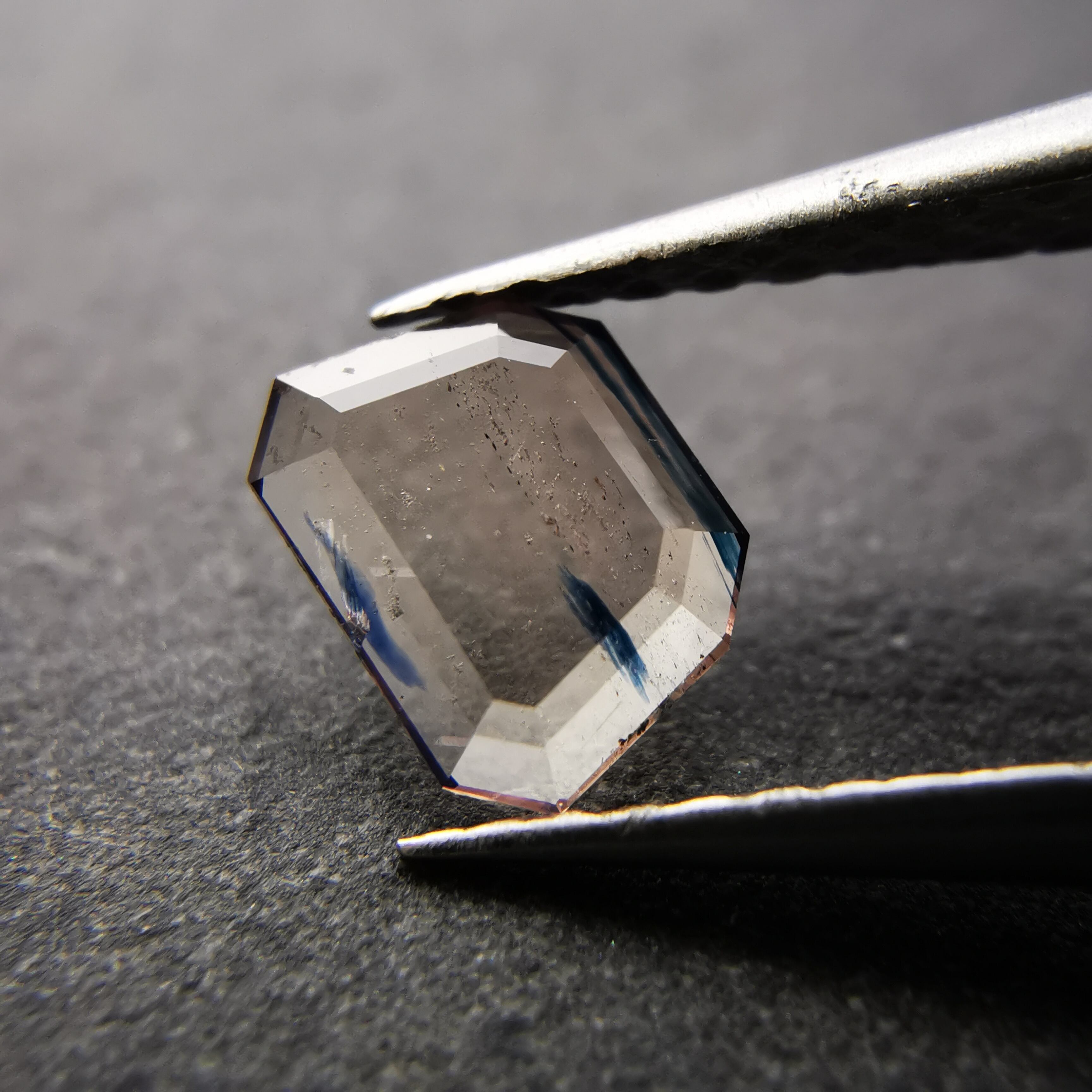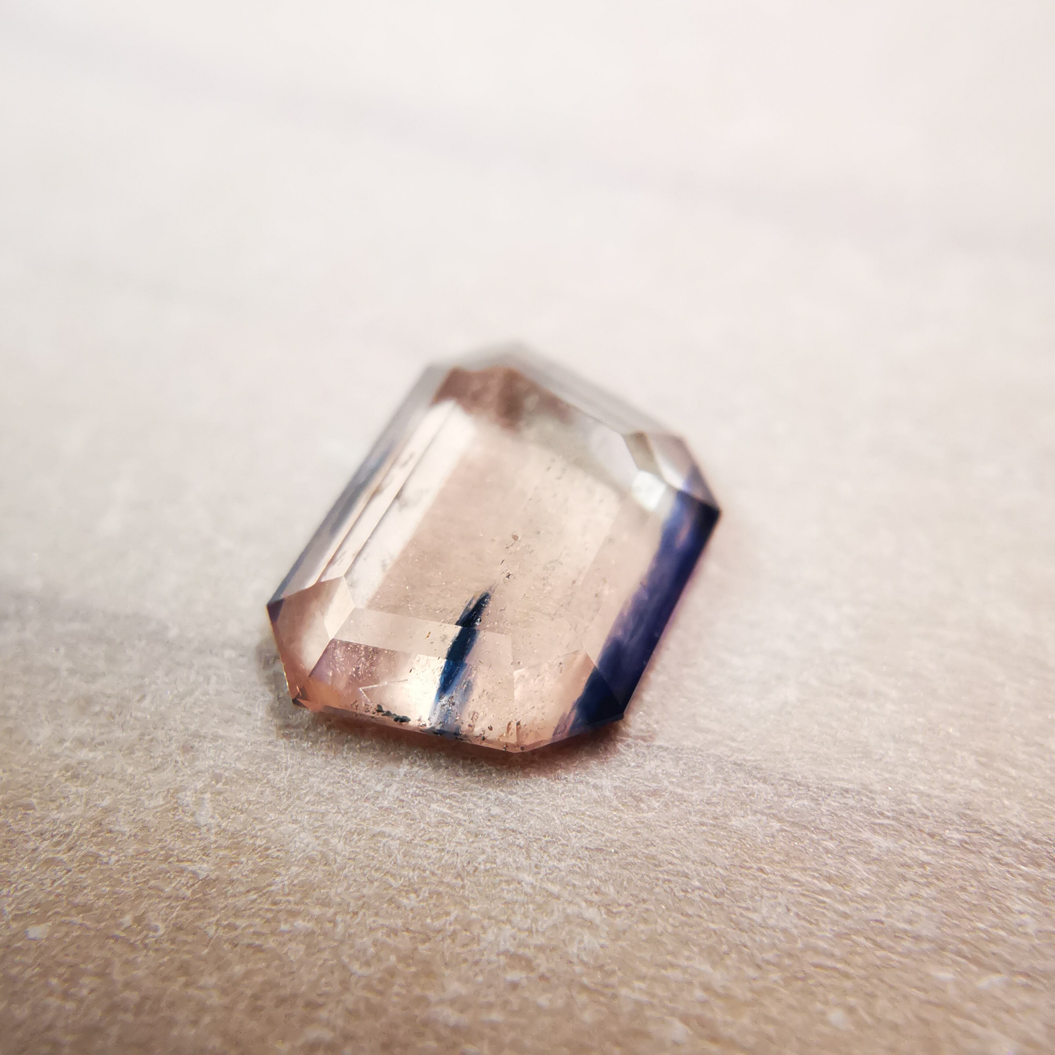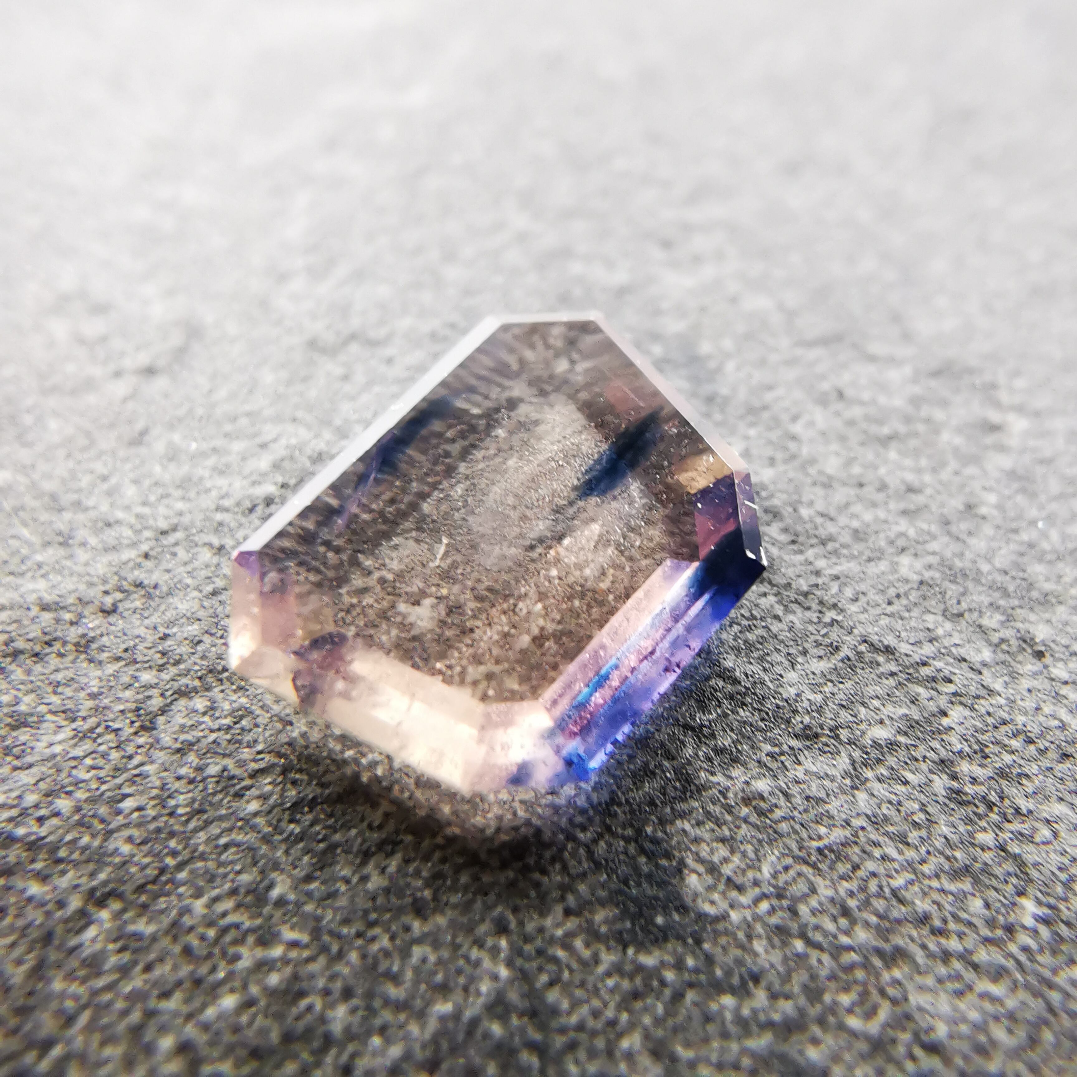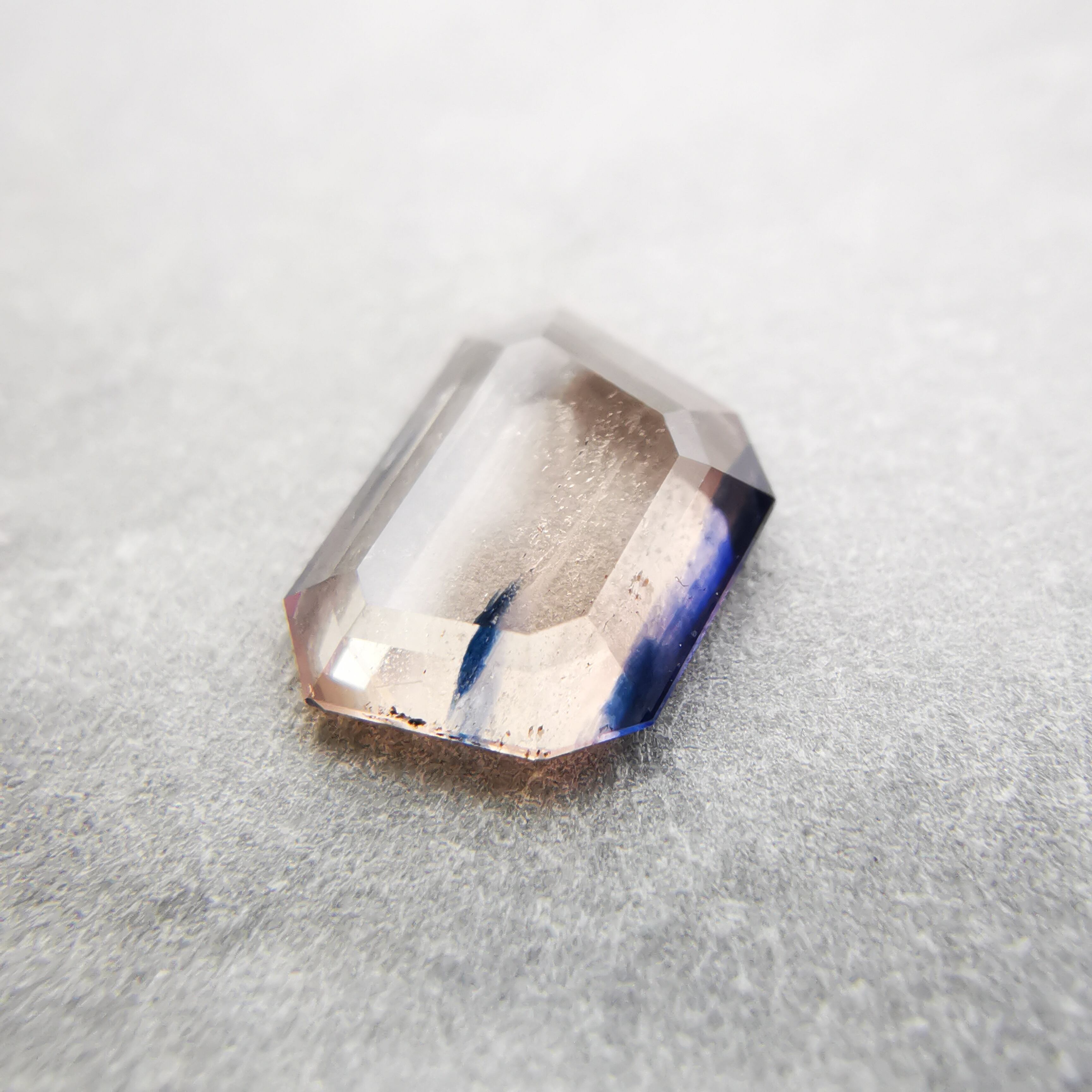 明るい灰みのピンク/灰桜色に、紺色が入ったバイカラーサファイアです。