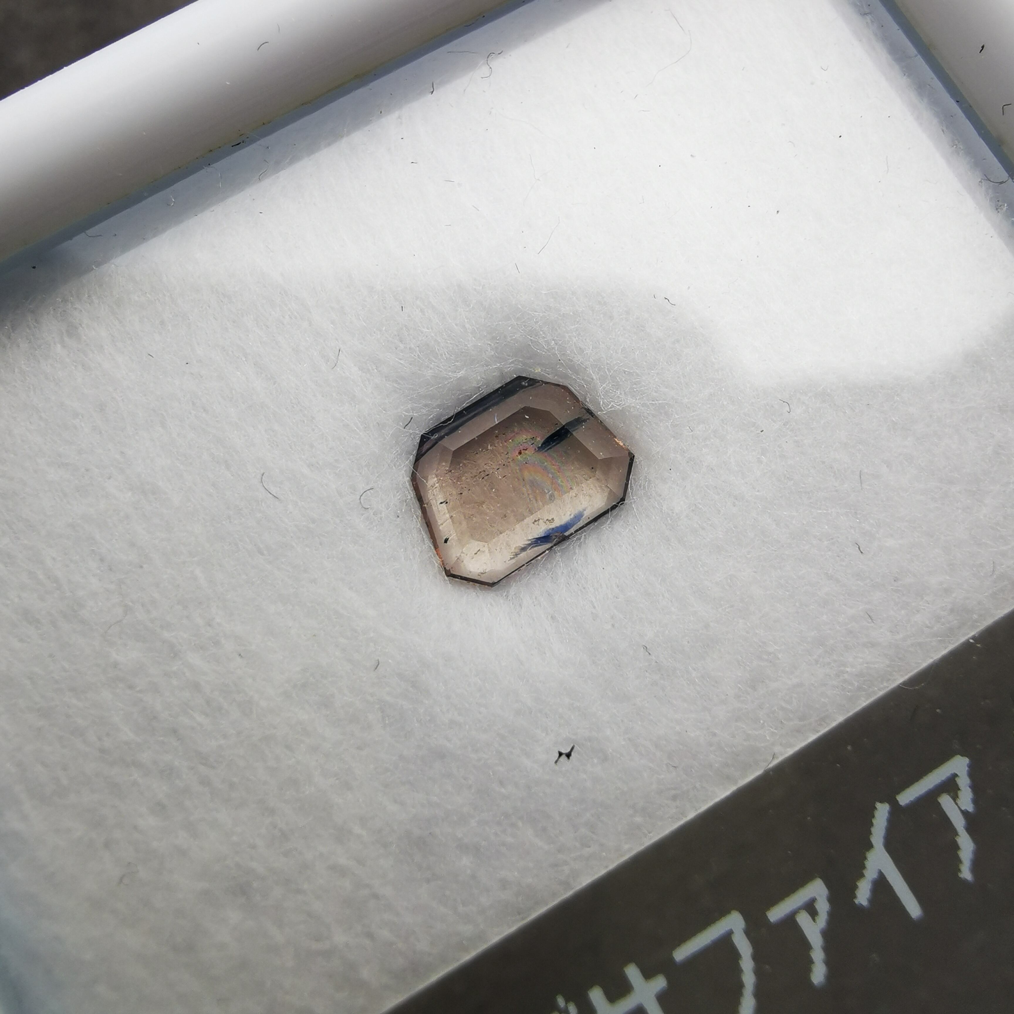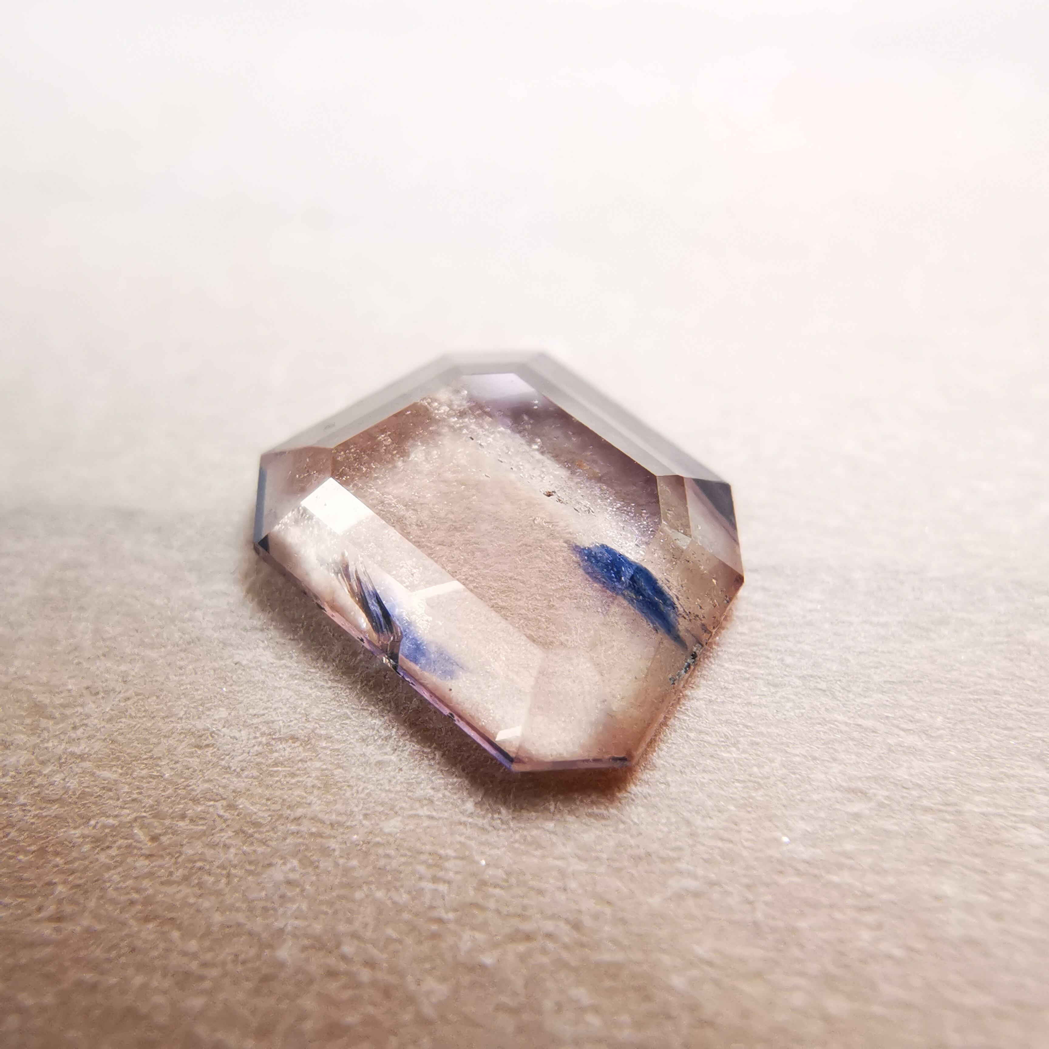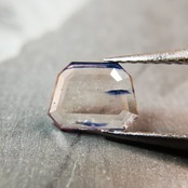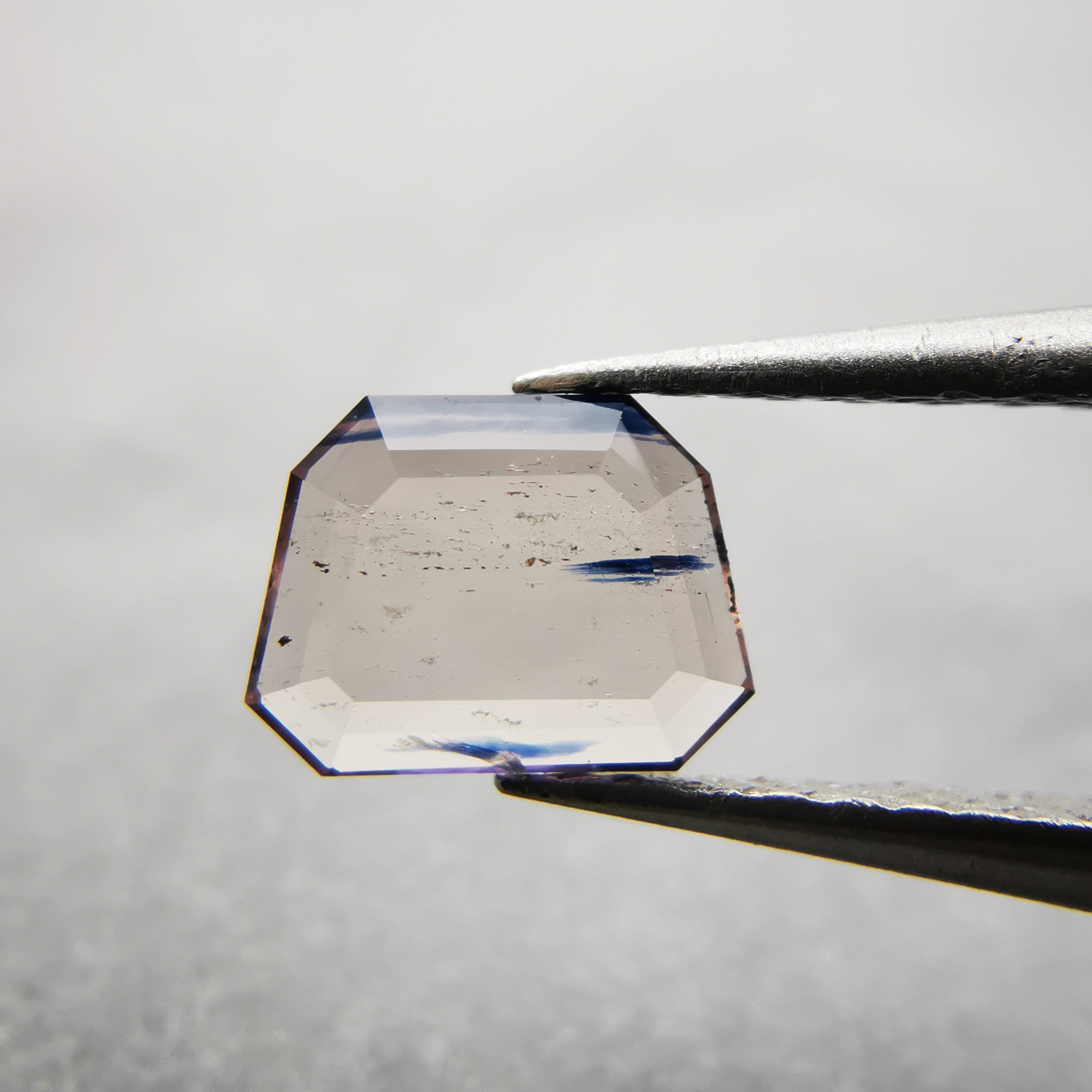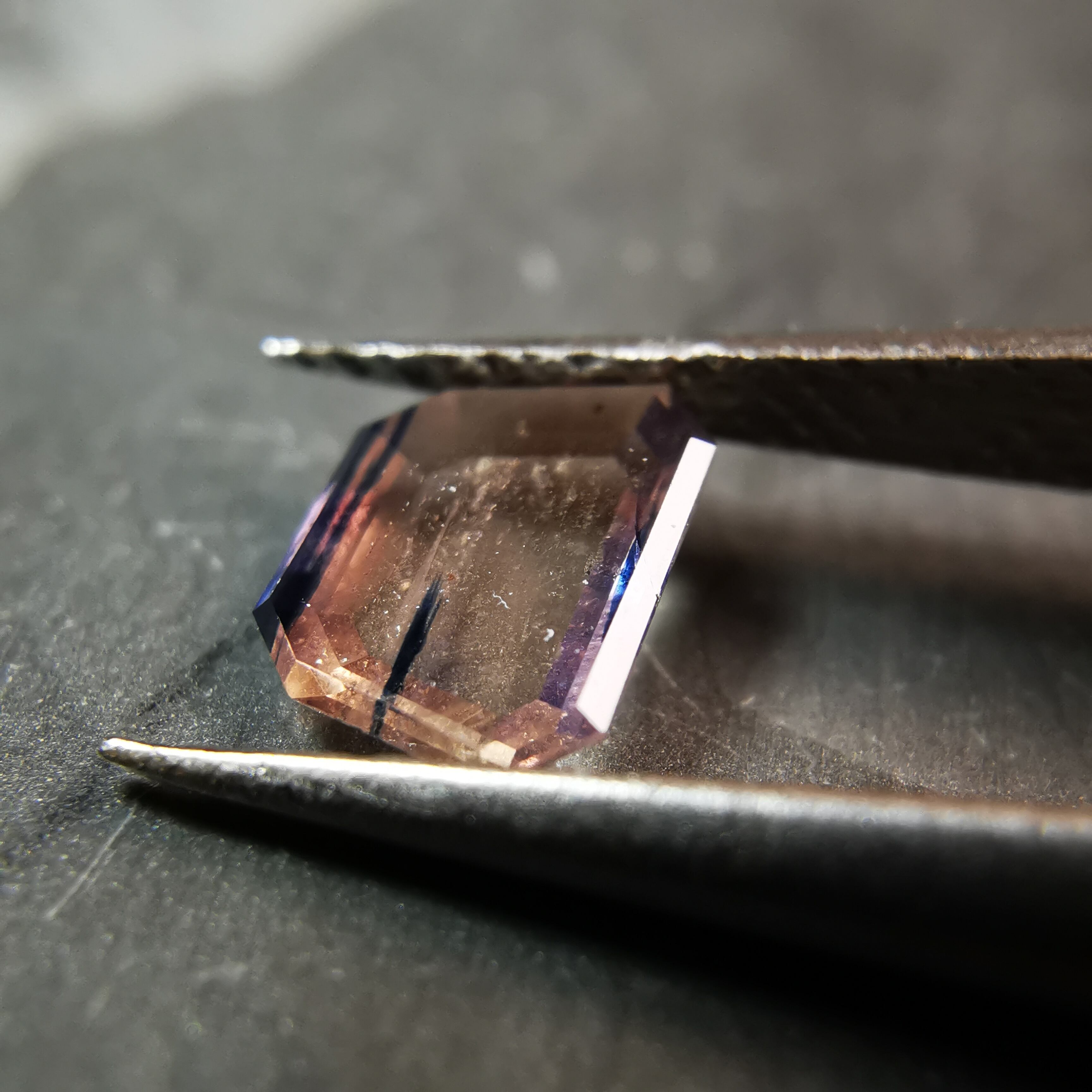 明るい灰みのピンク/灰桜色に、紺色が入ったバイカラーサファイアです。