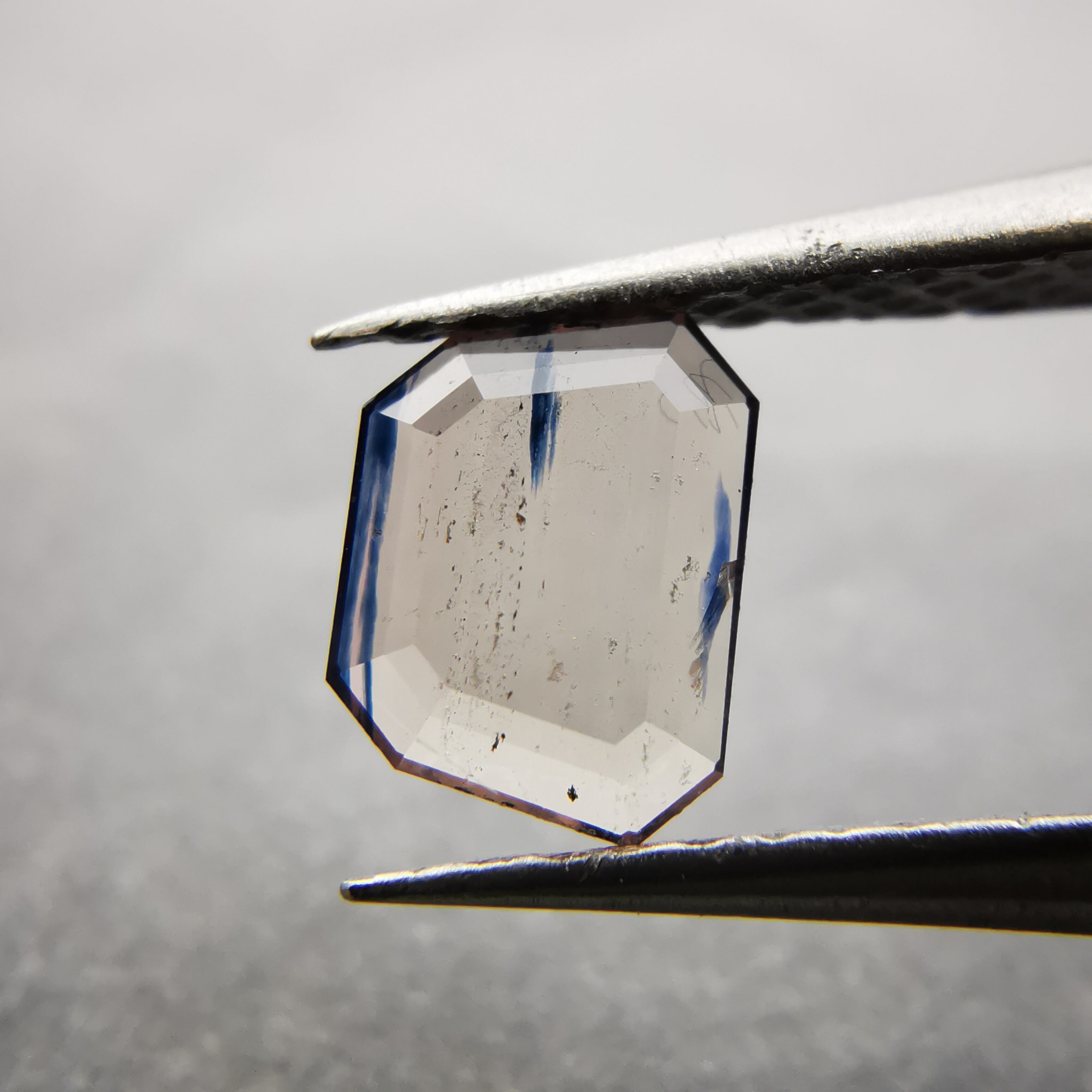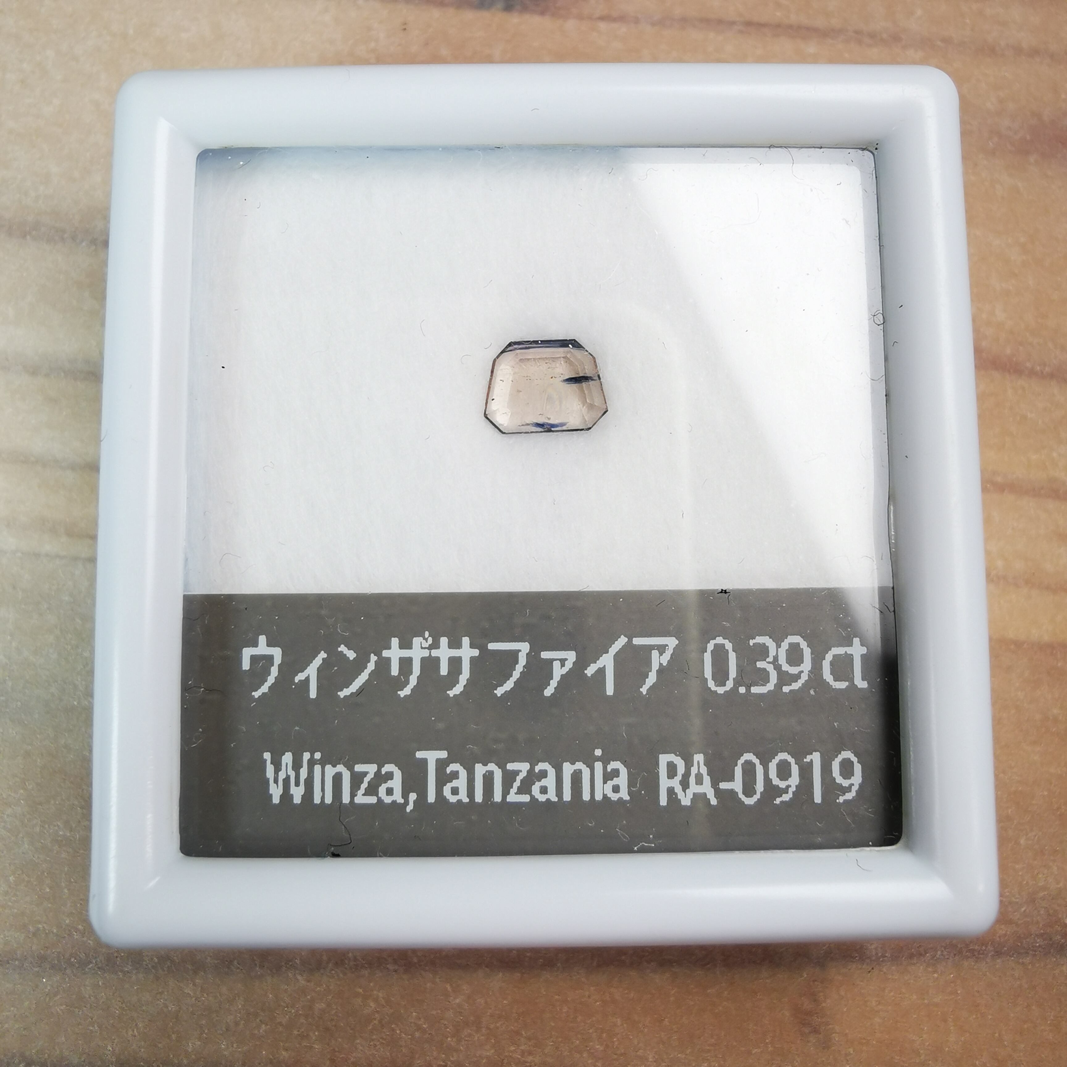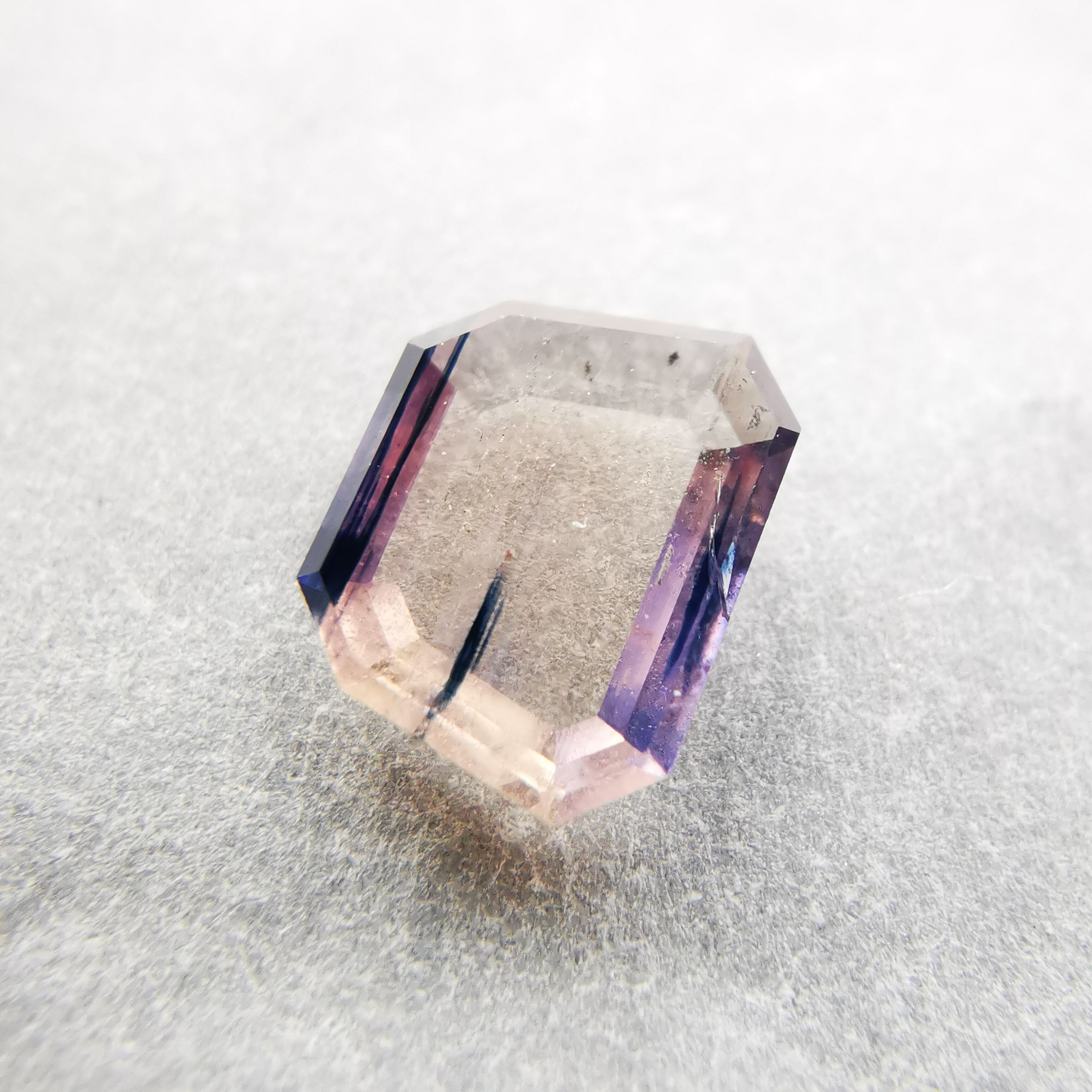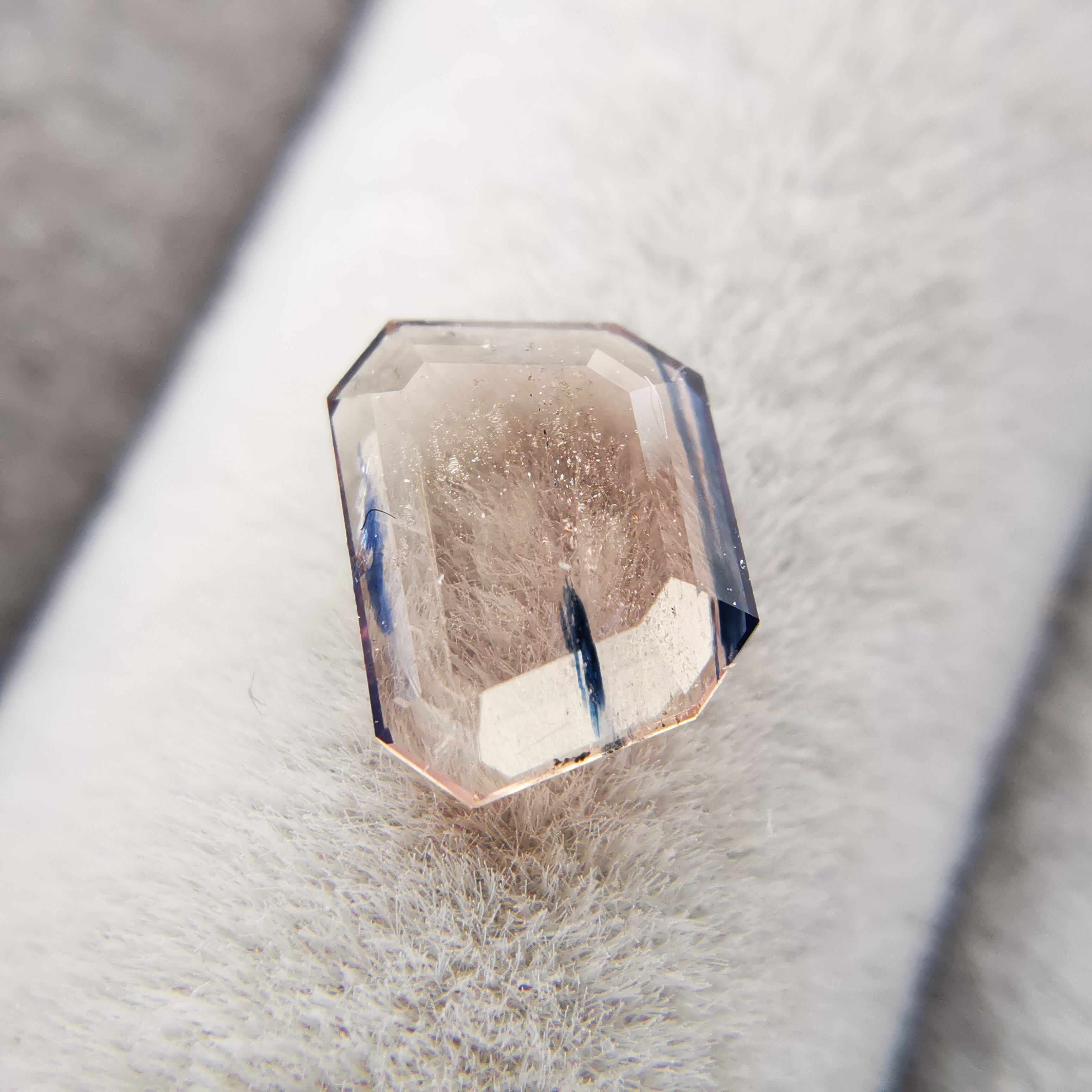 明るい灰みのピンク/灰桜色に、紺色が入ったバイカラーサファイアです。