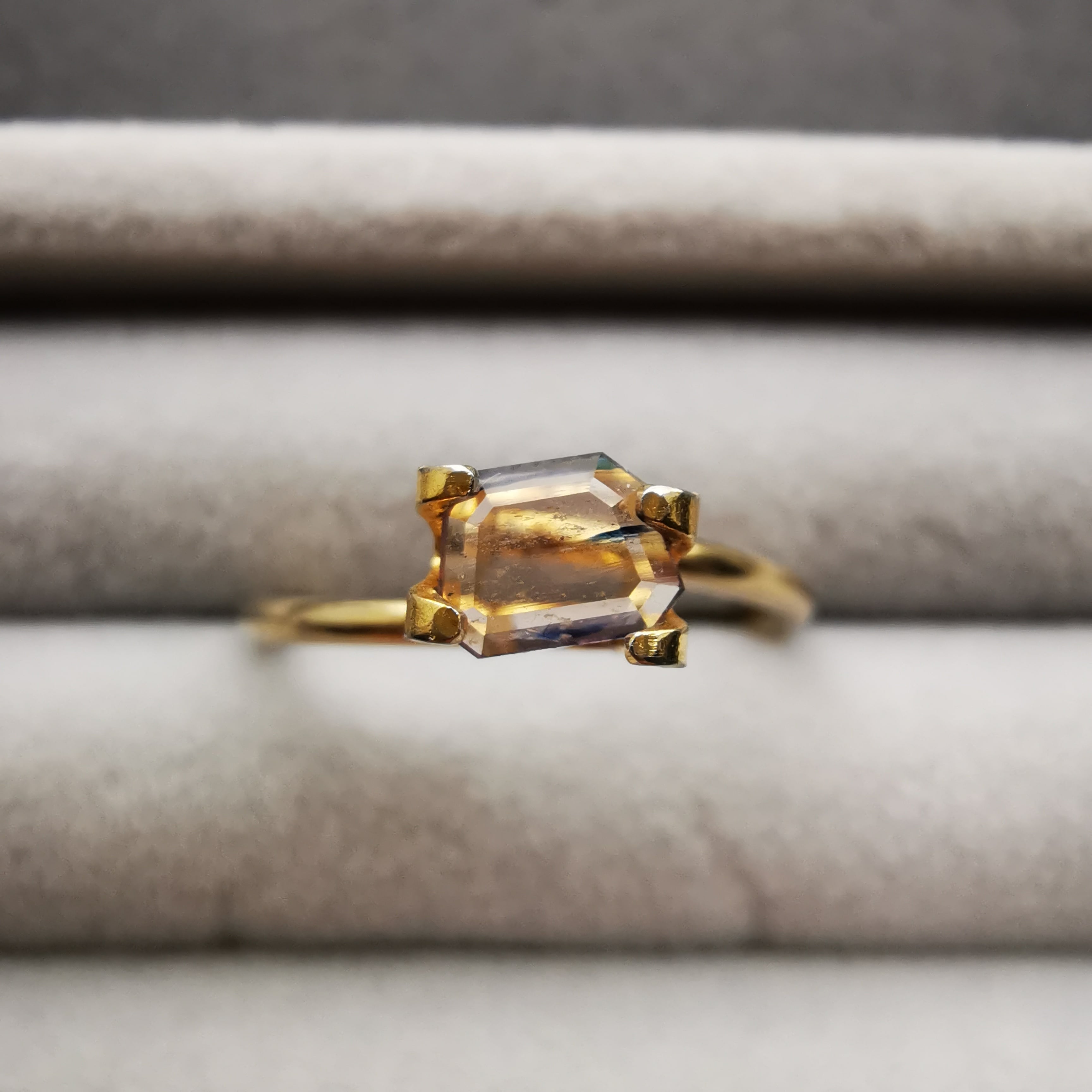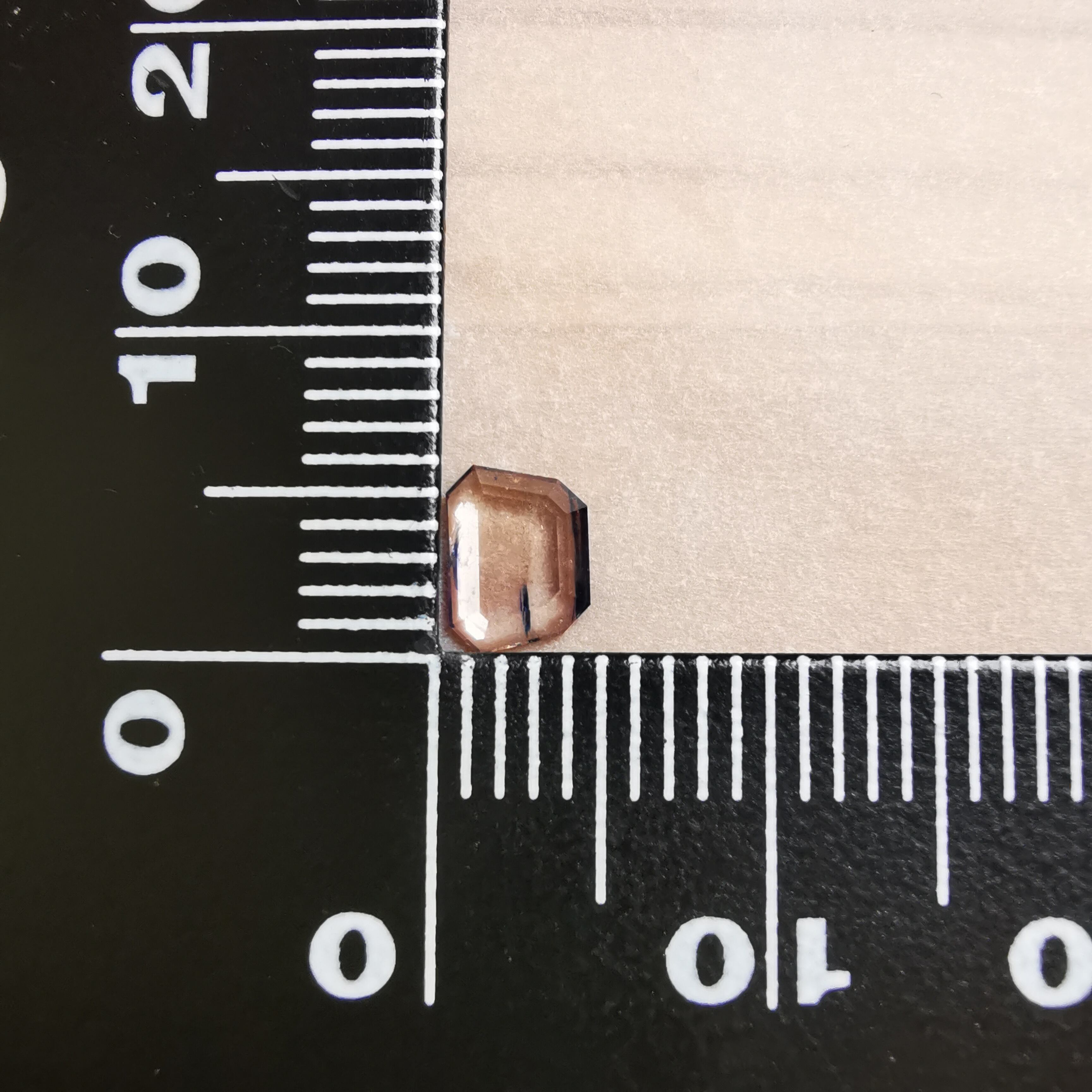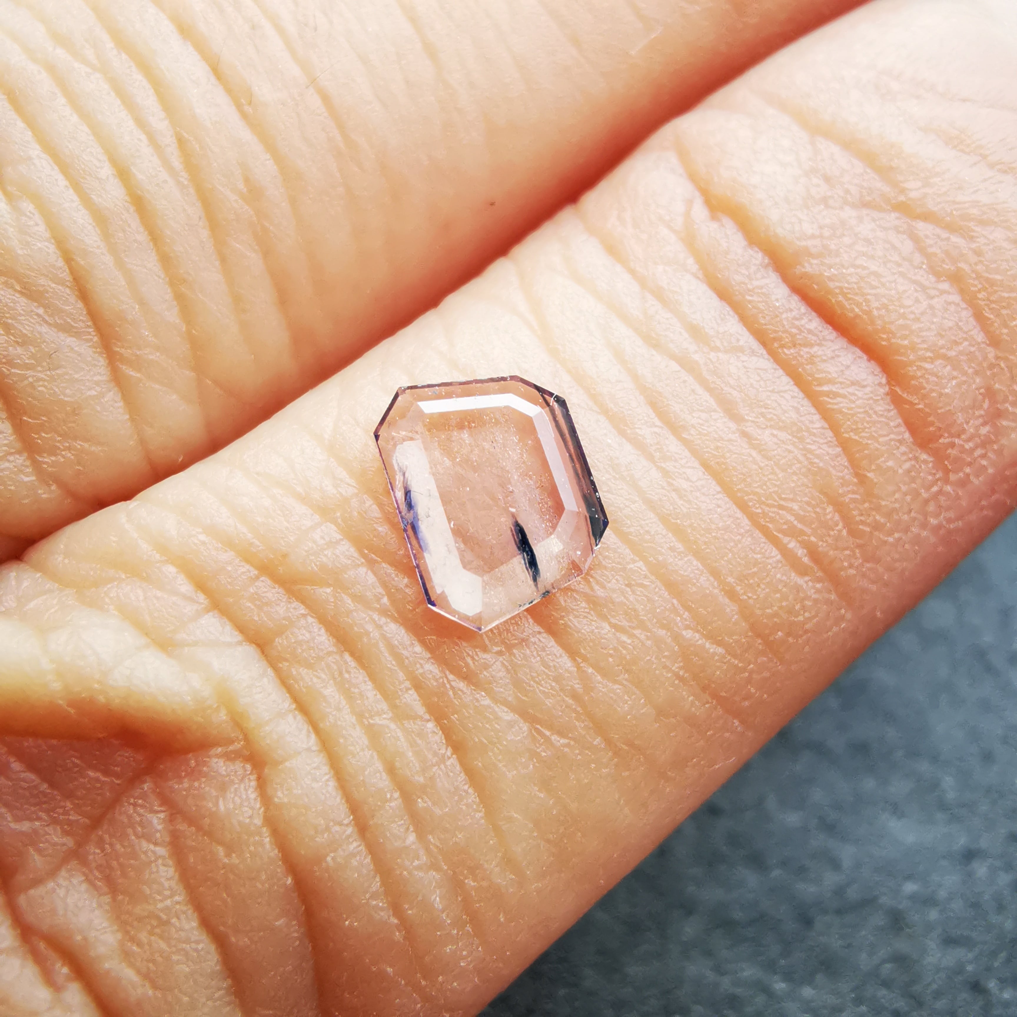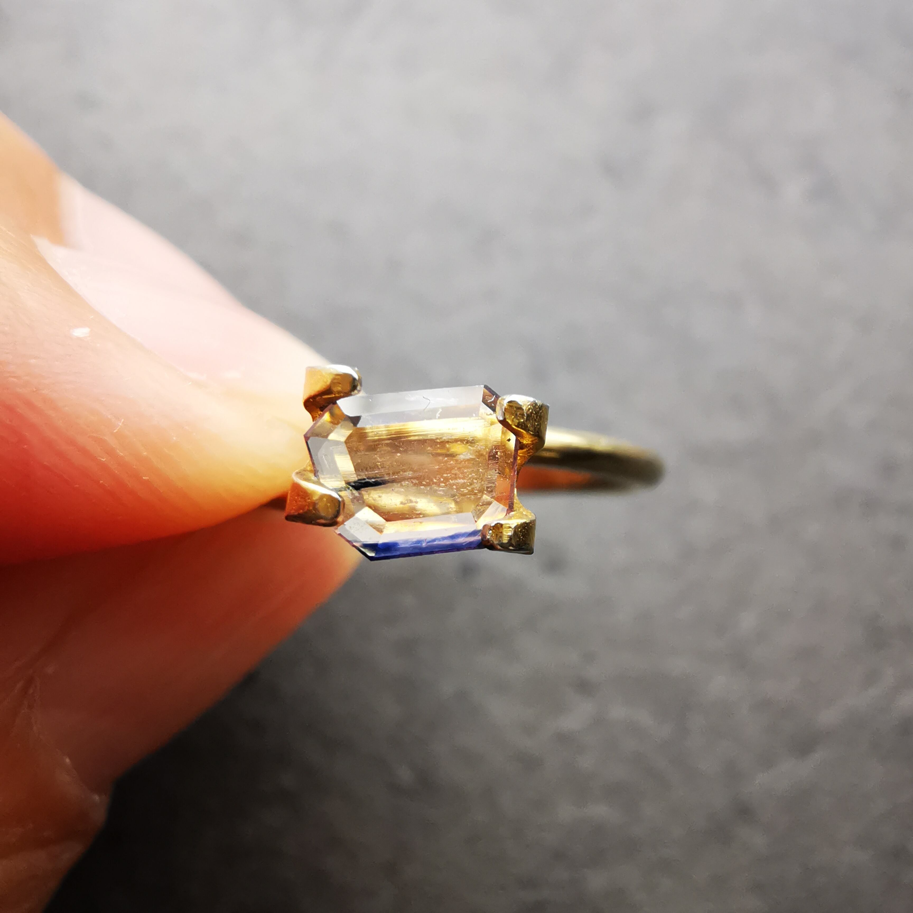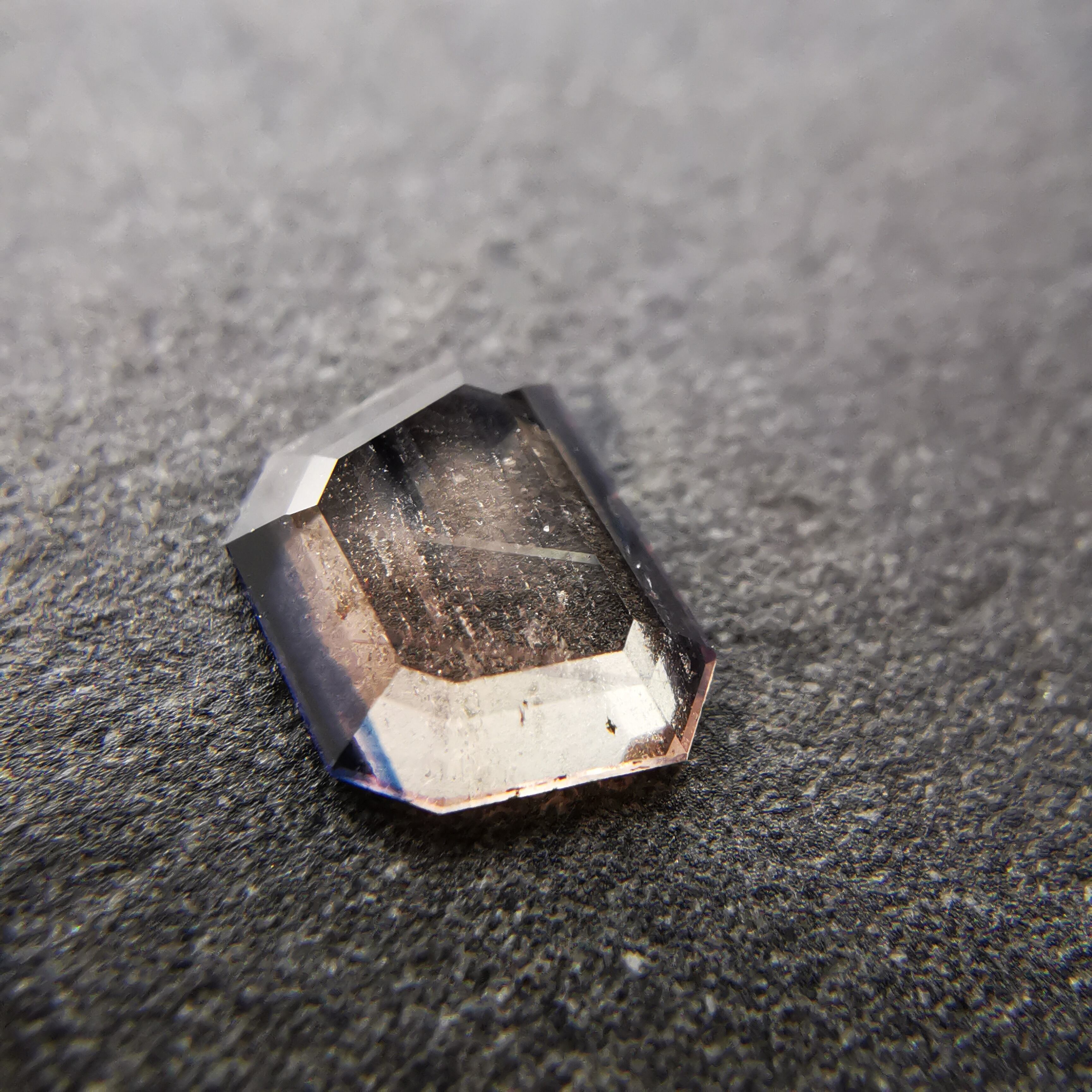 明るい灰みのピンク/灰桜色に、紺色が入ったバイカラーサファイアです。