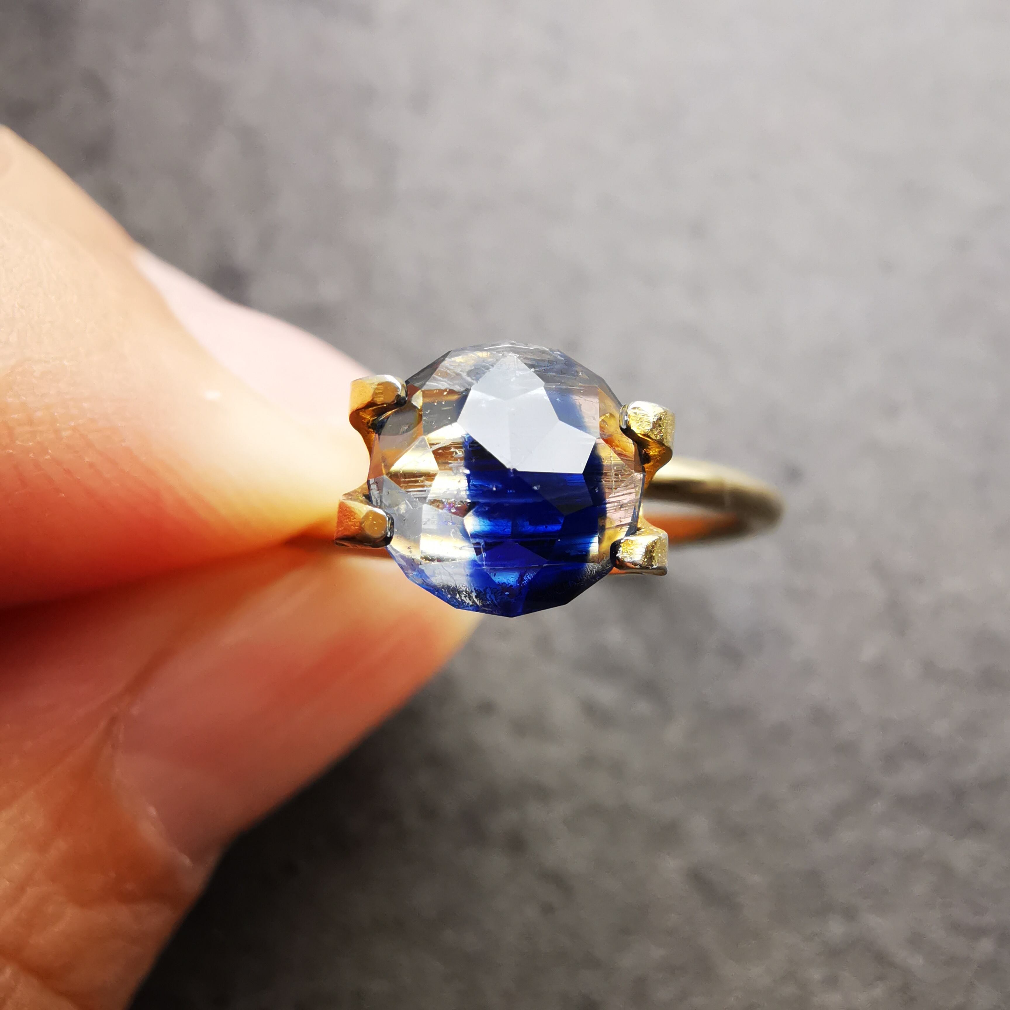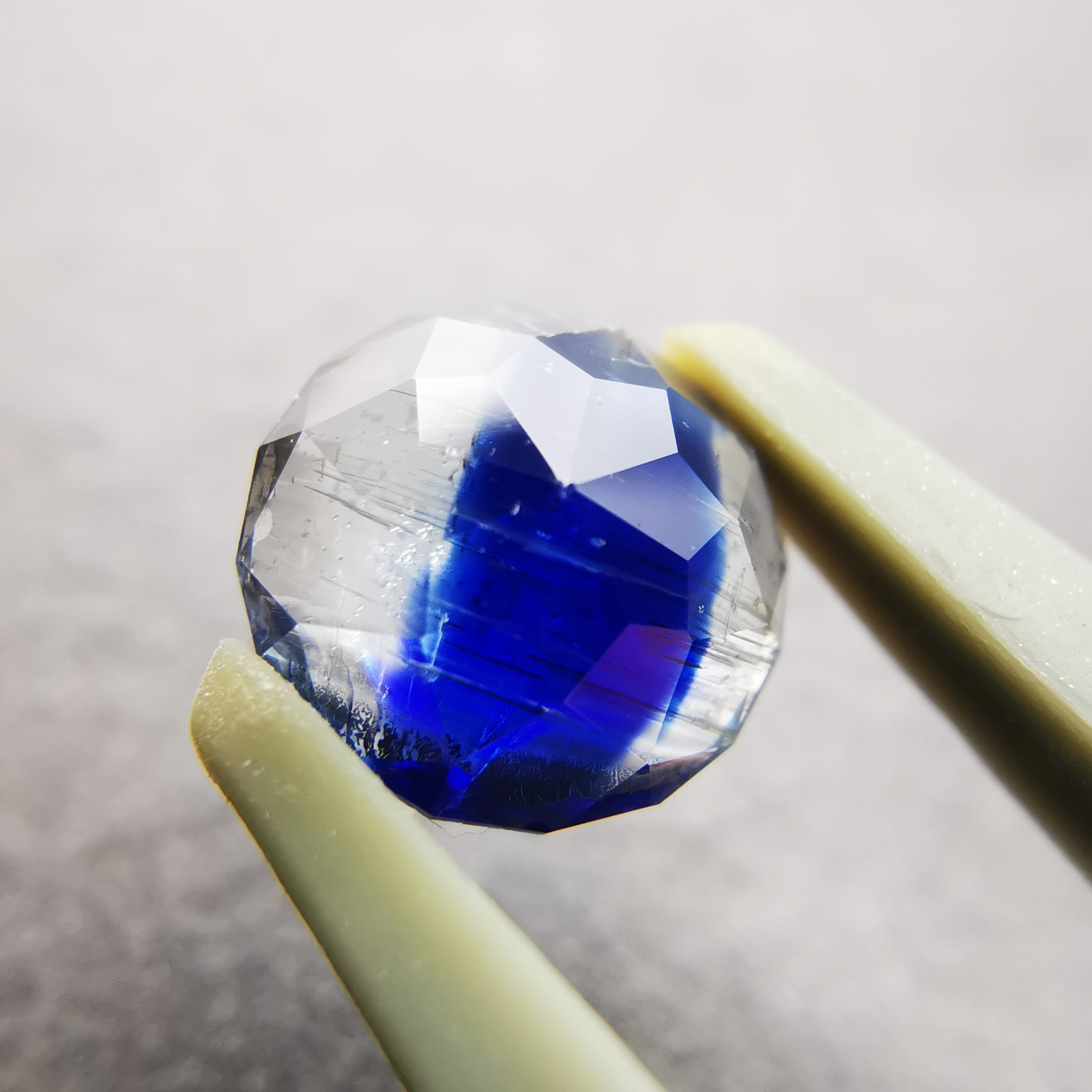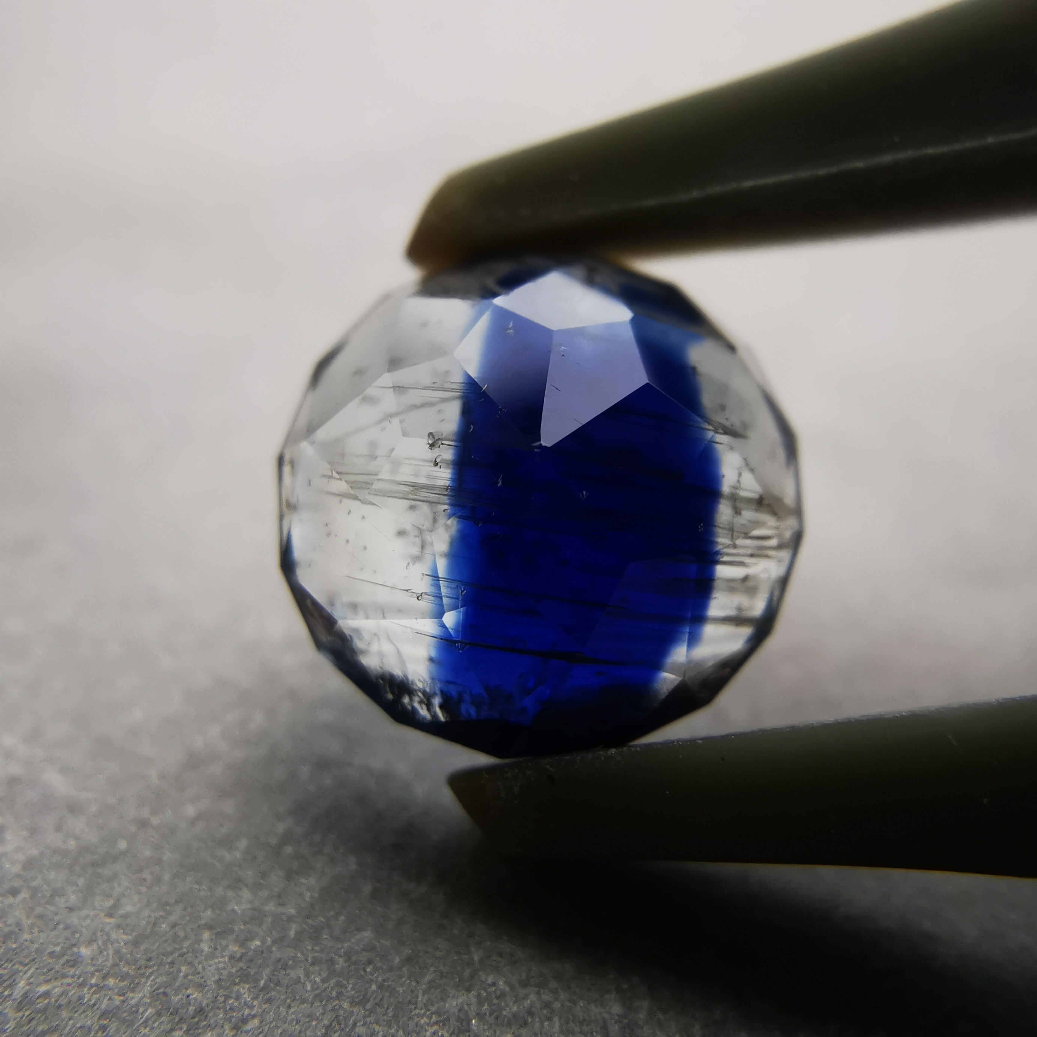 うっとりするような深いブルー、驚くほどはっきりと分かれたバイカラー、カイヤナイトってこんなに素敵な石種だった?と新しい発見にワクワクするような一石です。