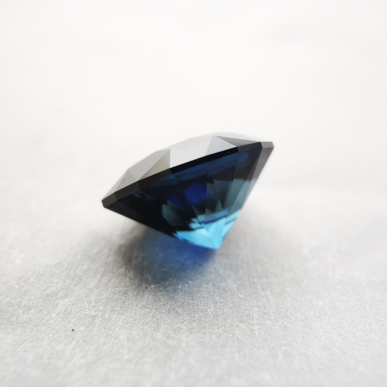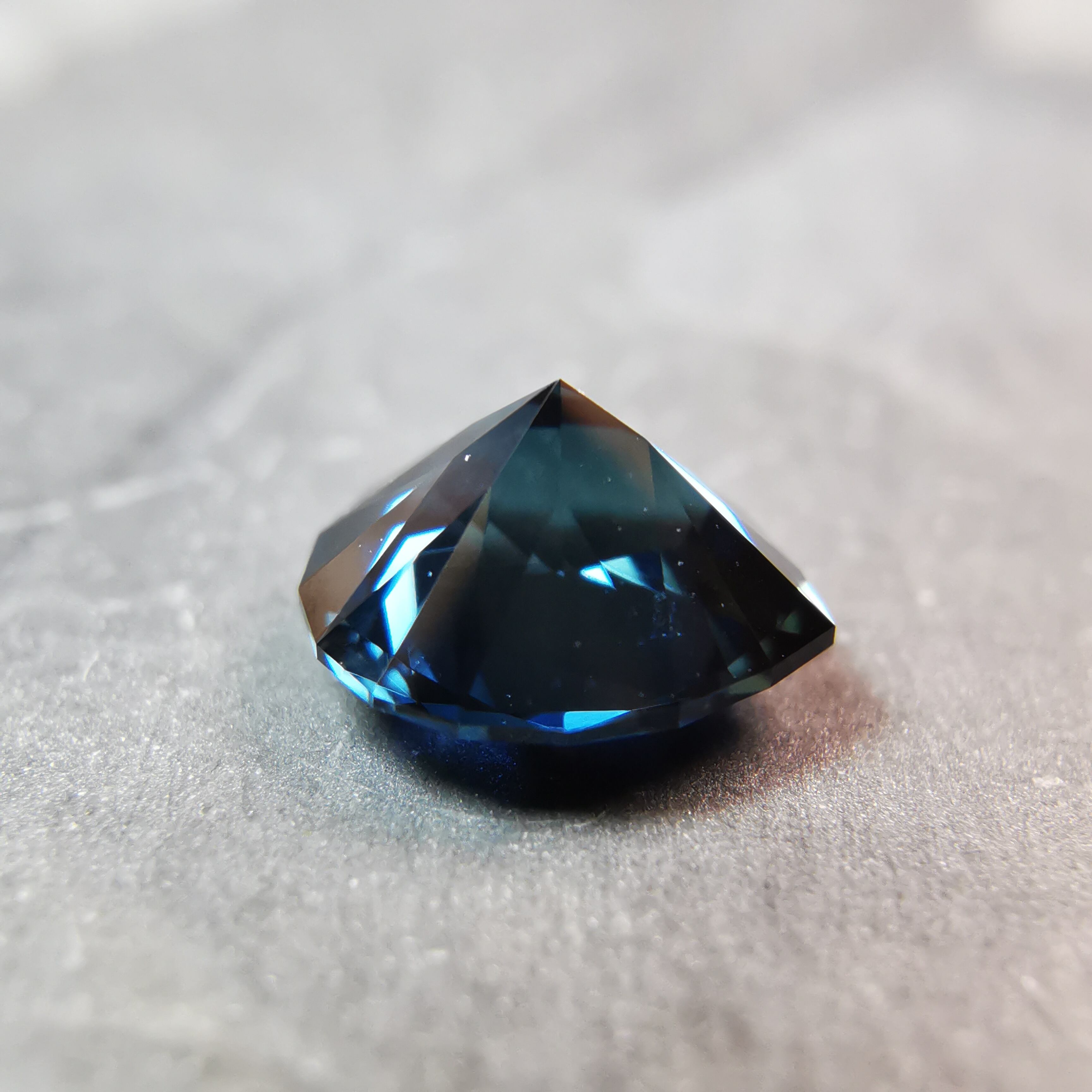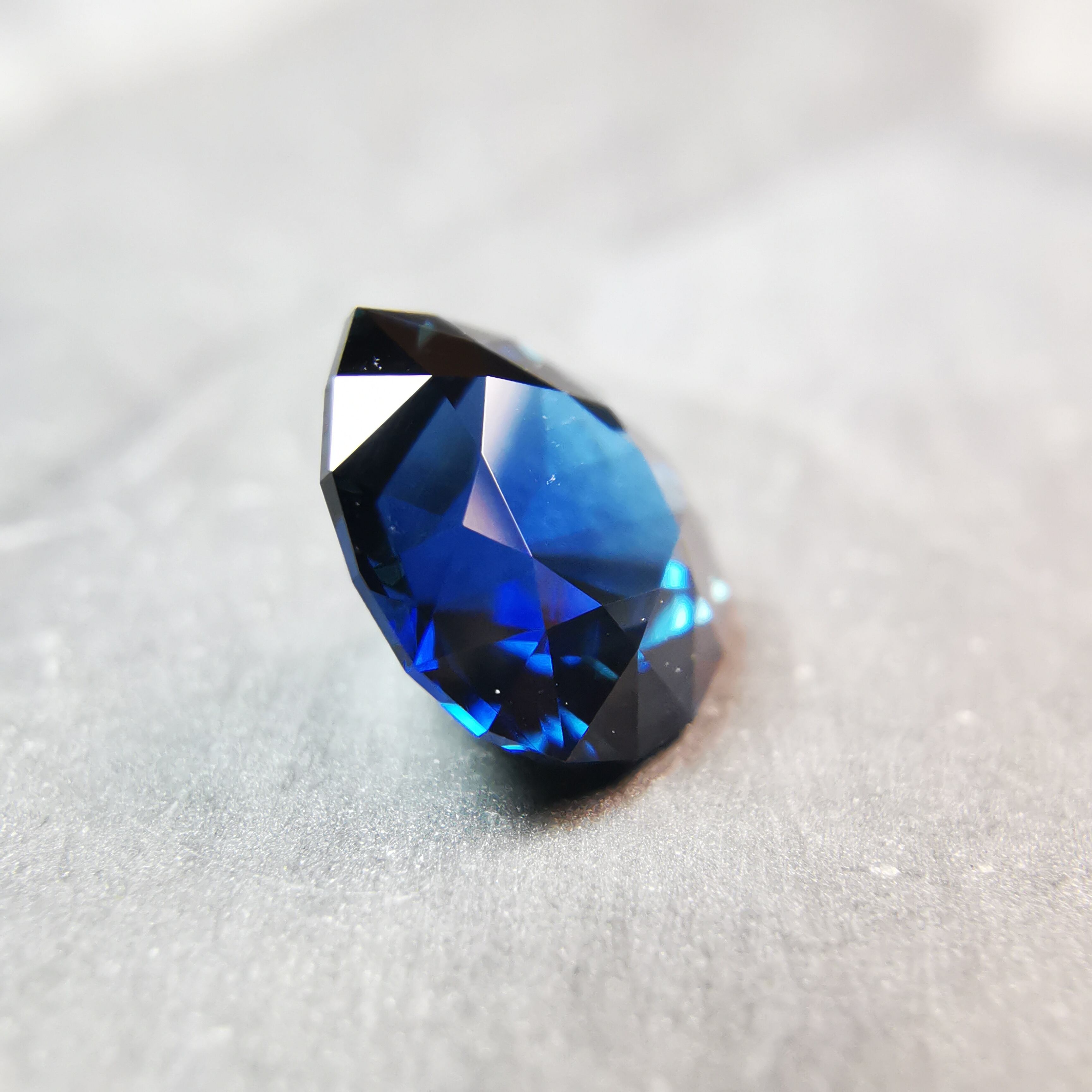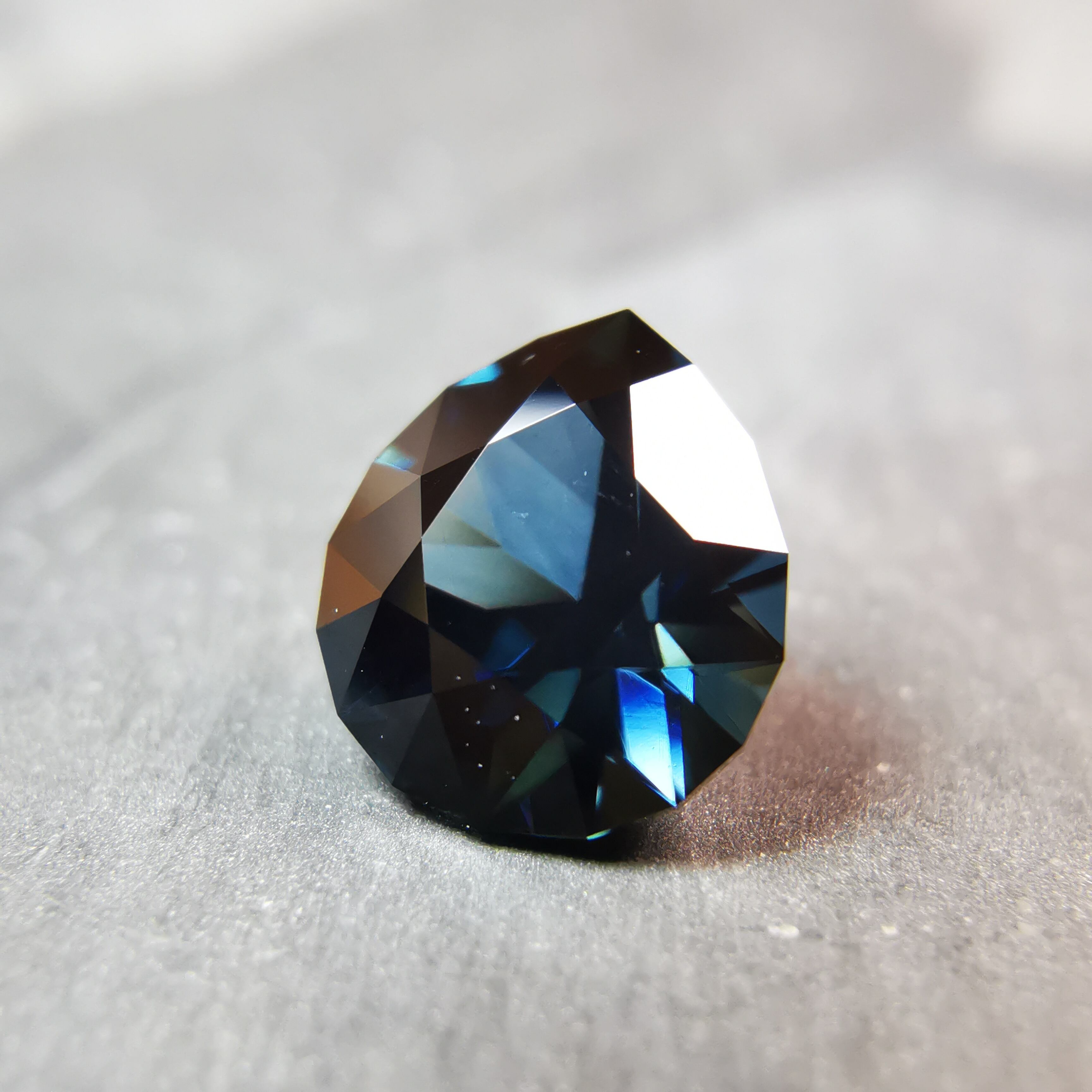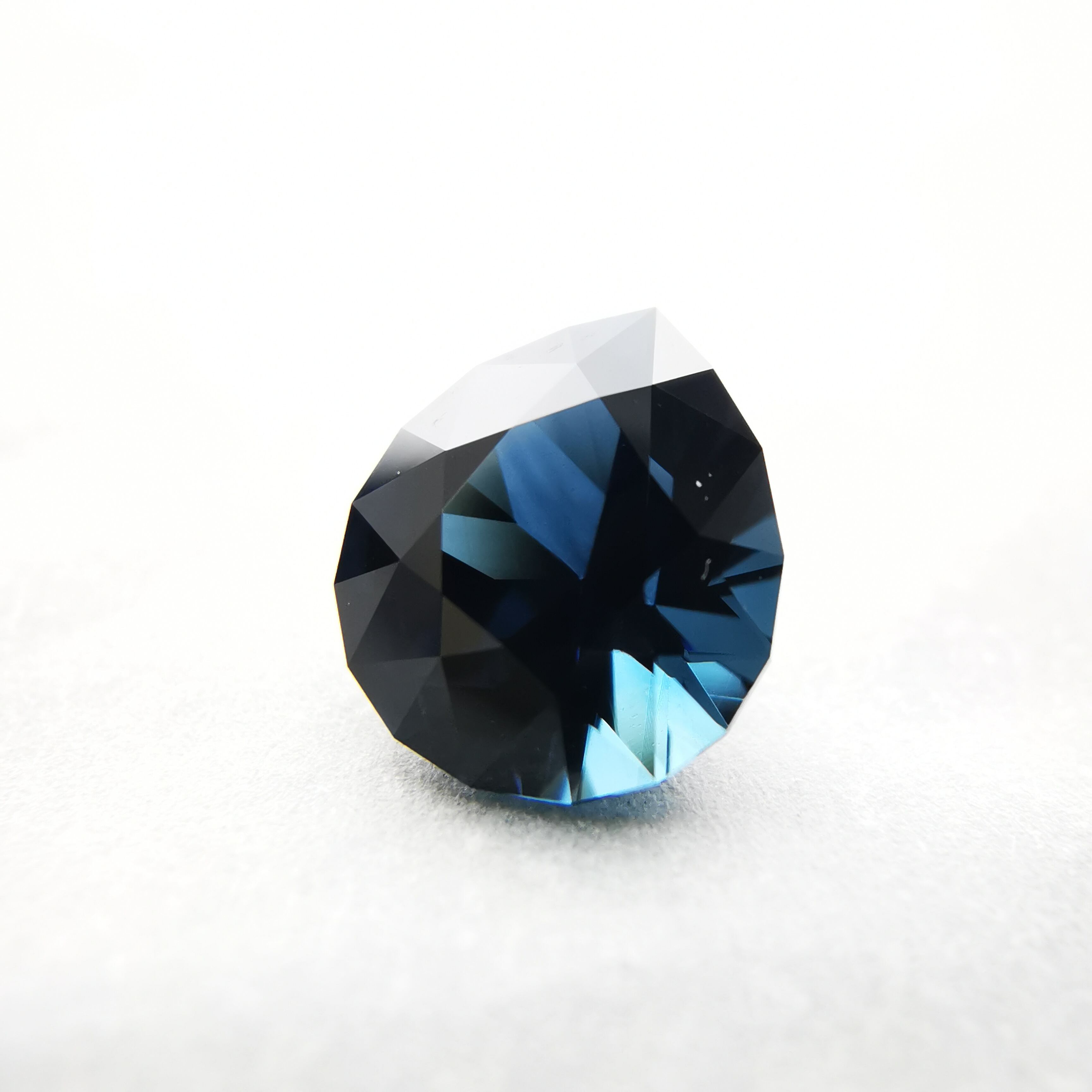 ほぼ黒に近いダークなサファイアから、青が鋭くきらめきます。