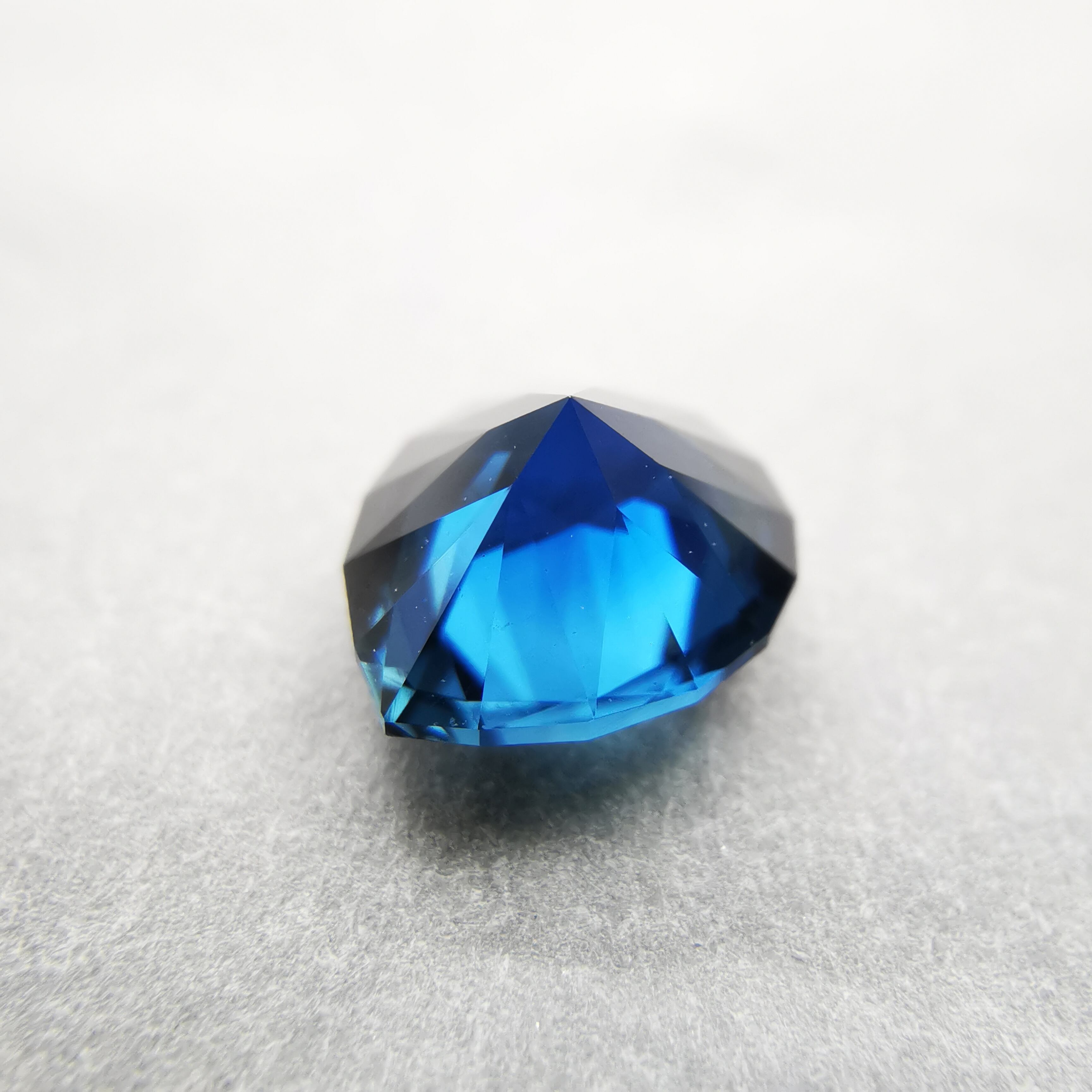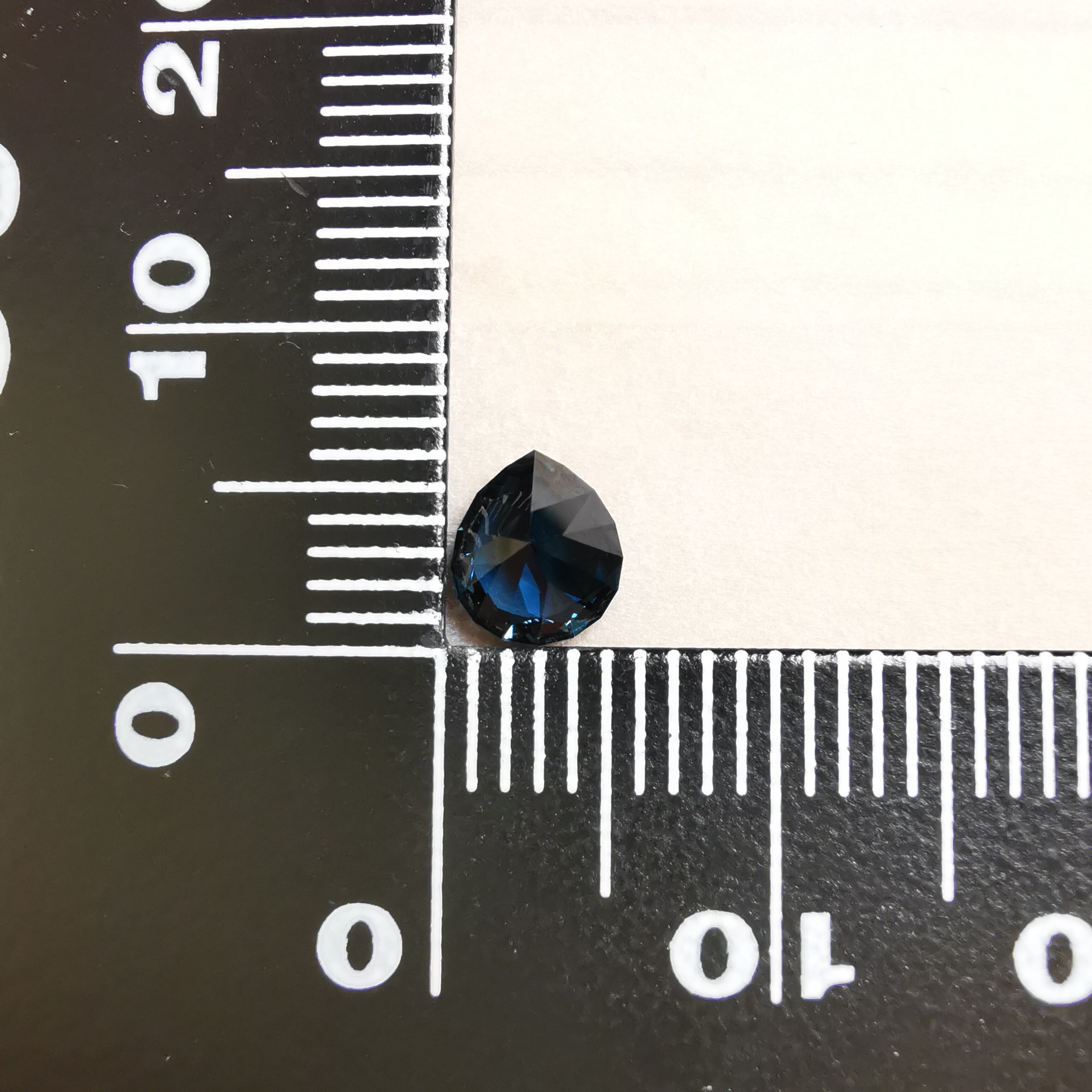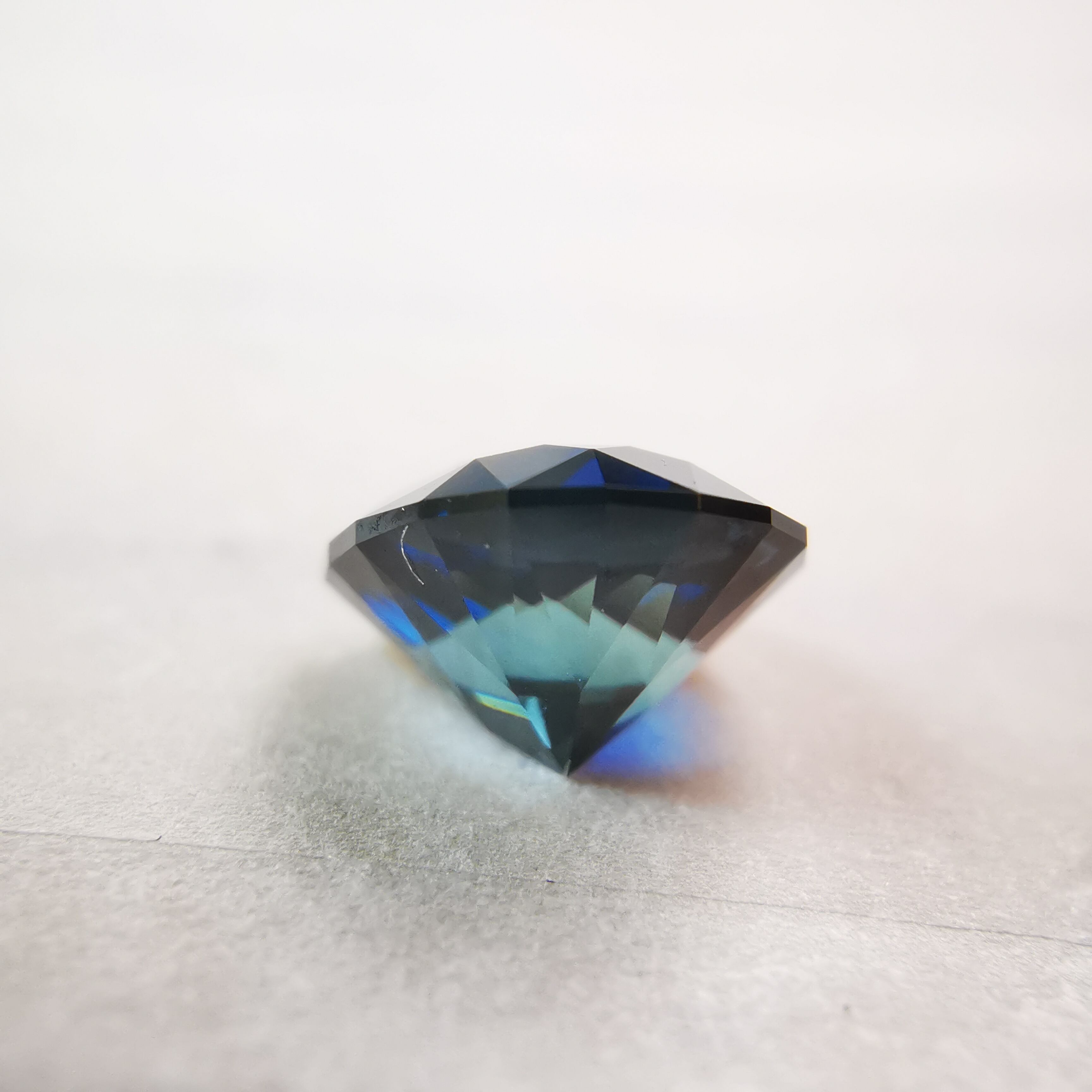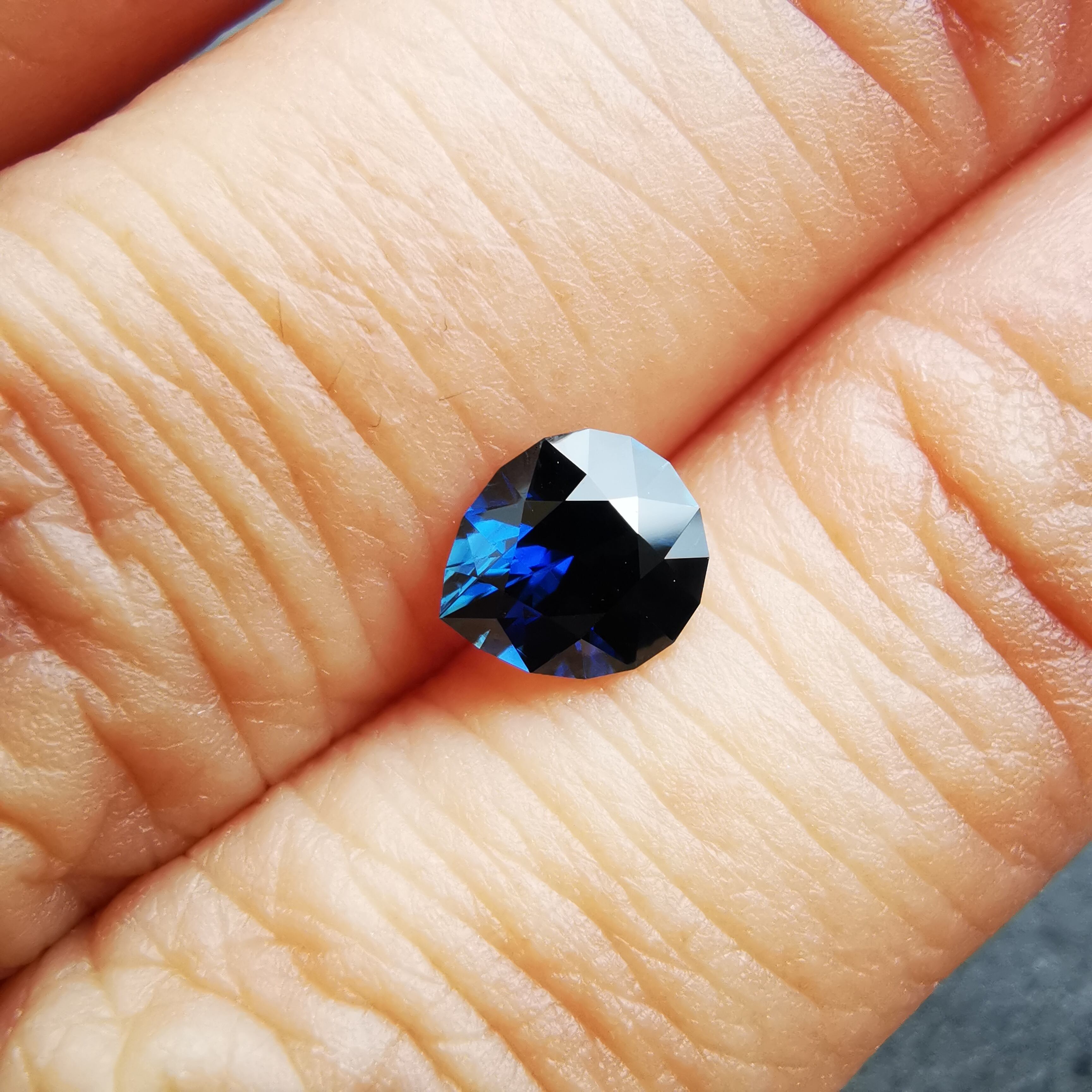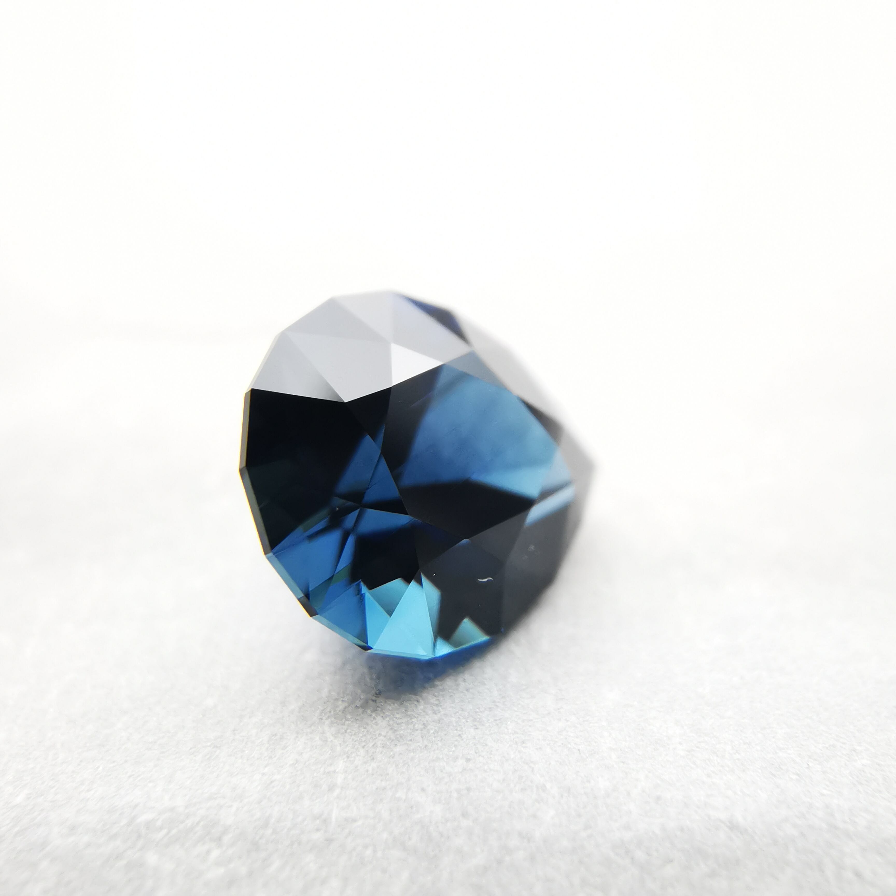 ほぼ黒に近いダークなサファイアから、青が鋭くきらめきます。