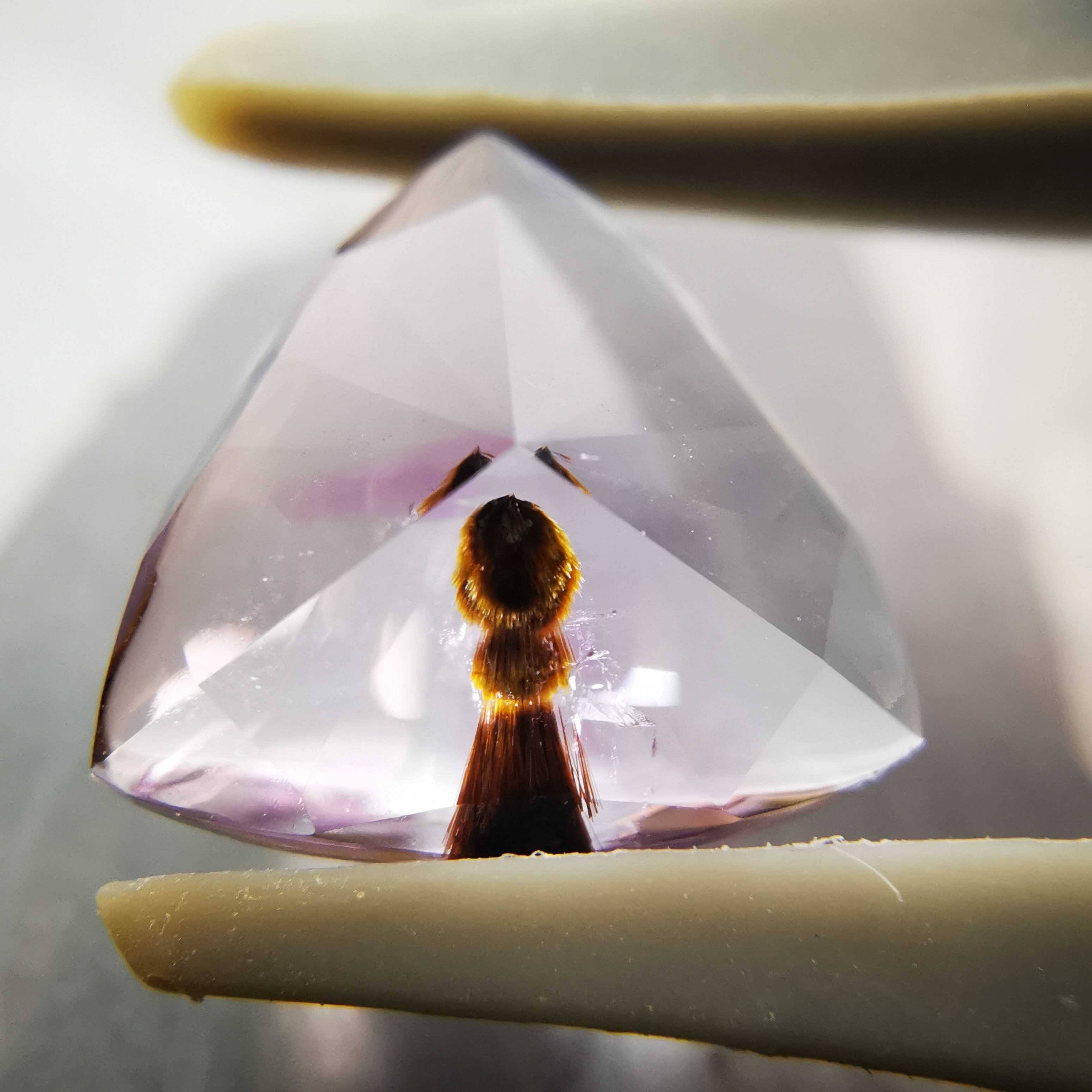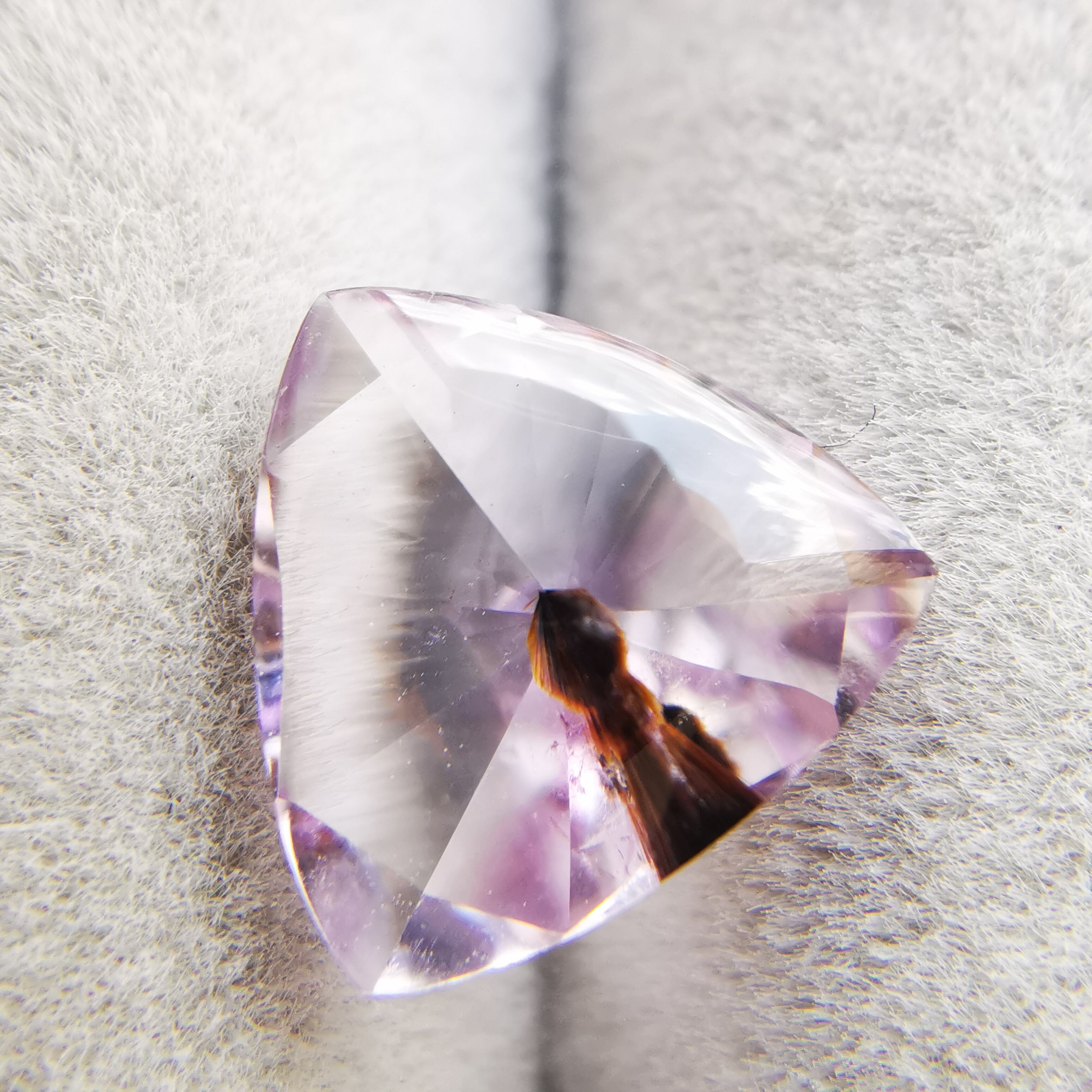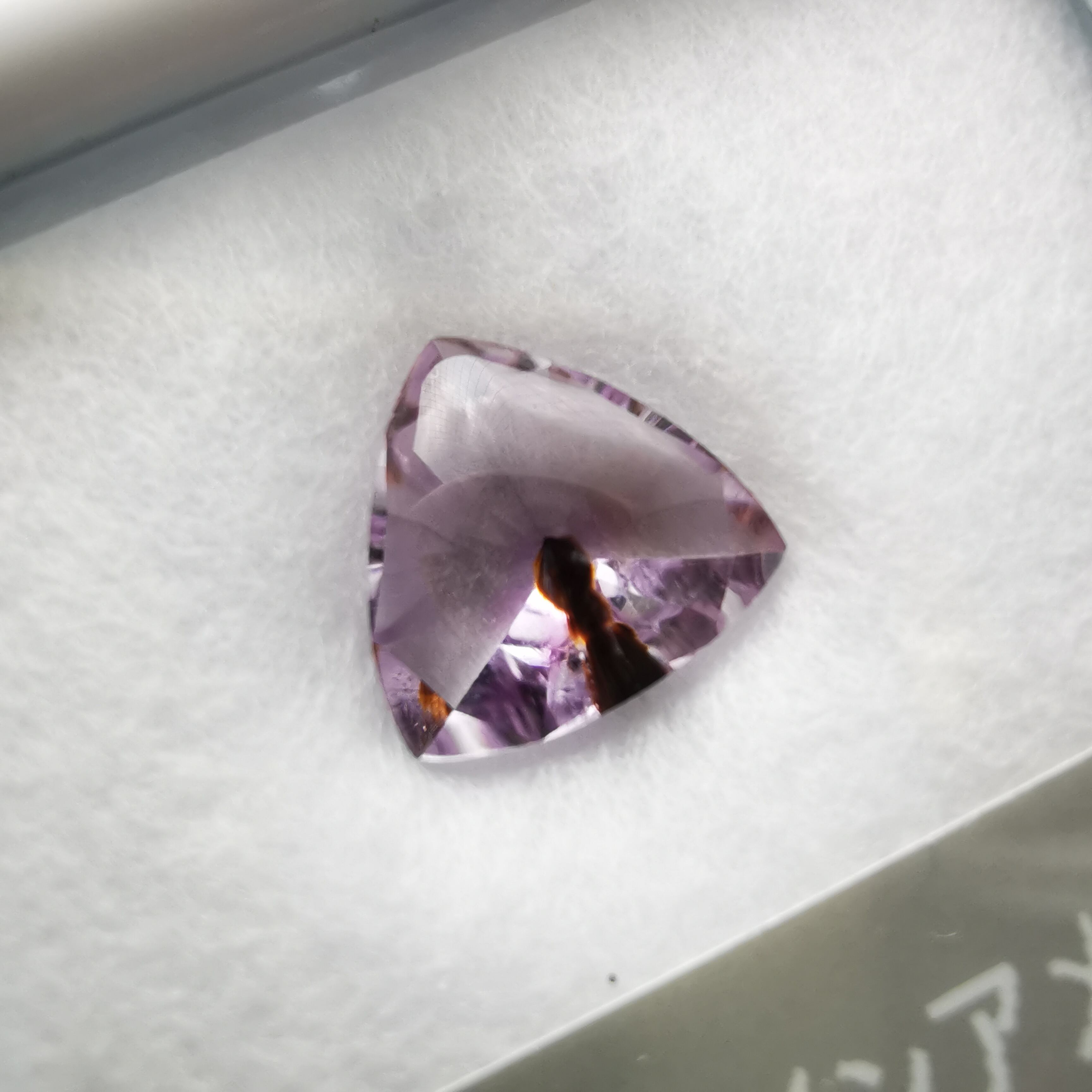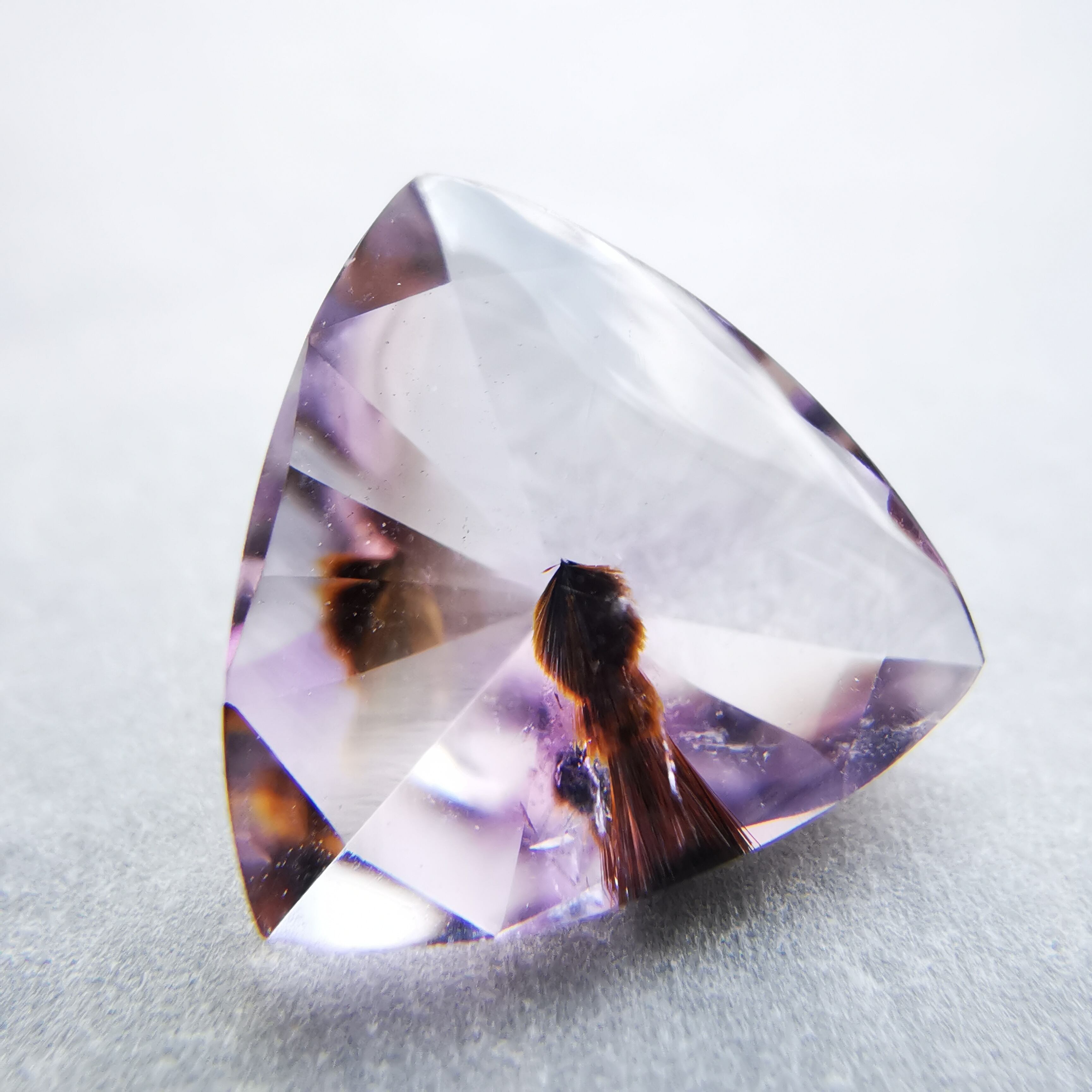 淡くやわらかい紫/ライラック色のアメジストに、ゲーサイトが入っています。