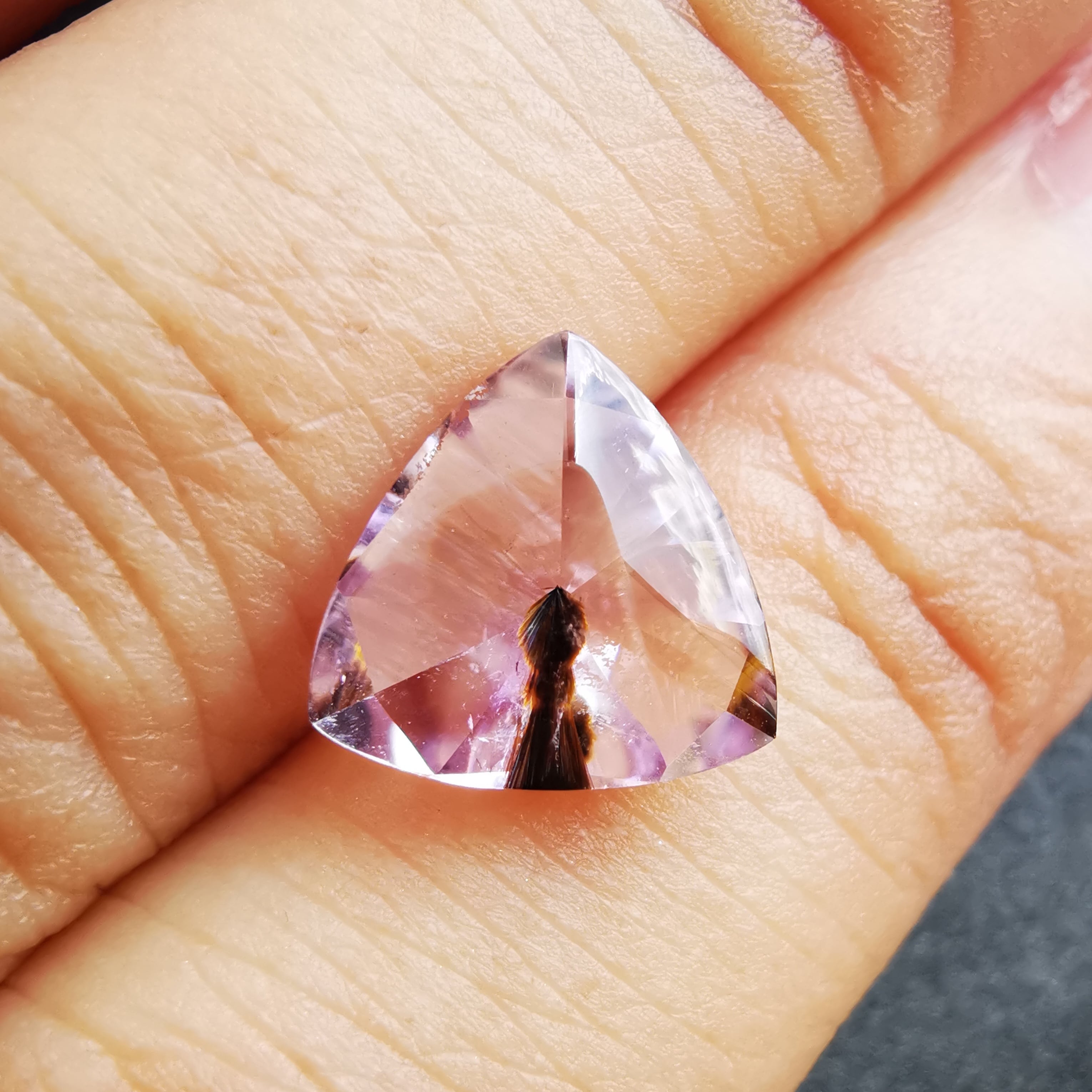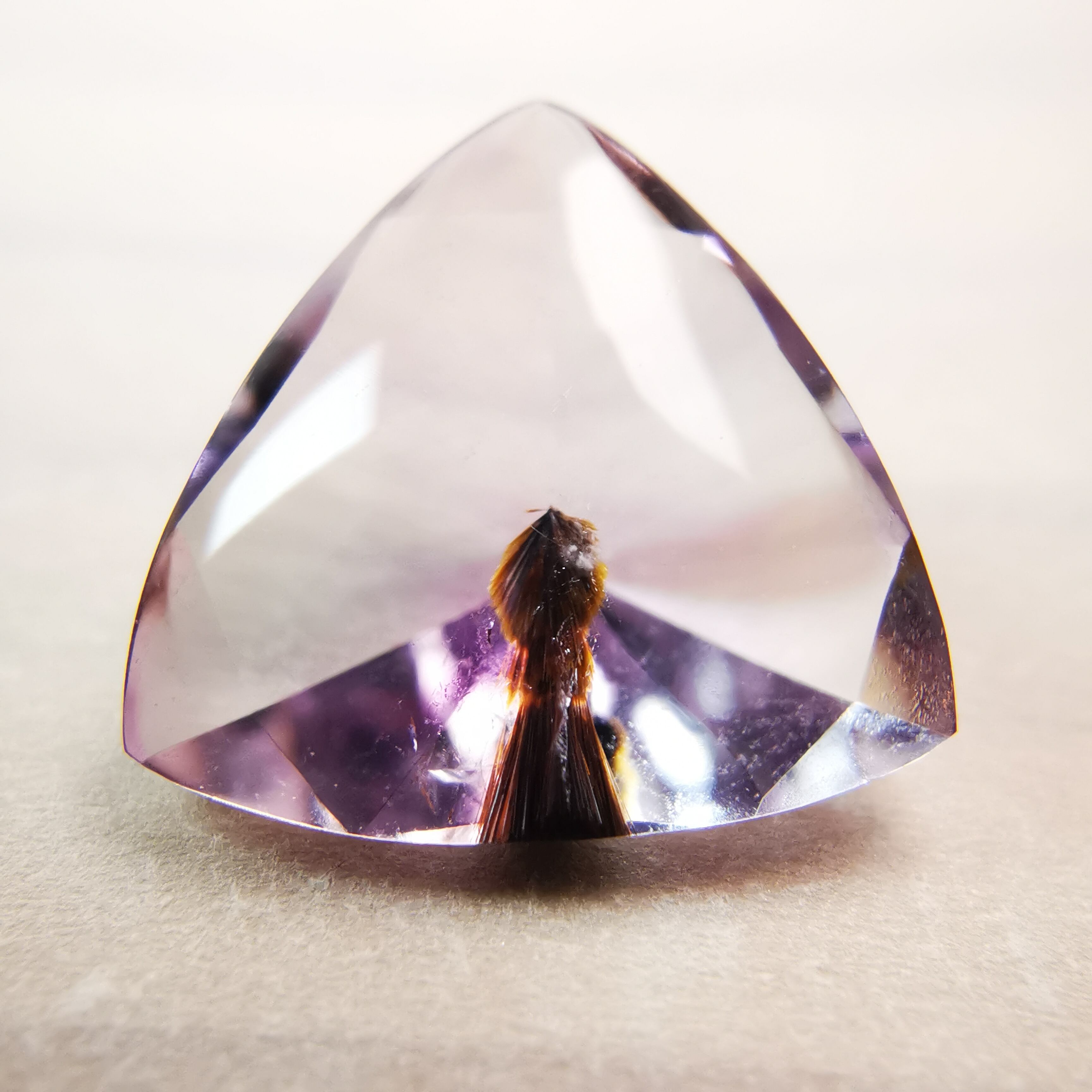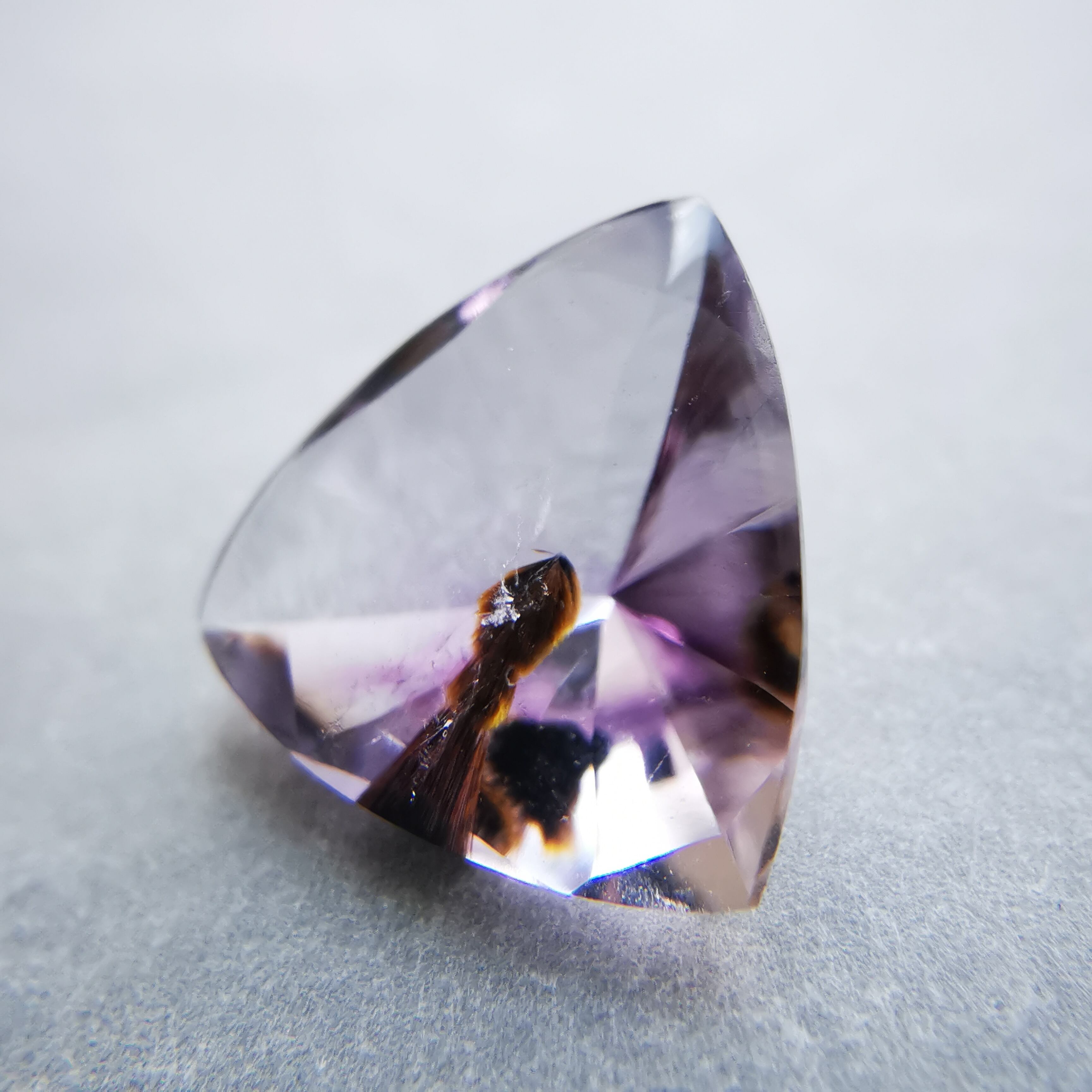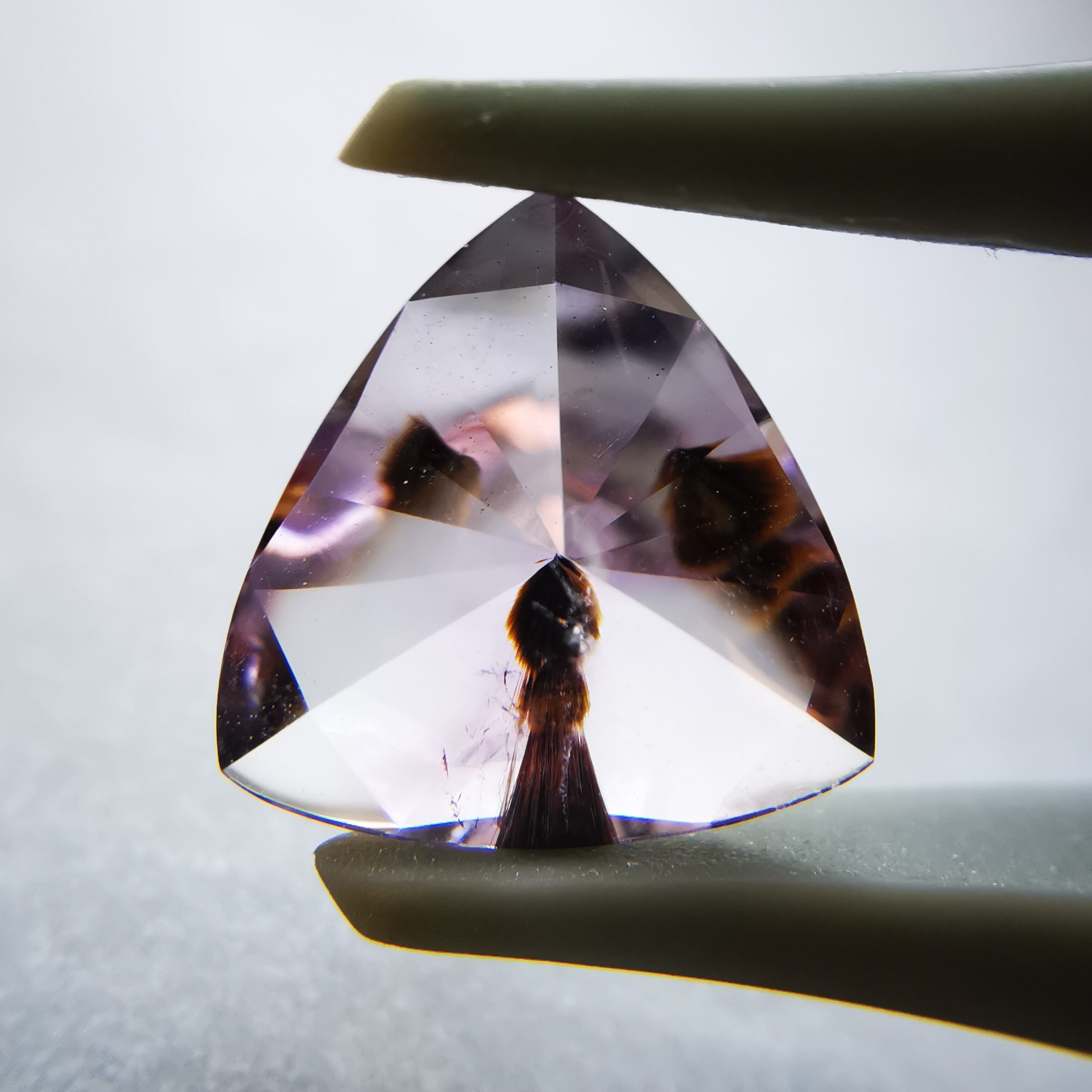 淡くやわらかい紫/ライラック色のアメジストに、ゲーサイトが入っています。