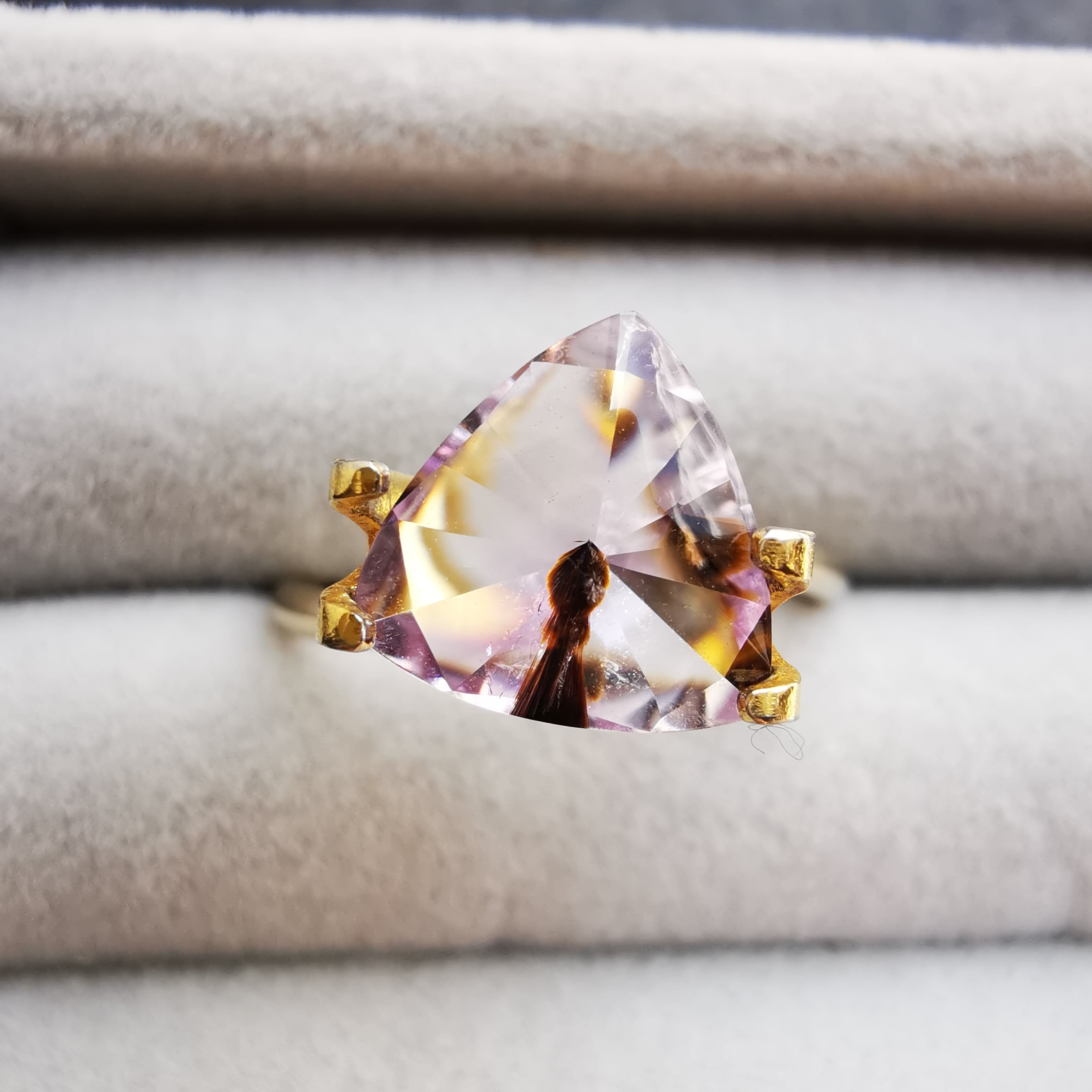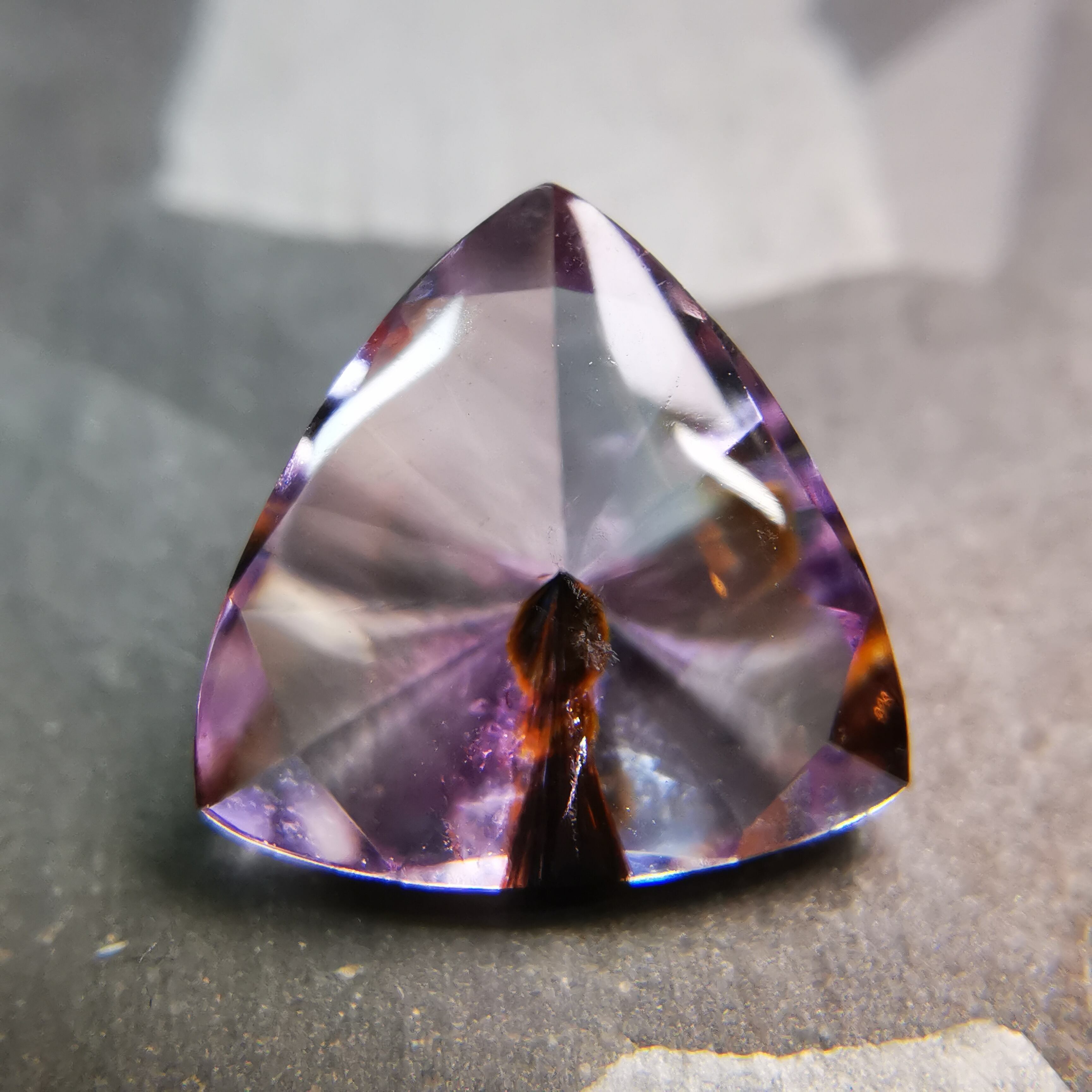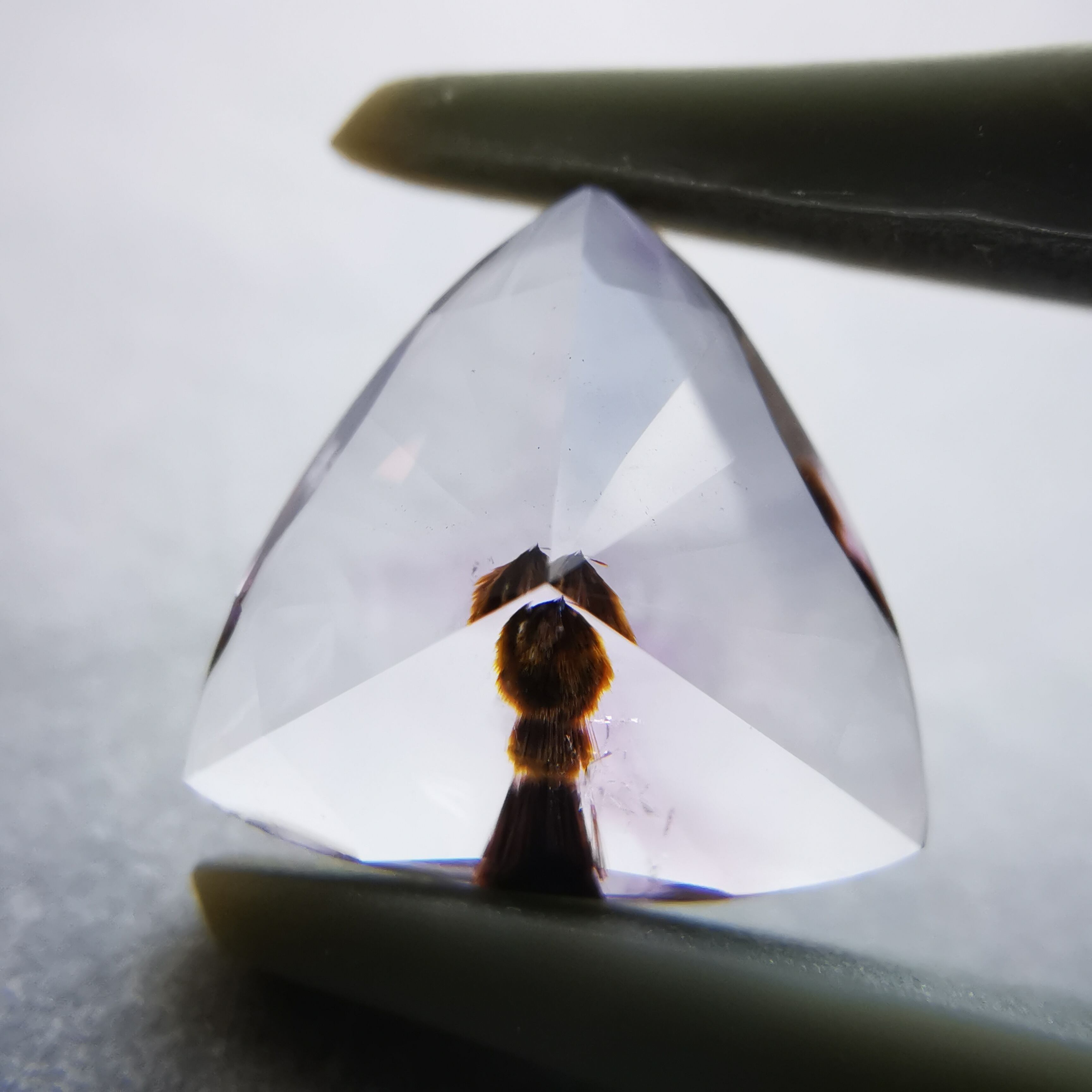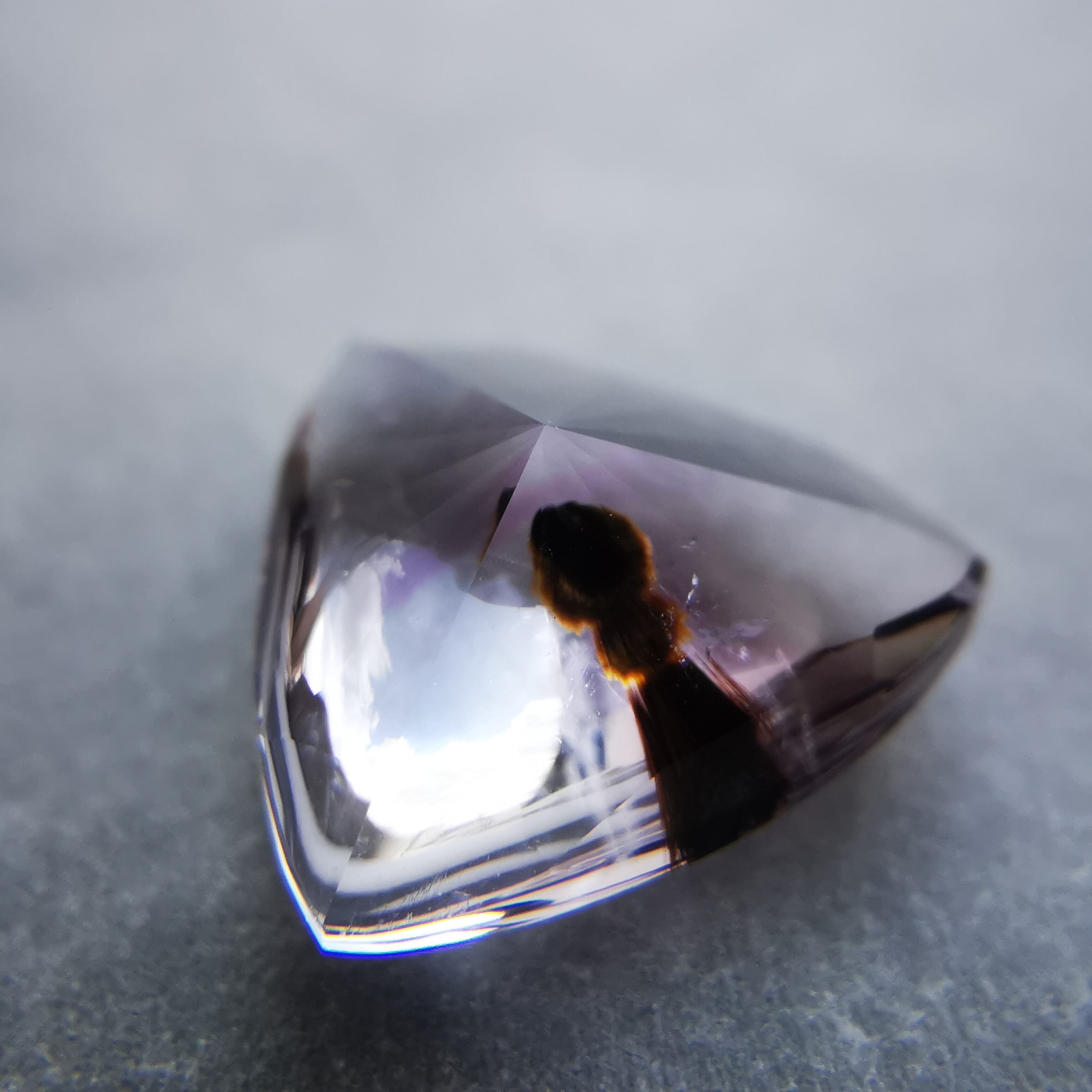 淡くやわらかい紫/ライラック色のアメジストに、ゲーサイトが入っています。