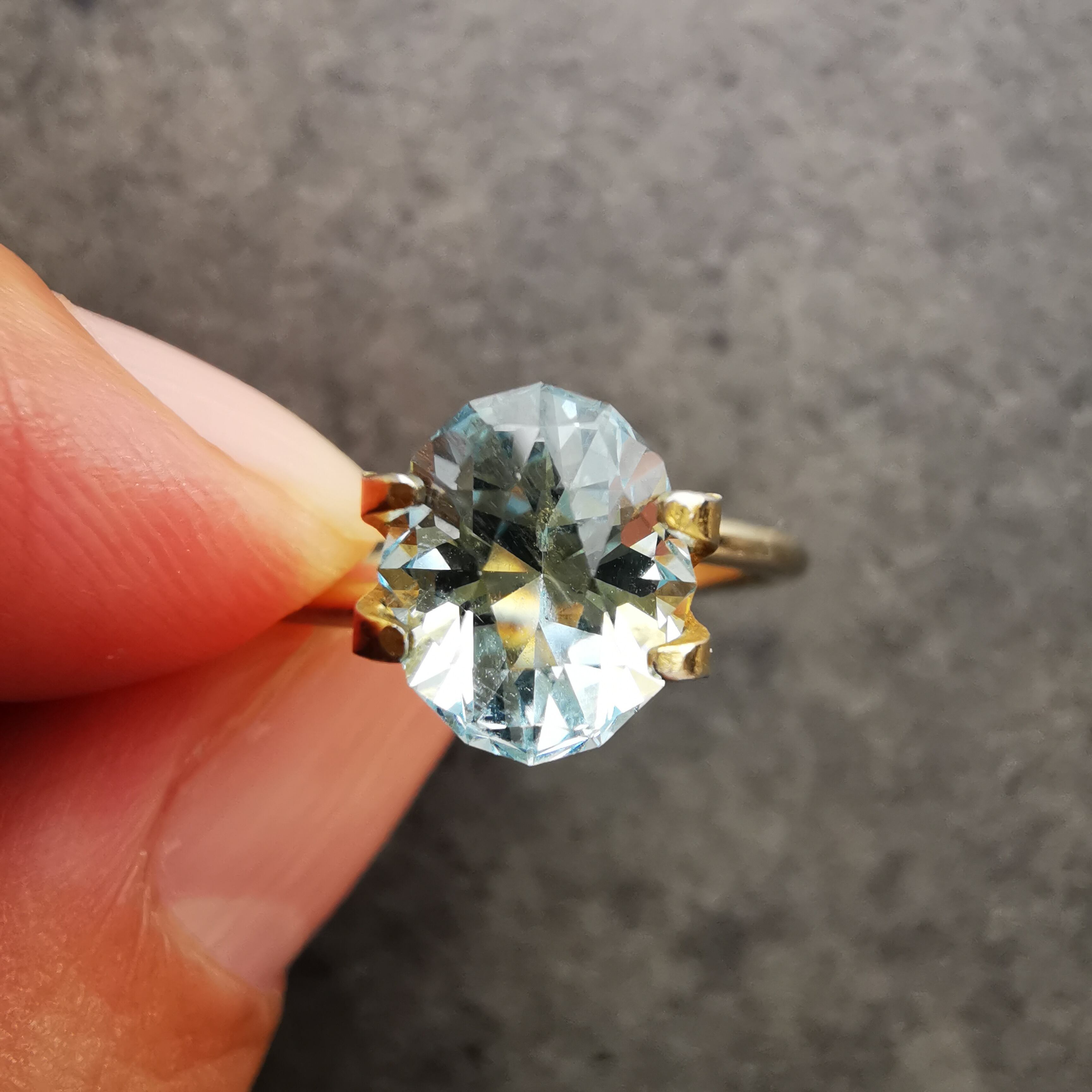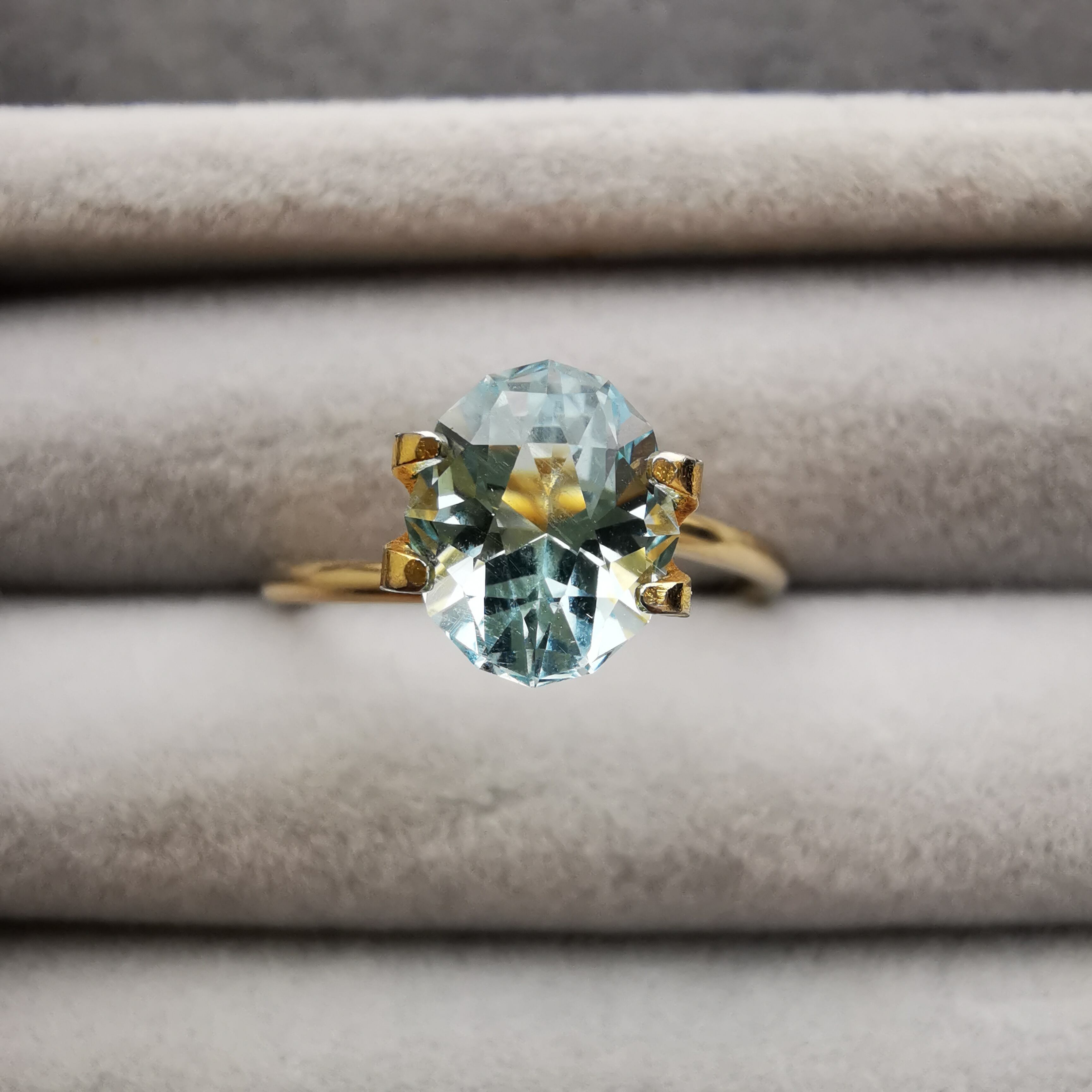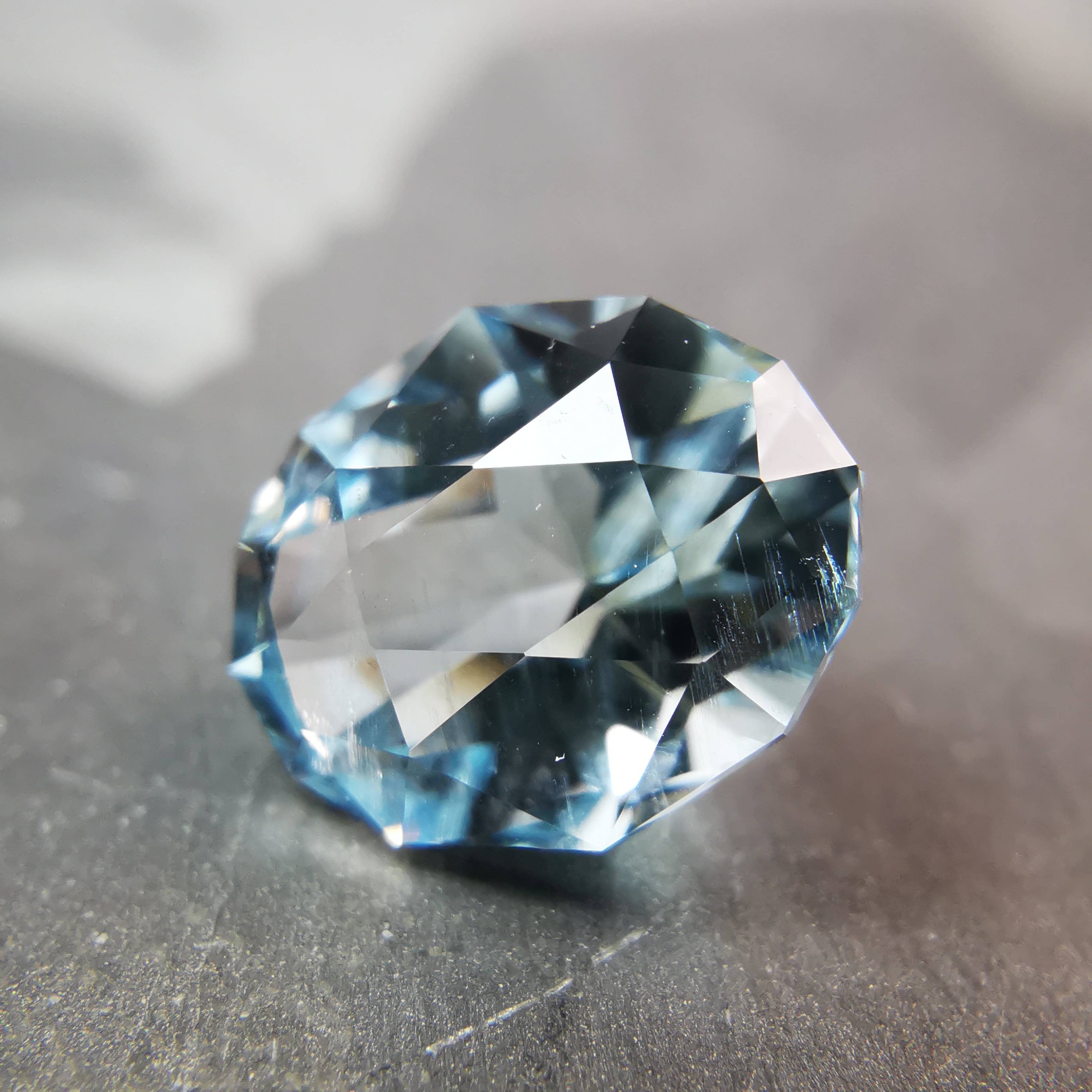 アクアマリンらしい水滴のようなカラーが瑞々しく、涼を感じる一石です。