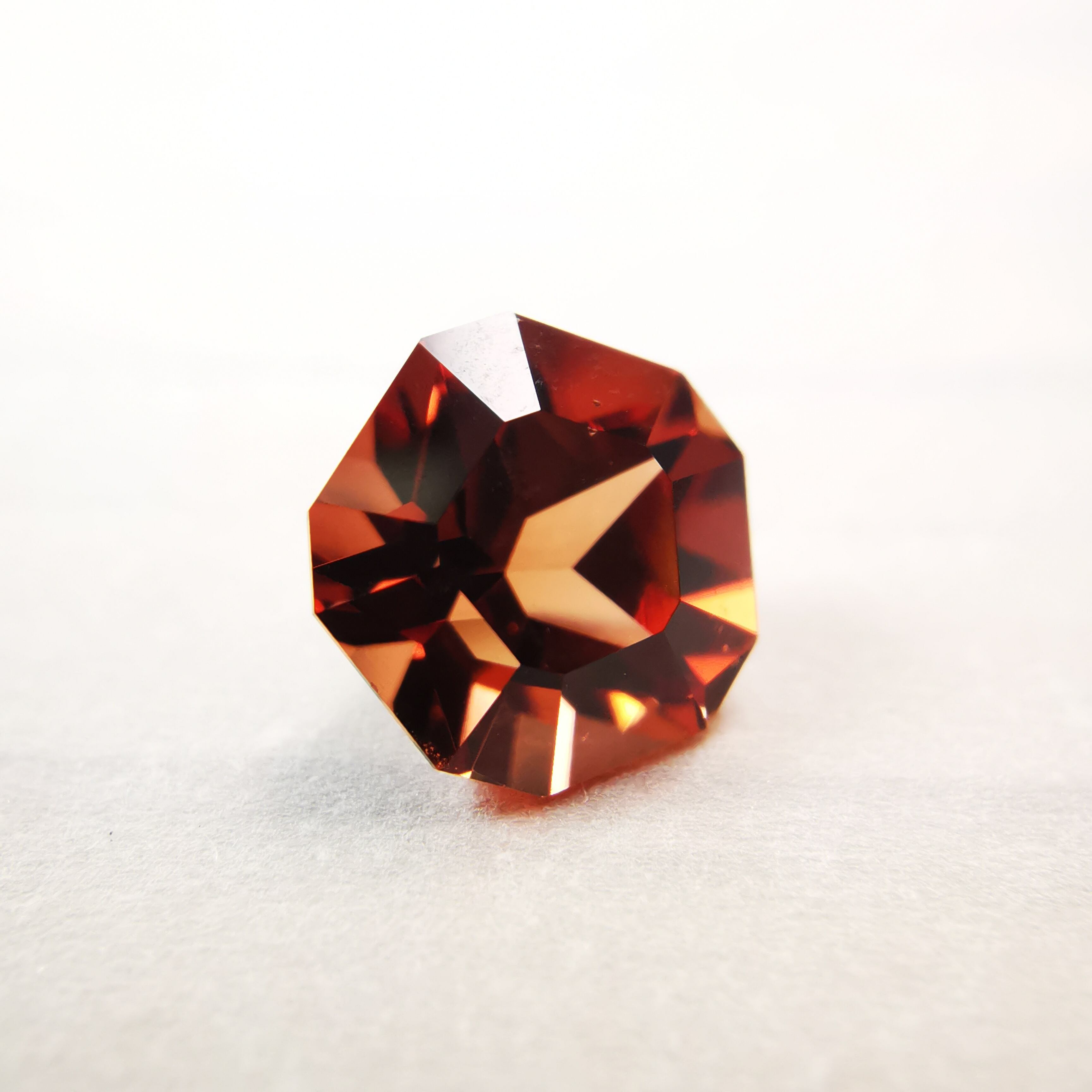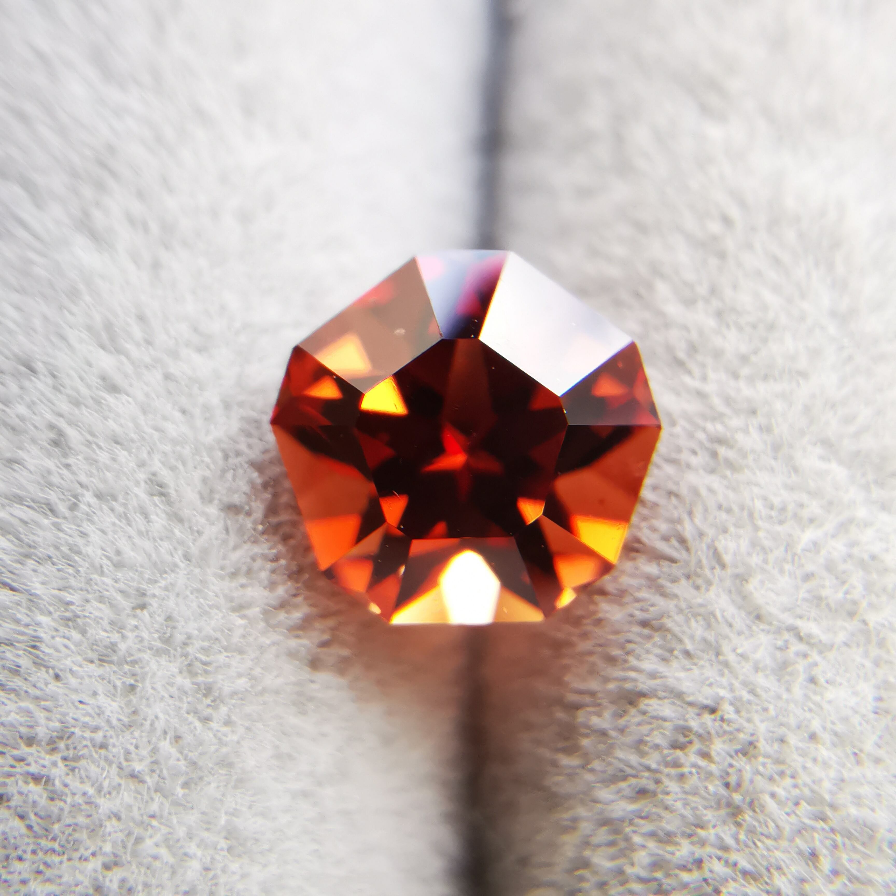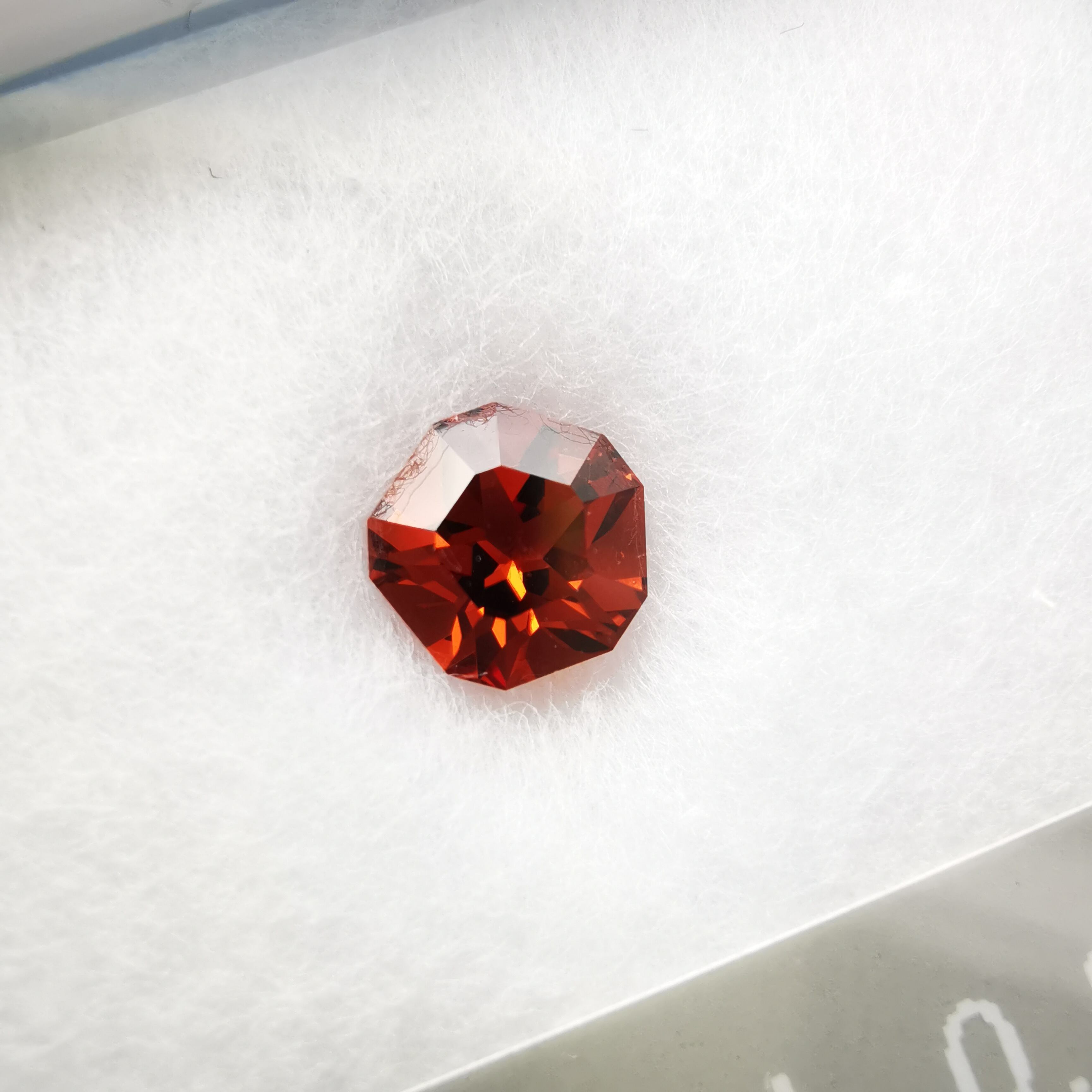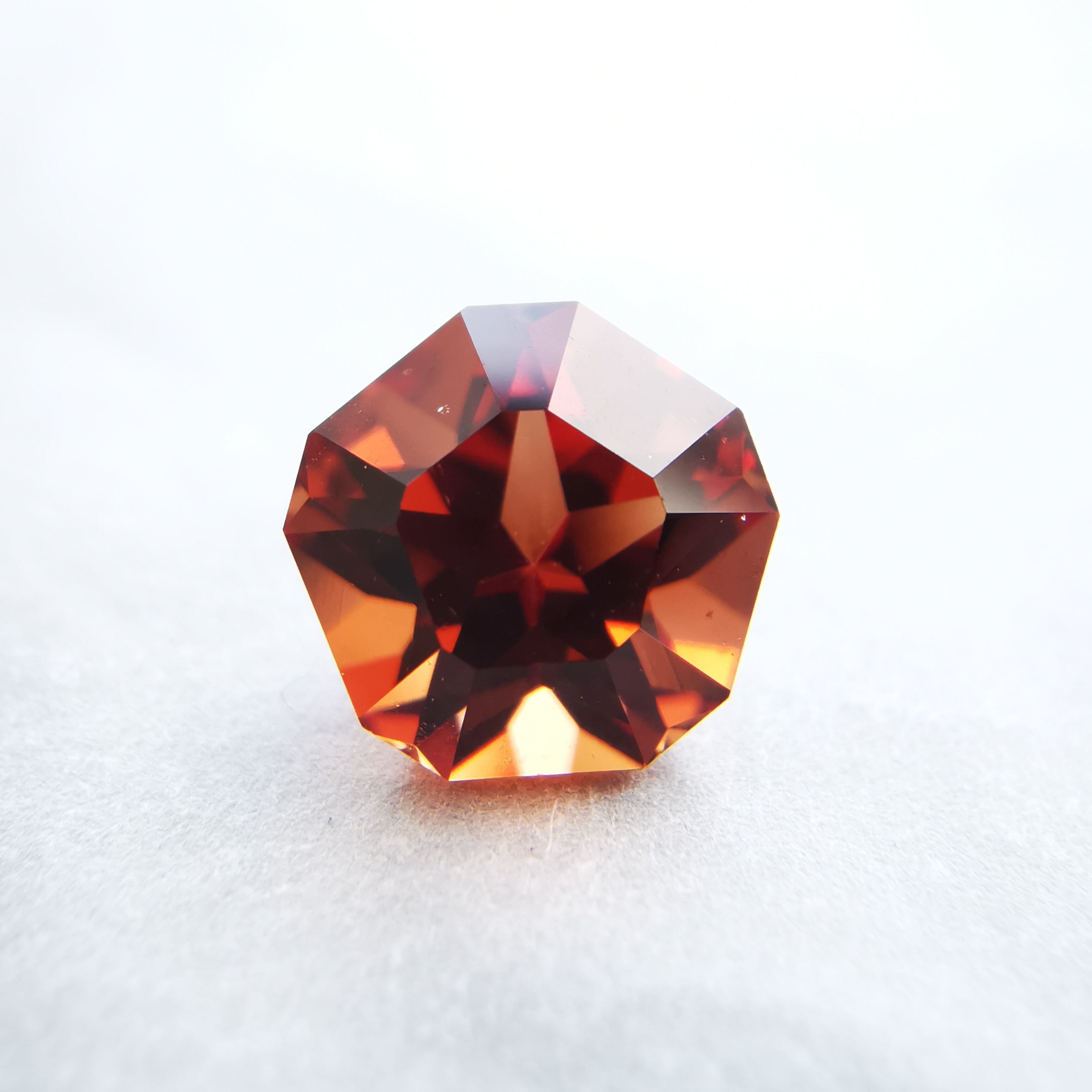 成分分析をしていないのでガーネットの中の詳しい種類が確定できないのですが、同ロットの原石からカットしたものは、スペサルティン(マンダリン)やパイロープスペサルティン(マラヤ)の鑑別が出ていますので、恐らくこちらも、その辺の分類になるかと思います。