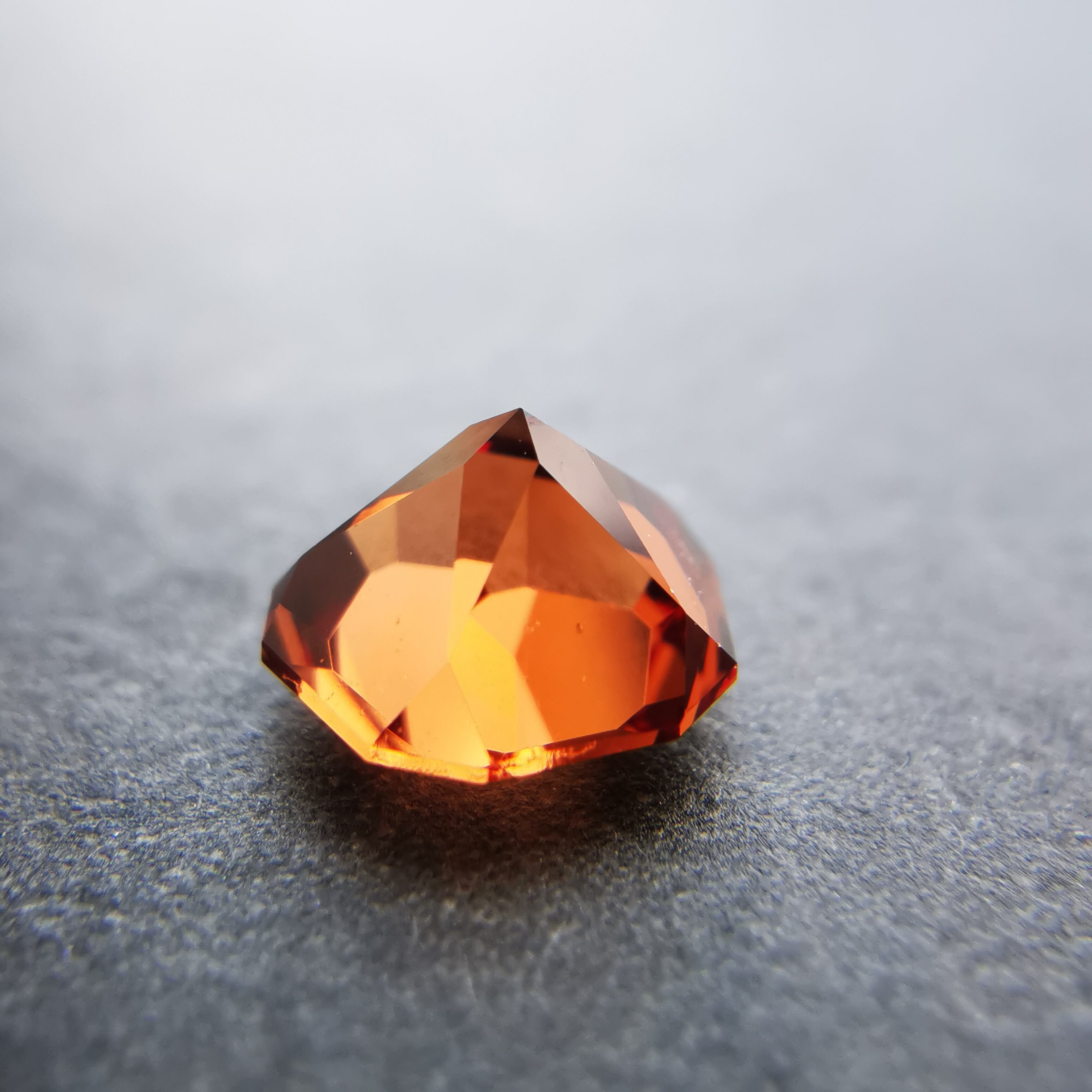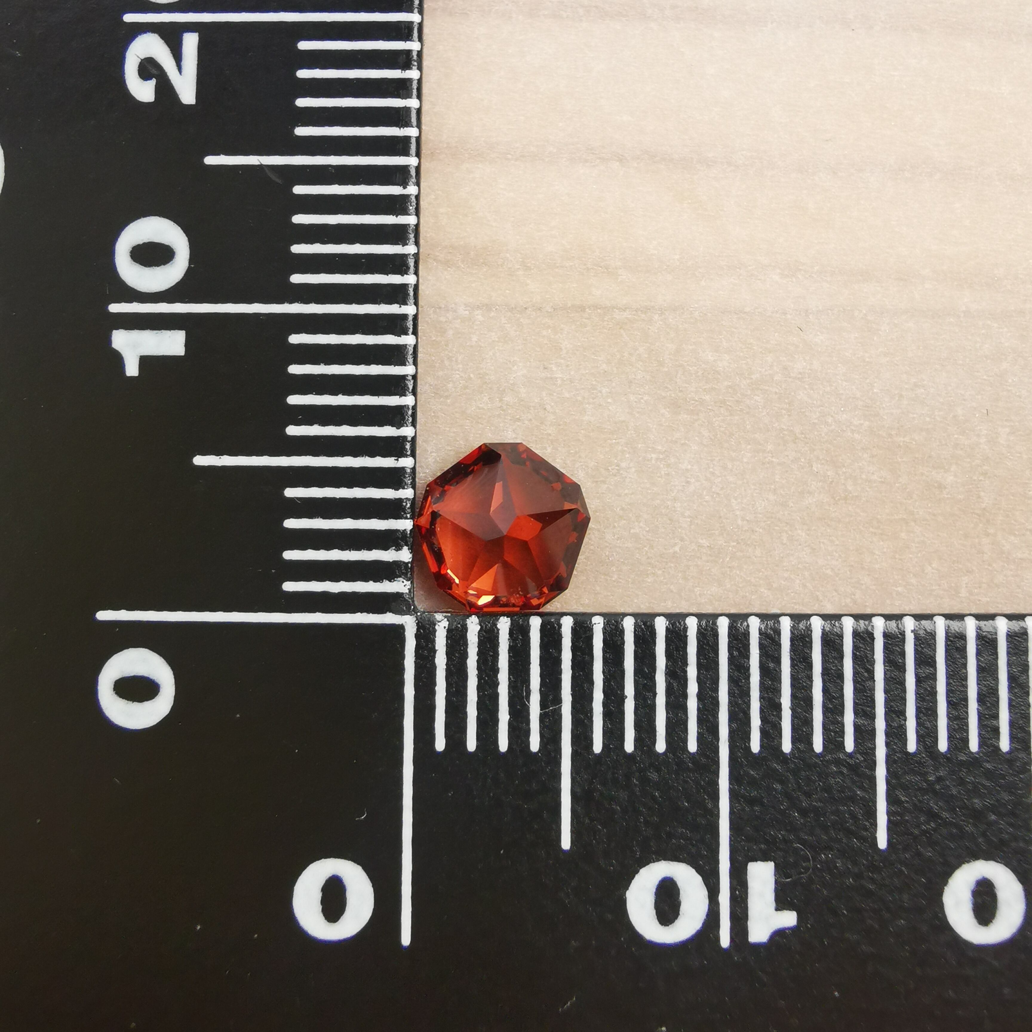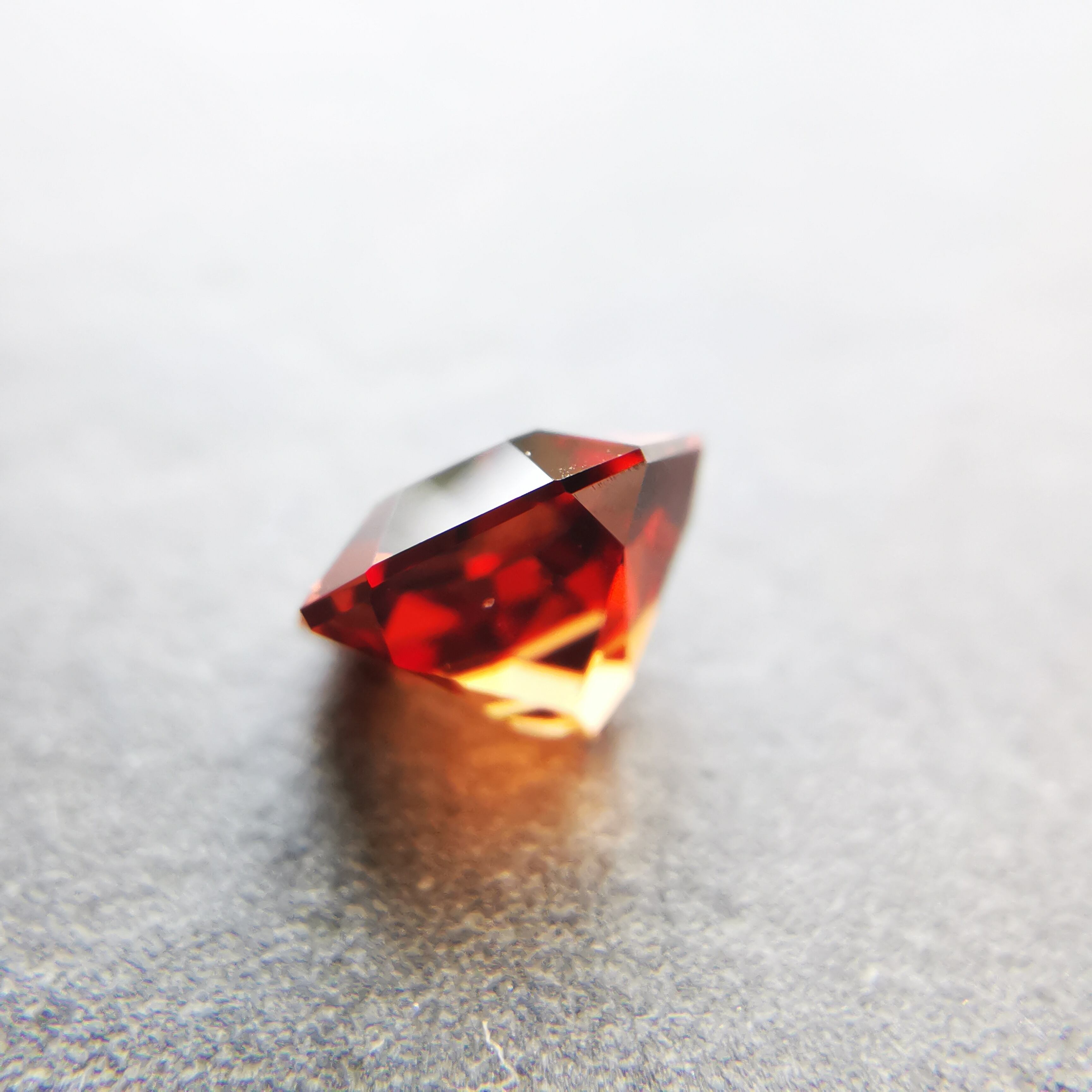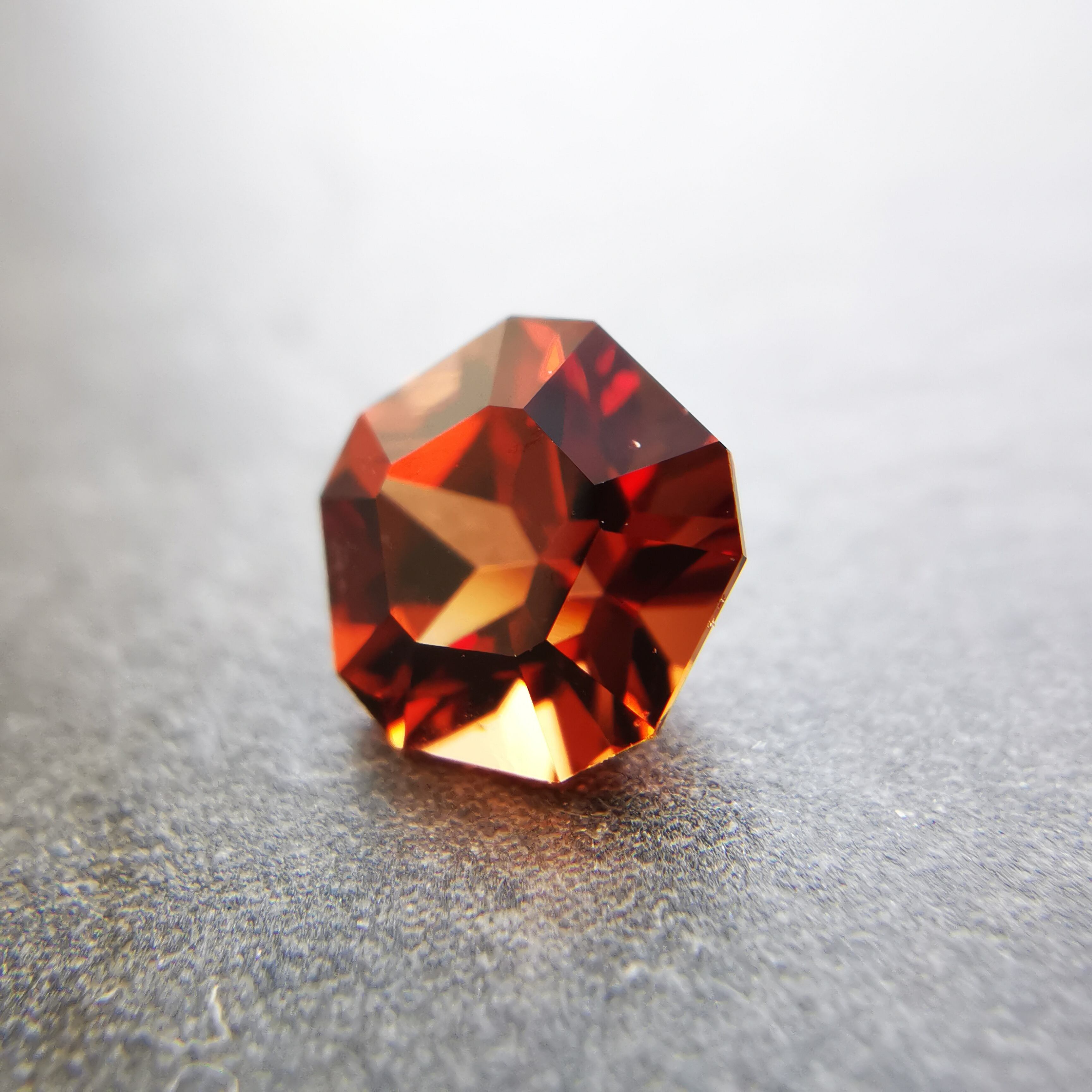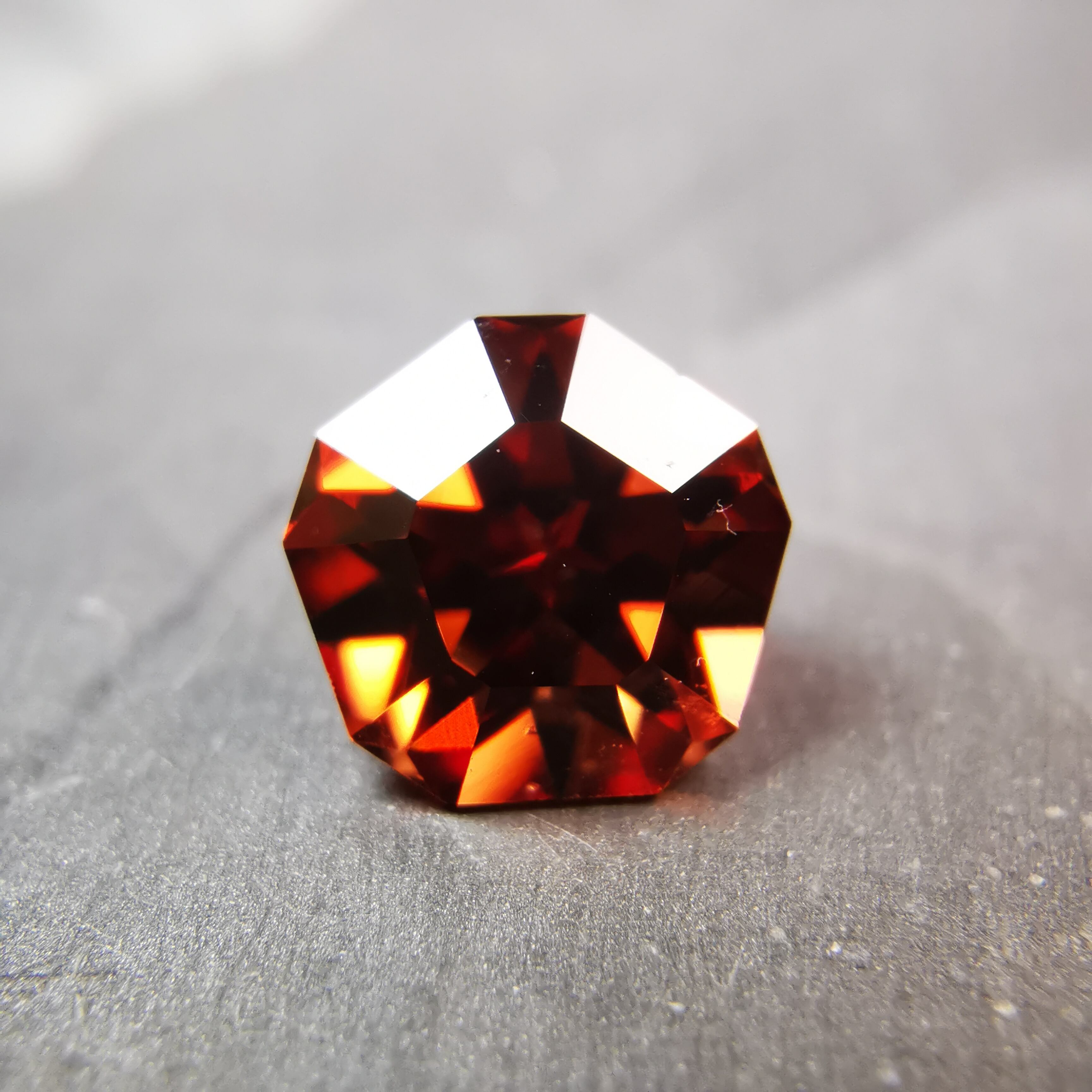 成分分析をしていないのでガーネットの中の詳しい種類が確定できないのですが、同ロットの原石からカットしたものは、スペサルティン(マンダリン)やパイロープスペサルティン(マラヤ)の鑑別が出ていますので、恐らくこちらも、その辺の分類になるかと思います。
