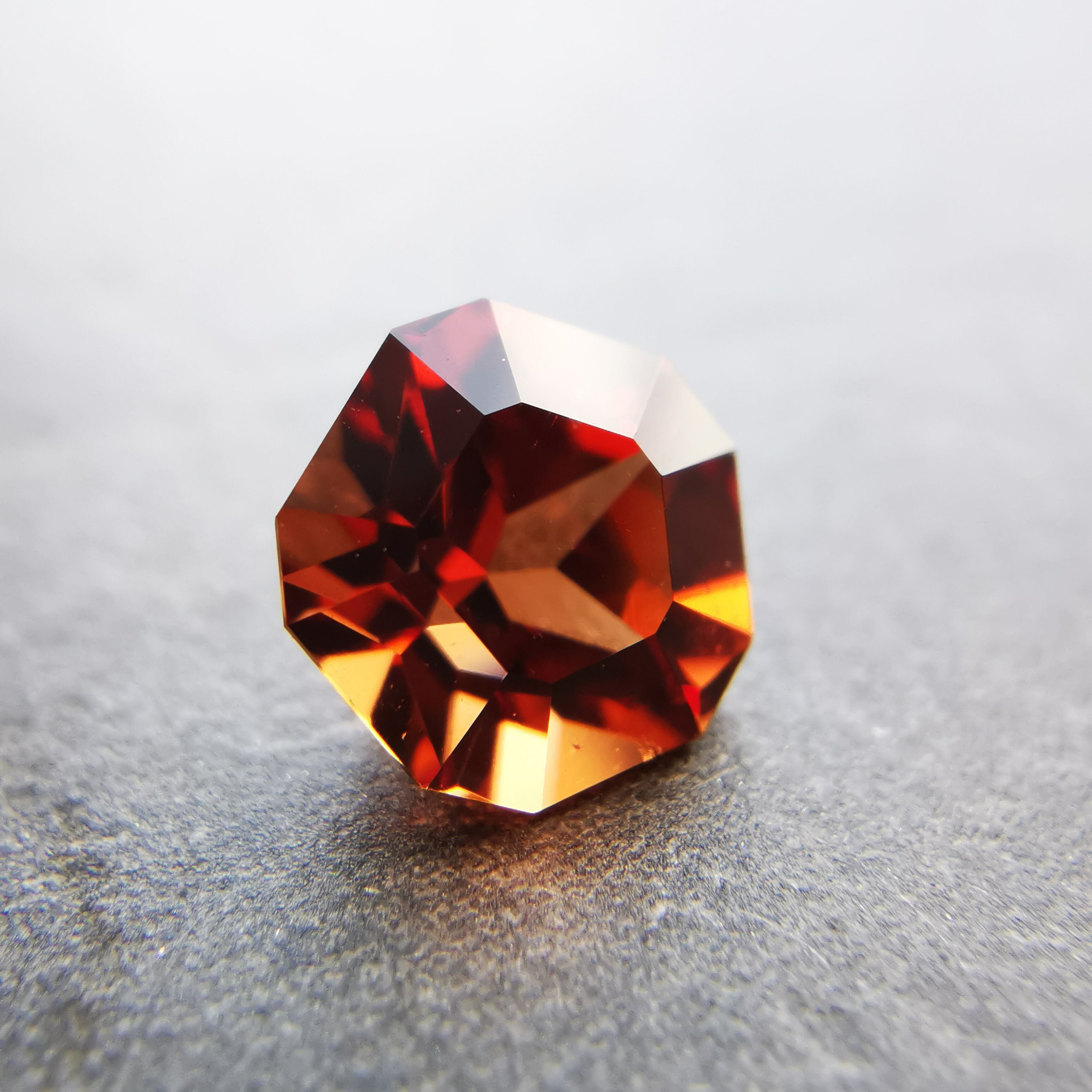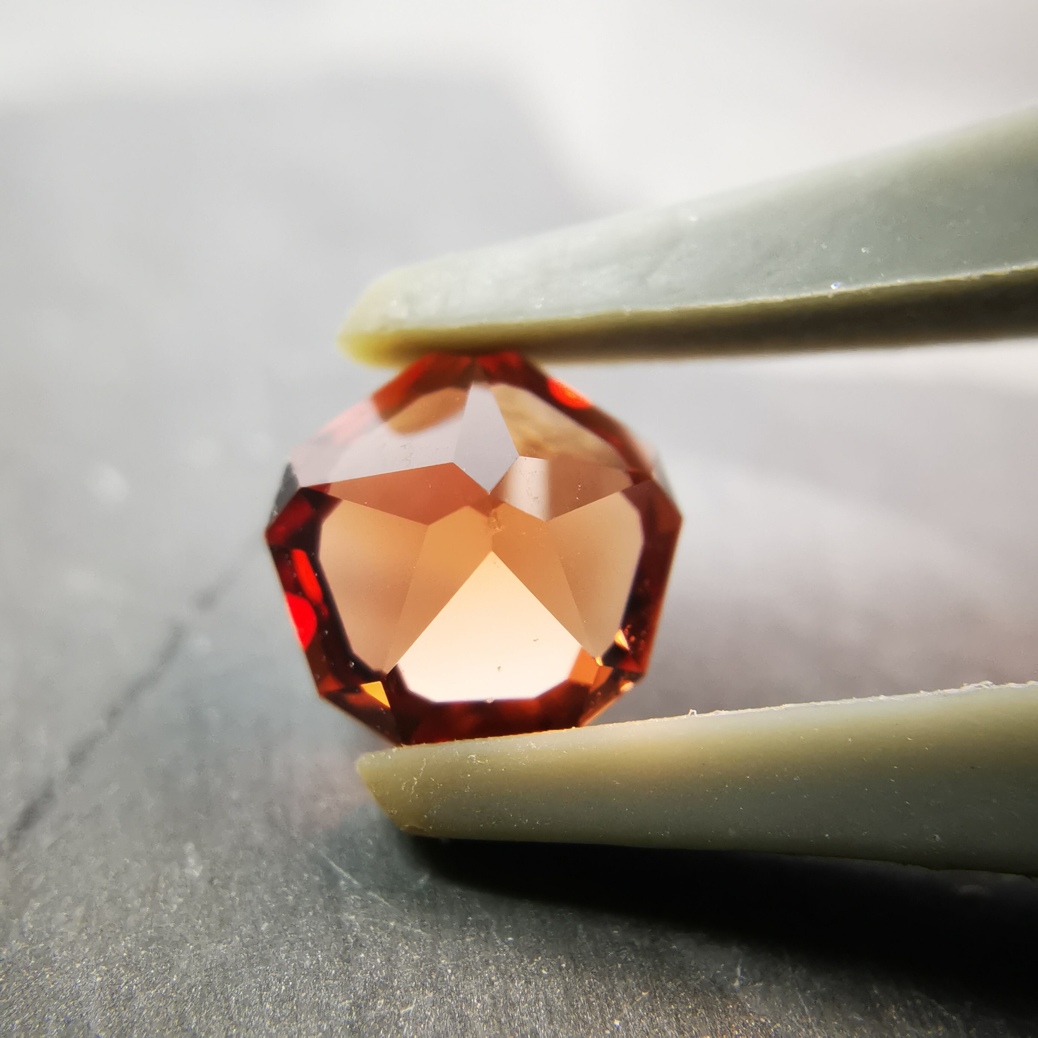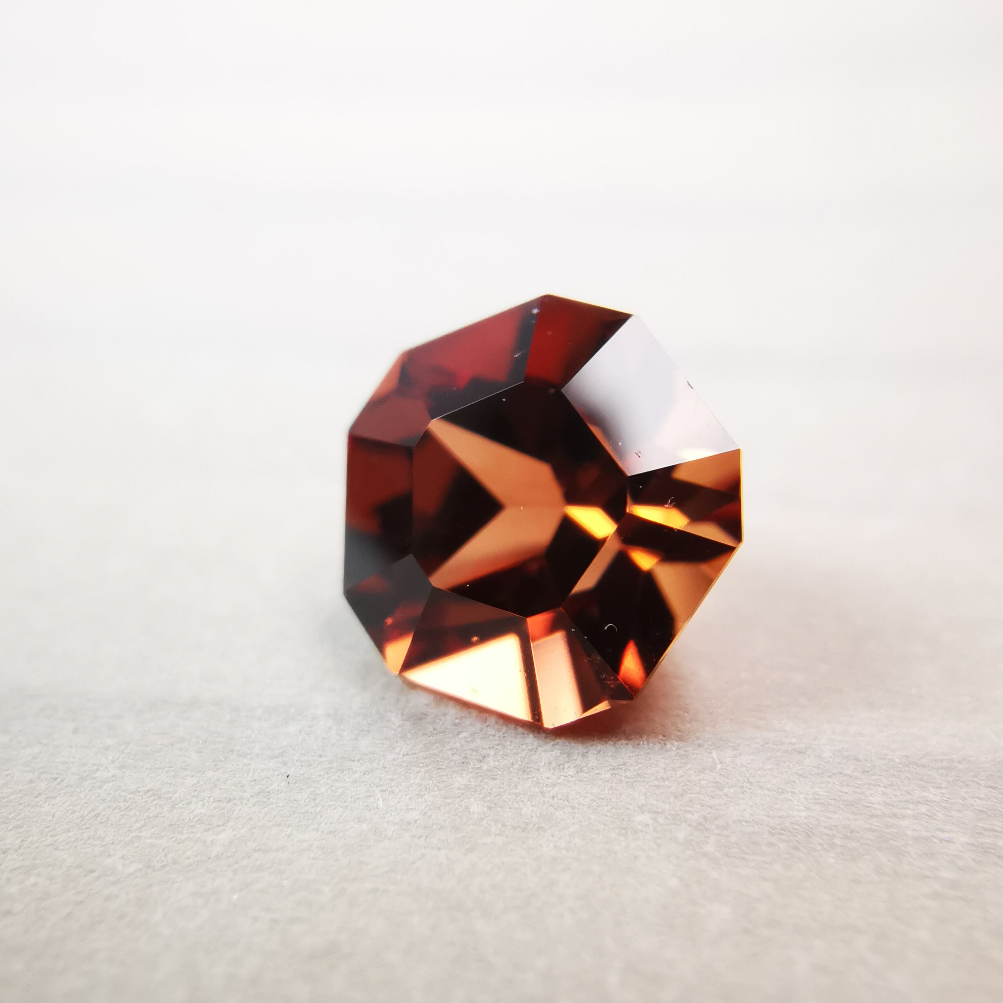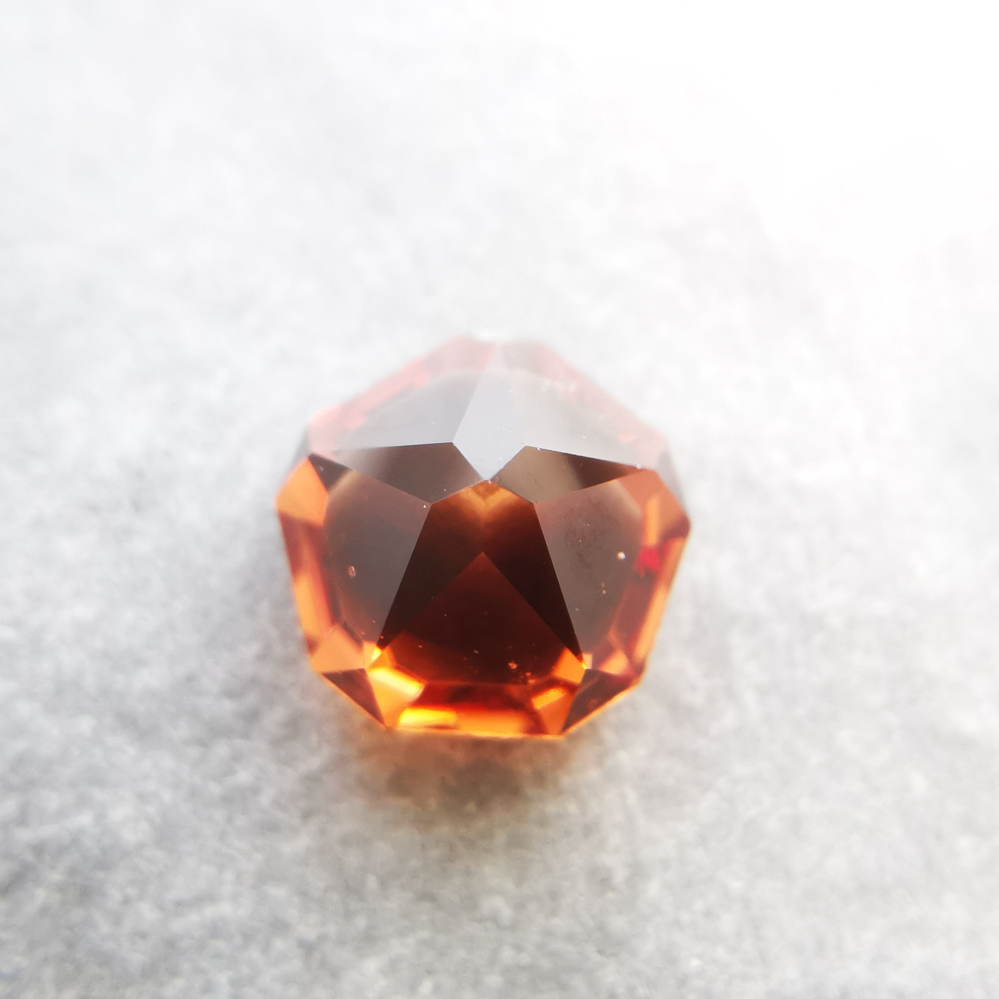 成分分析をしていないのでガーネットの中の詳しい種類が確定できないのですが、同ロットの原石からカットしたものは、スペサルティン(マンダリン)やパイロープスペサルティン(マラヤ)の鑑別が出ていますので、恐らくこちらも、その辺の分類になるかと思います。