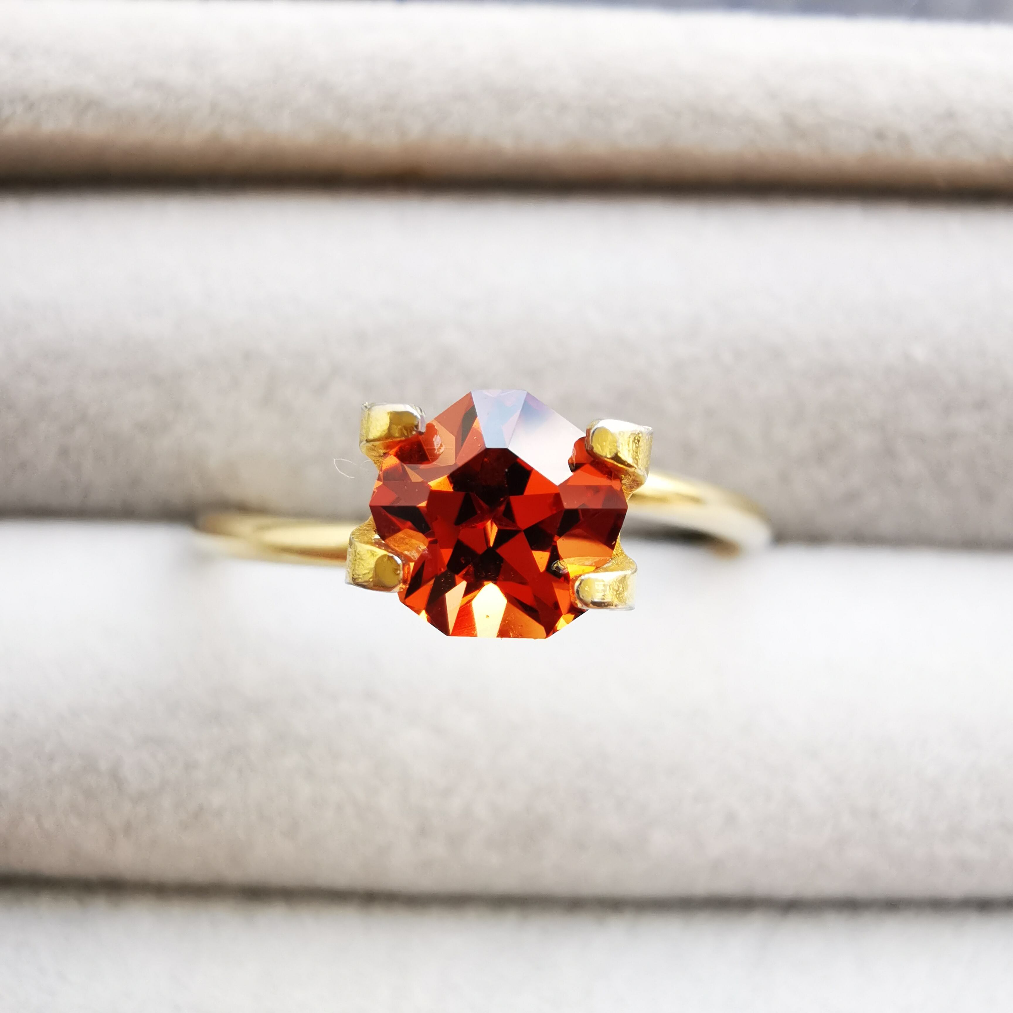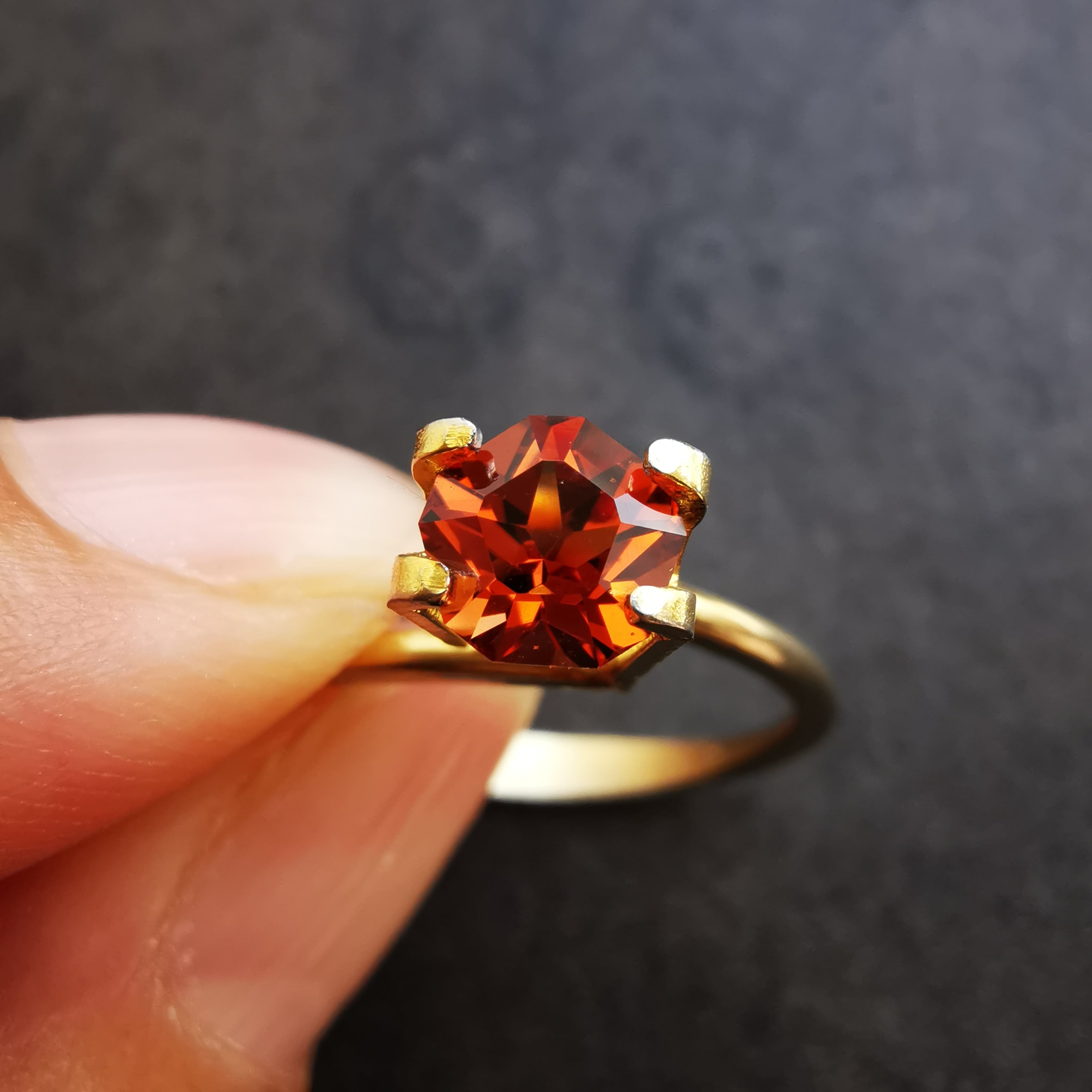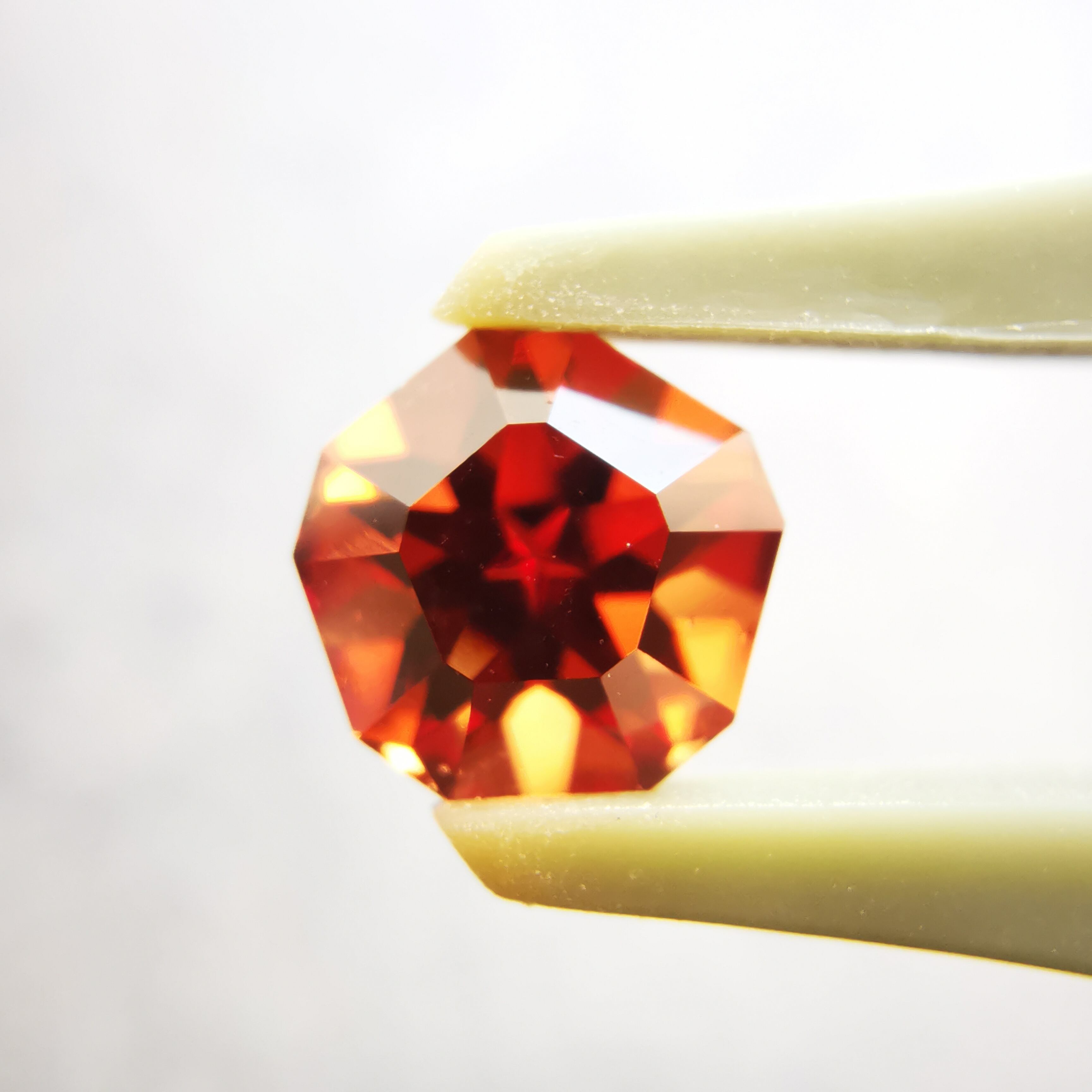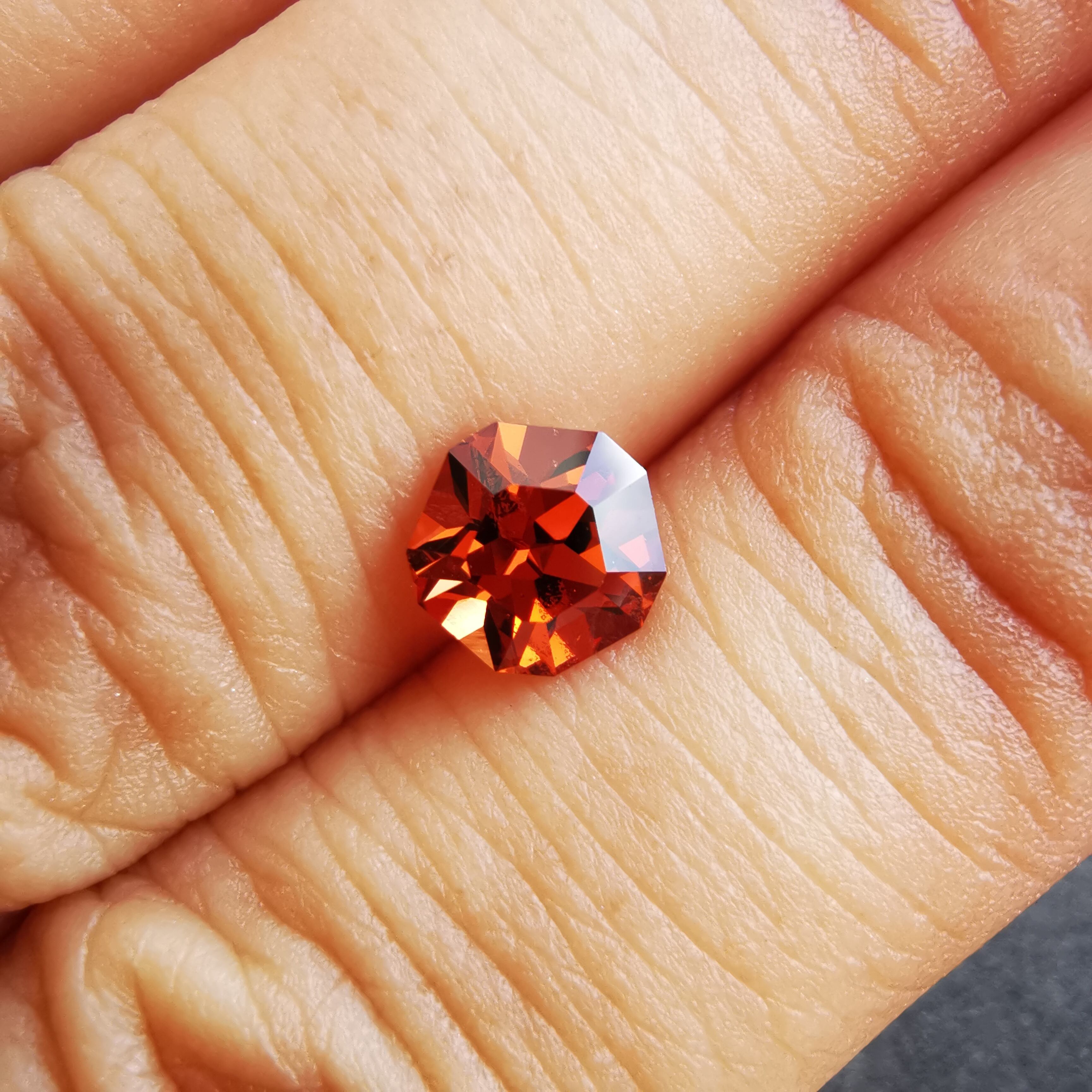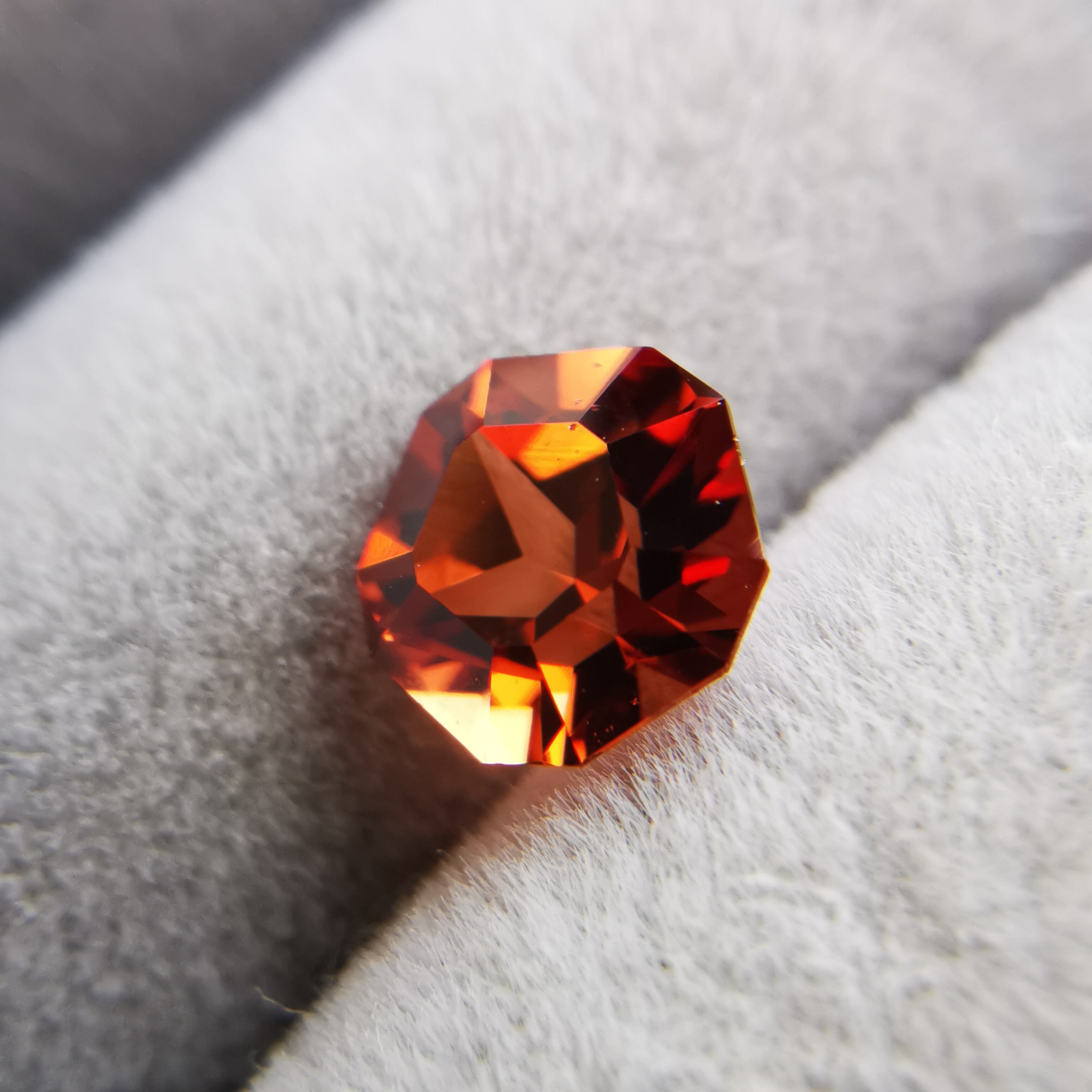 成分分析をしていないのでガーネットの中の詳しい種類が確定できないのですが、同ロットの原石からカットしたものは、スペサルティン(マンダリン)やパイロープスペサルティン(マラヤ)の鑑別が出ていますので、恐らくこちらも、その辺の分類になるかと思います。