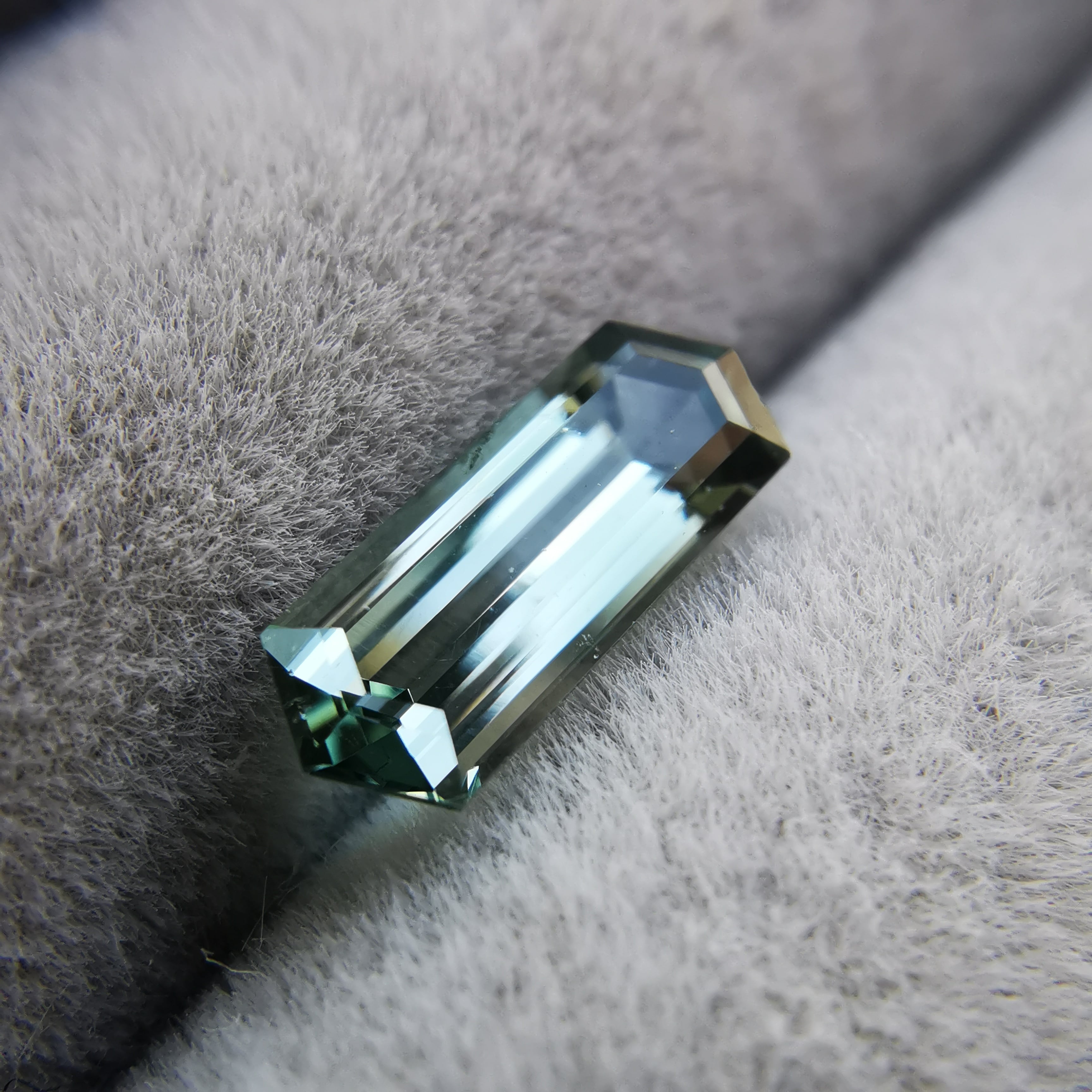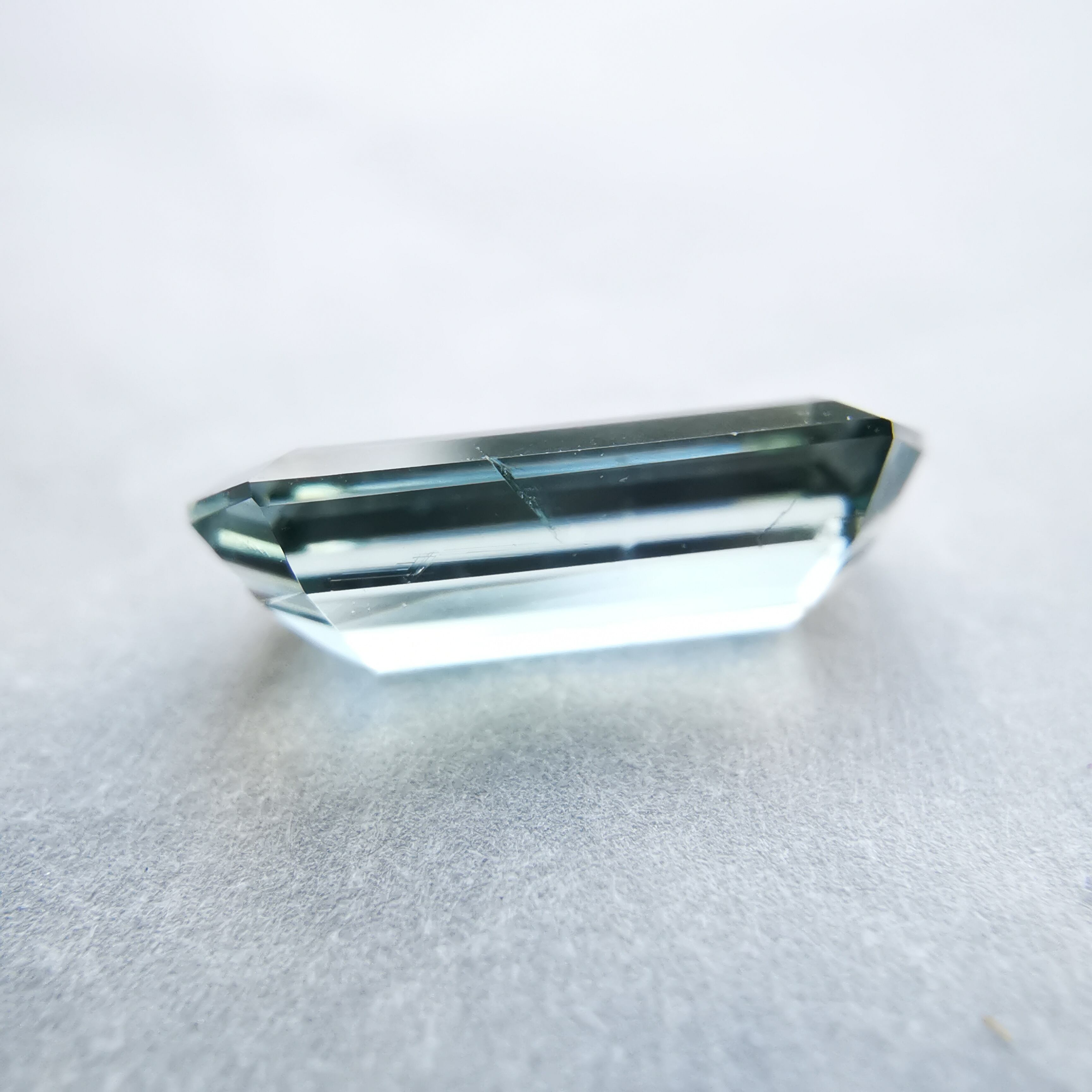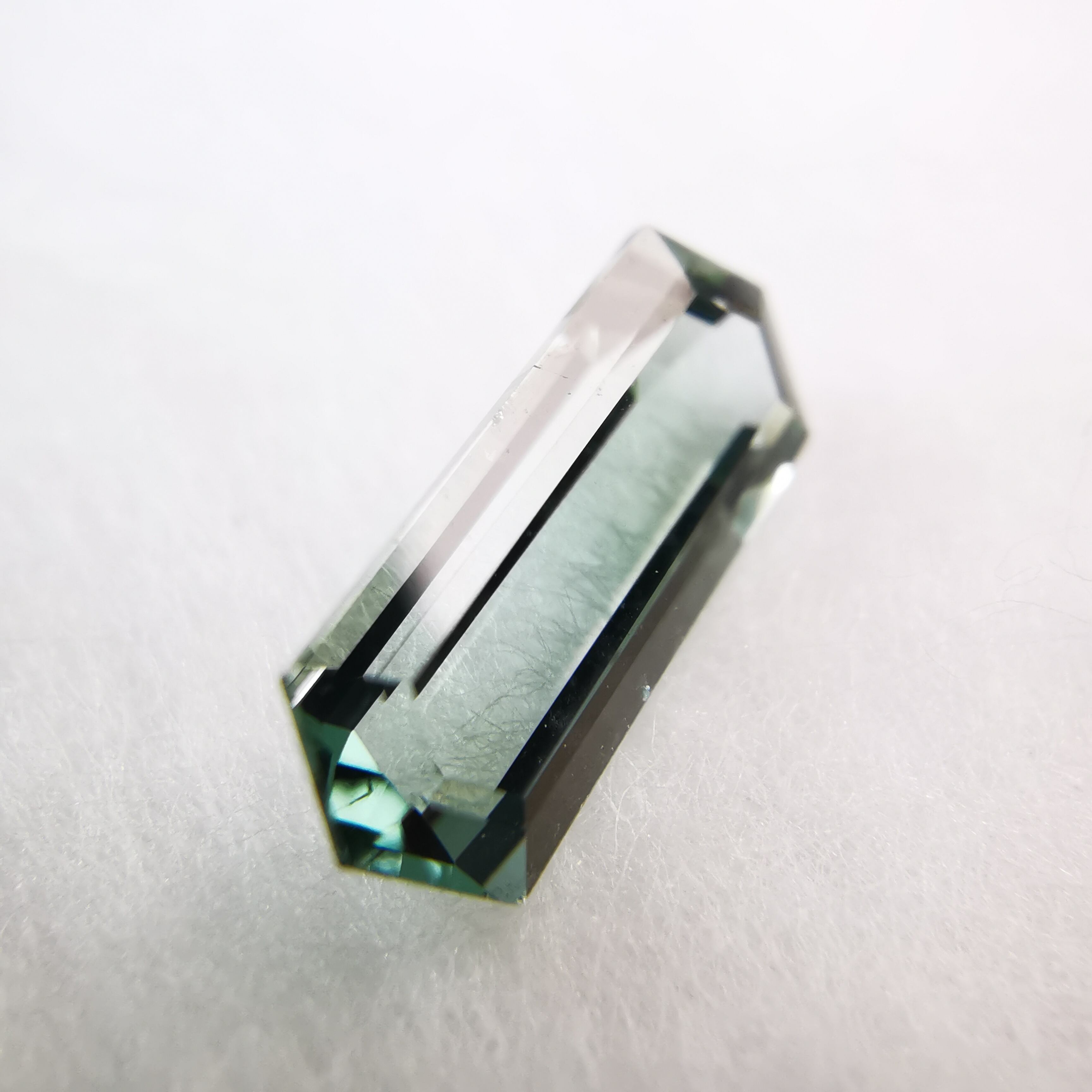 灰みの青緑/錆浅葱色をごくごく淡くしたカラーのトルマリンです。