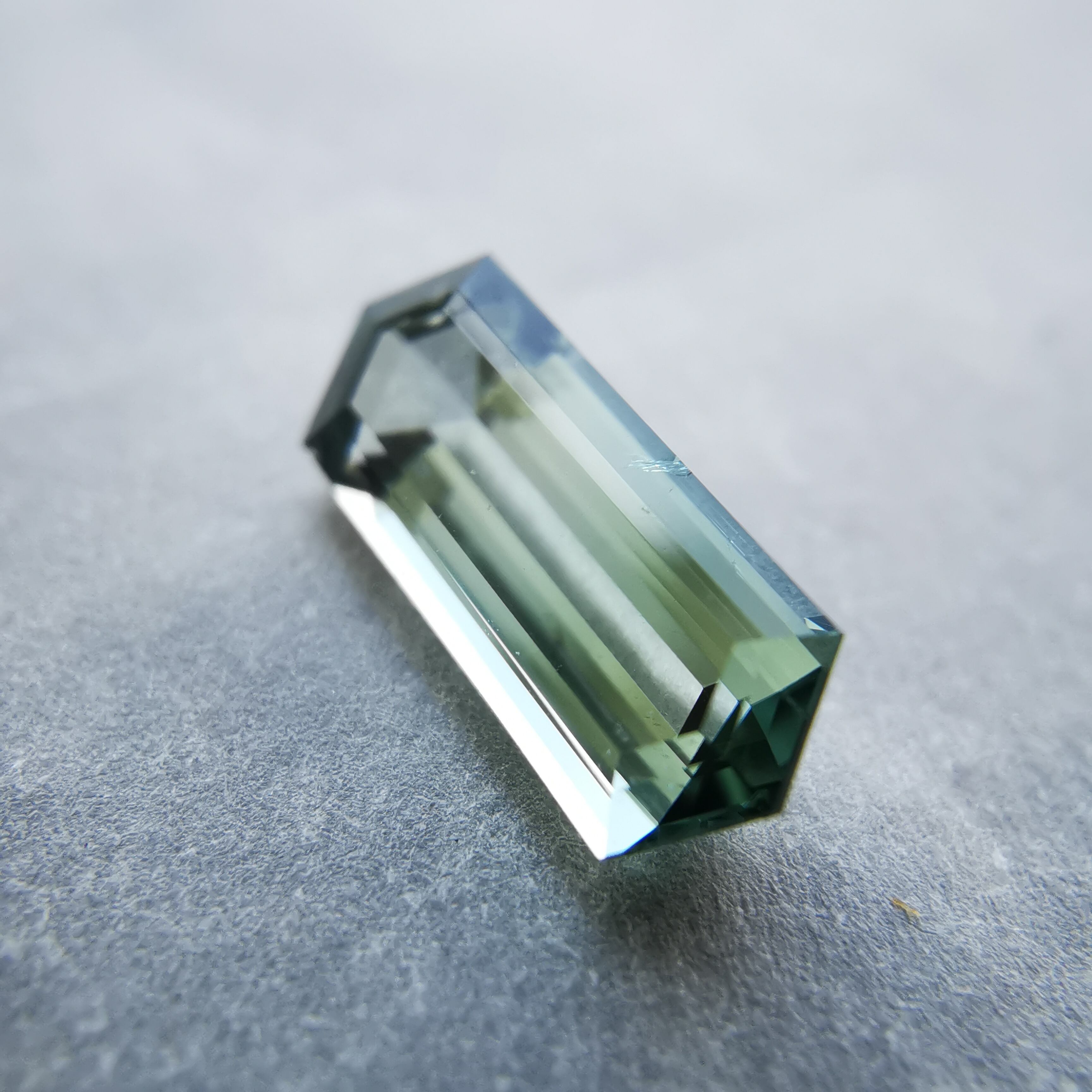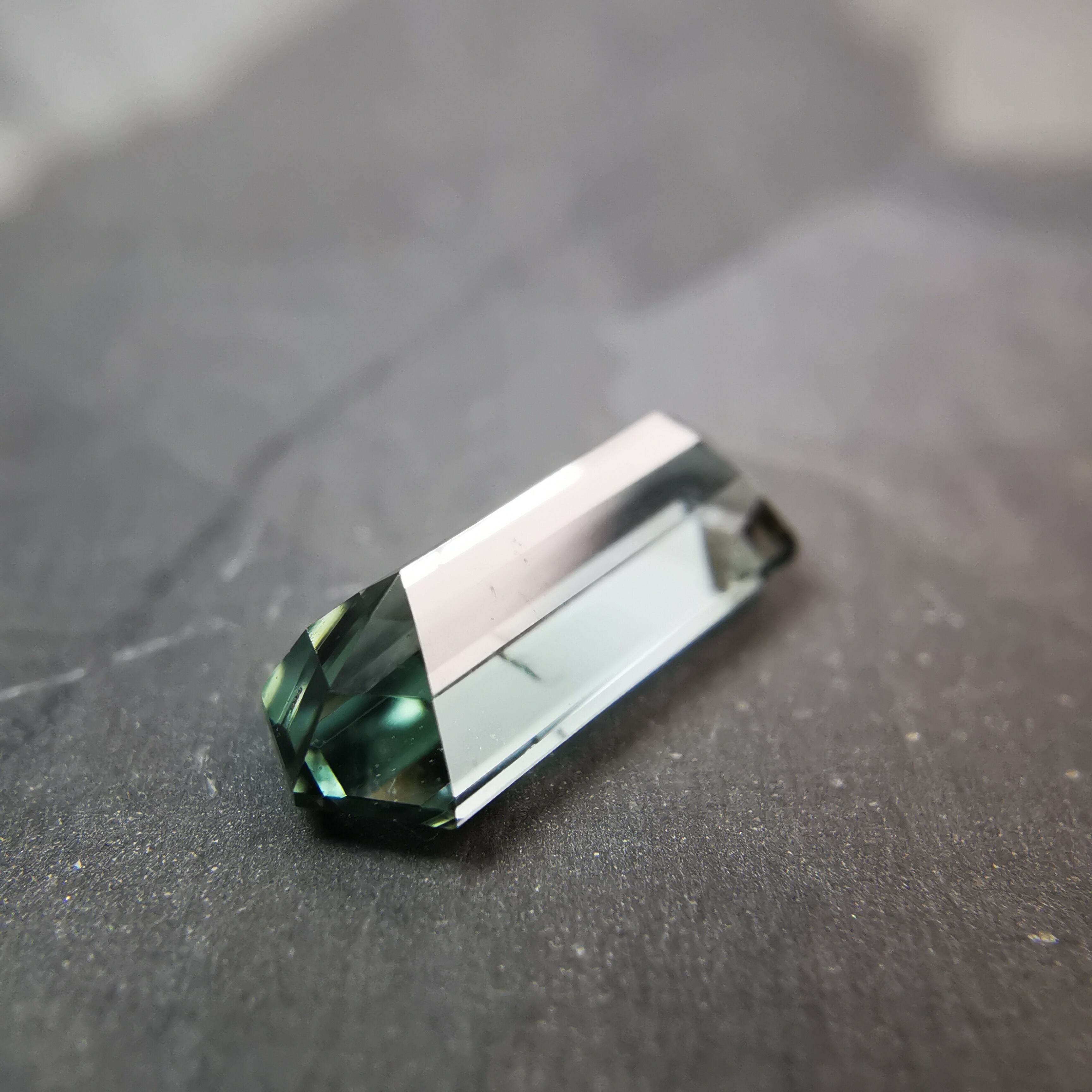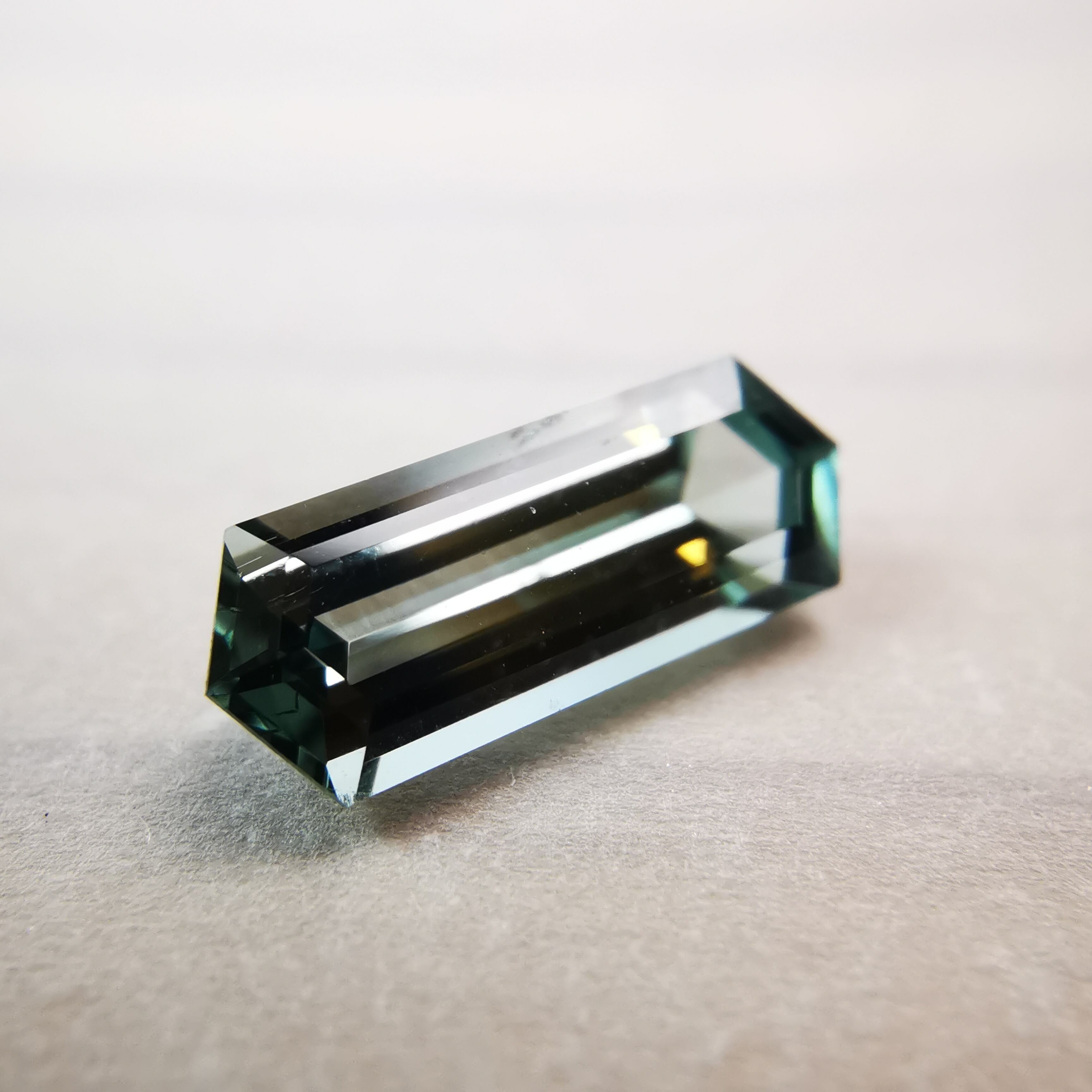 灰みの青緑/錆浅葱色をごくごく淡くしたカラーのトルマリンです。