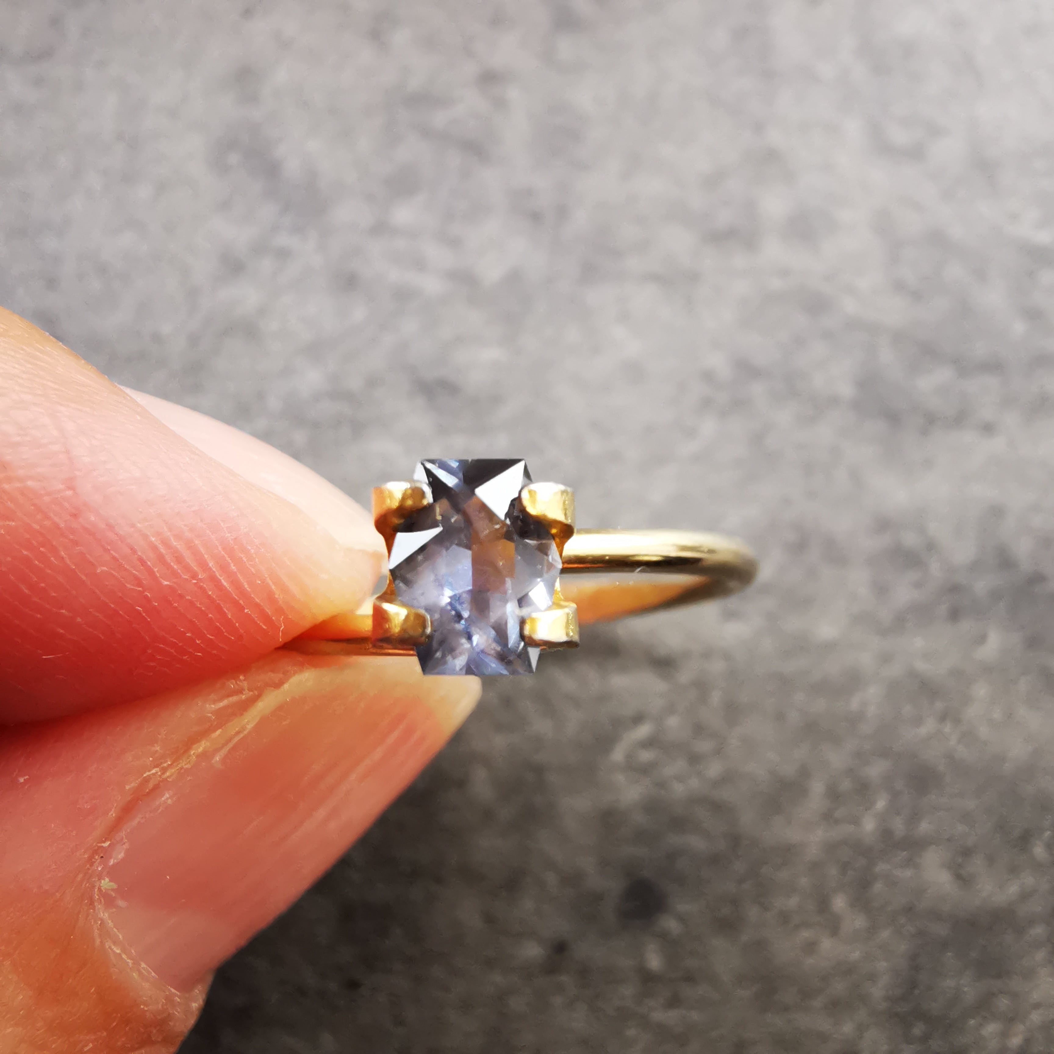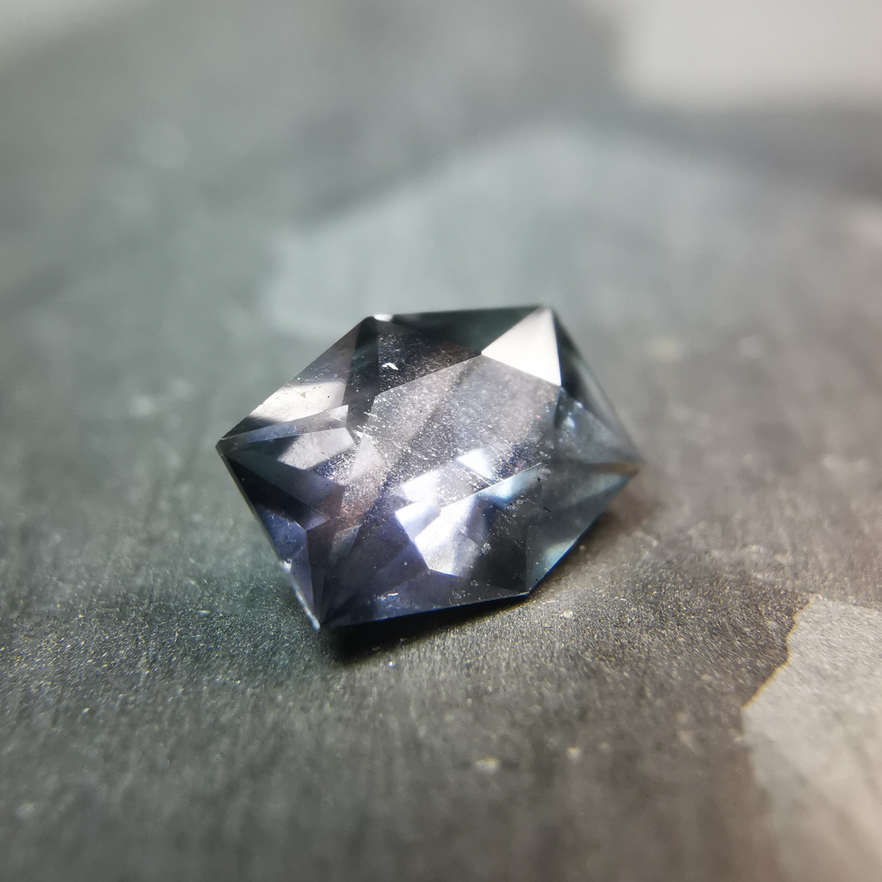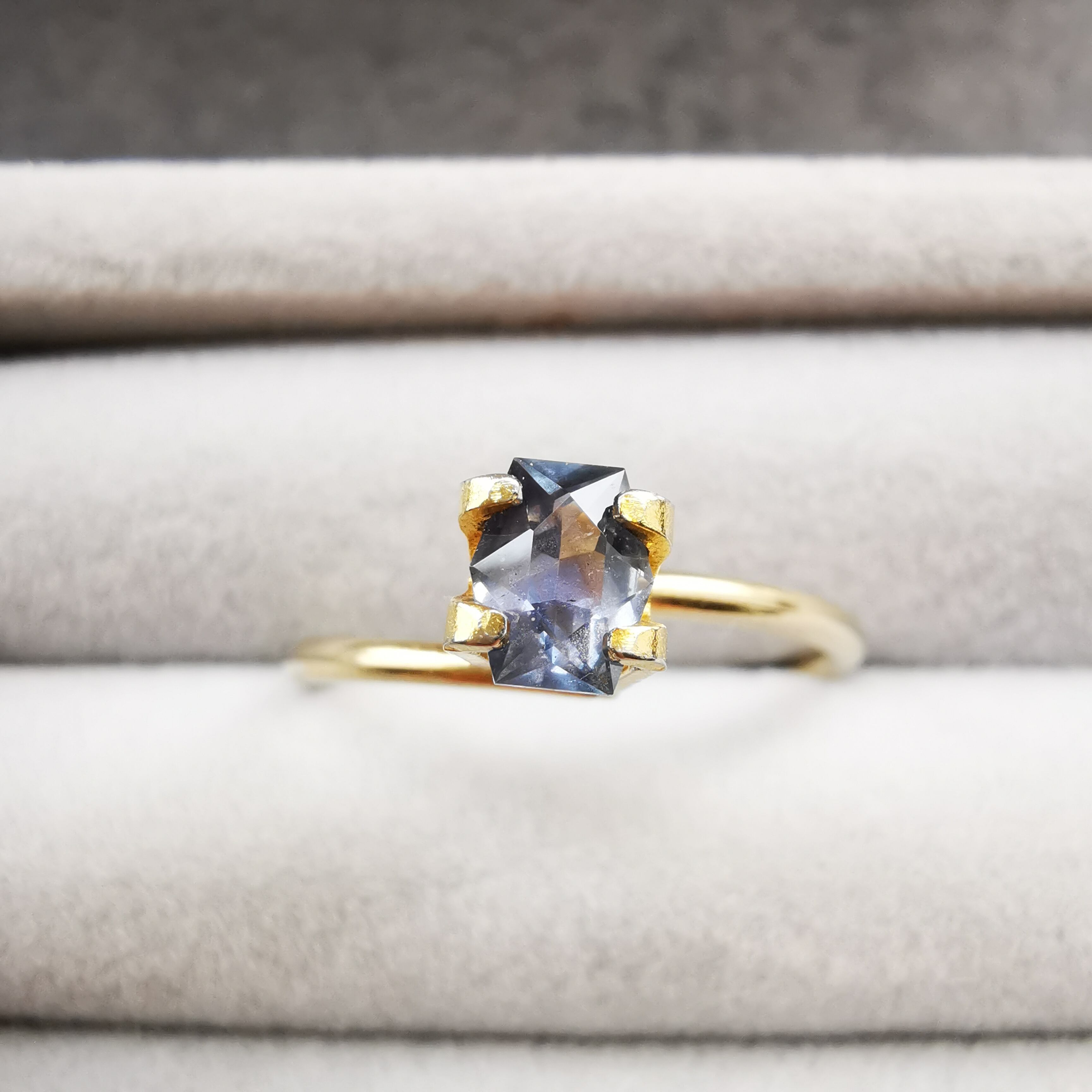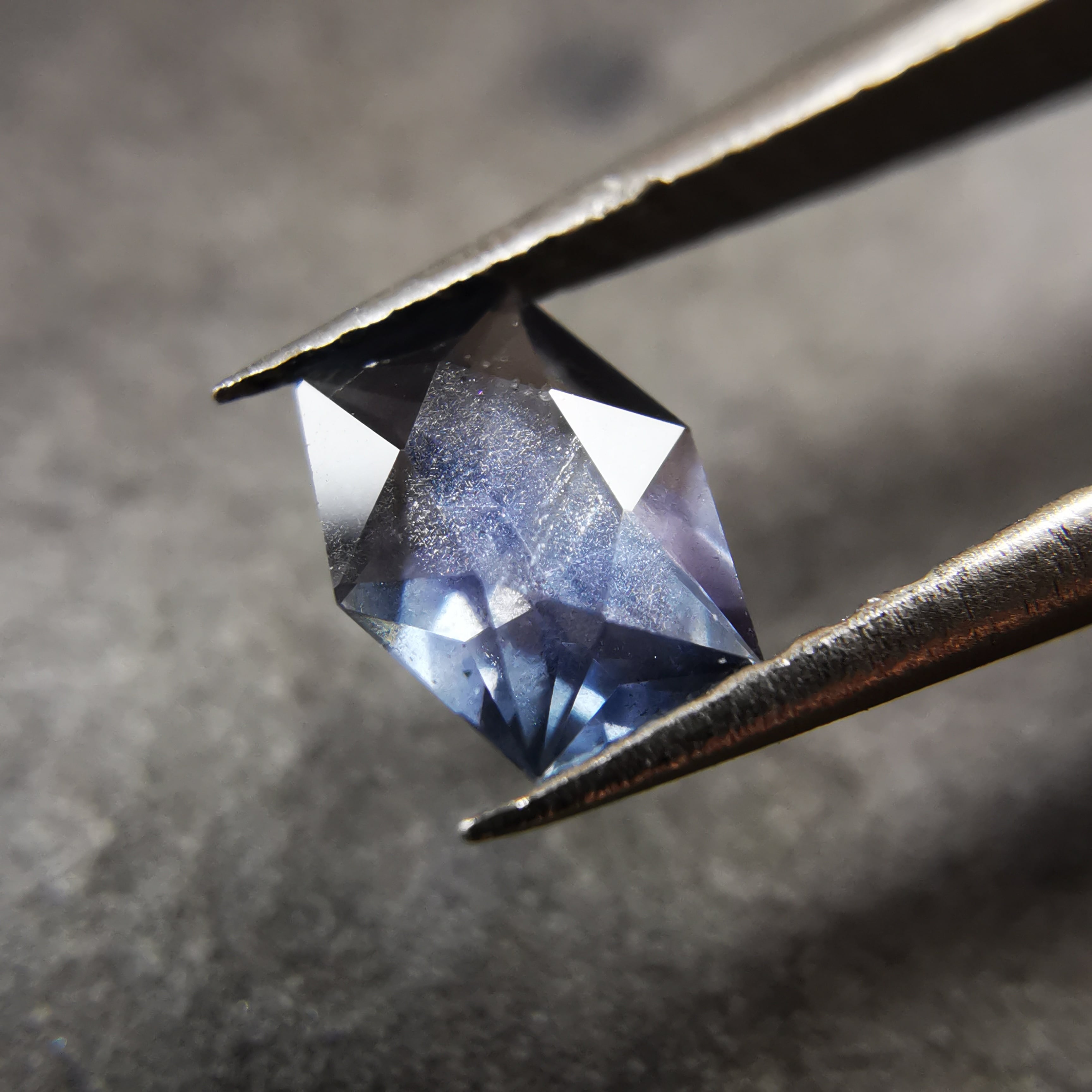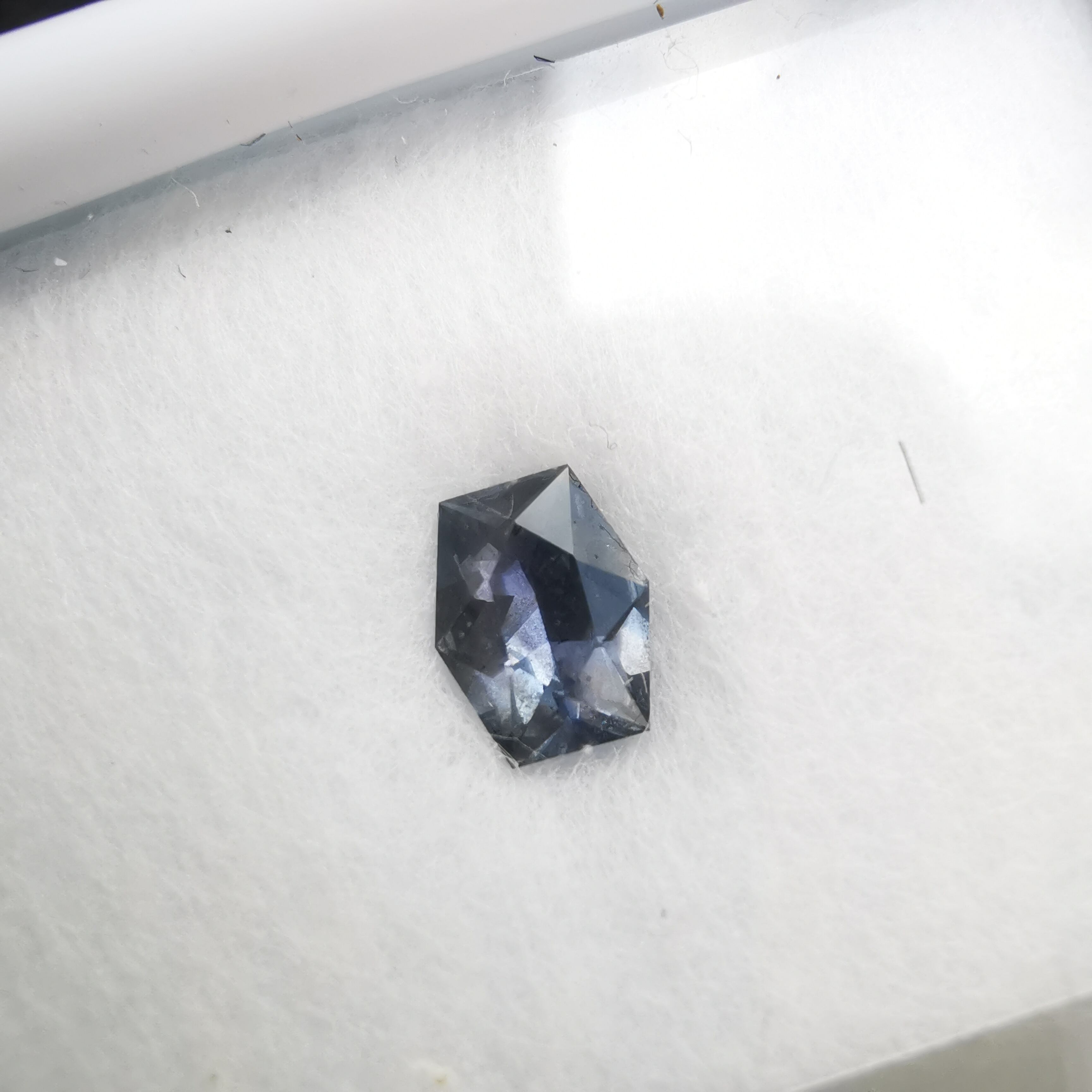 ほぼ黒に近いミッドナイトブルー、温かみの全く感じられない夜の色のサファイアです。