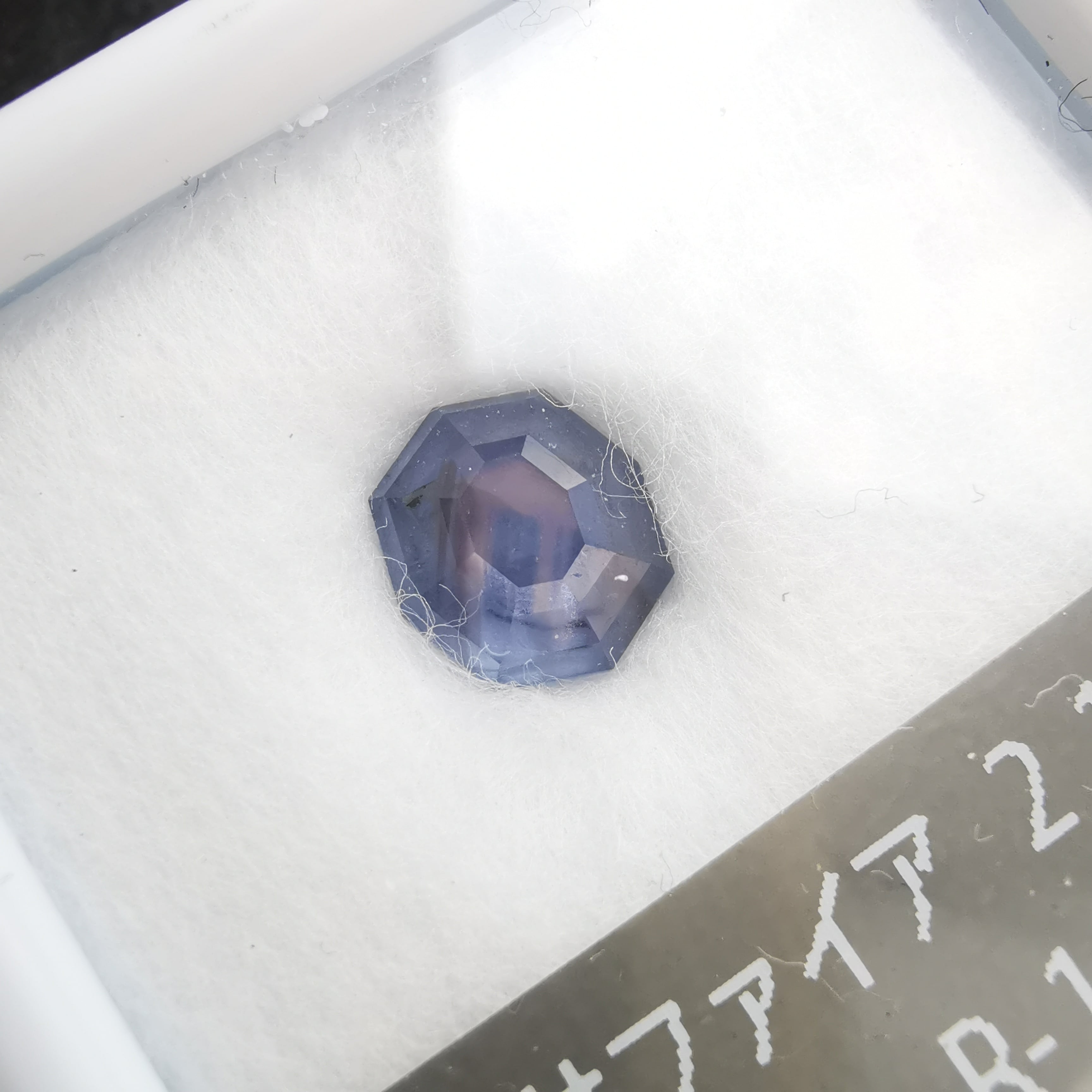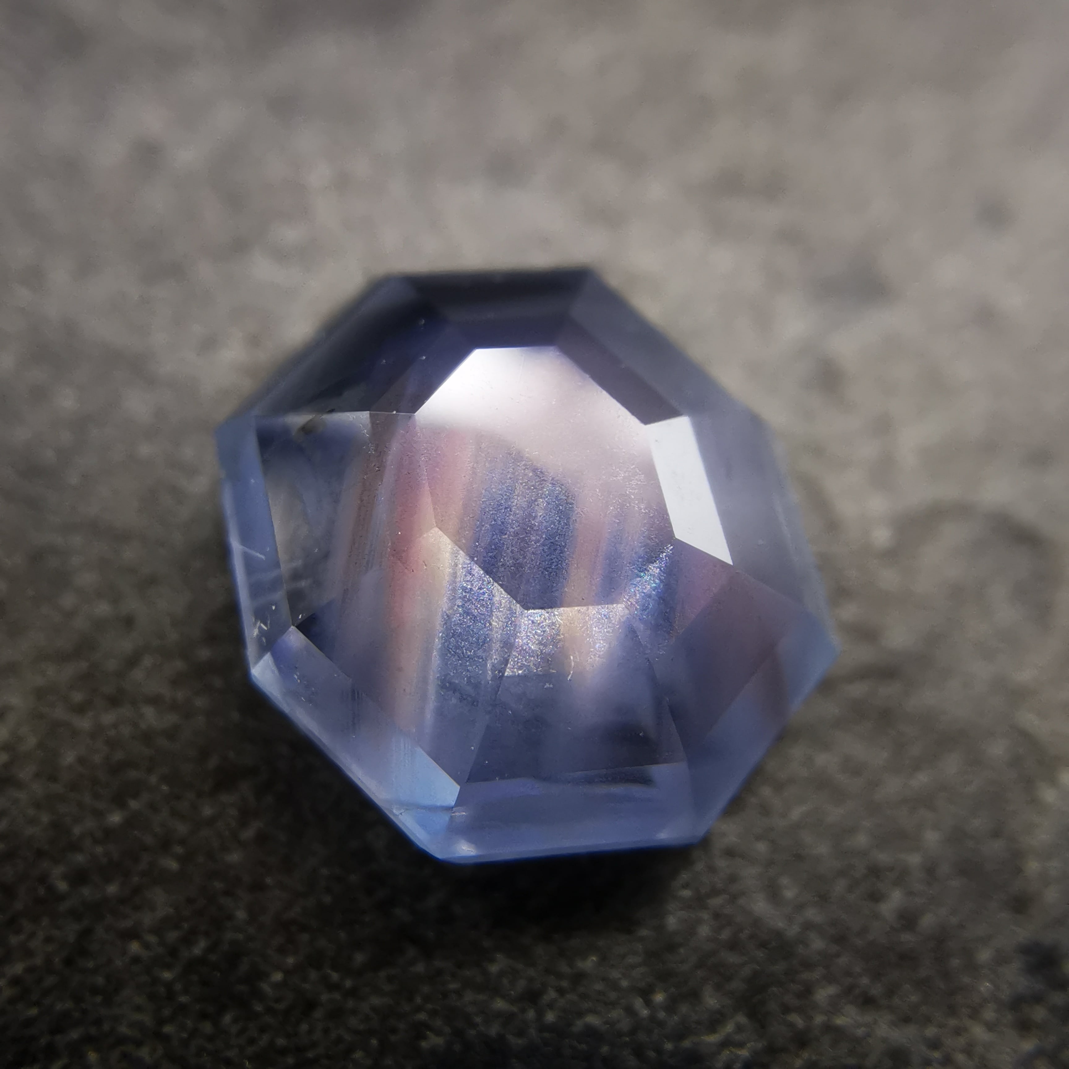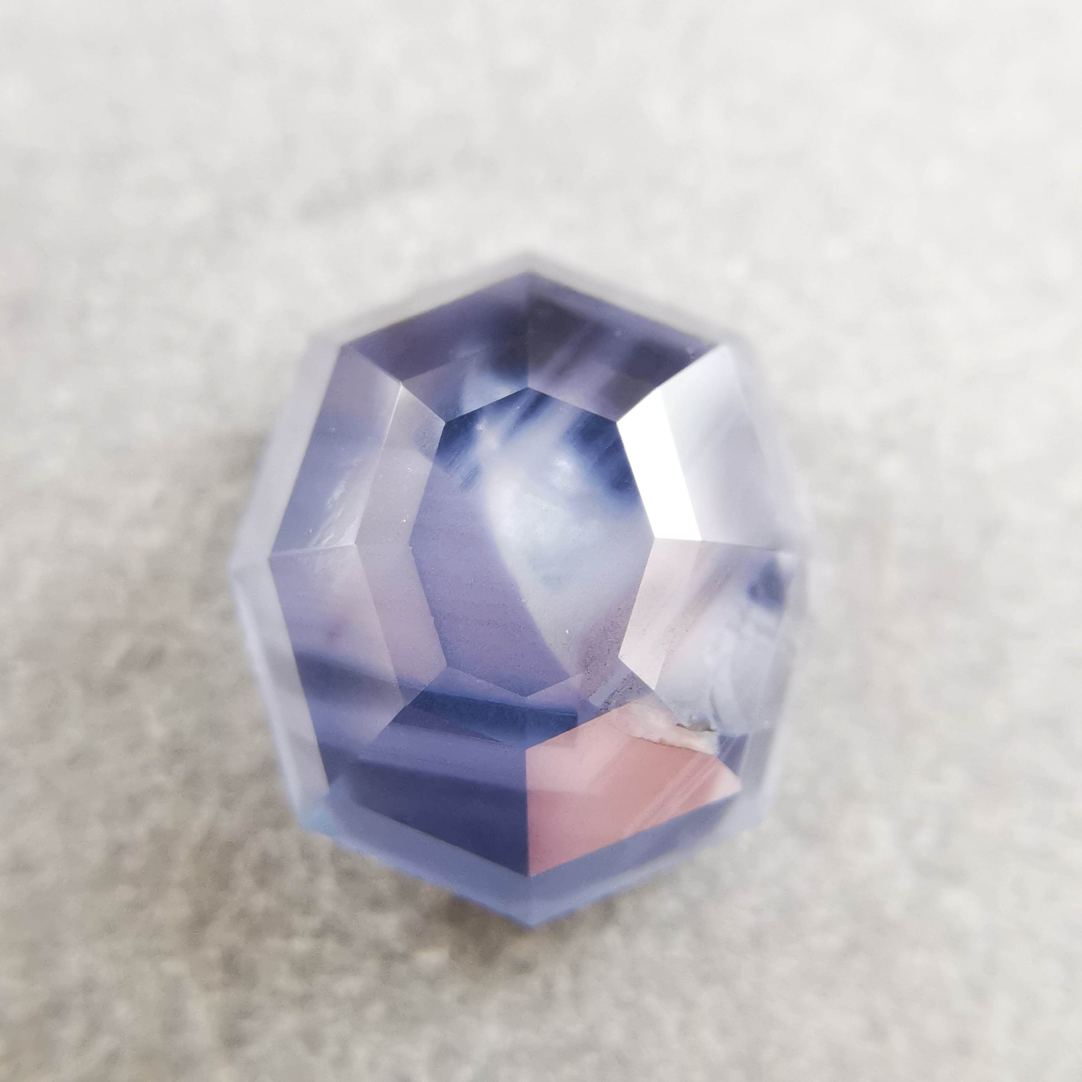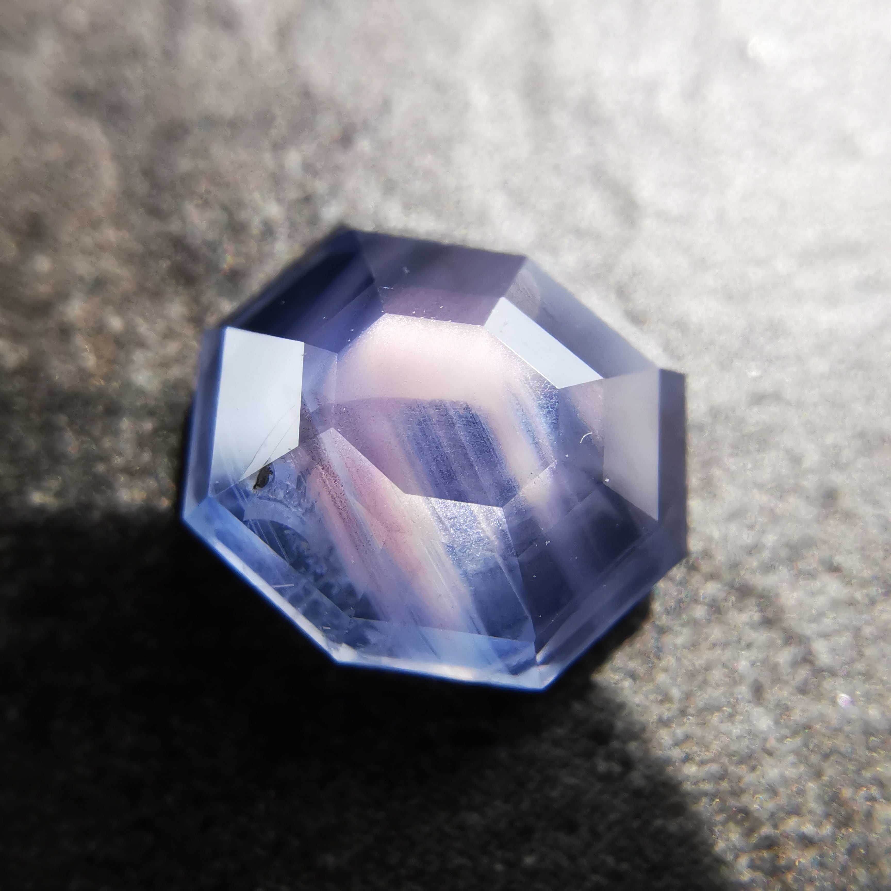 元はスターサファイアでしたが、八角形のフラットバックにカスタムリカットしました。