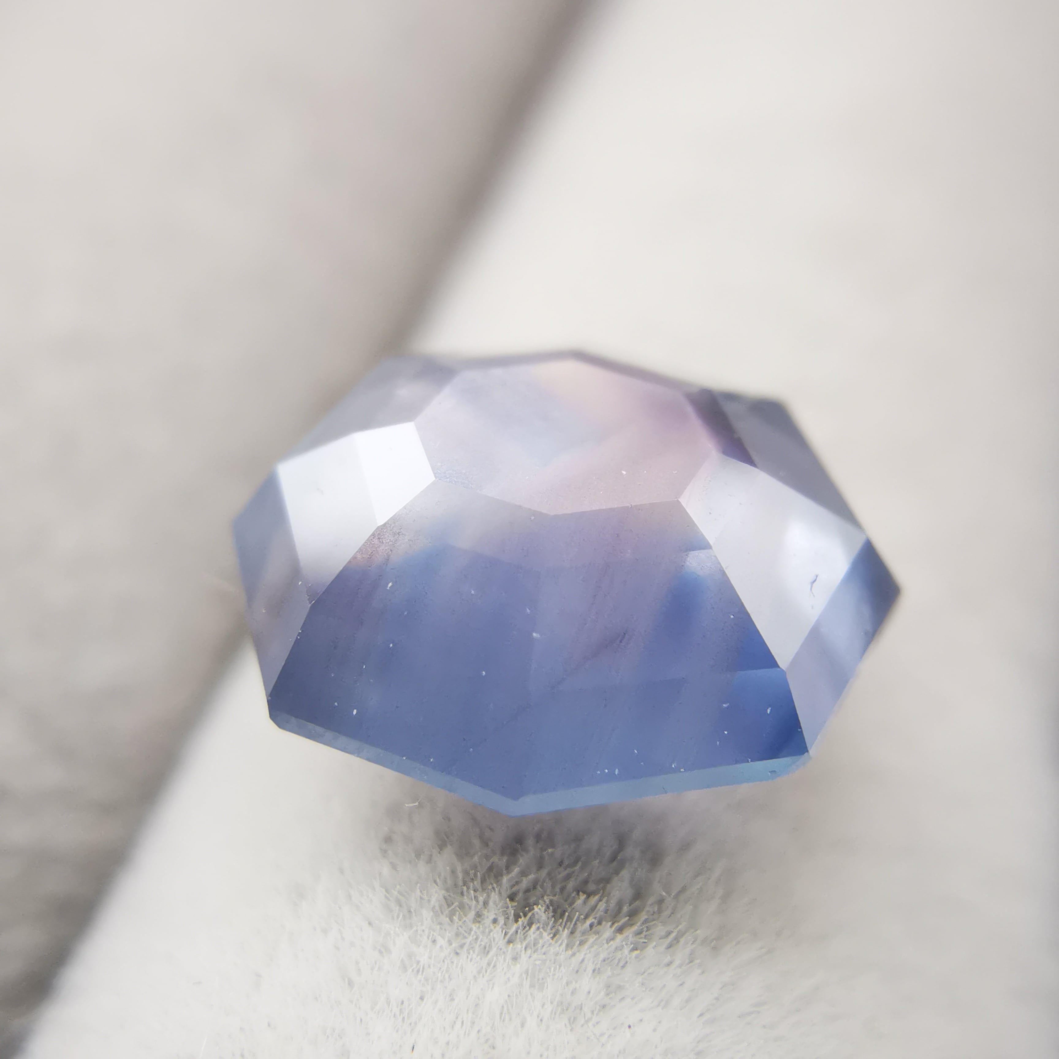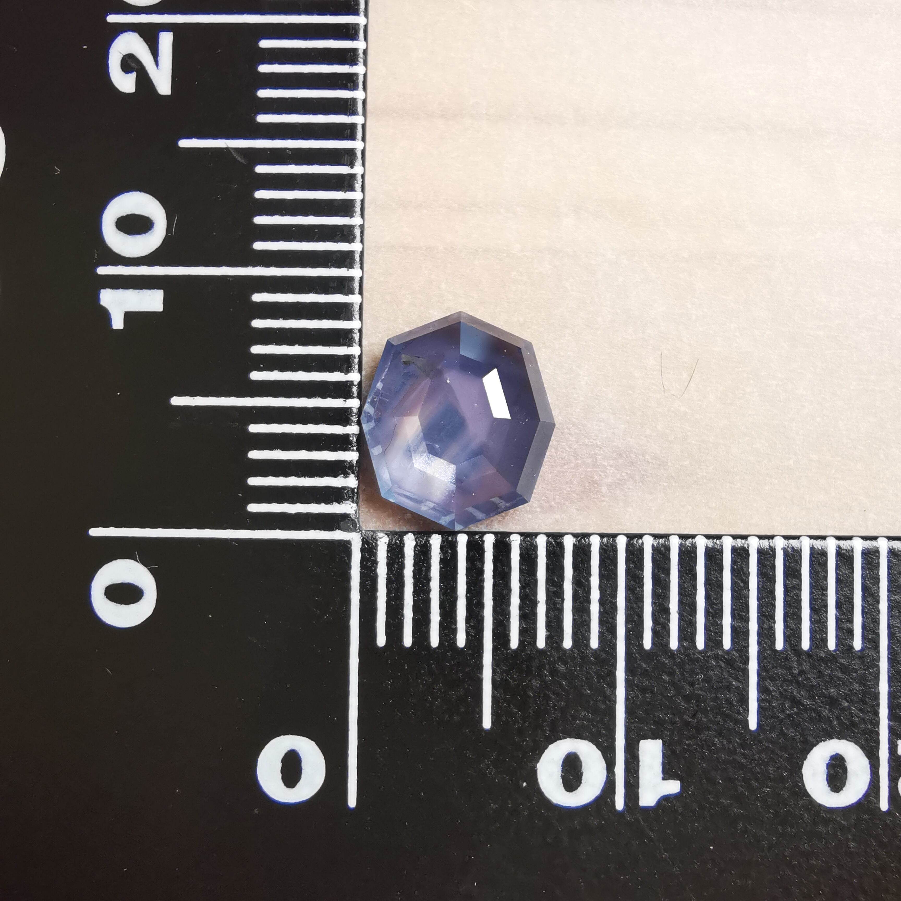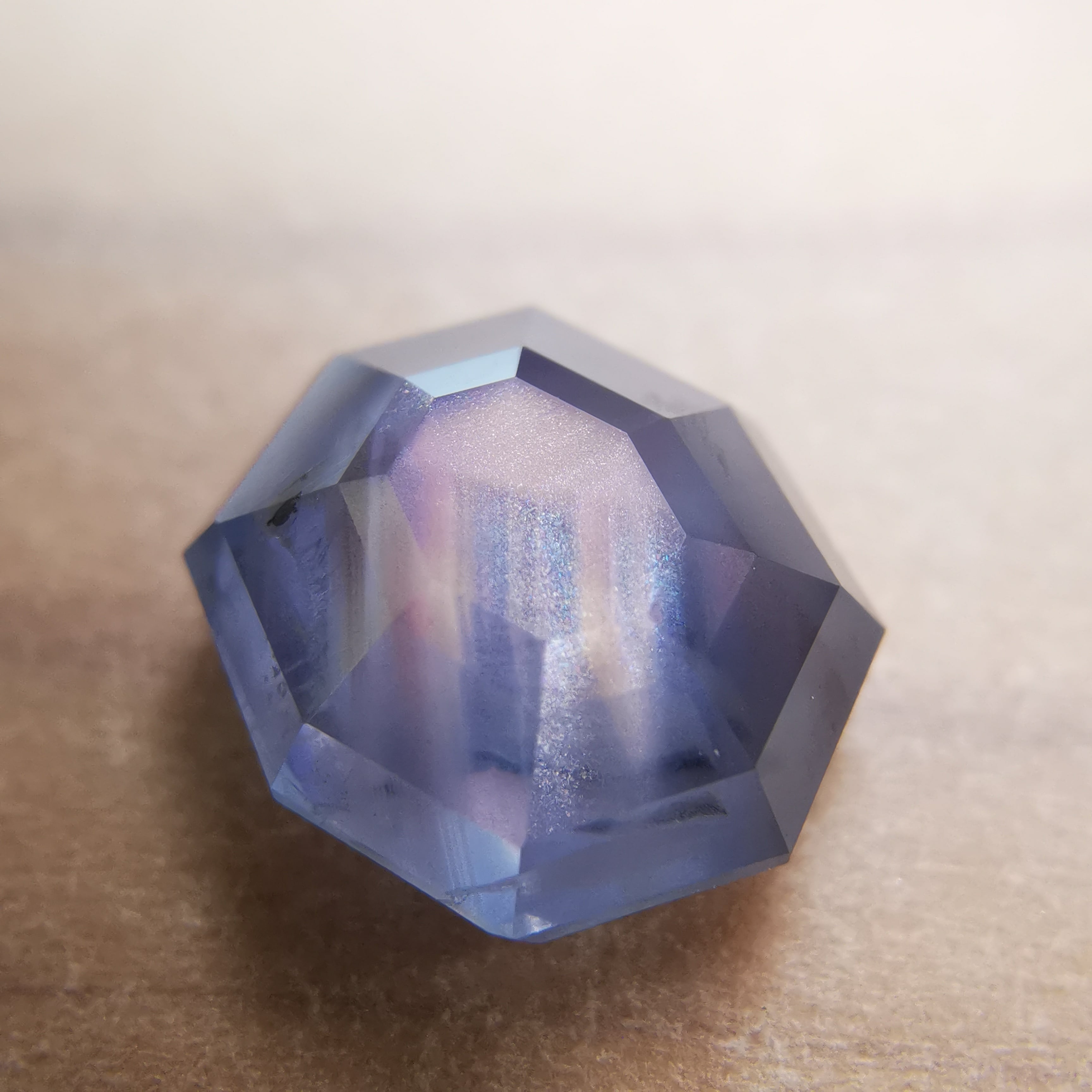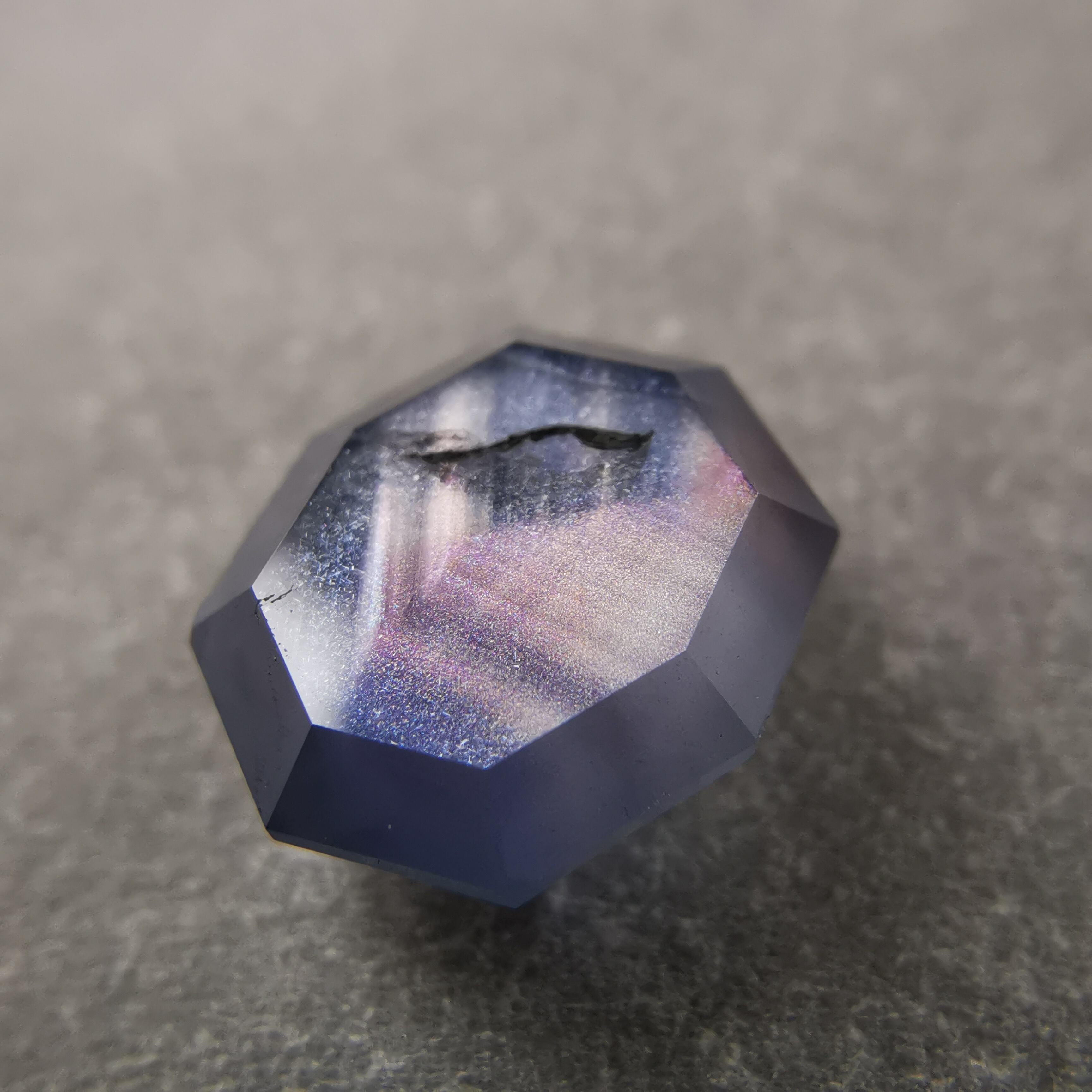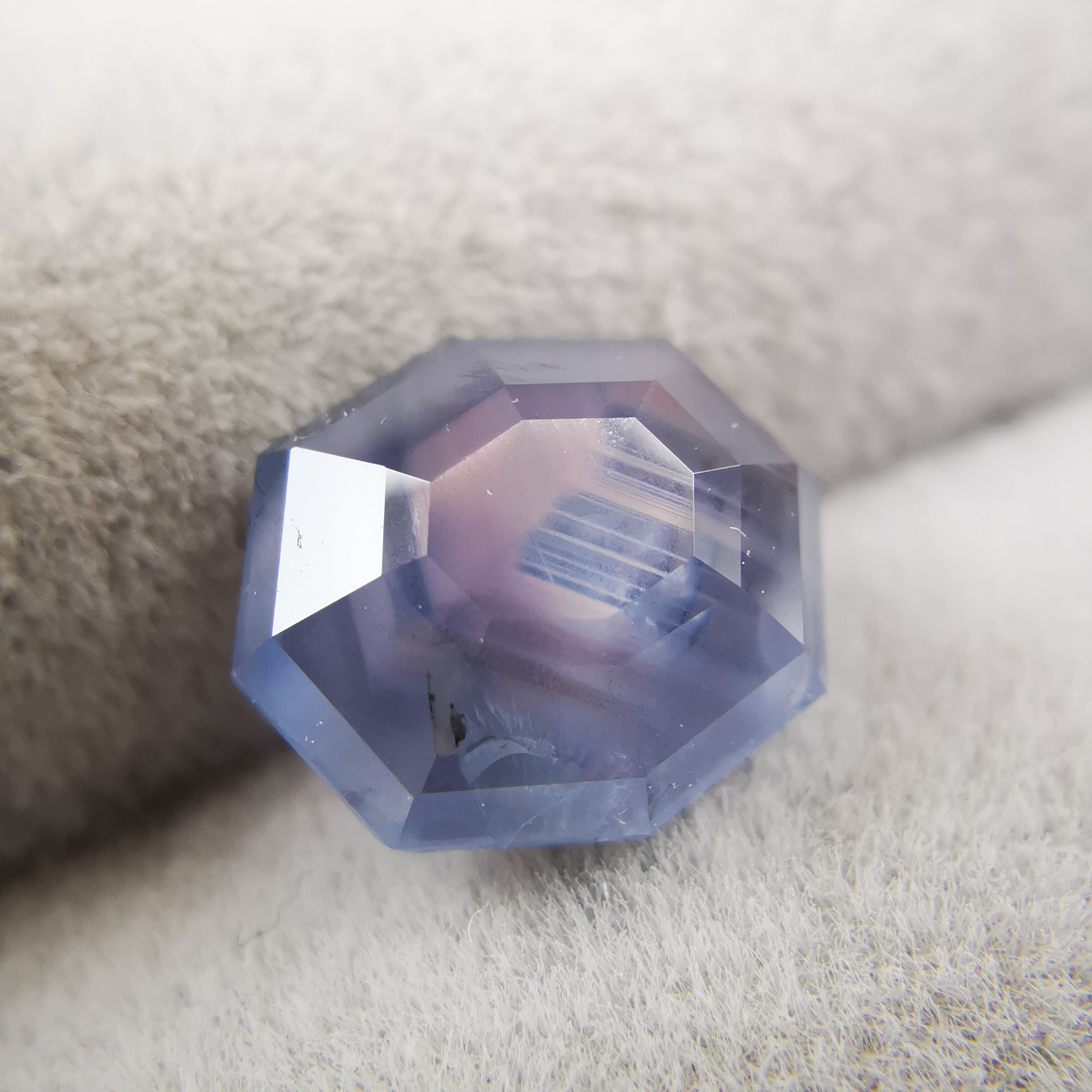 元はスターサファイアでしたが、八角形のフラットバックにカスタムリカットしました。