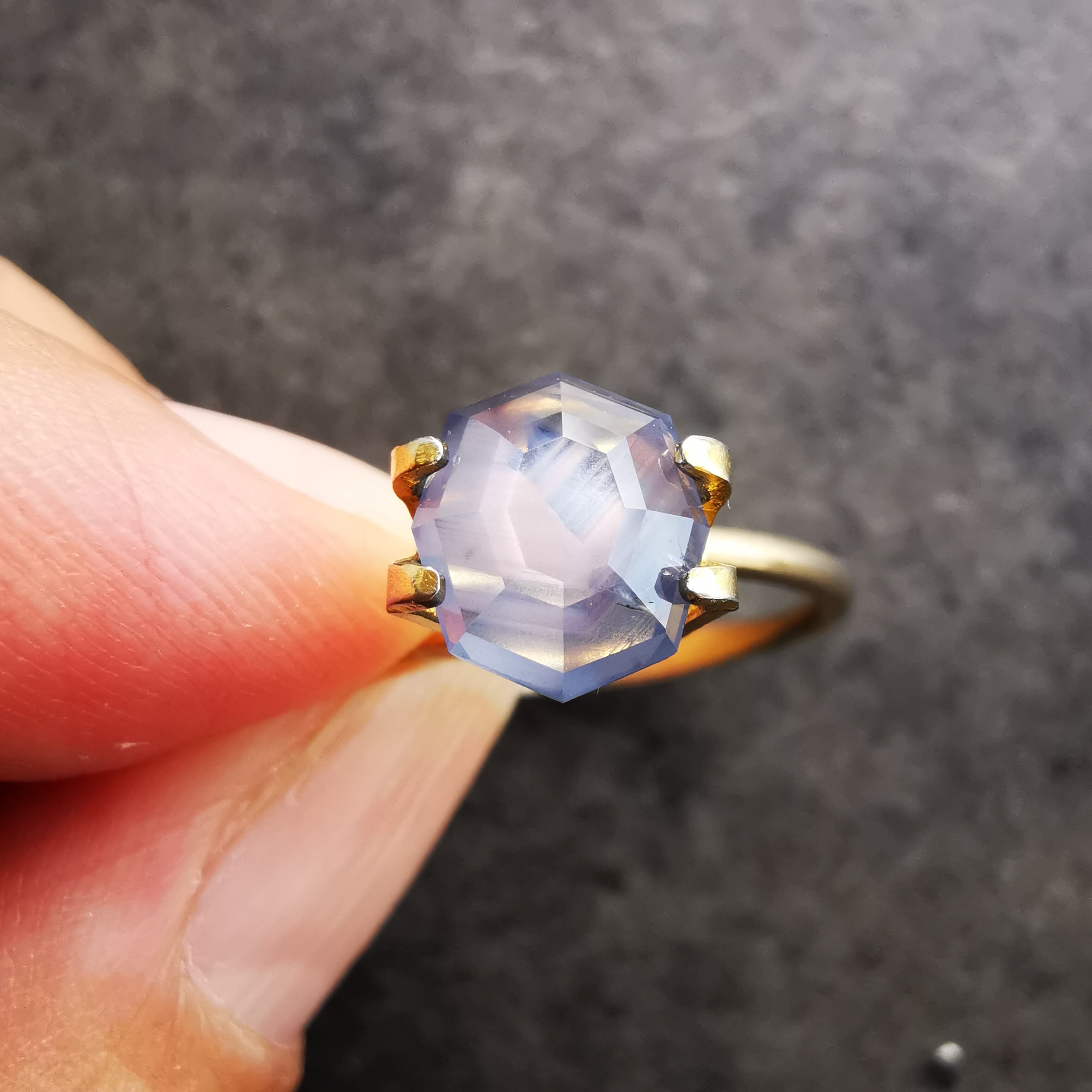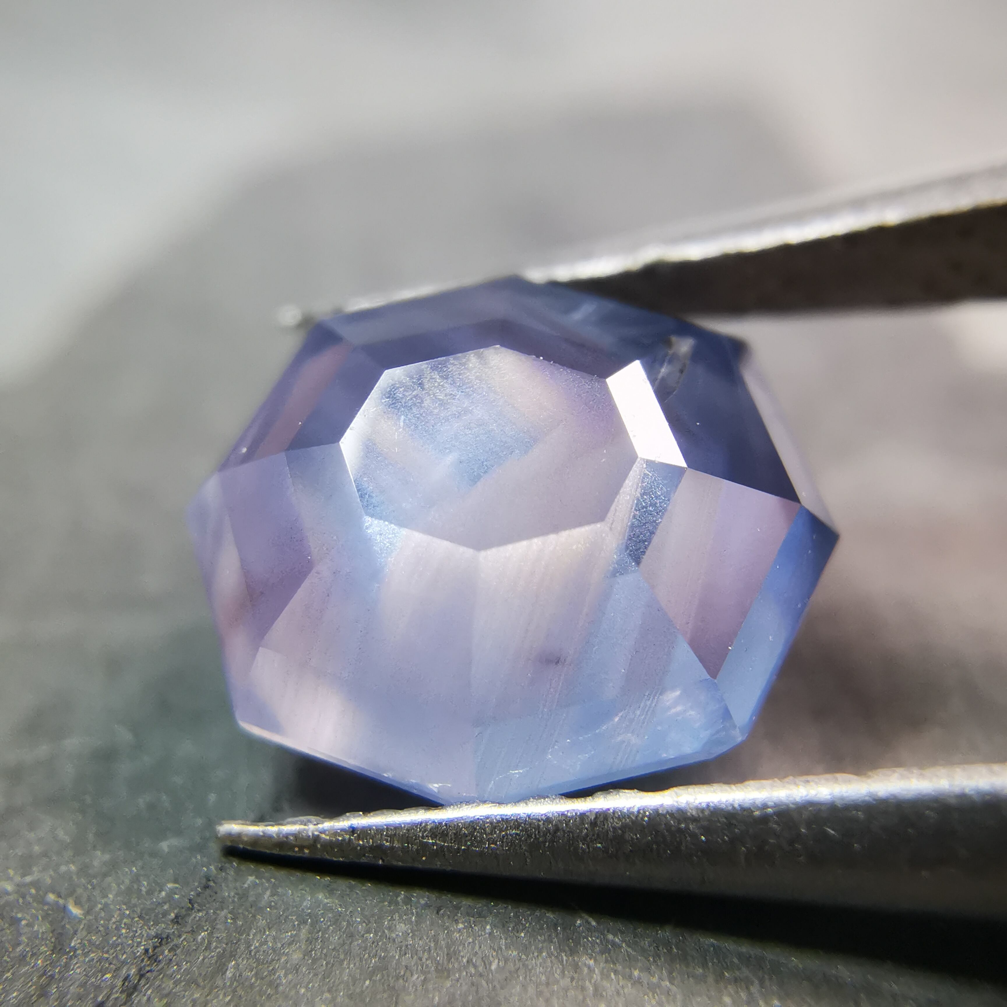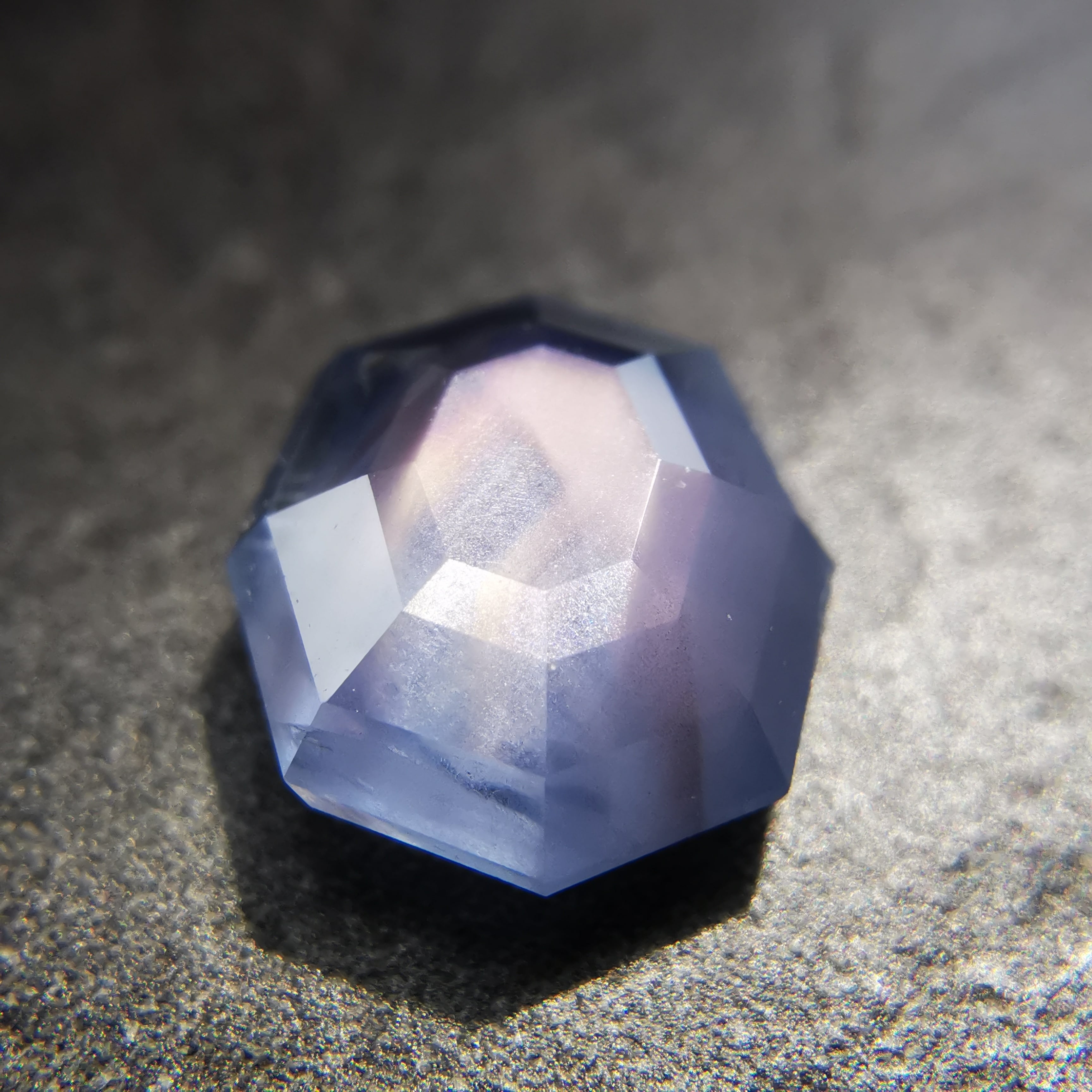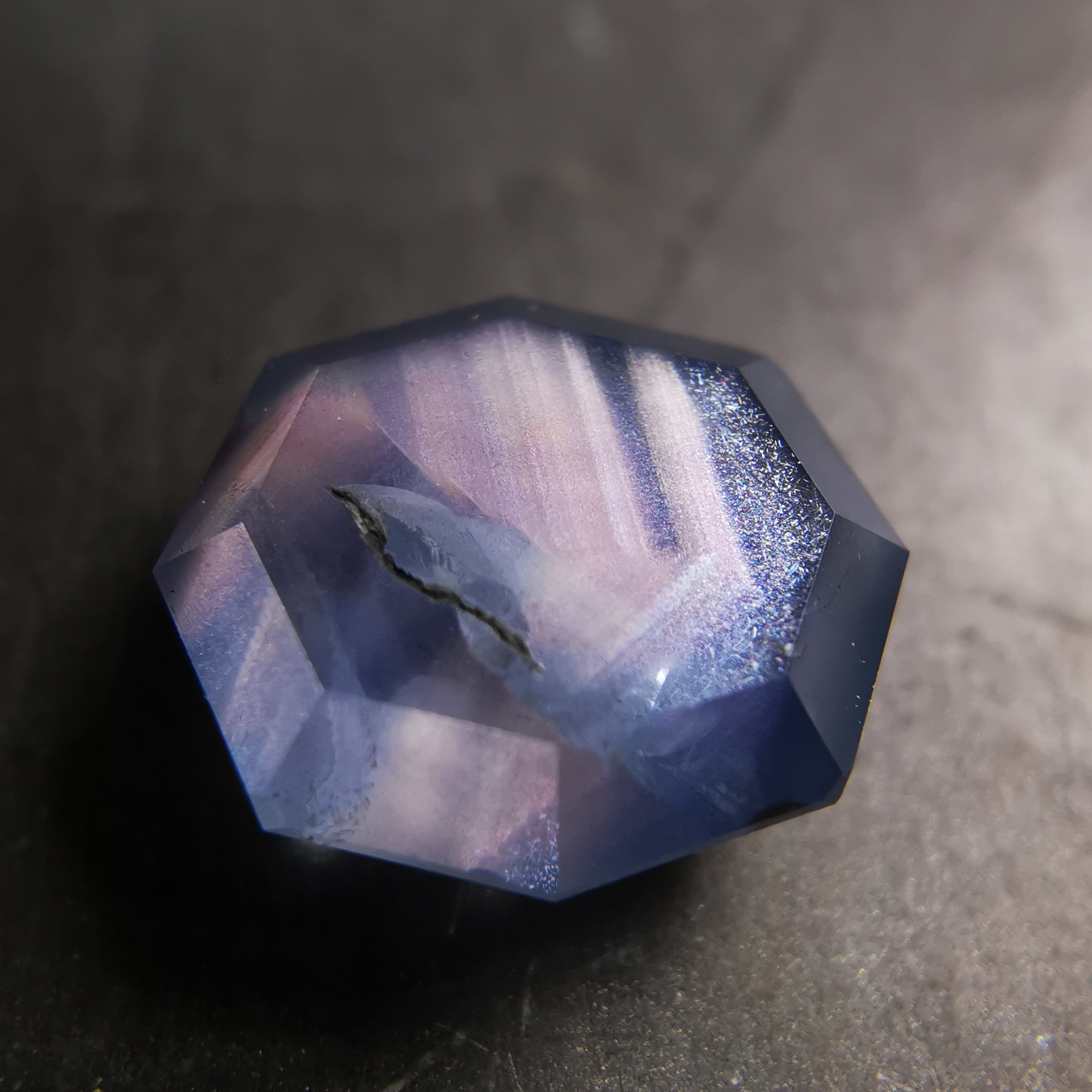 元はスターサファイアでしたが、八角形のフラットバックにカスタムリカットしました。