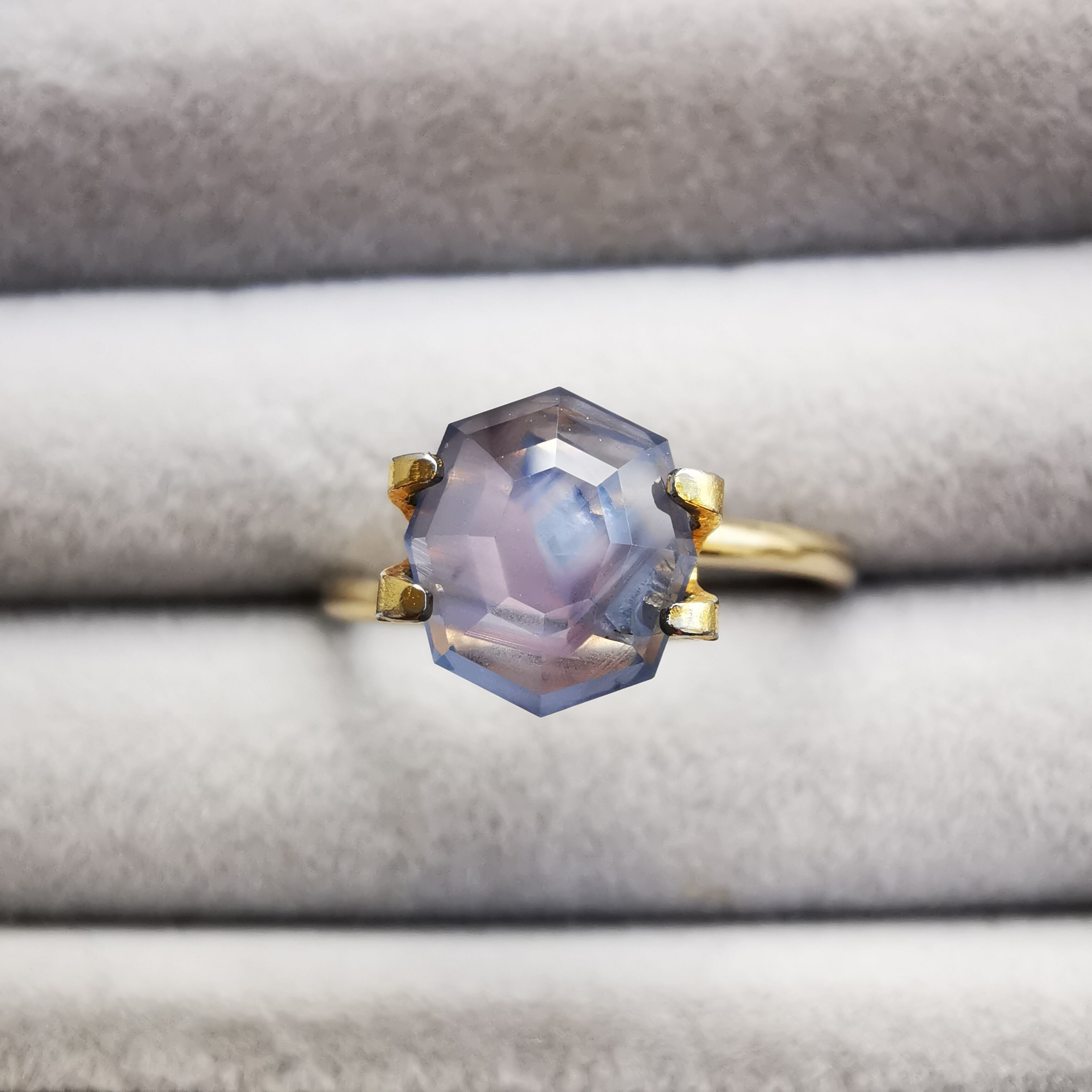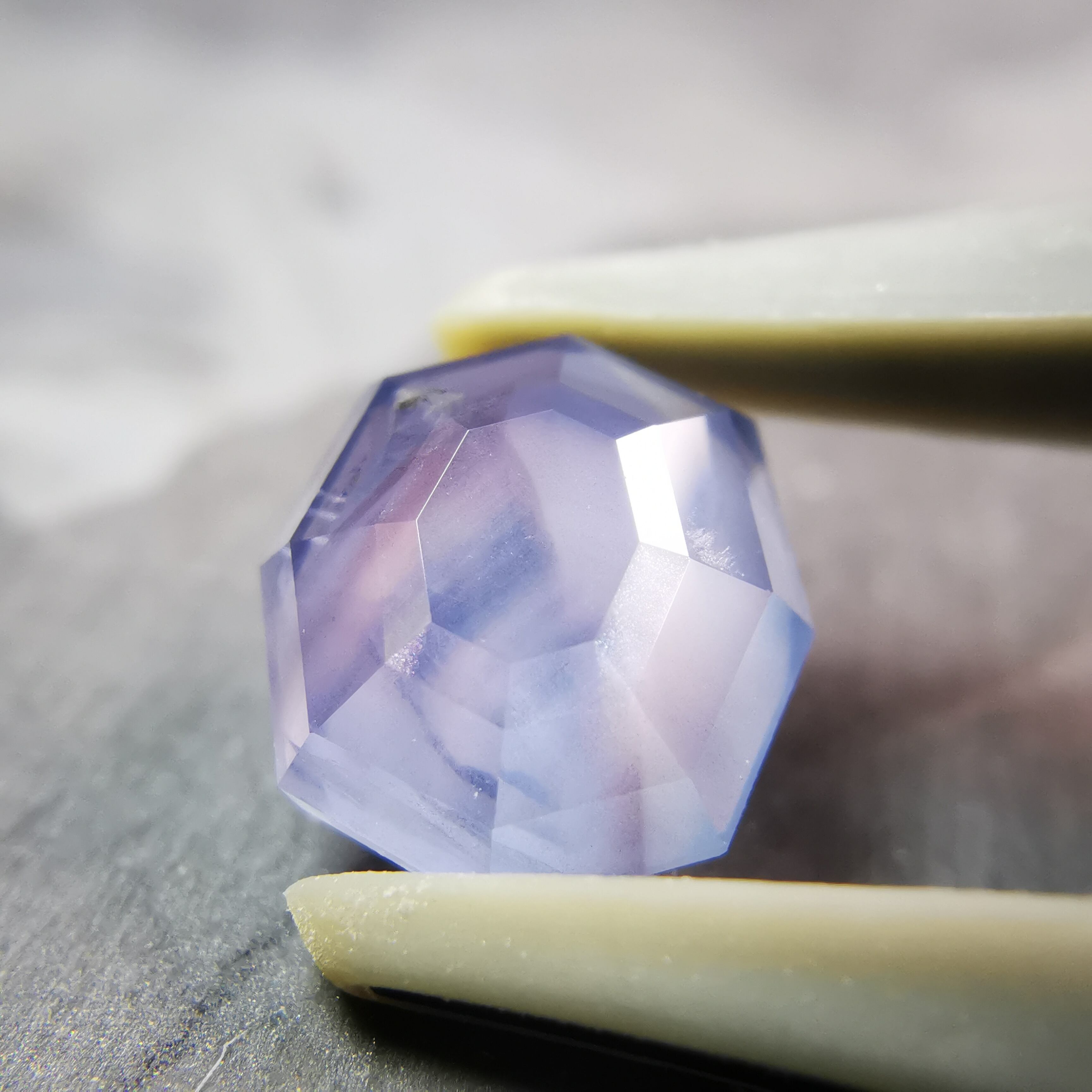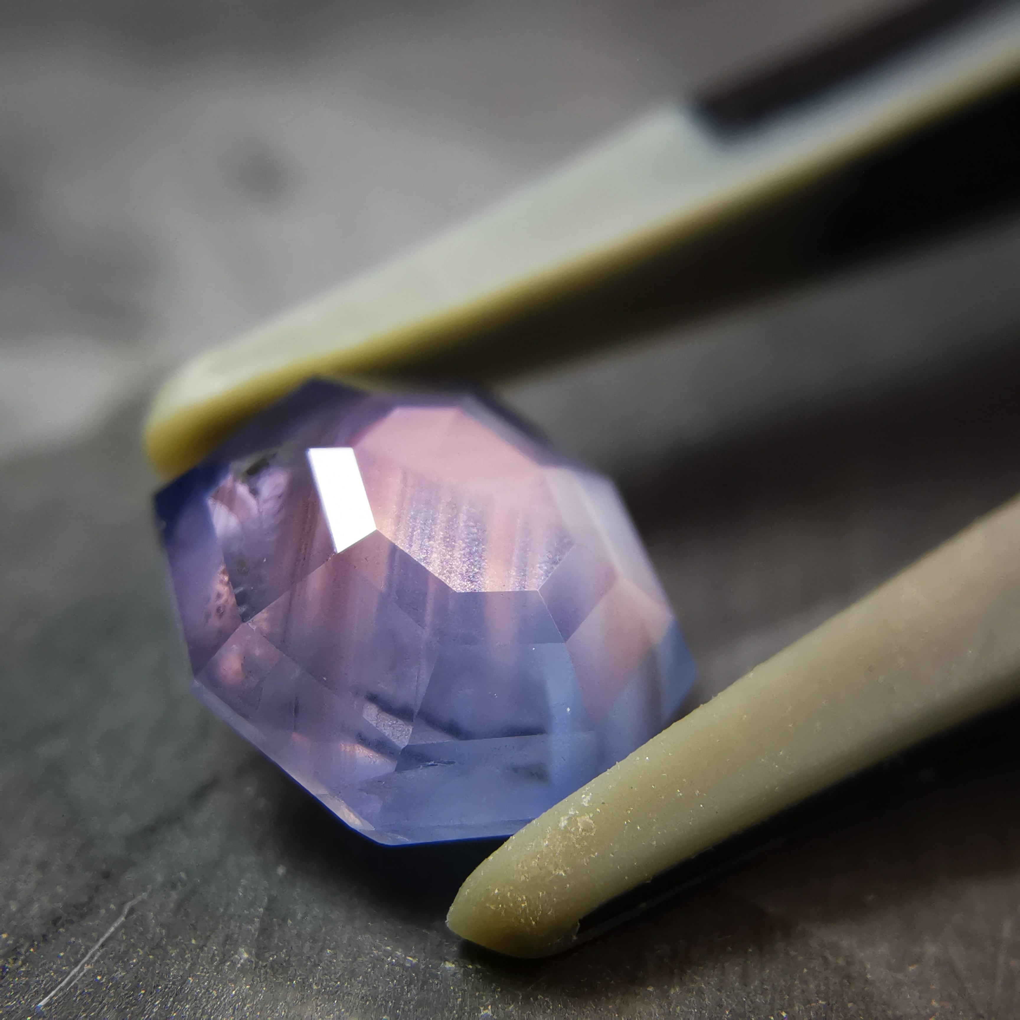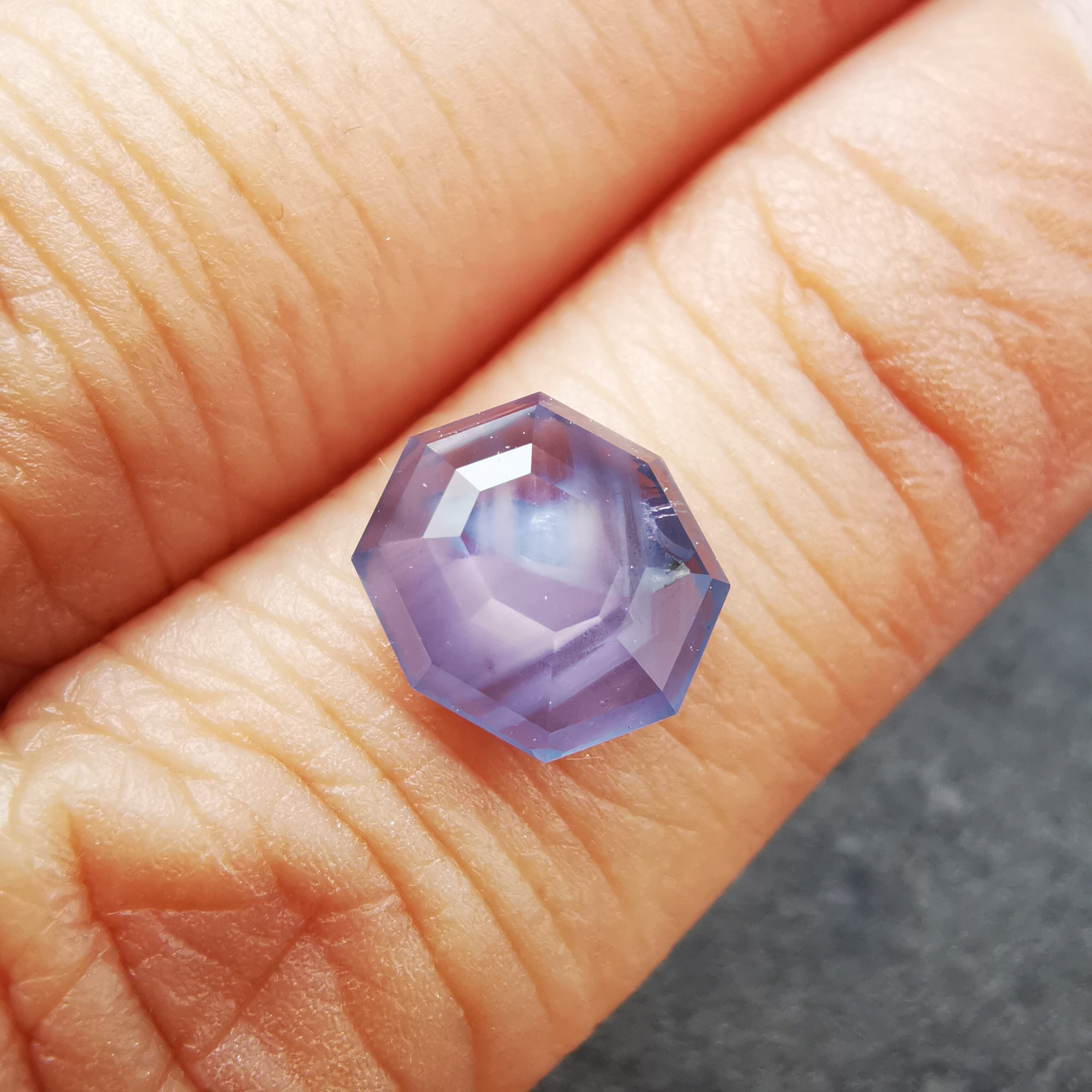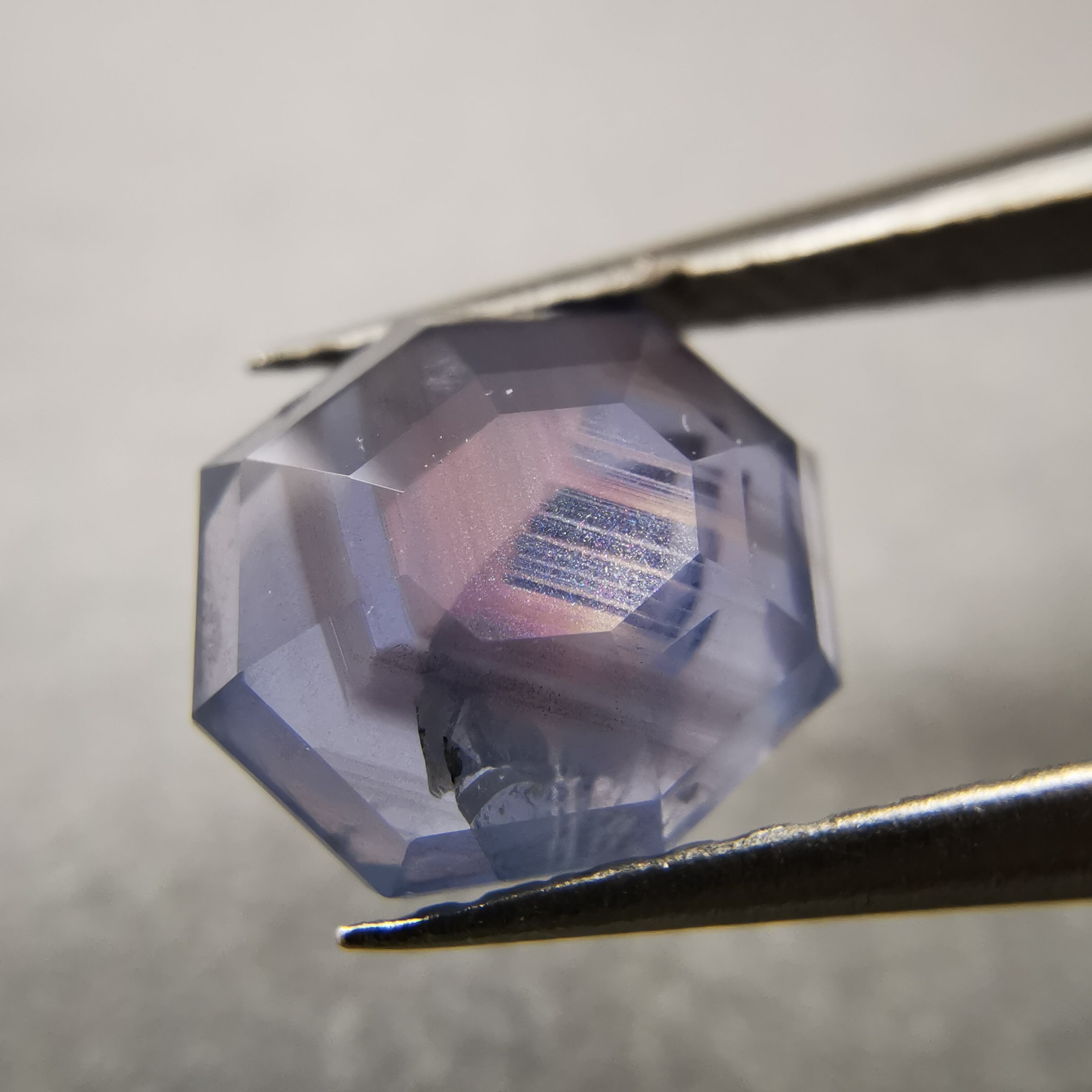 元はスターサファイアでしたが、八角形のフラットバックにカスタムリカットしました。