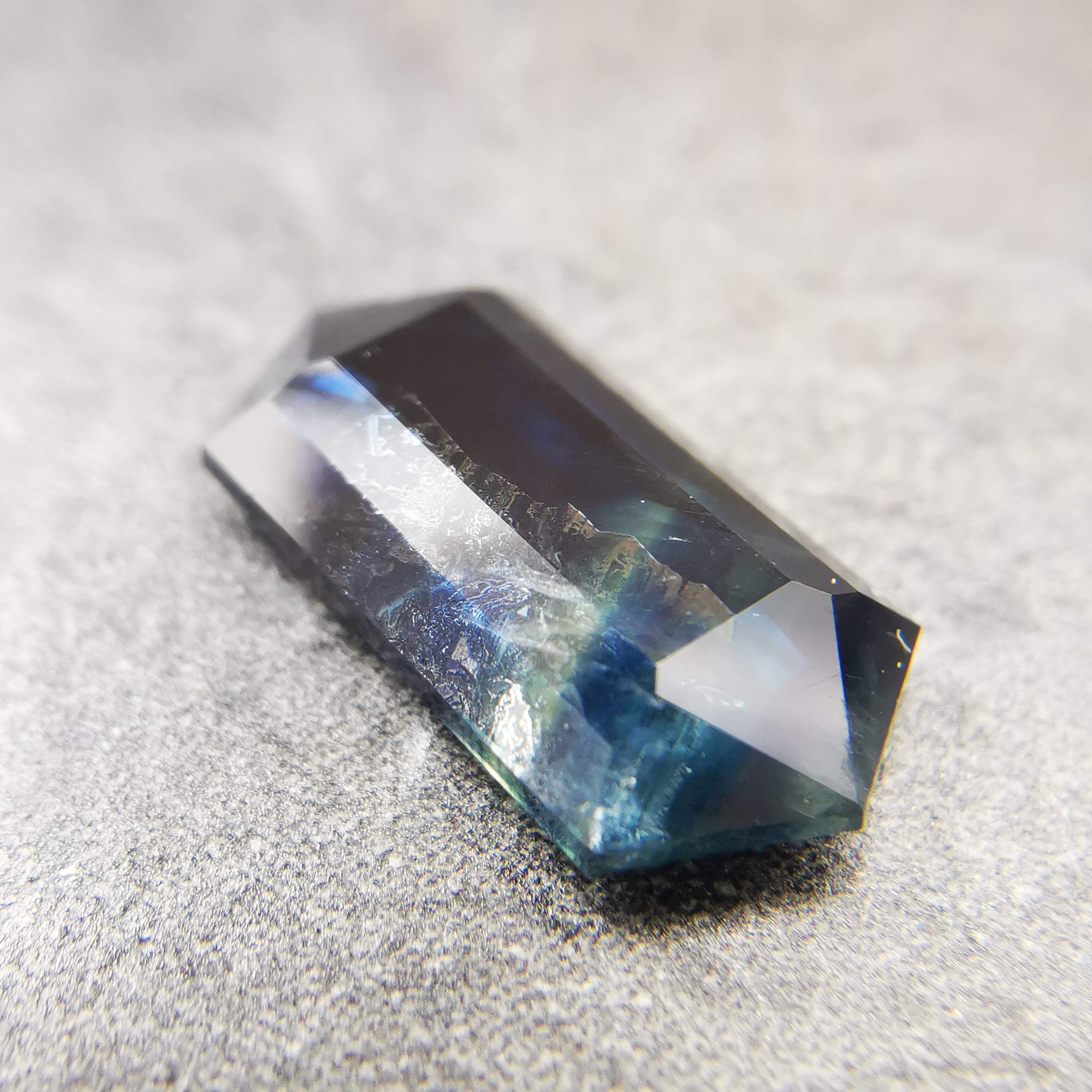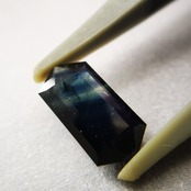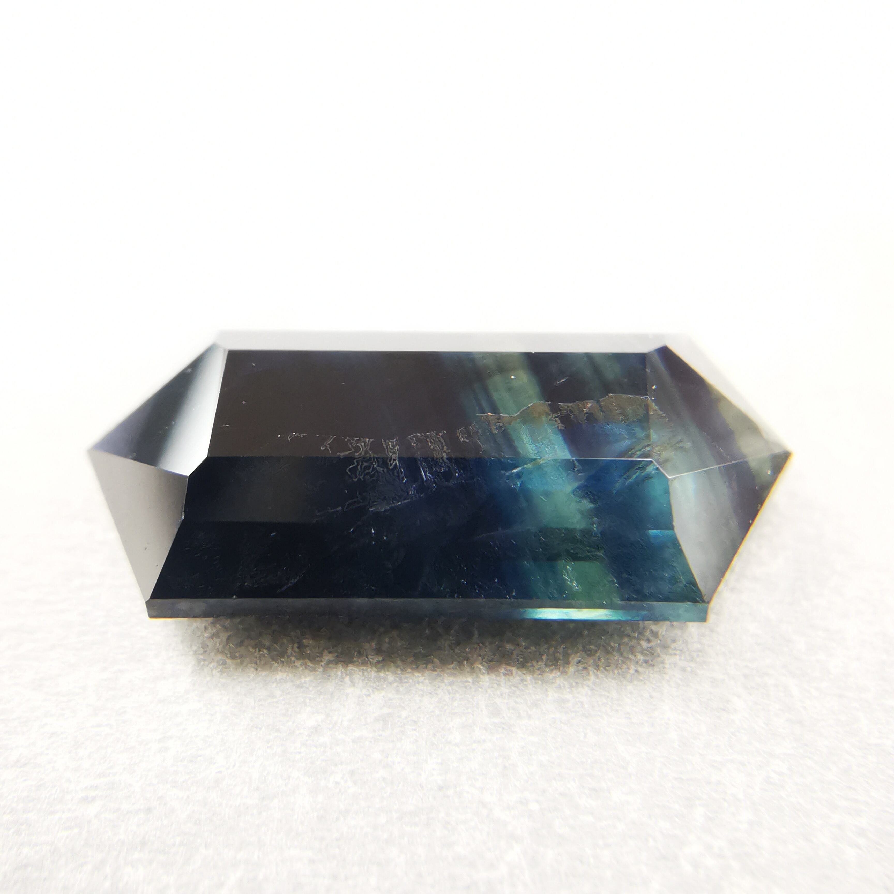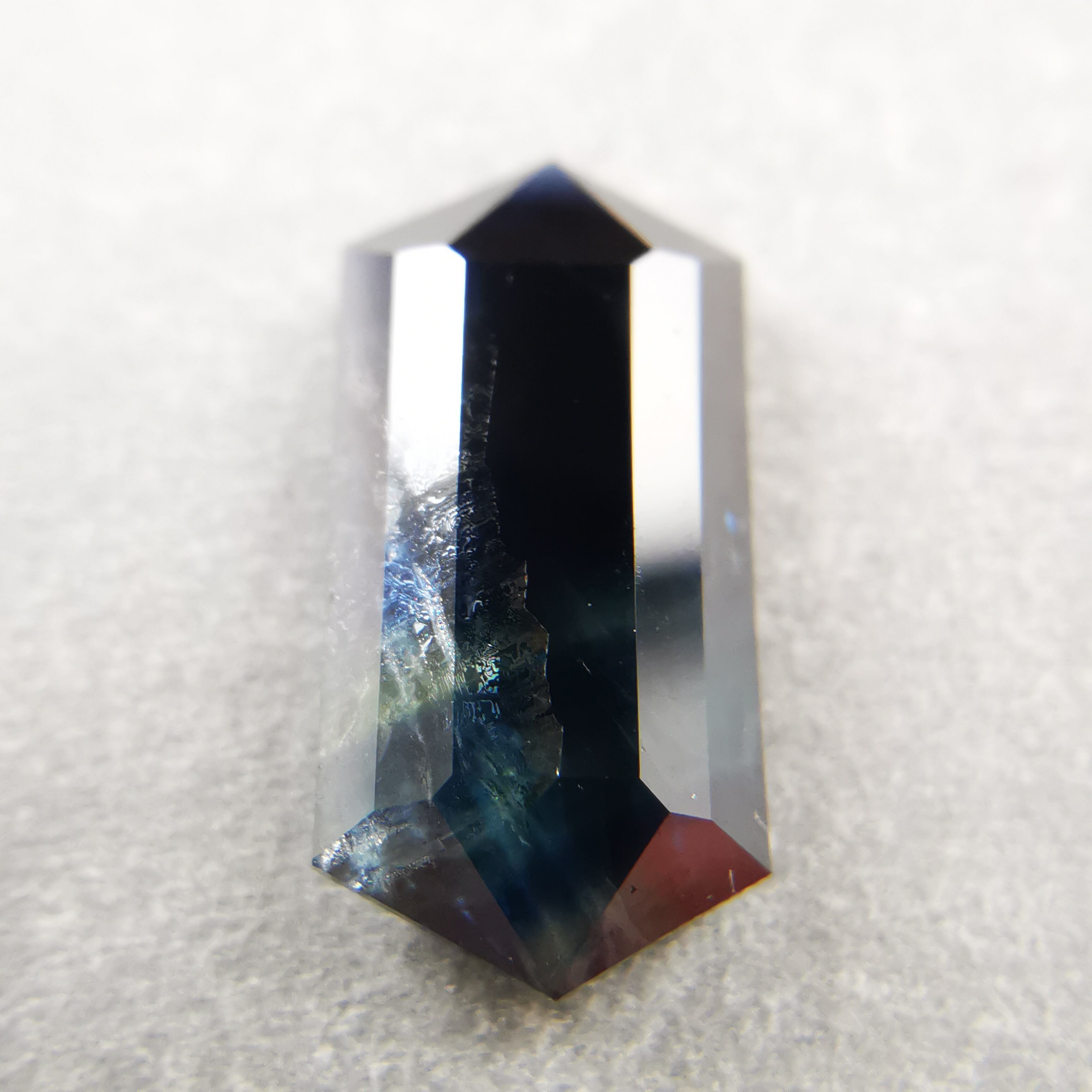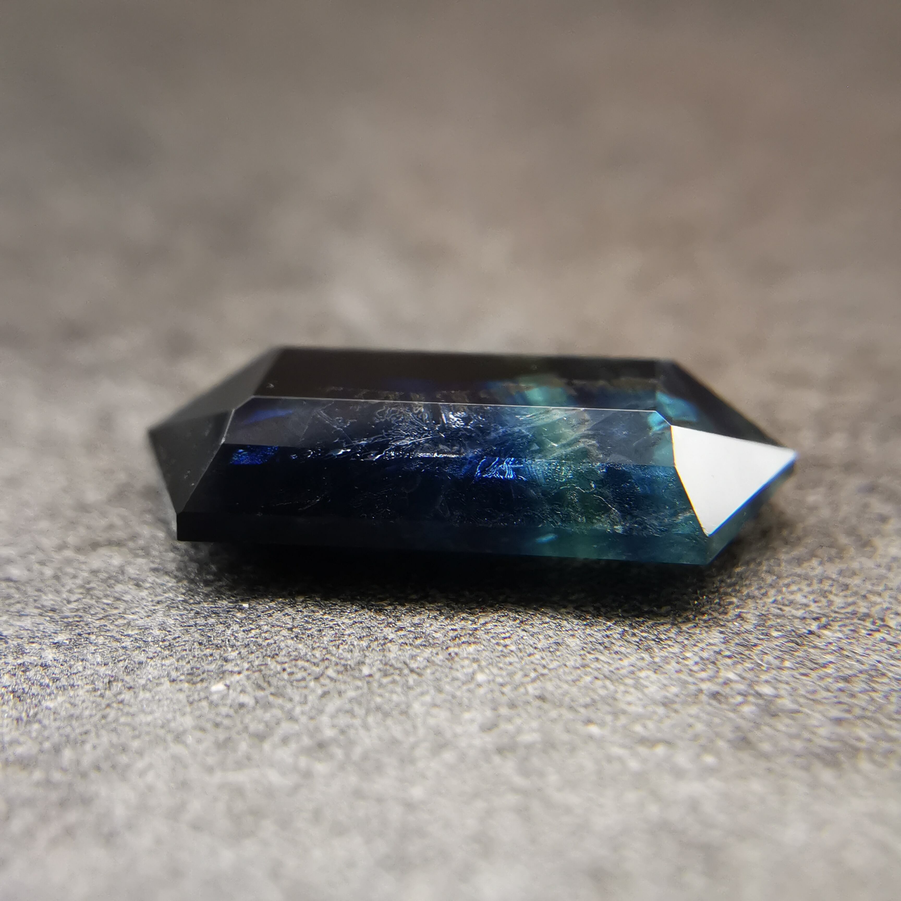 オーストラリア産らしい、暗く硬派な濃藍色が、下に行くにつれて縞模様を描くサファイアです。