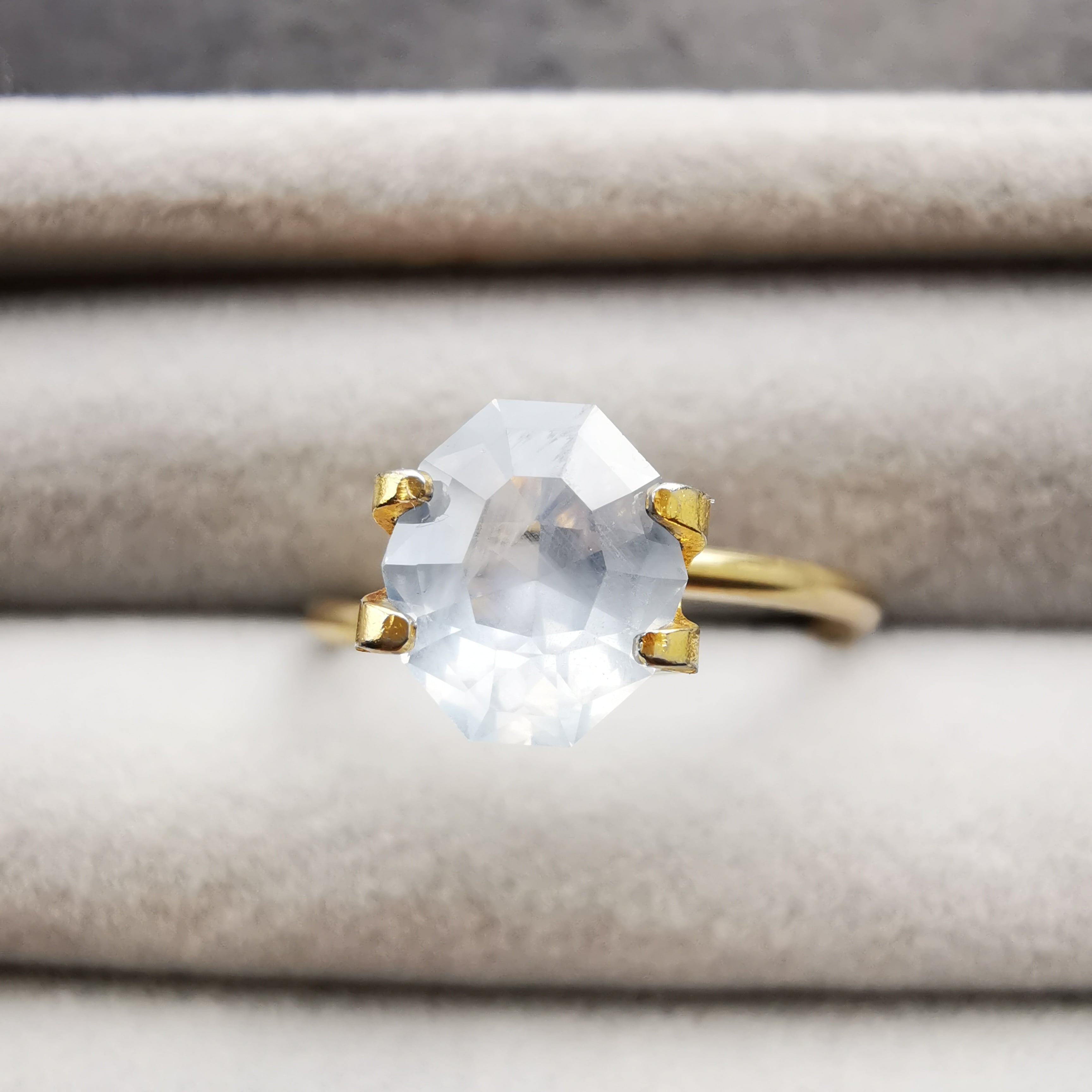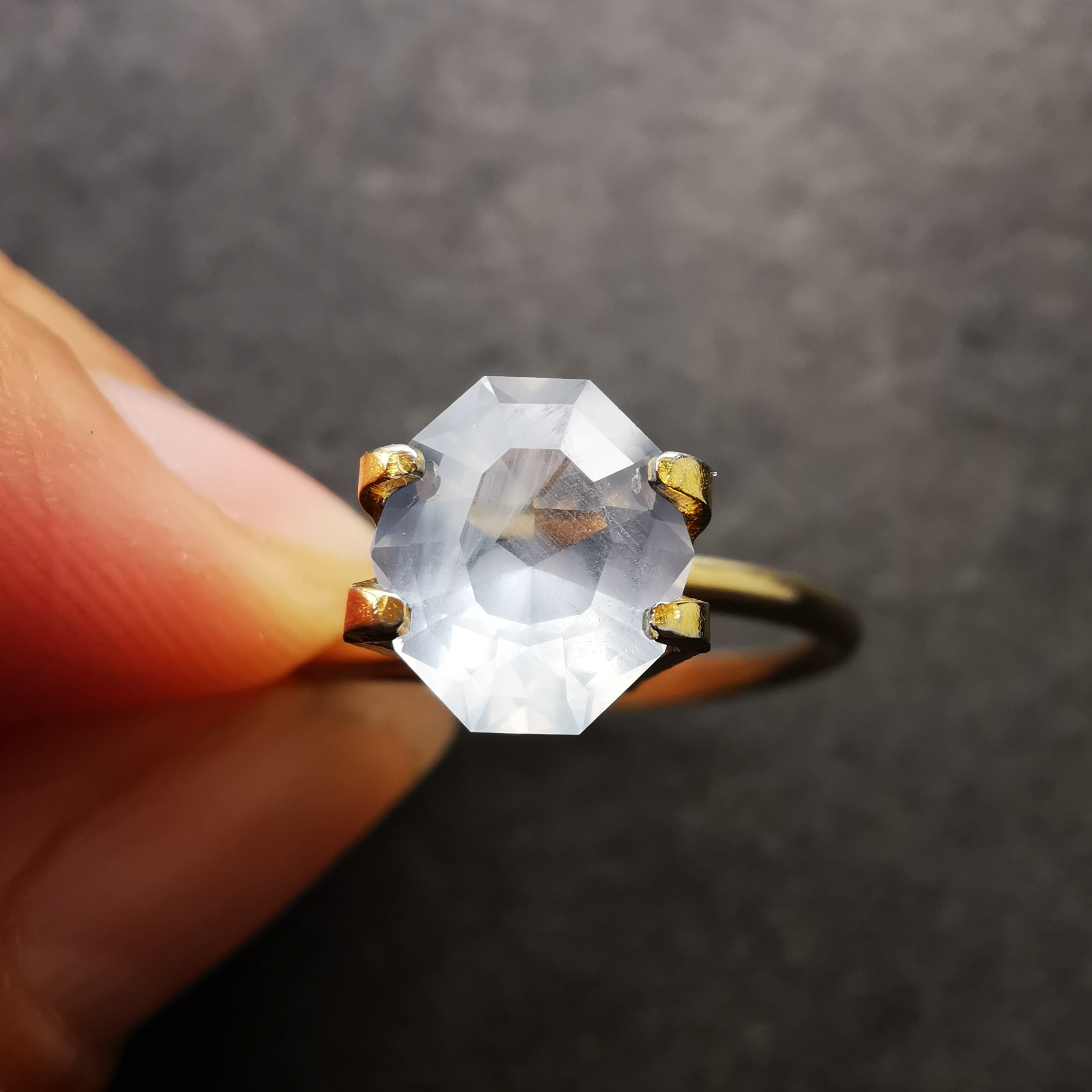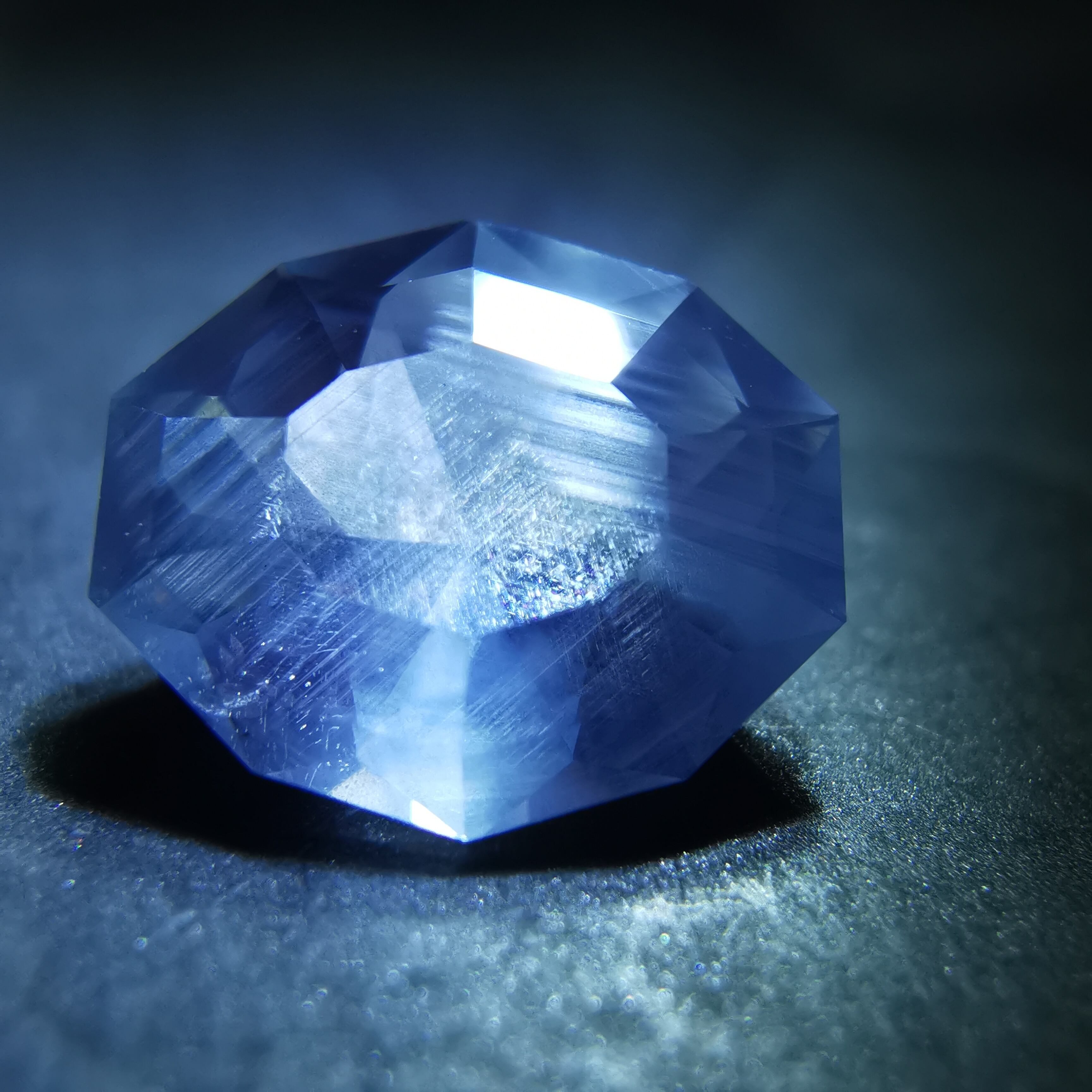元はスターサファイアでしたが、あまりにもシルクインクルージョンが美しいので、ファセットカットになってみないかい?とスカウトしました。