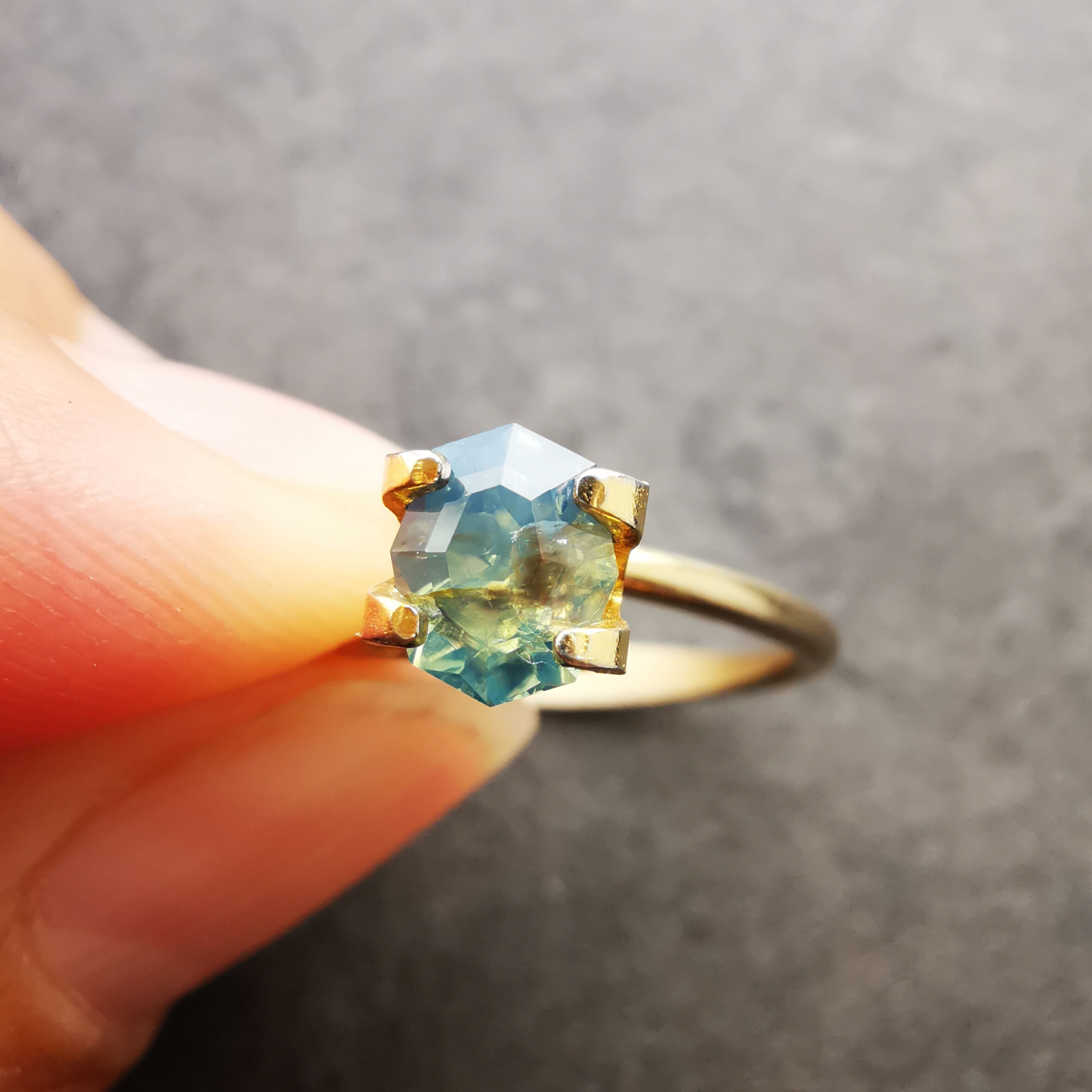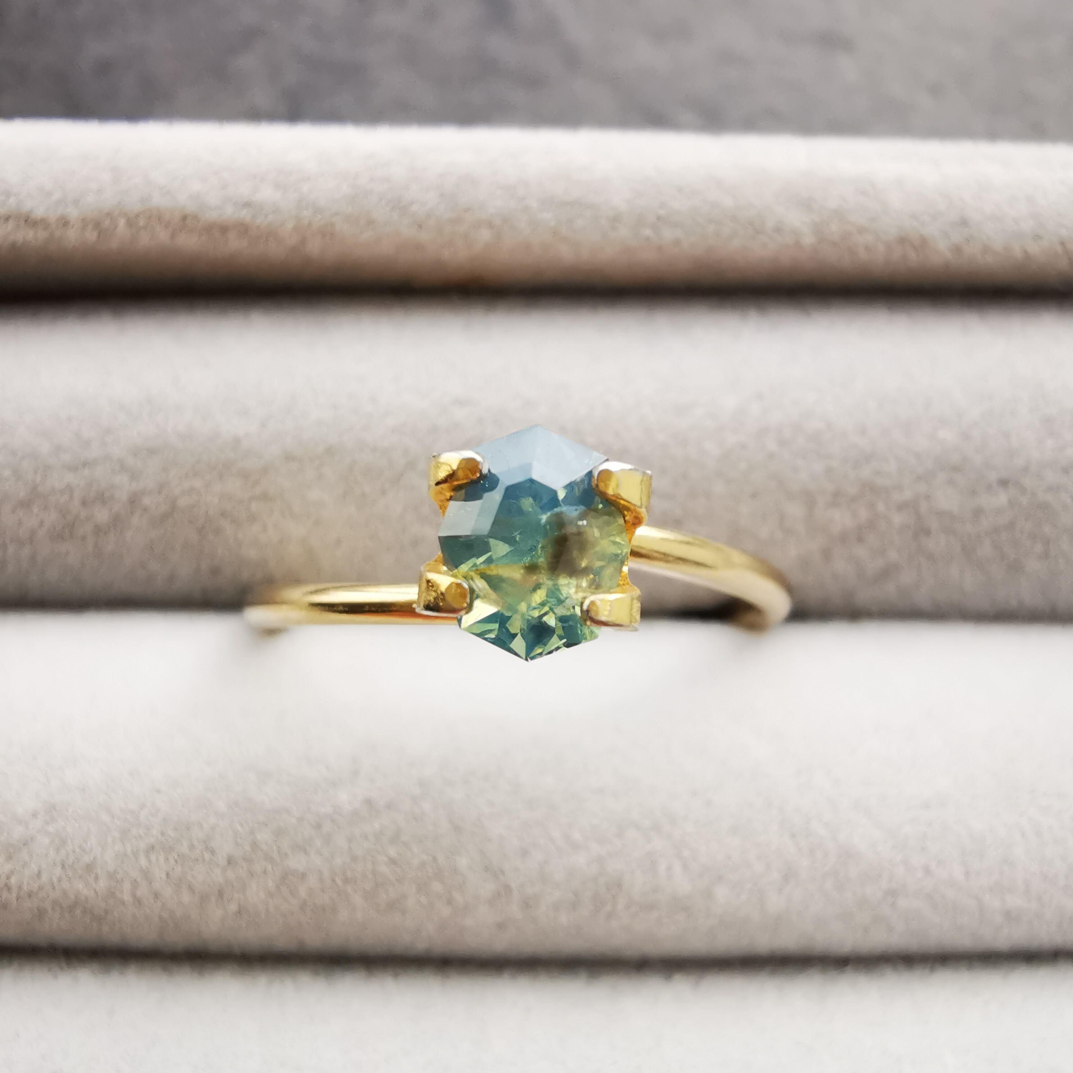 特に指乗せとリングトレイの写真は、下から光が入るせいか肉眼で見るよりも青く写っているように感じるので参考にしてください。