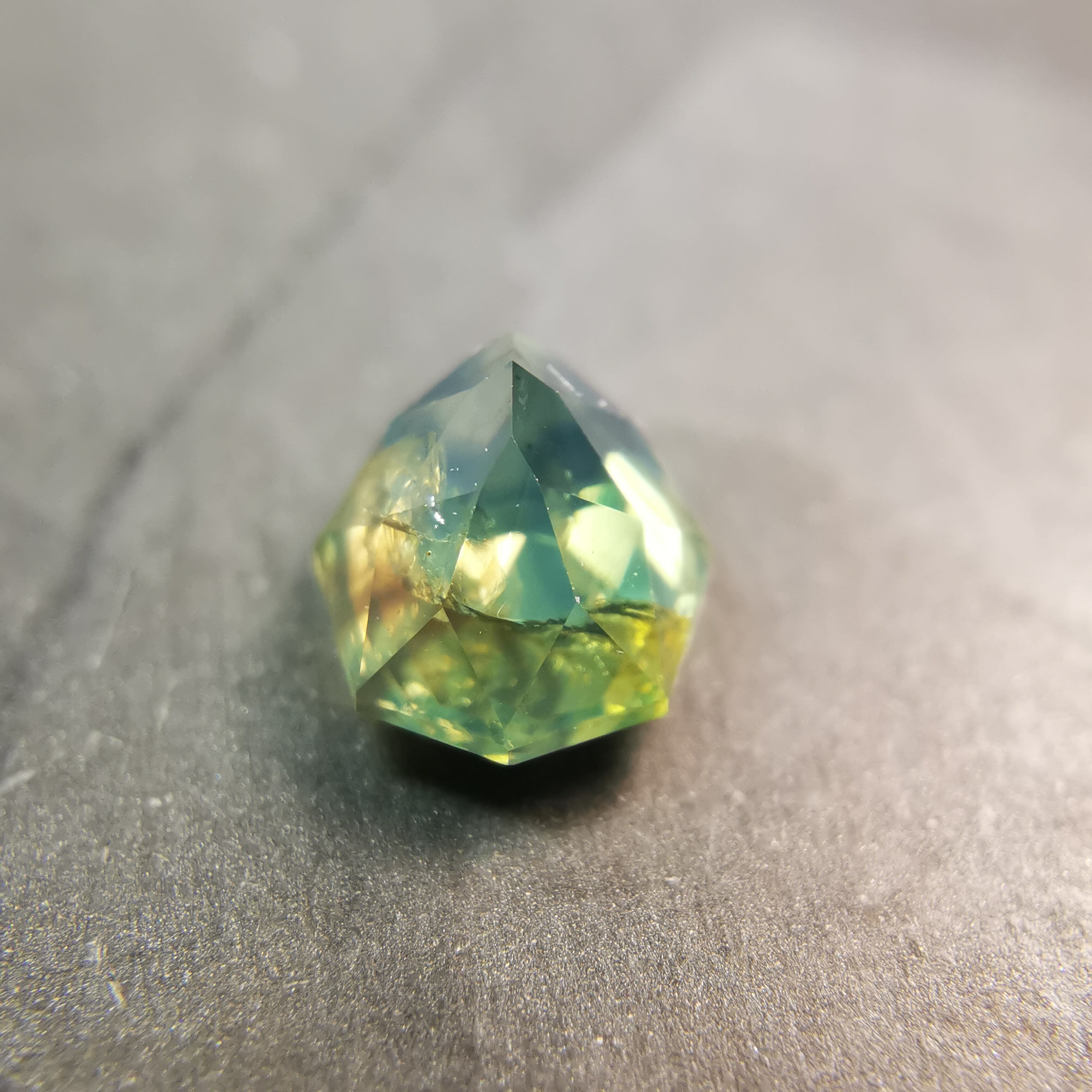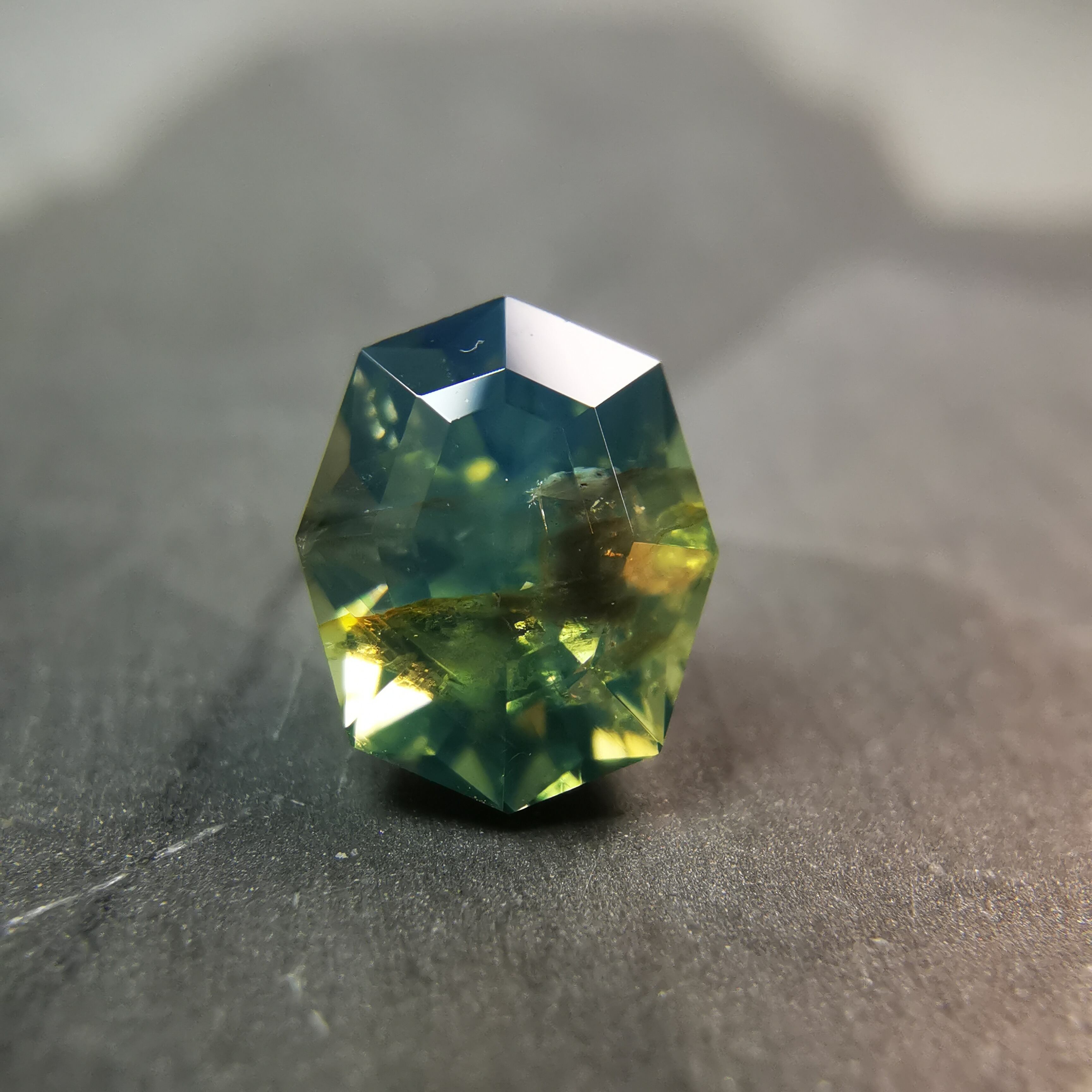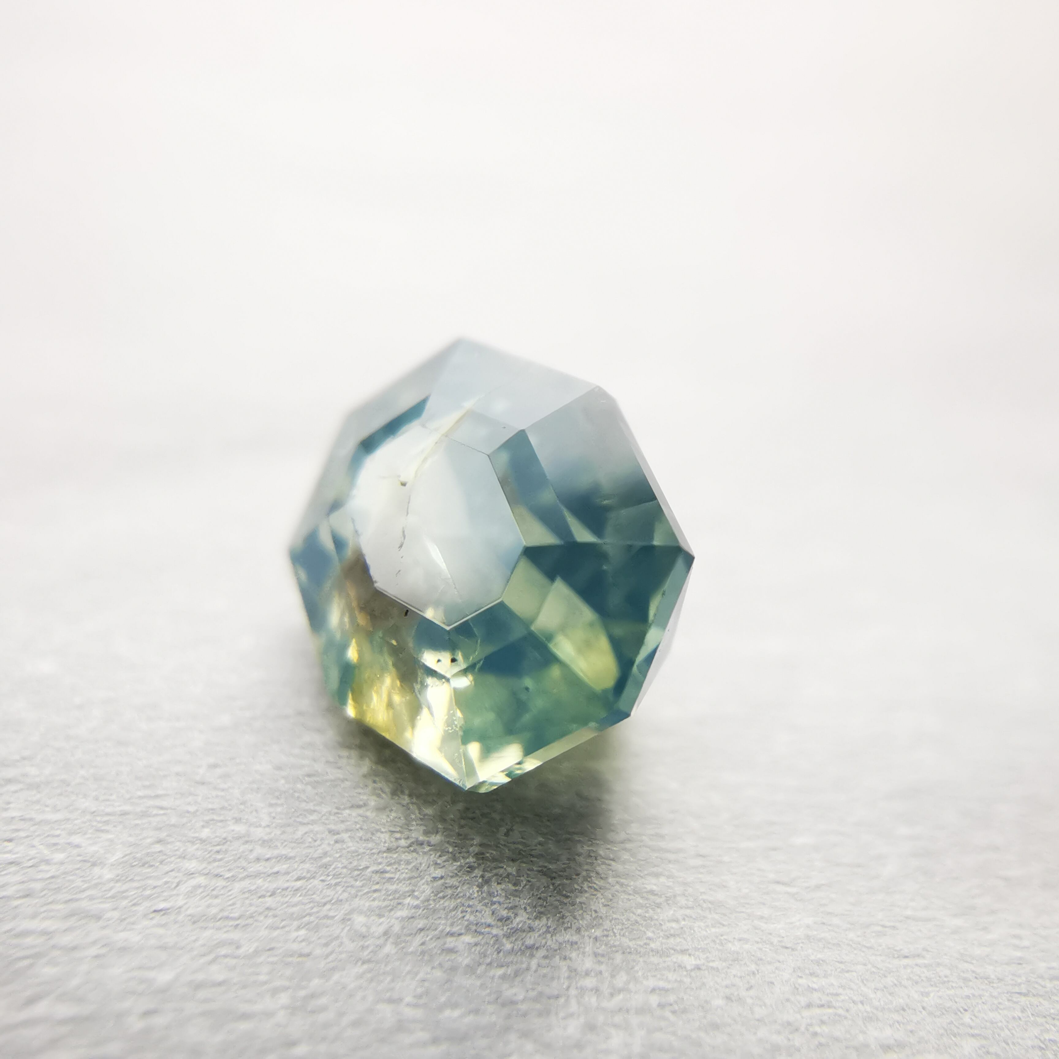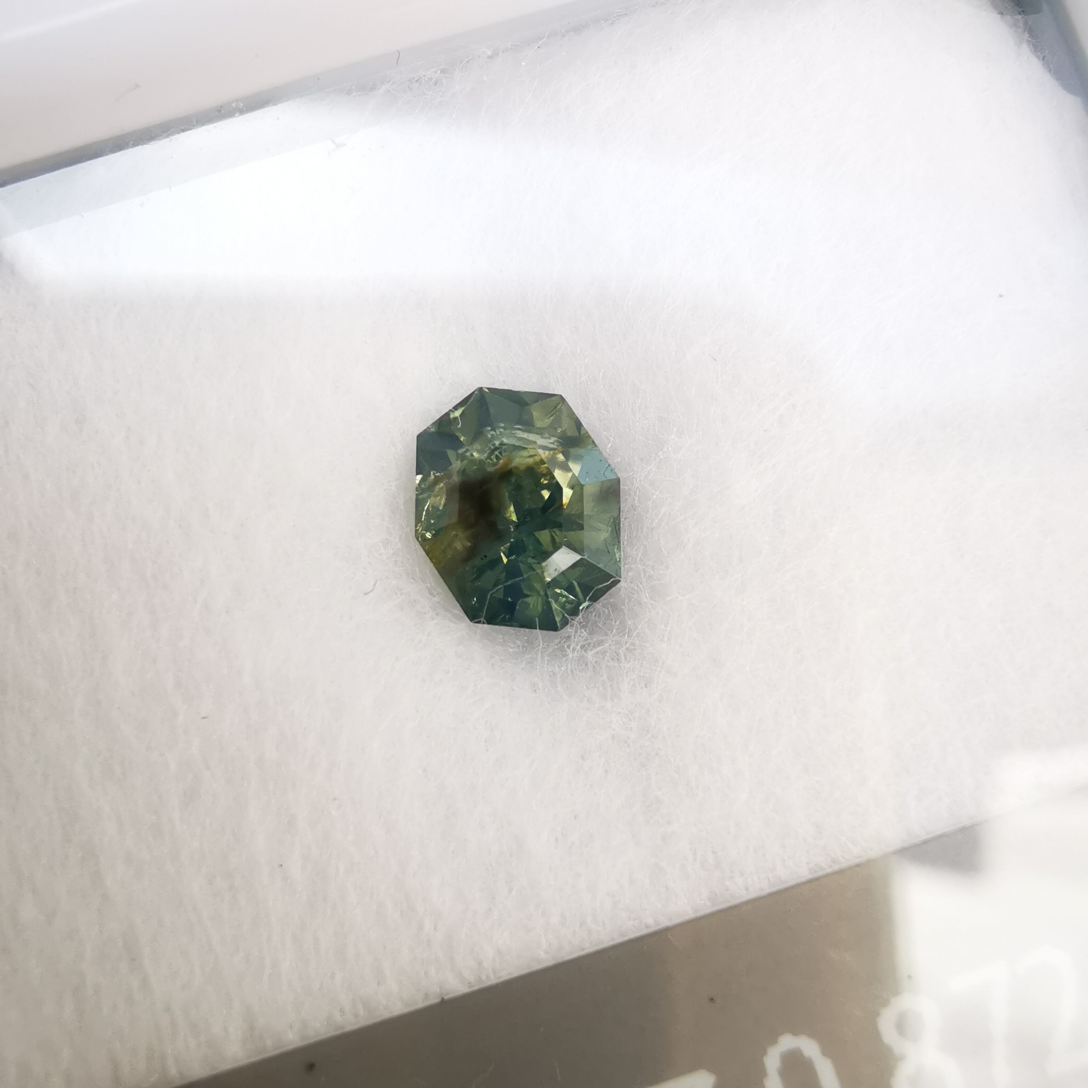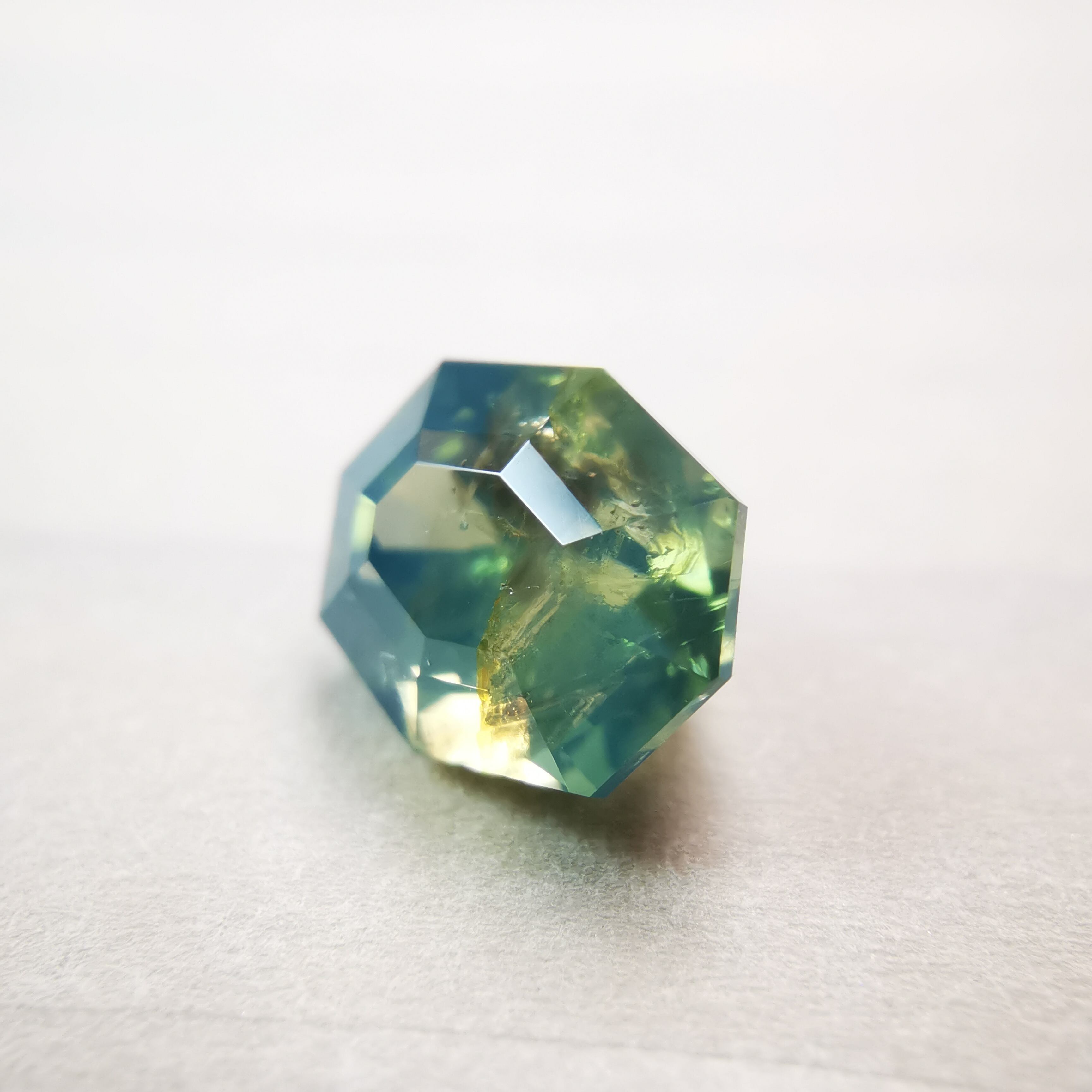 灰みの黄みの緑/セージグリーンに、緑みの黄みの黒/エボニー色のインクルージョンが入っています。