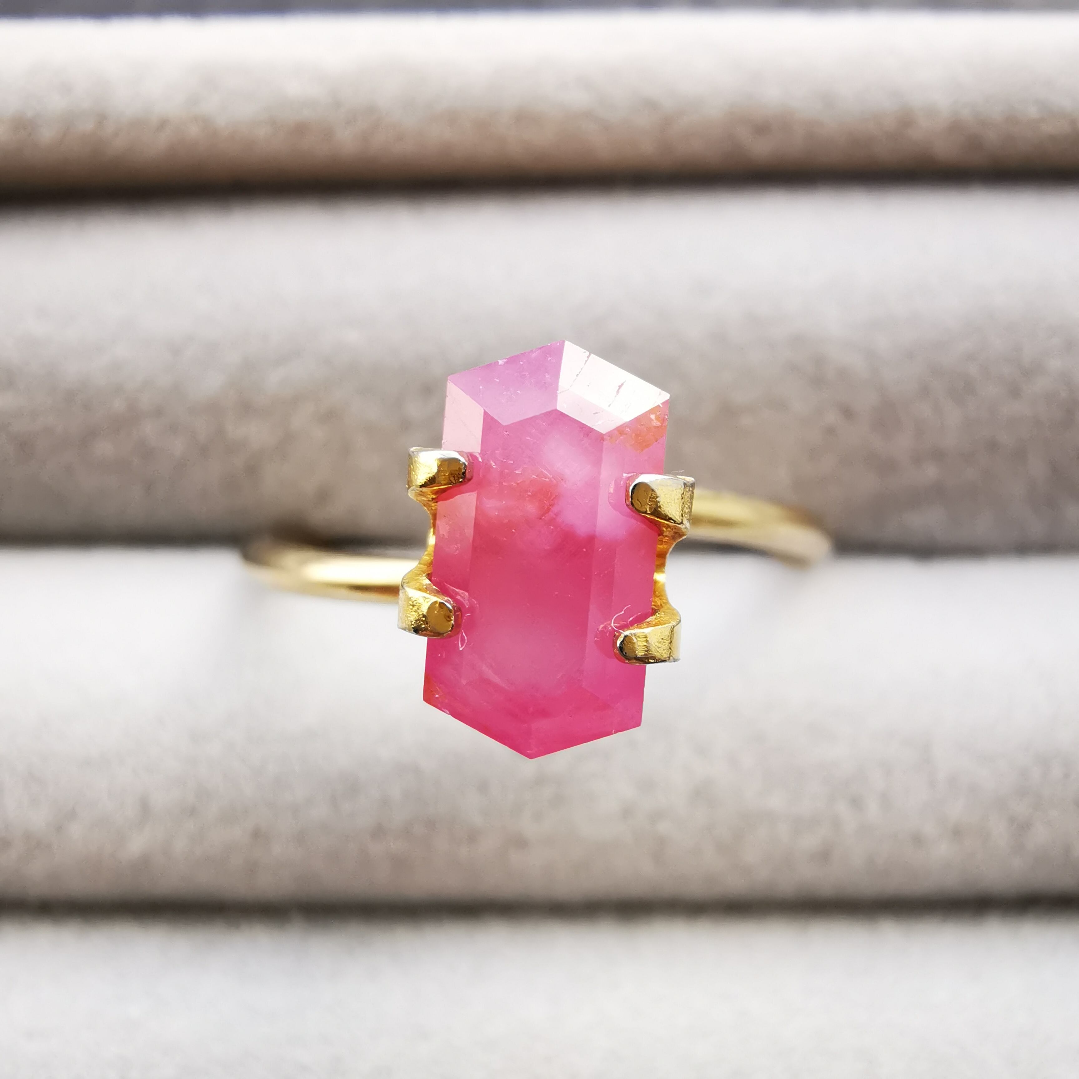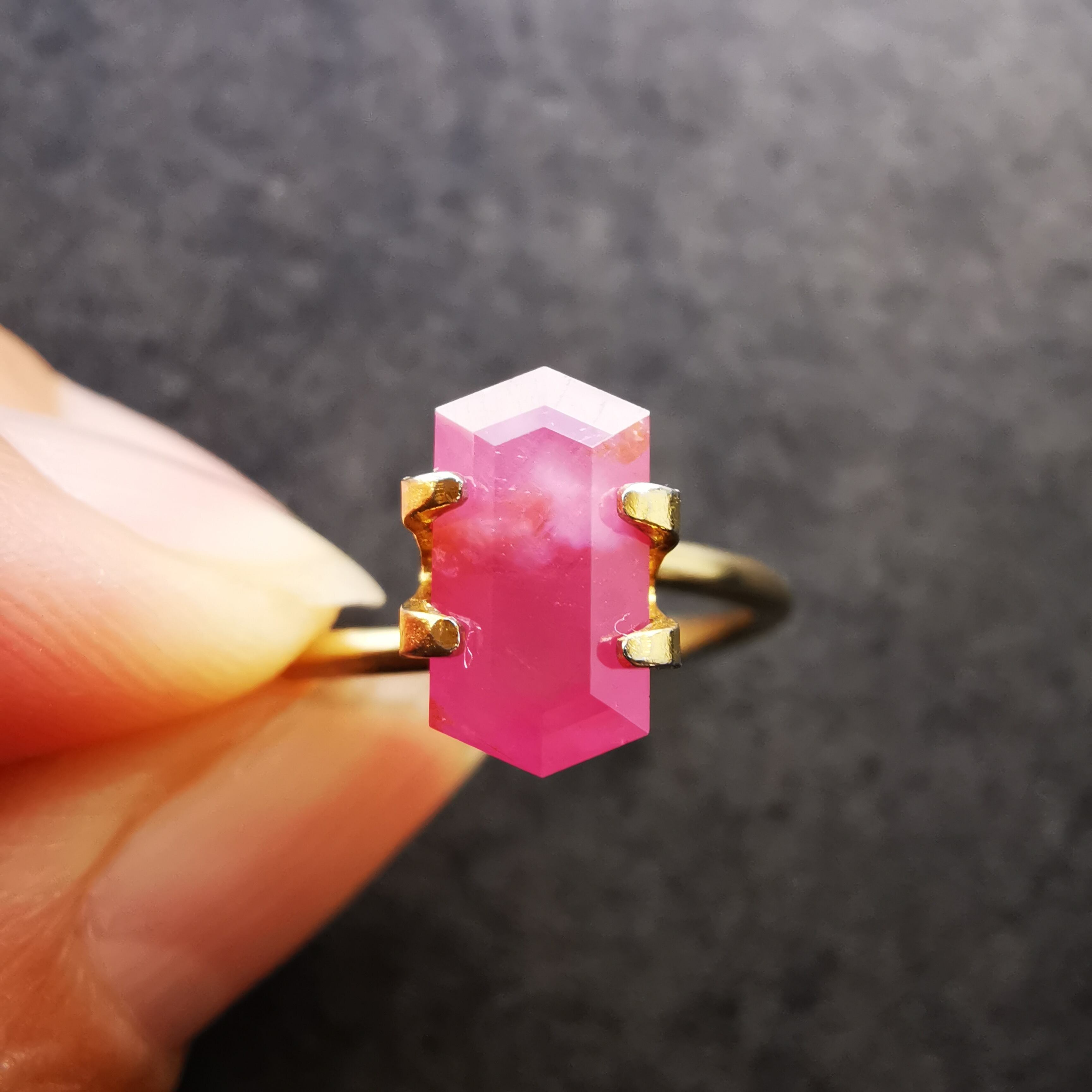 ピンク系サファイアはキャンディを連想しがちですが、これは舐めたら舌がピンクに染まる甘〜いタイプのキャンディです。