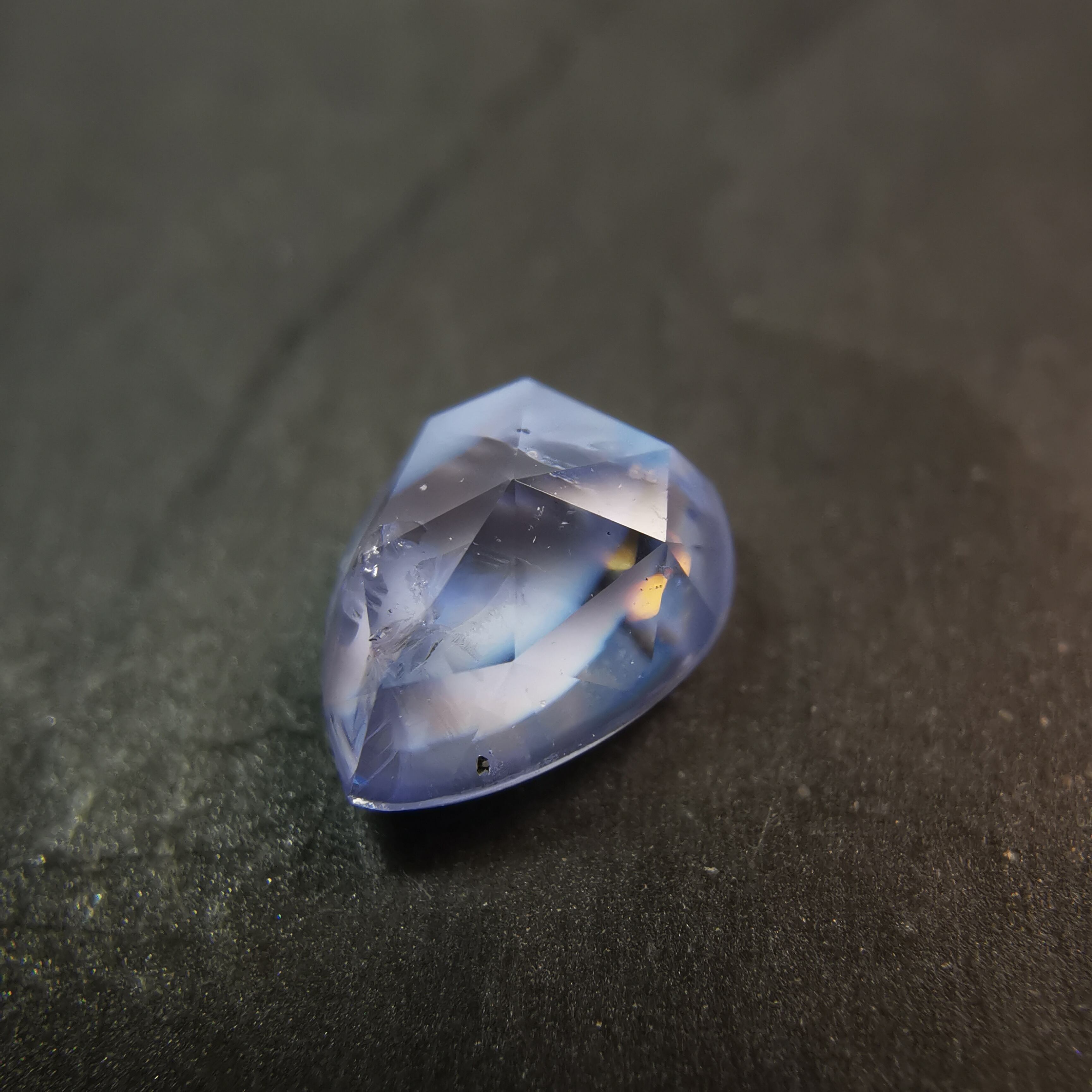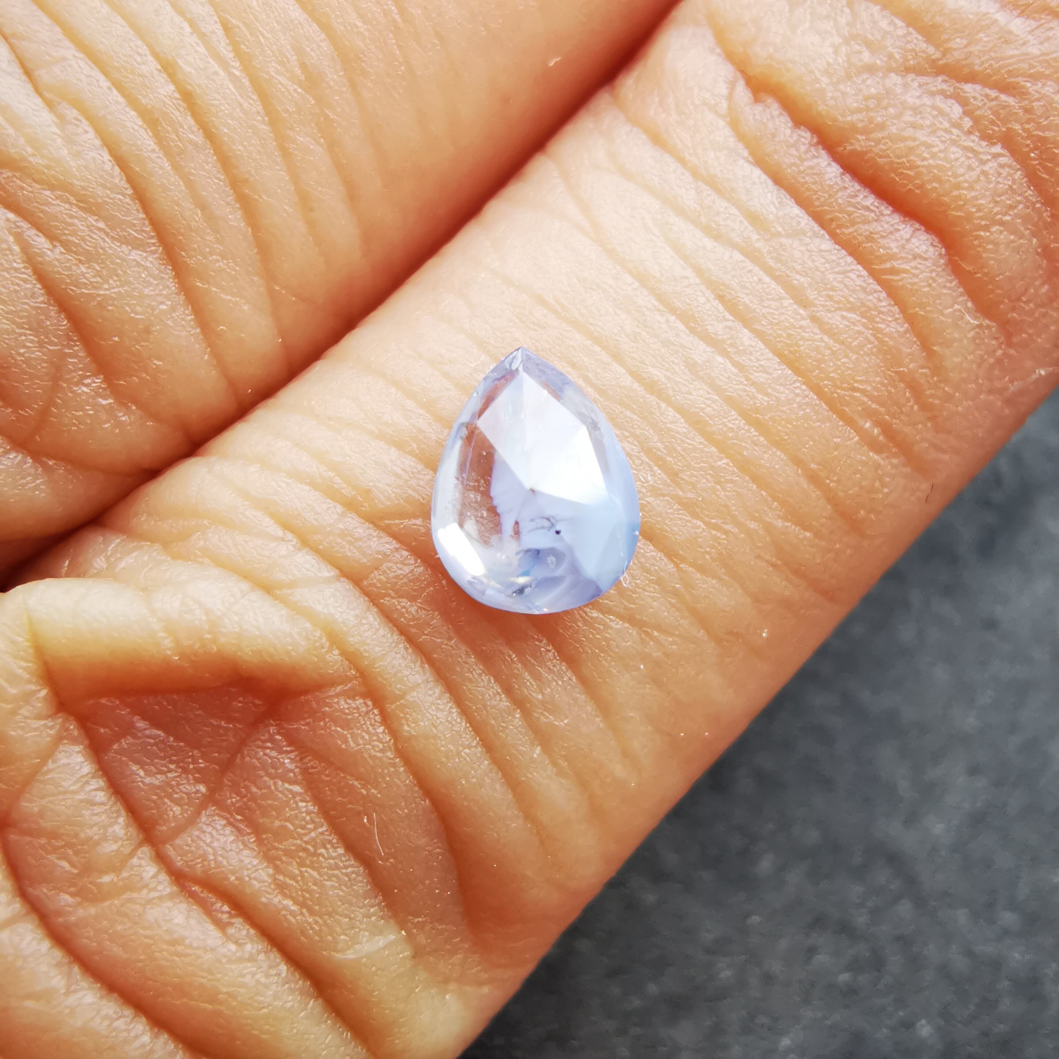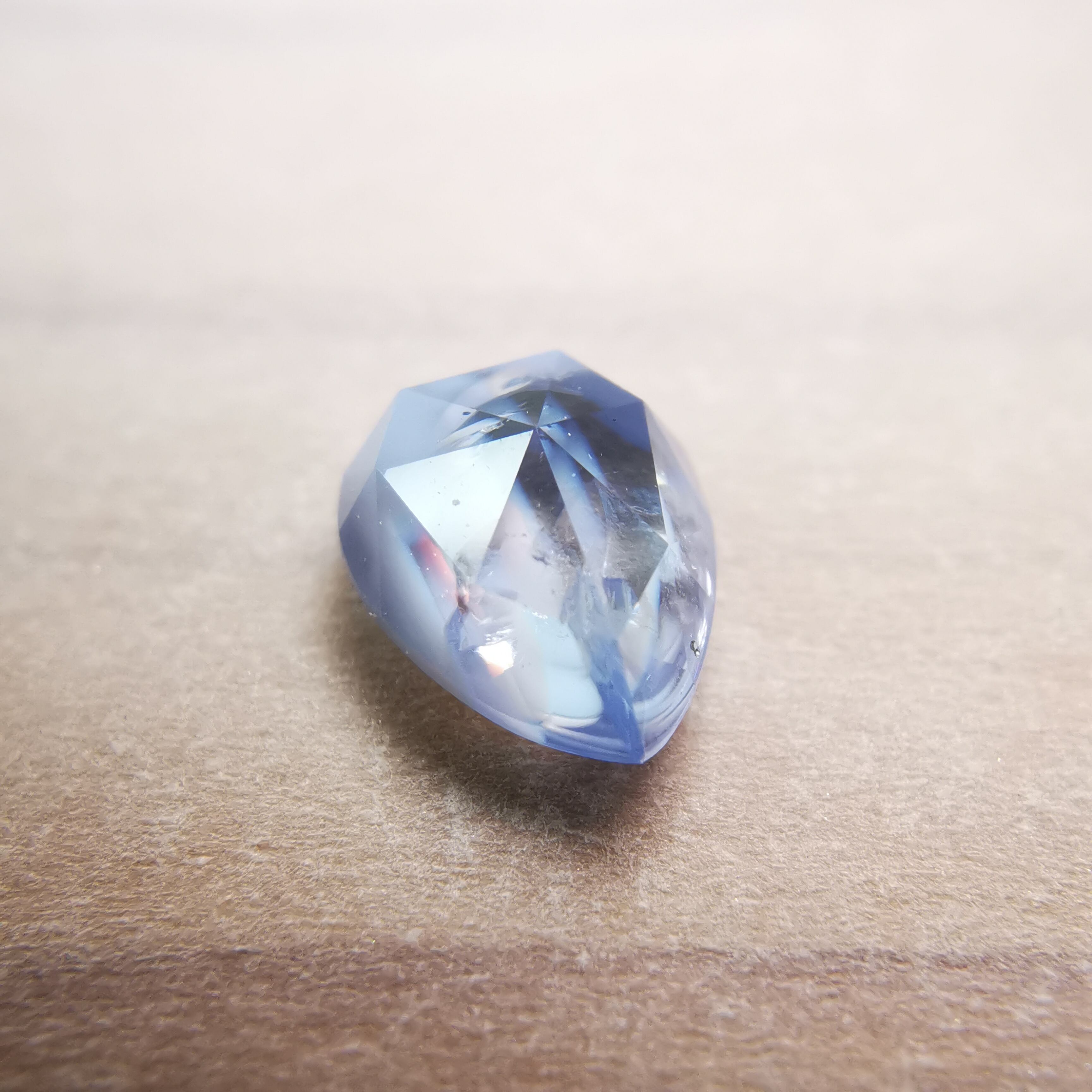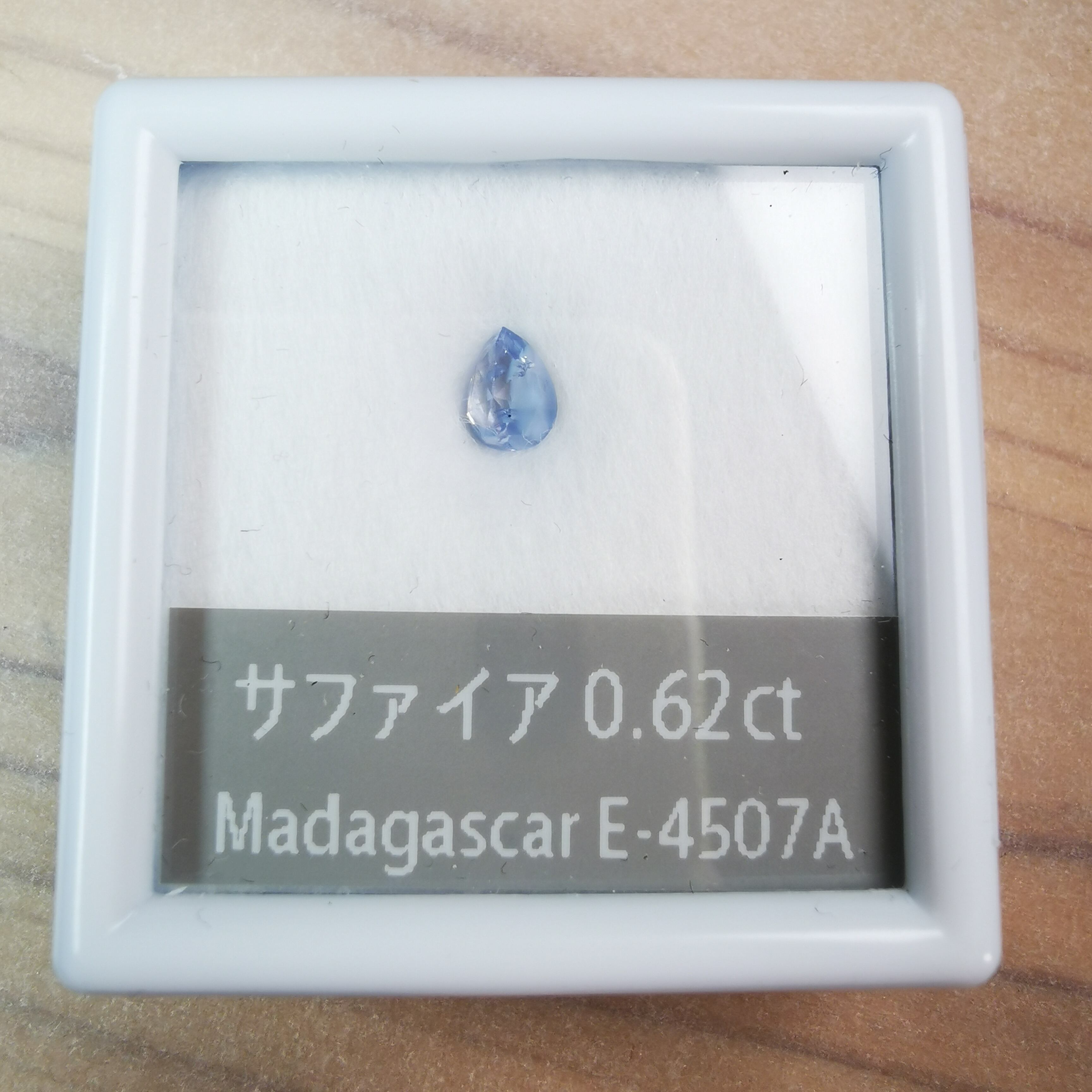 これまでにもいくつか紹介してきた、ローズカットのペアシェイプ、濃厚なグレーが印象的なサファイアロットの中の一石です。