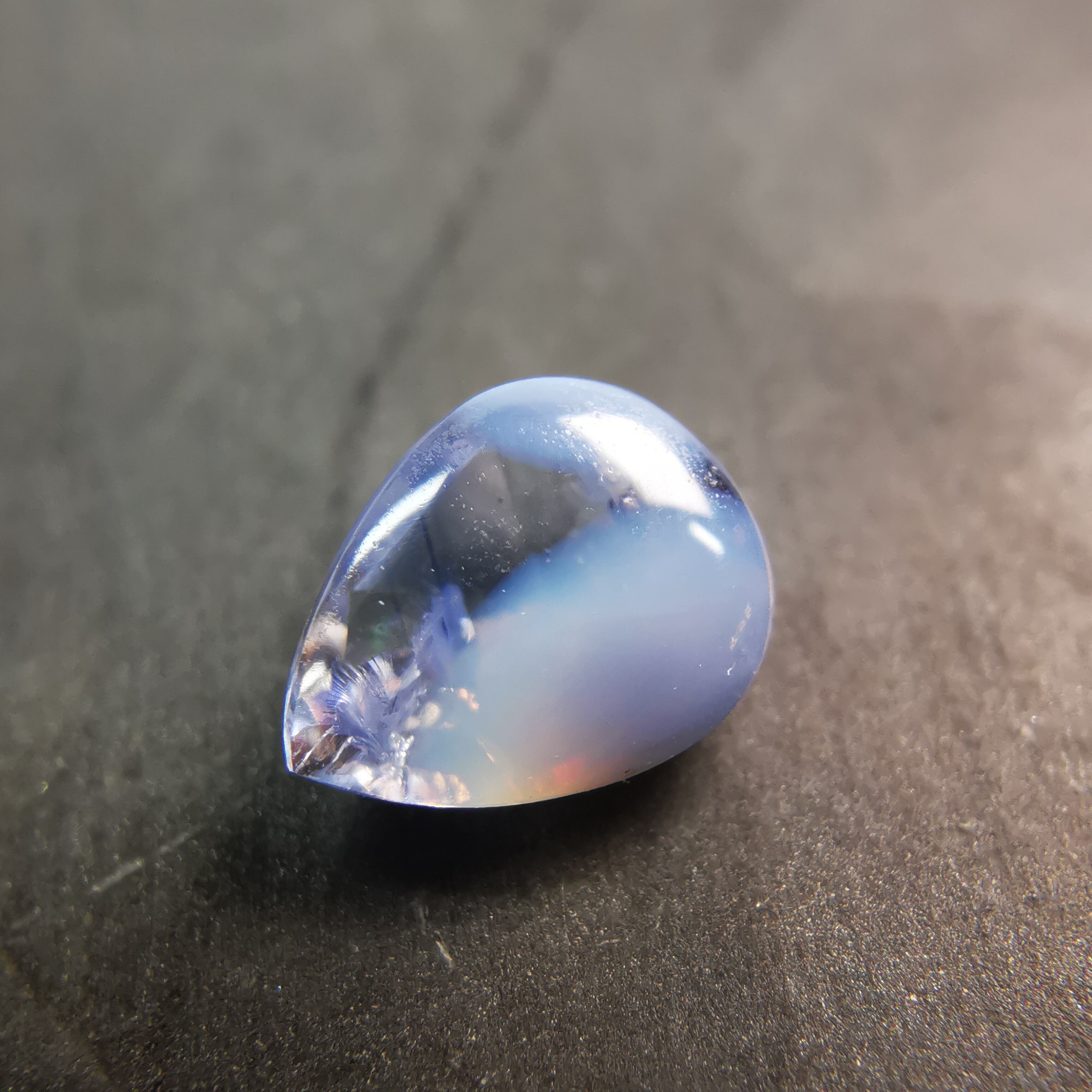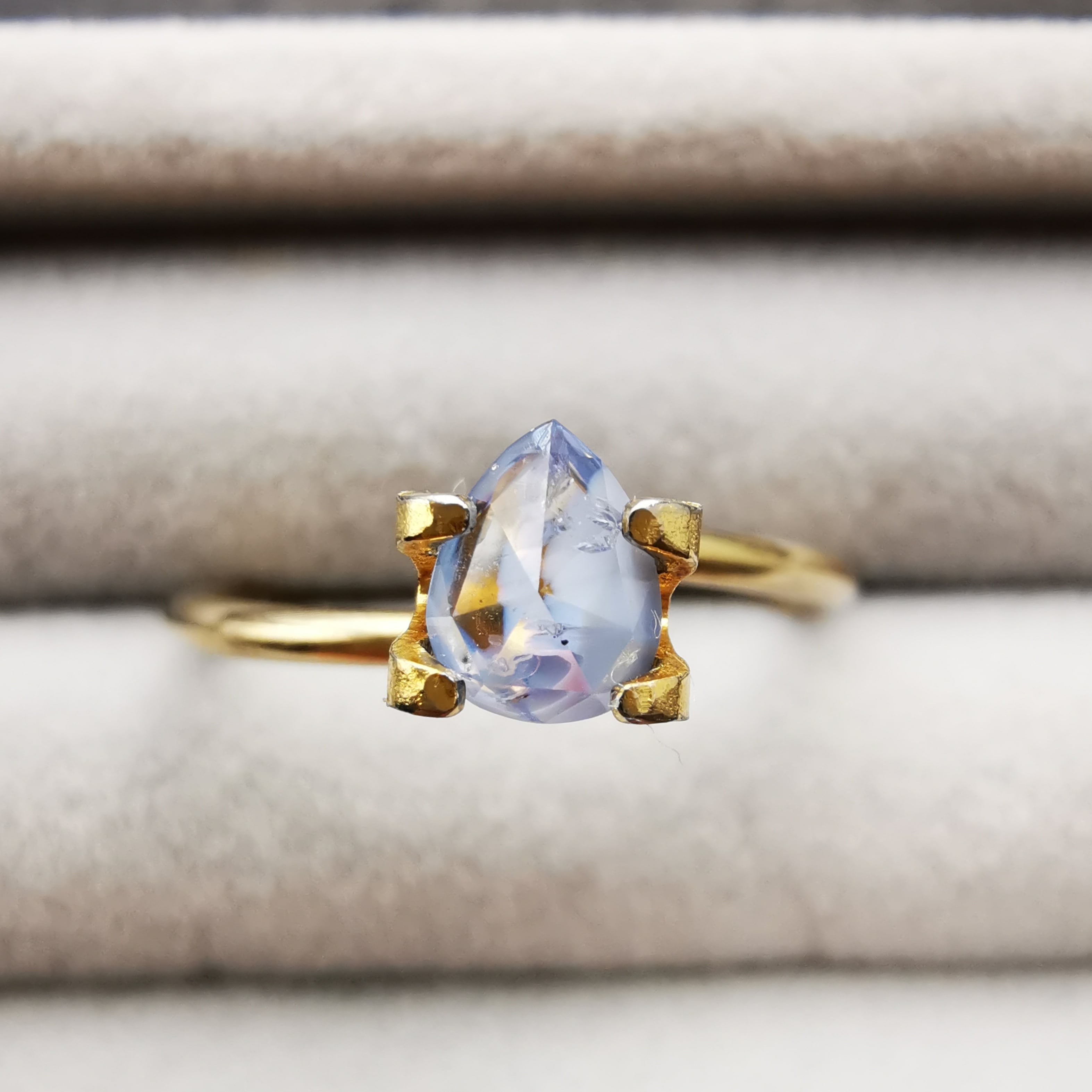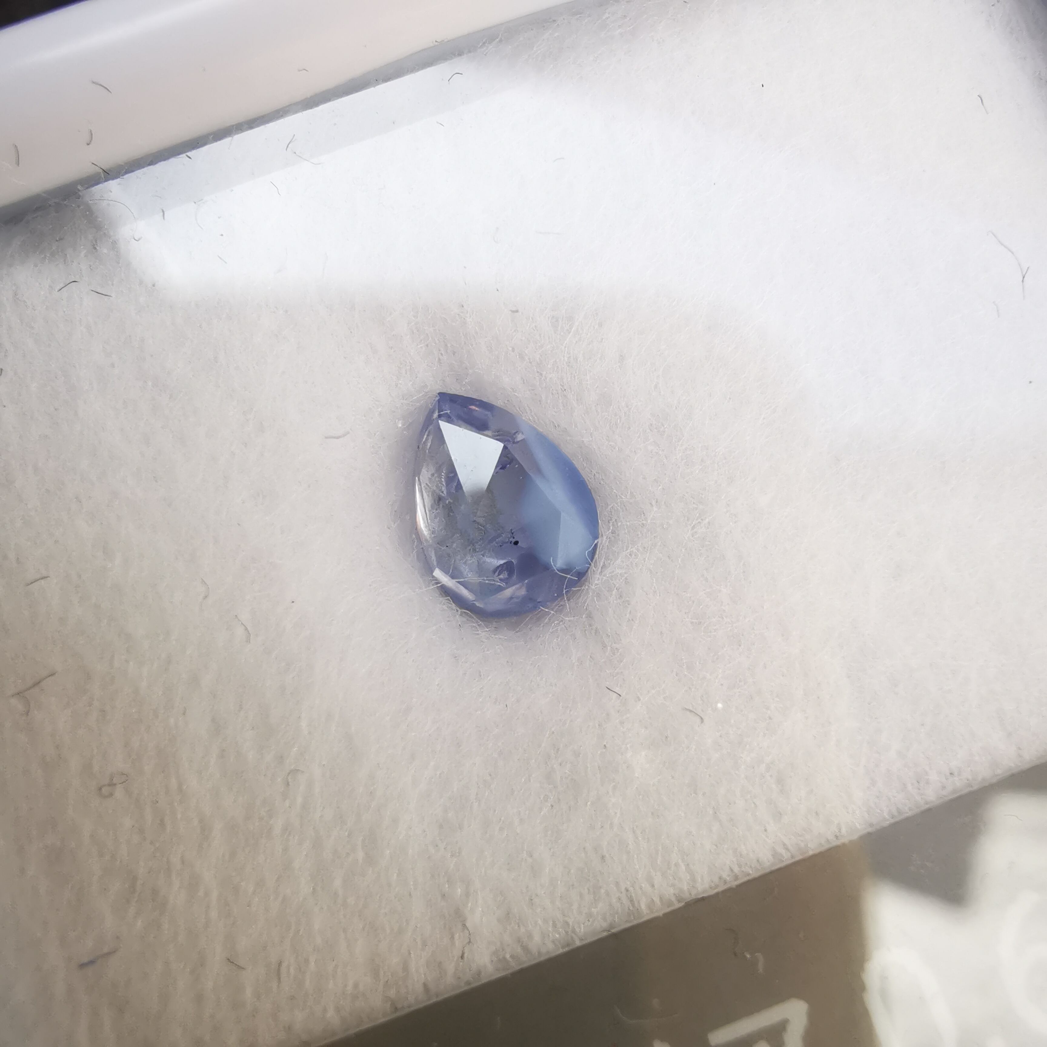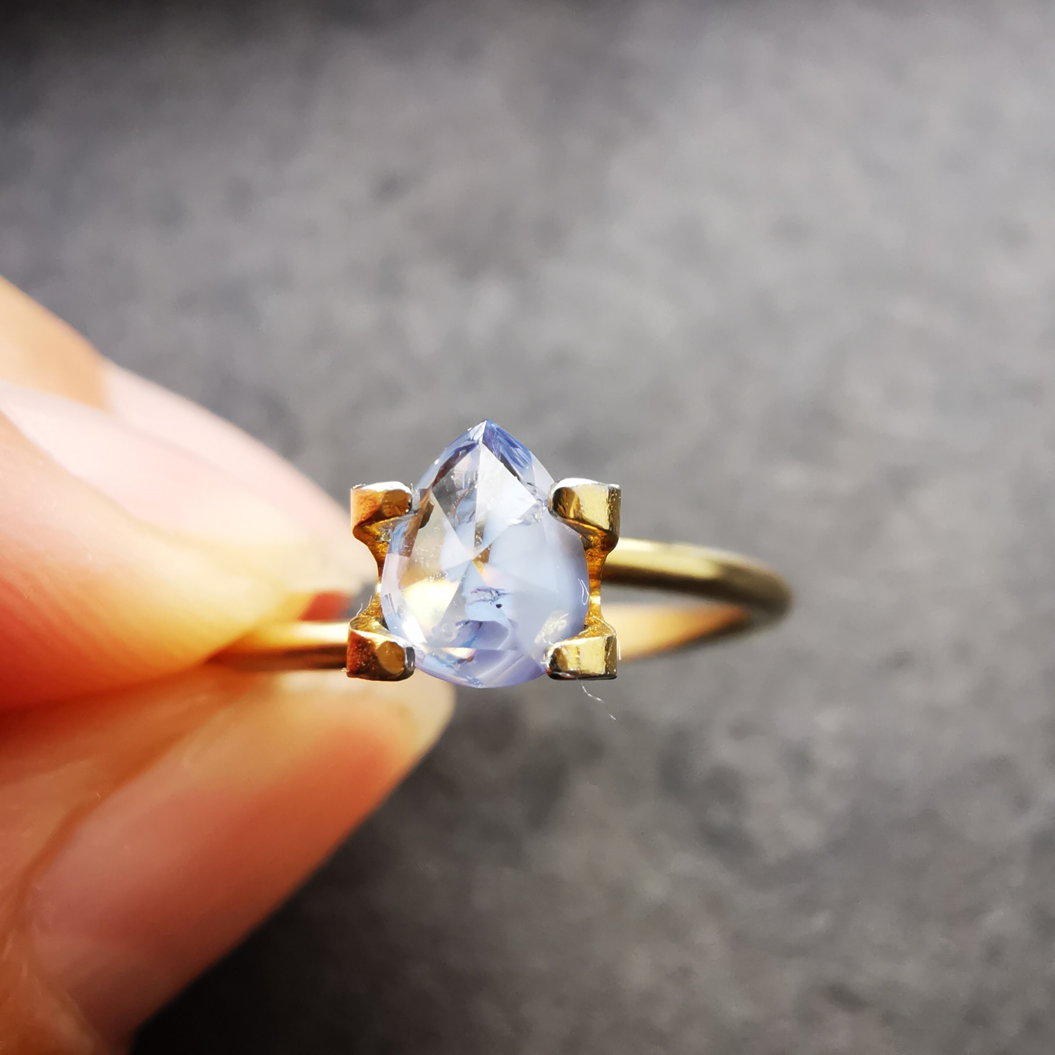 これまでにもいくつか紹介してきた、ローズカットのペアシェイプ、濃厚なグレーが印象的なサファイアロットの中の一石です。