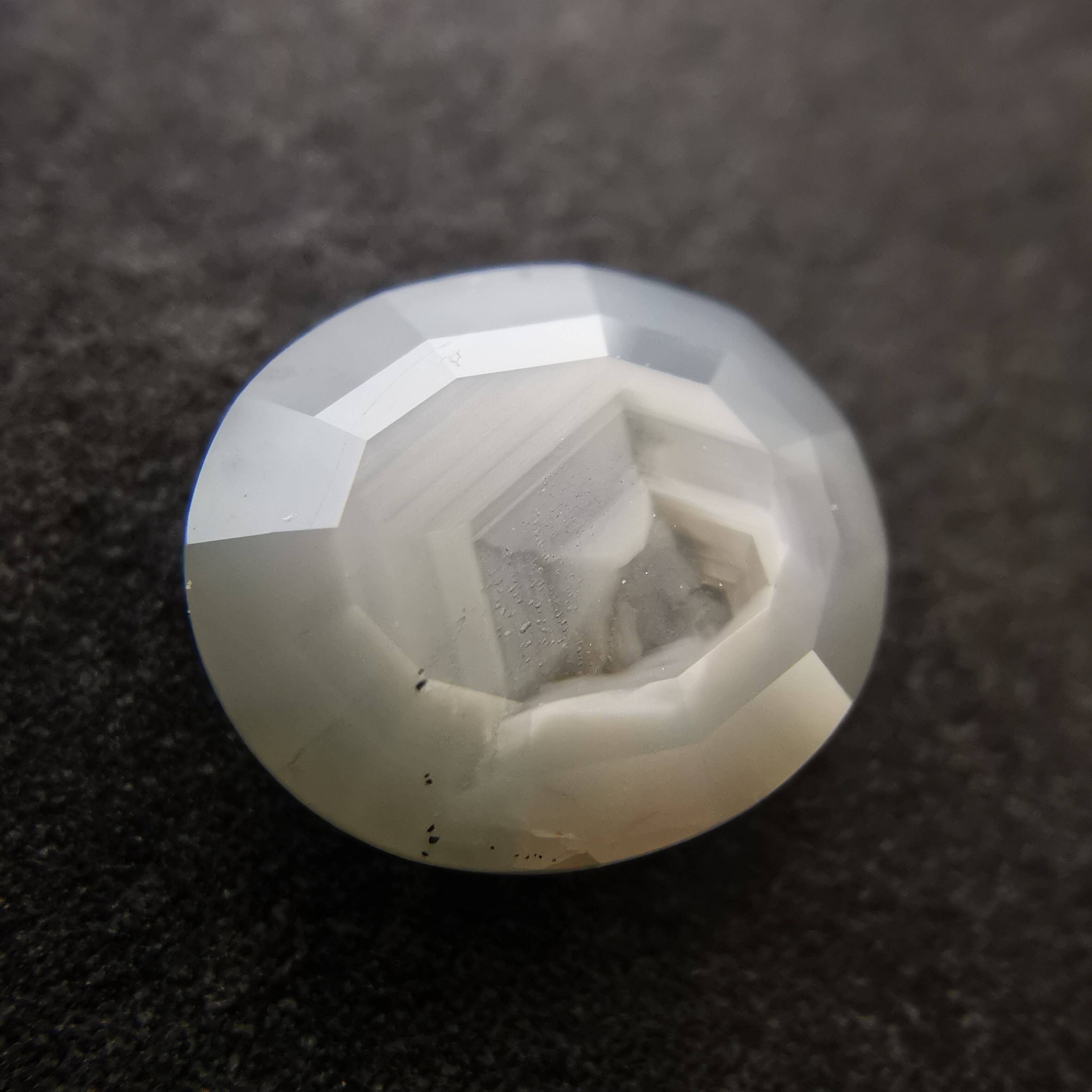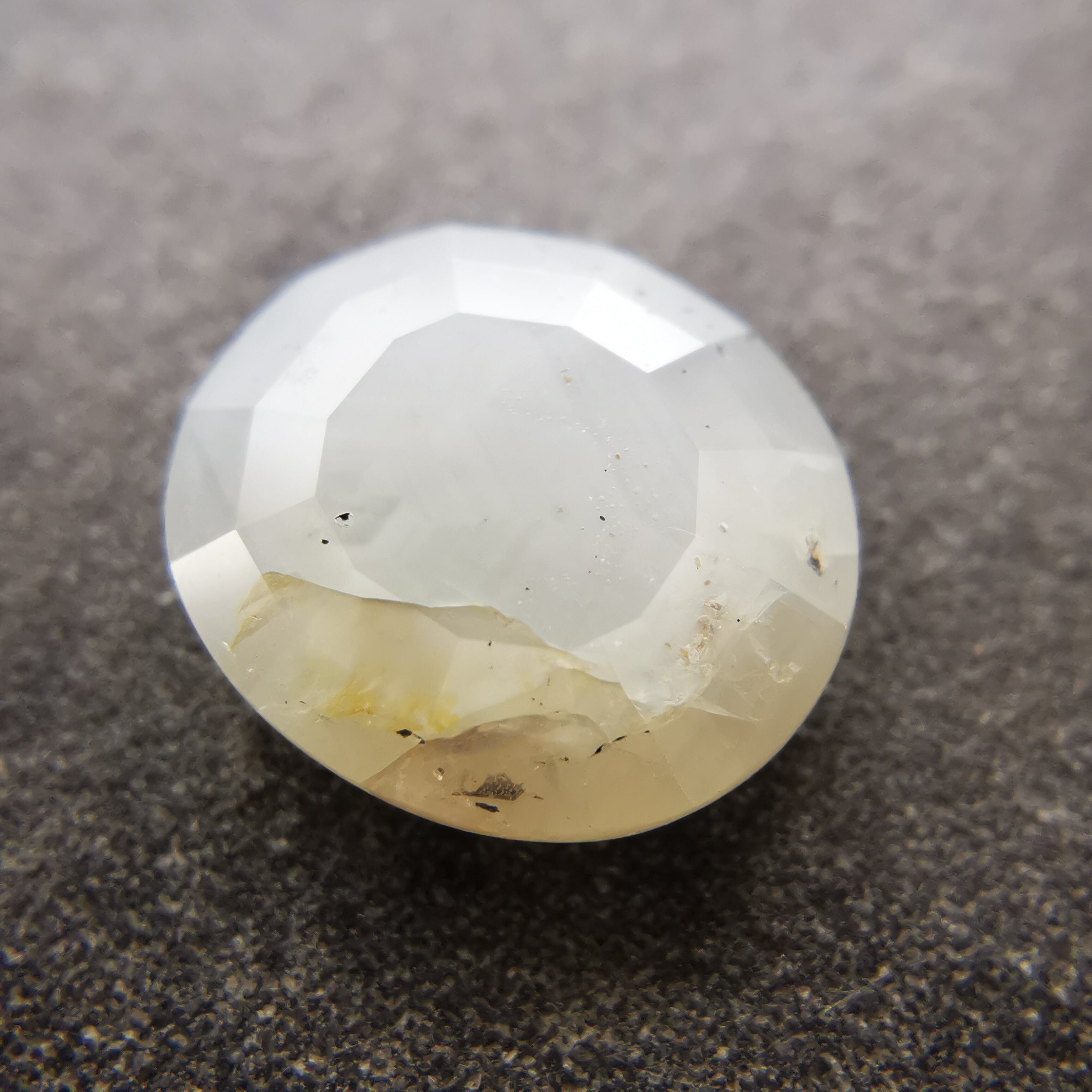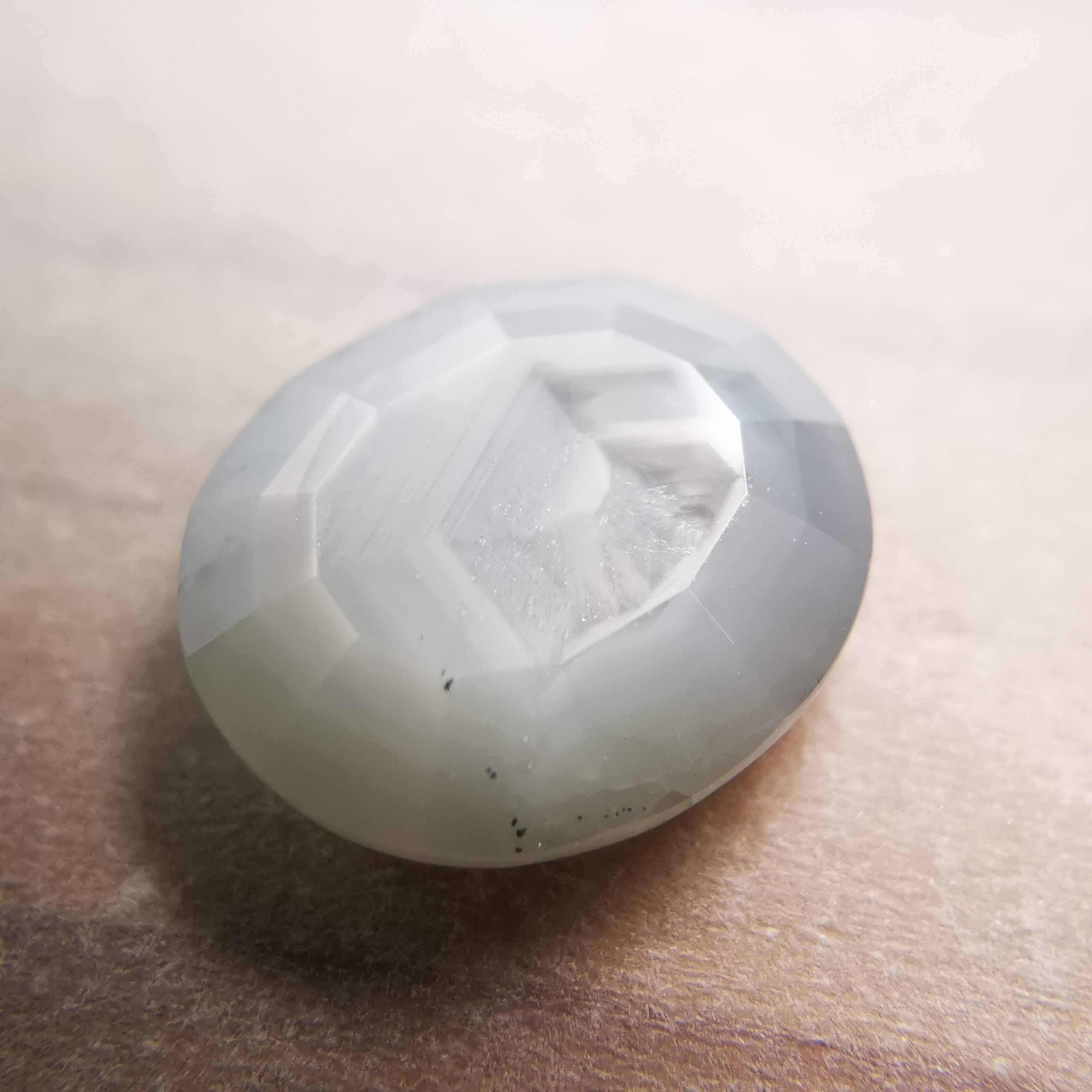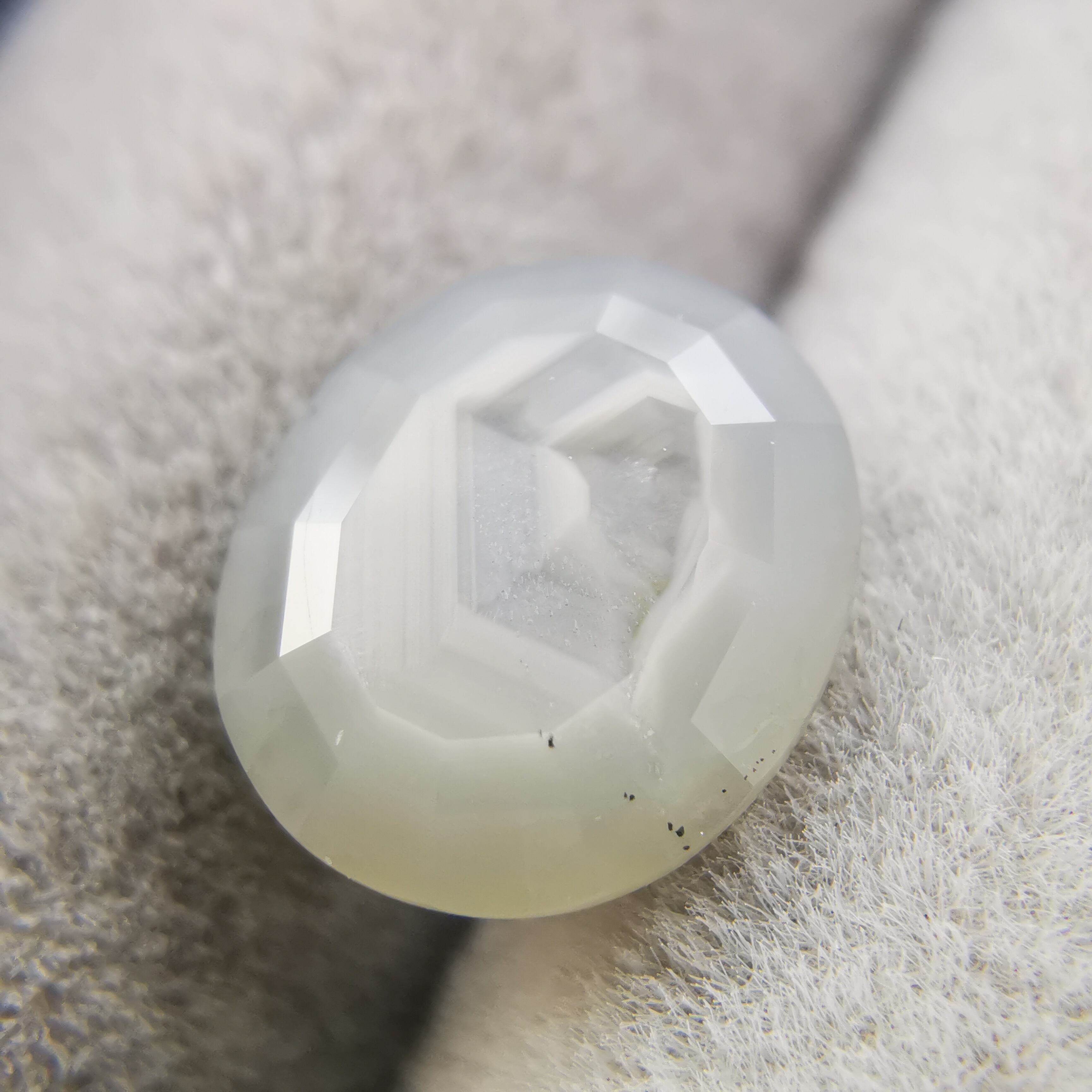 全体がシルクインクルージョンで満たされているので、光が当たると表面のカットのエッジが光ります。