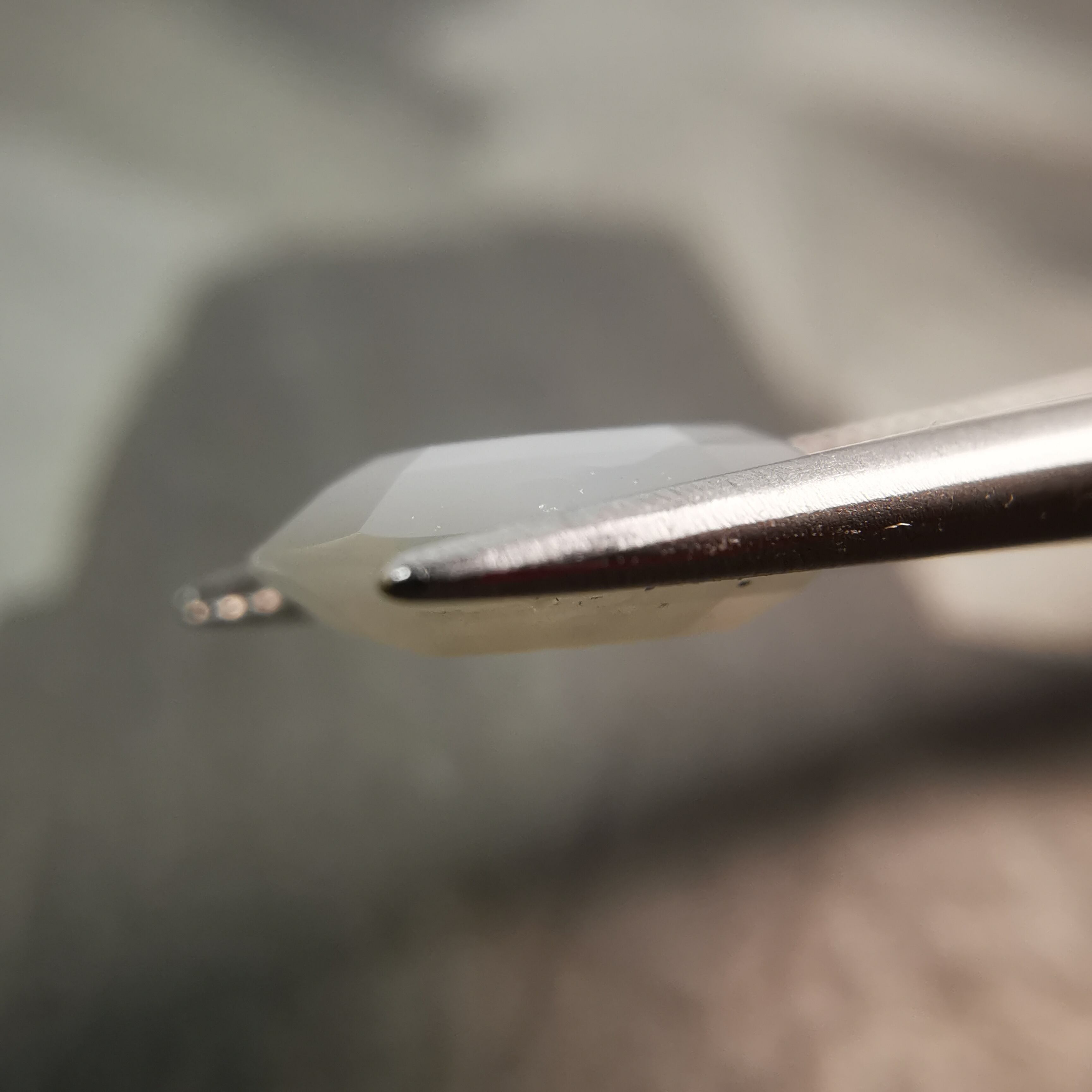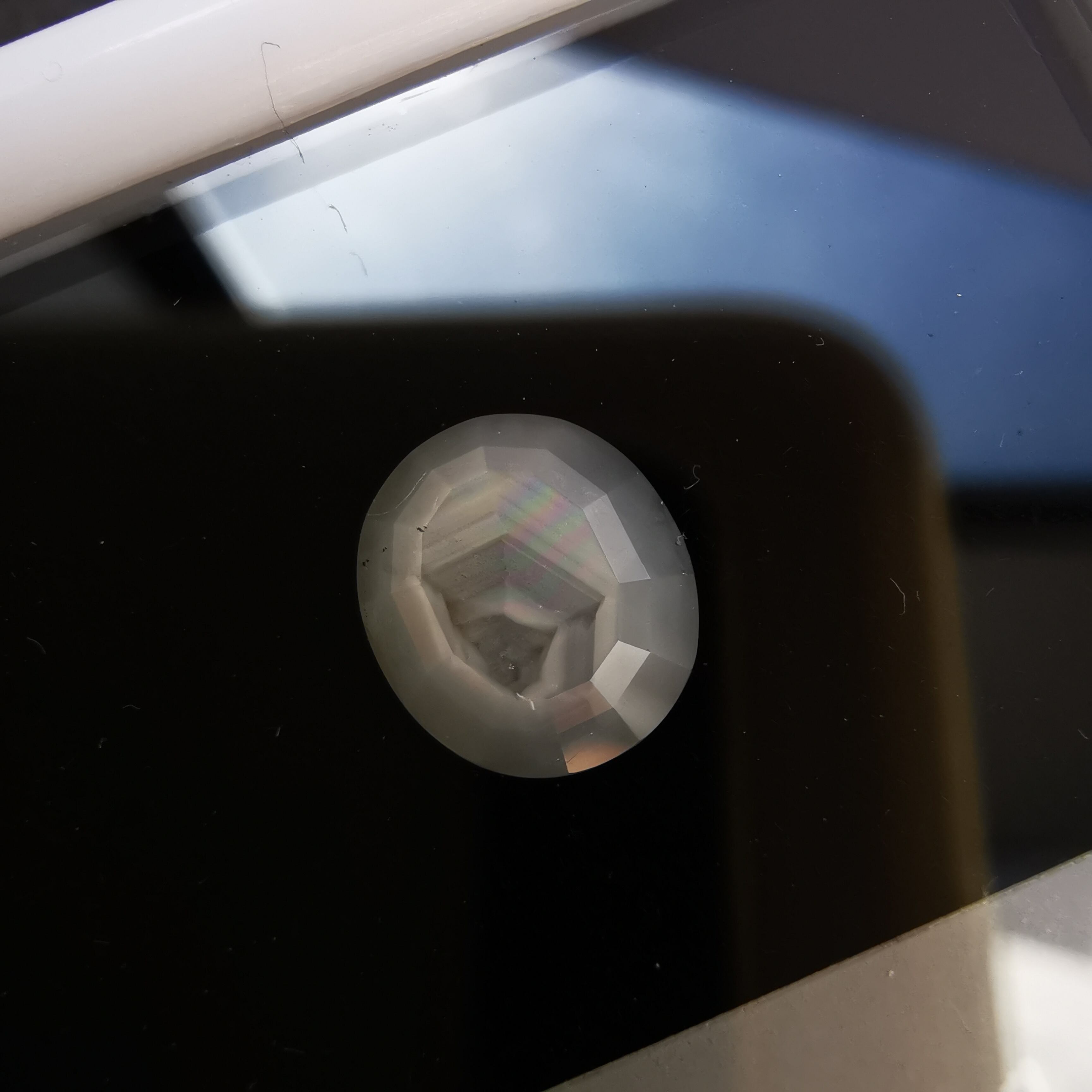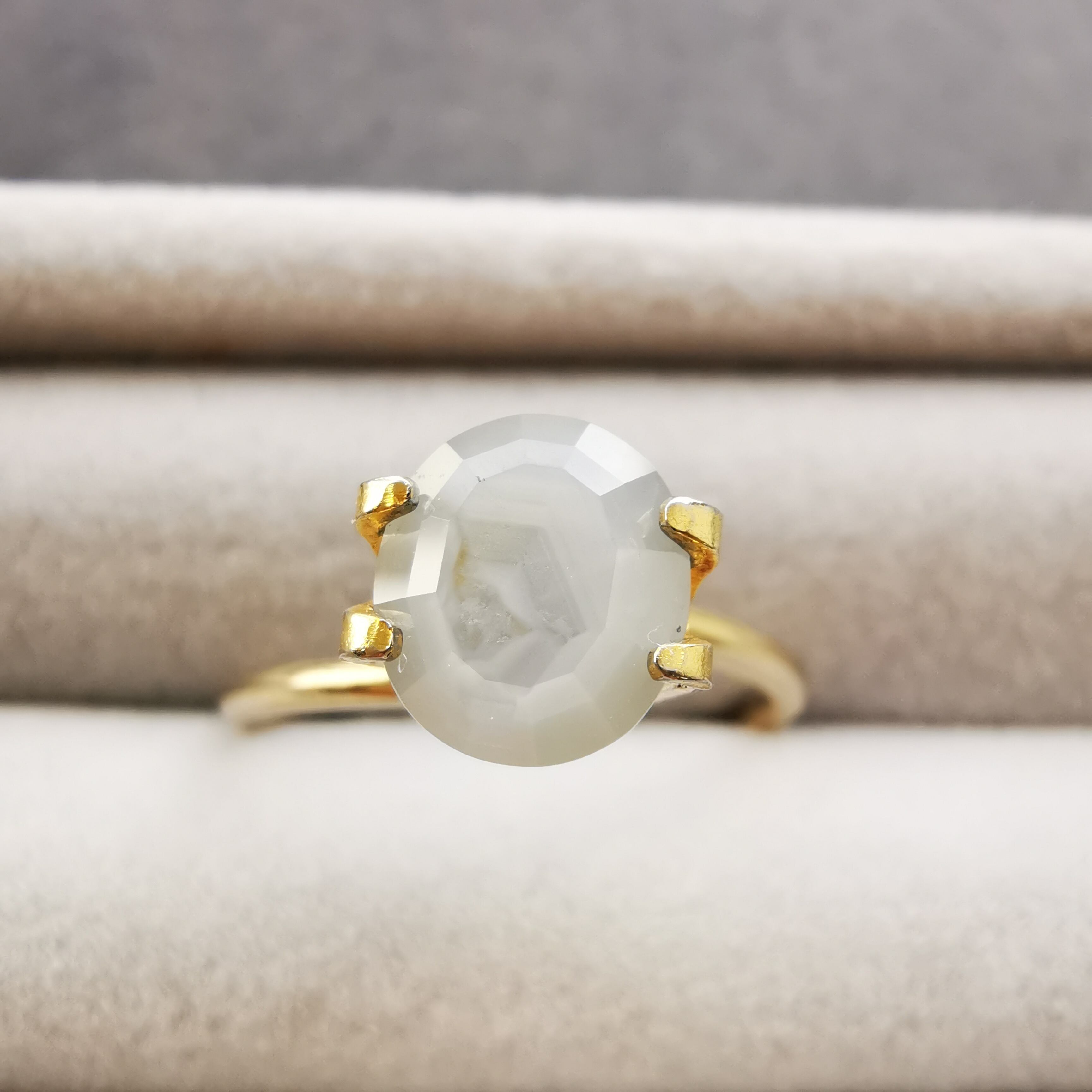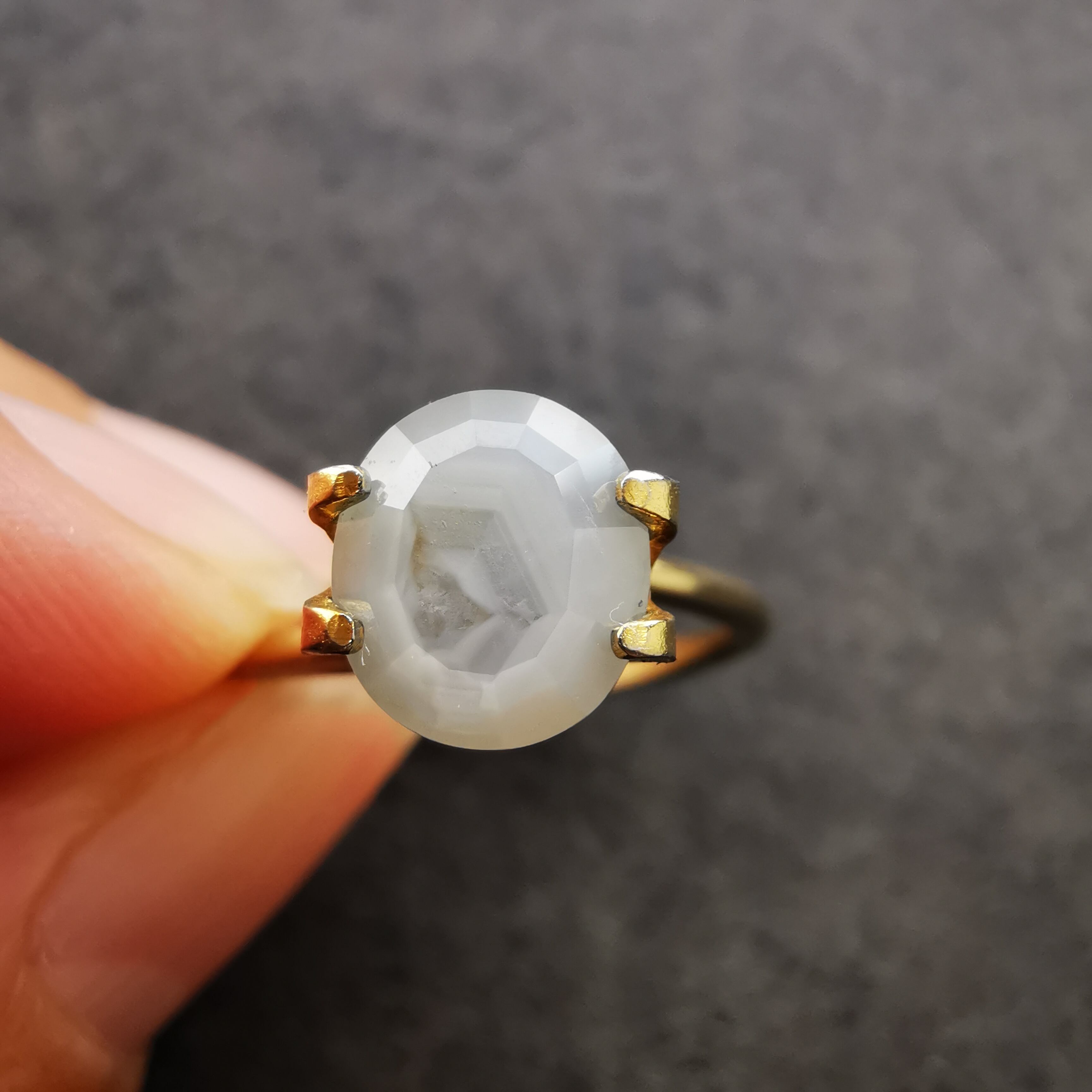 全体がシルクインクルージョンで満たされているので、光が当たると表面のカットのエッジが光ります。