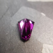 暗い石の中から、鮮やかな赤紫/フクシアパープルのきらめきがこぼれるパープルガーネットです。