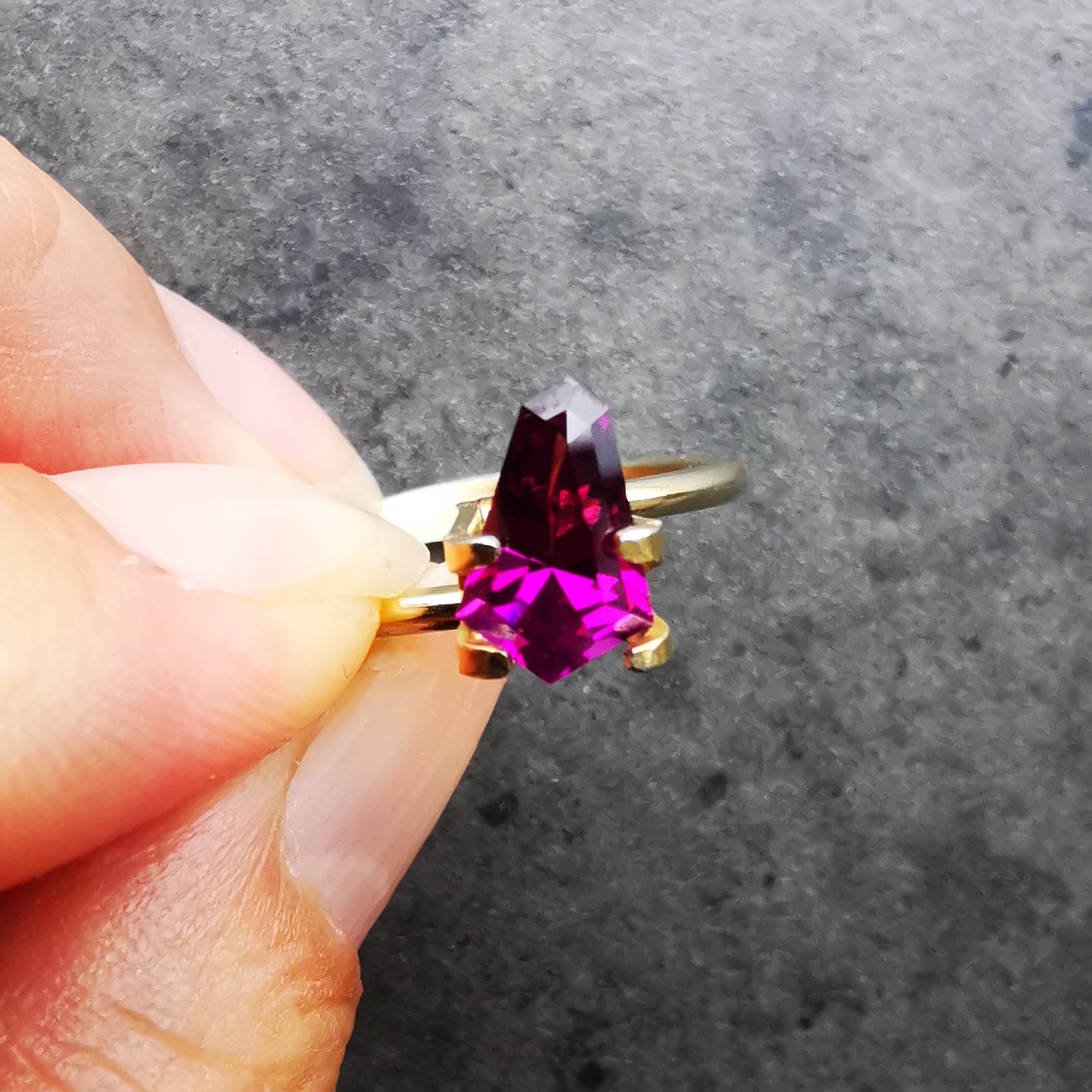 マラウィ産の原石を仕入れて、きりりと鋭いシールドカットにしました。