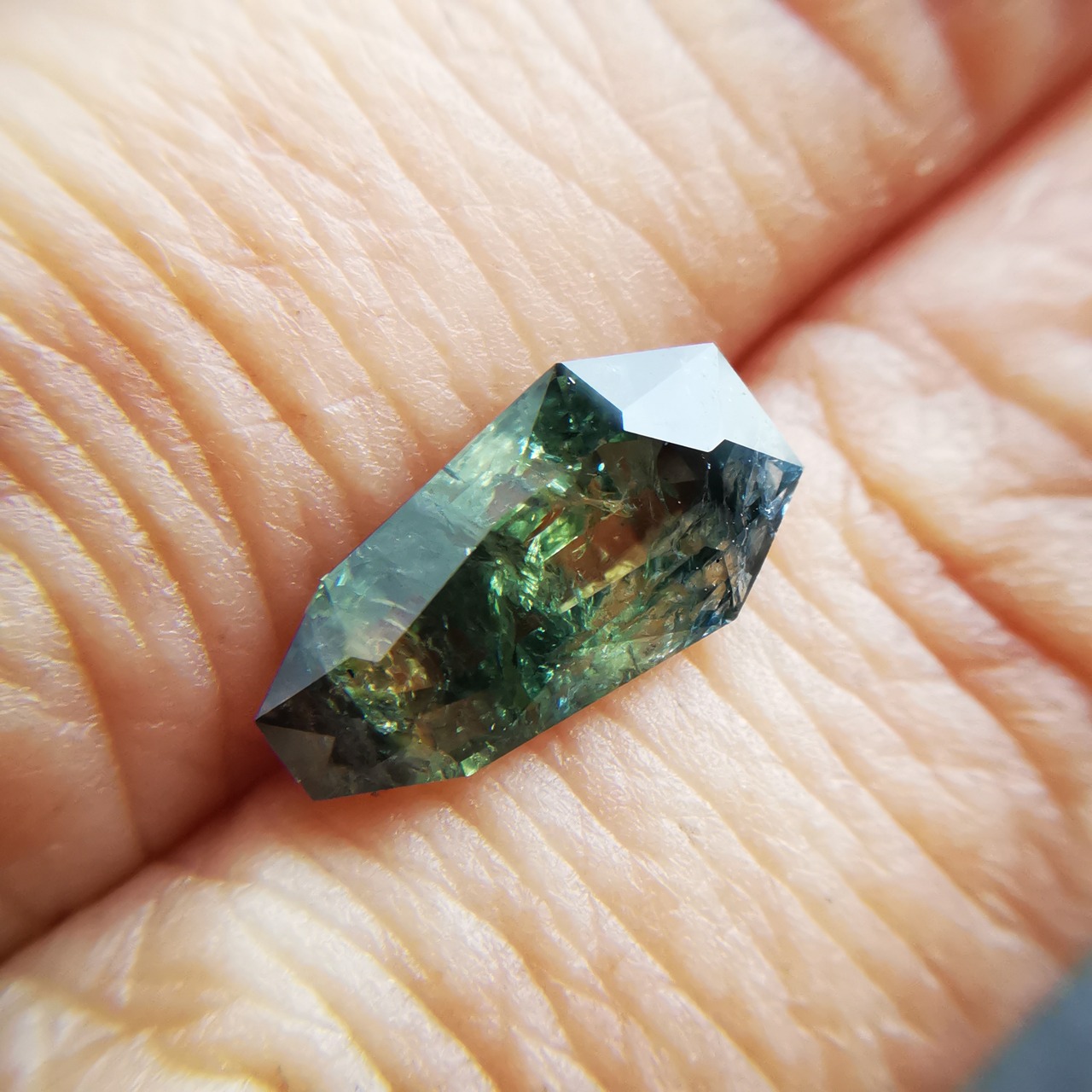 ガチャガチャとしたインクルージョンに光が当たり、キラキラと光ります。
