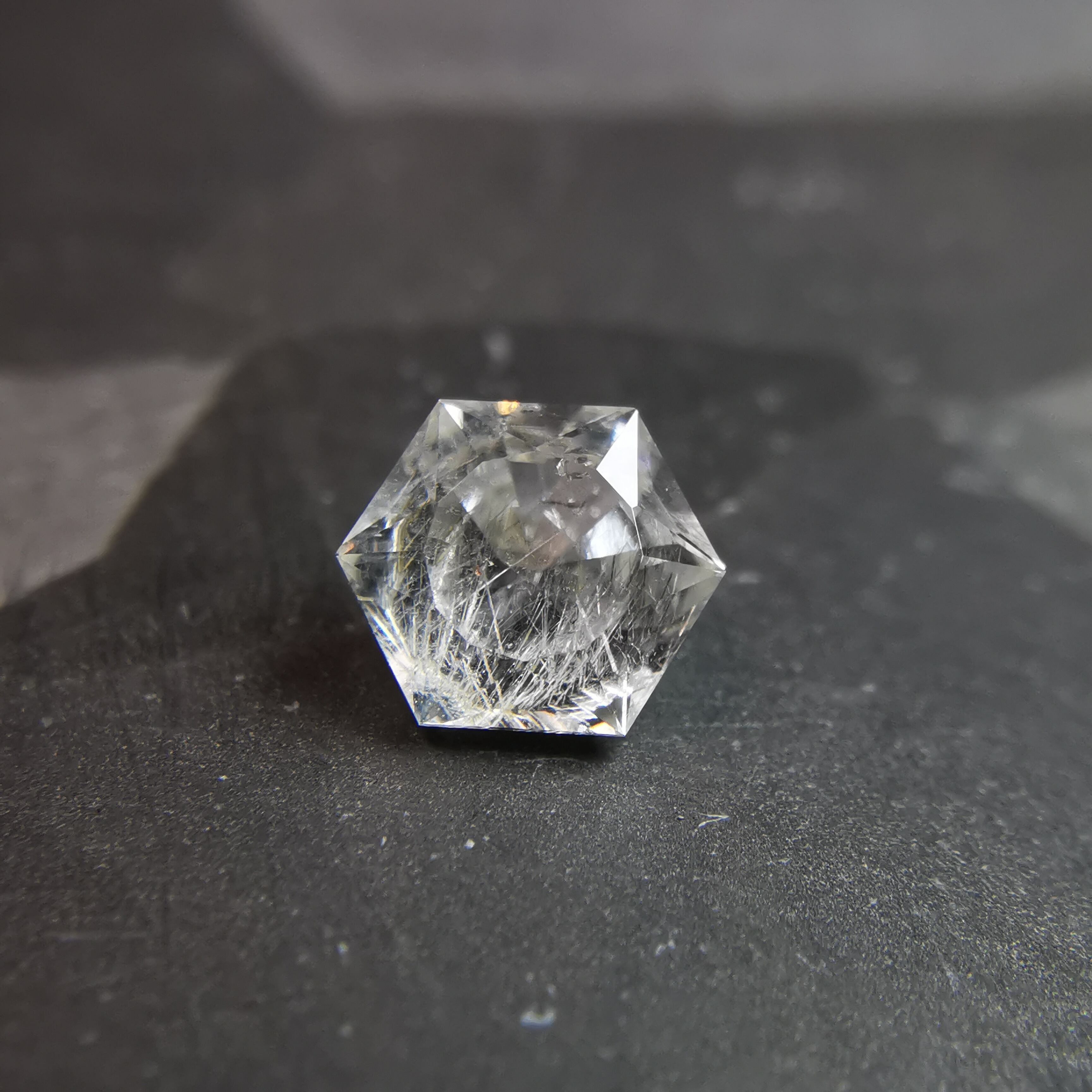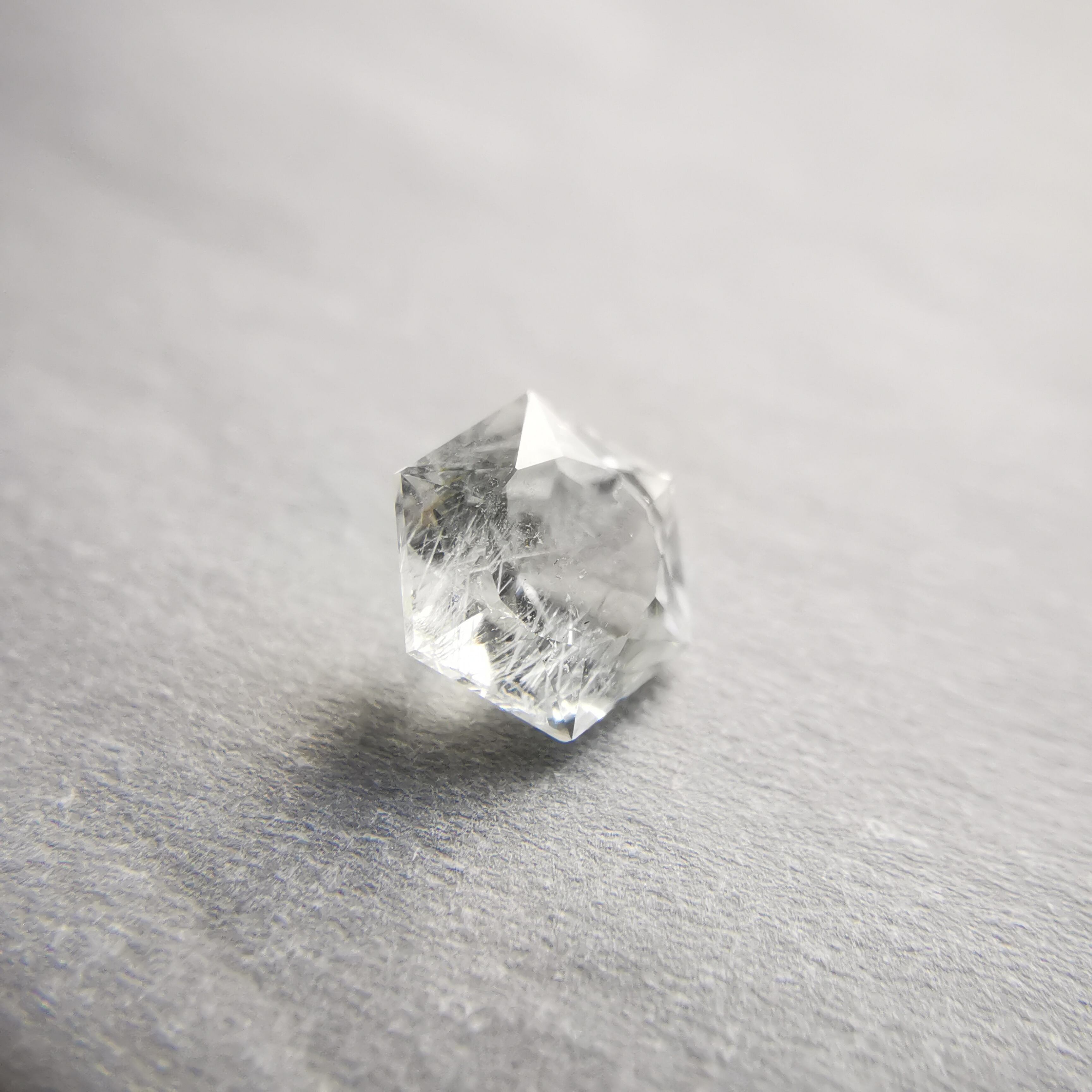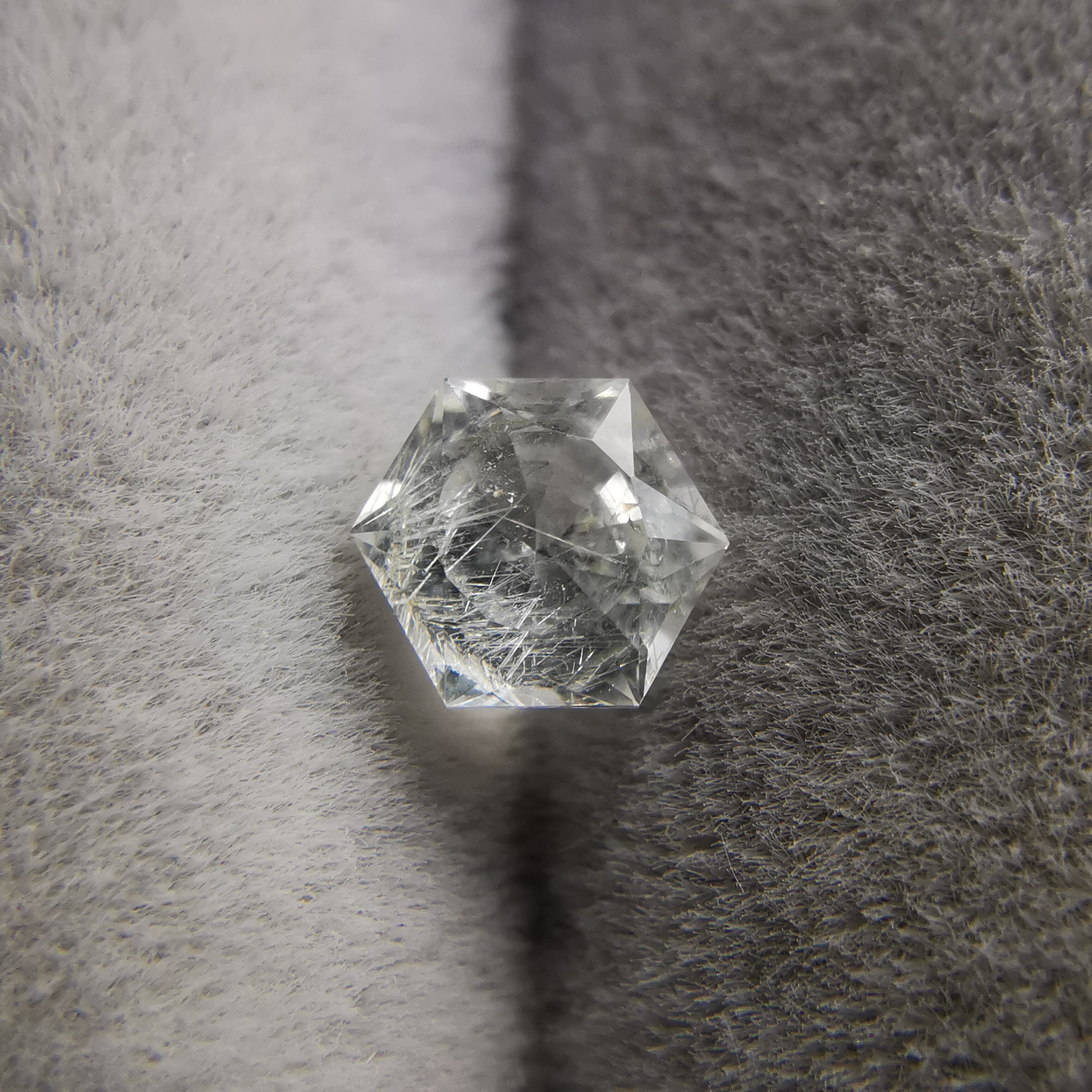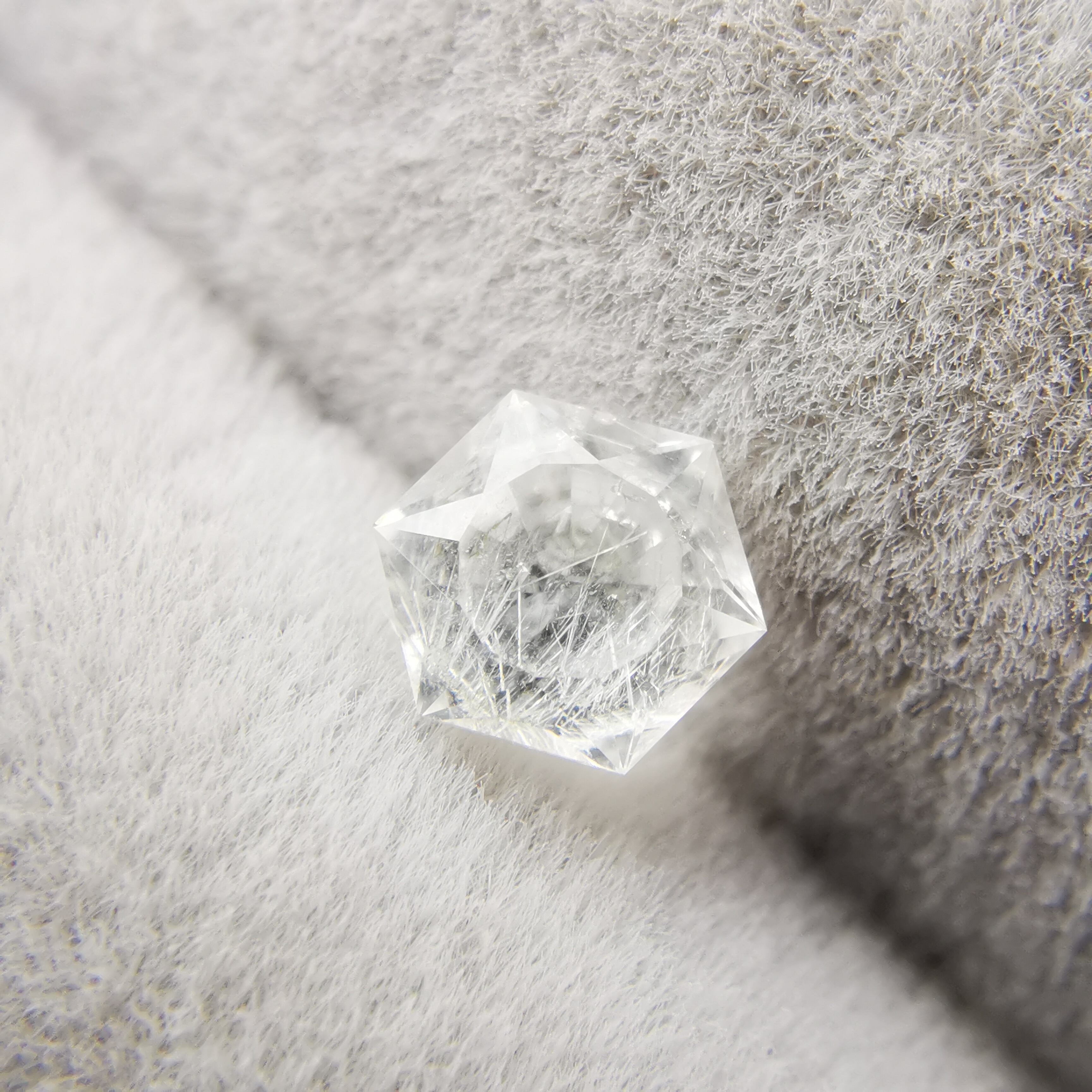 白っぽい針状のインクルージョンが入っているため、クリアと言うよりもホワイトと呼ぶのが相応しいです。
