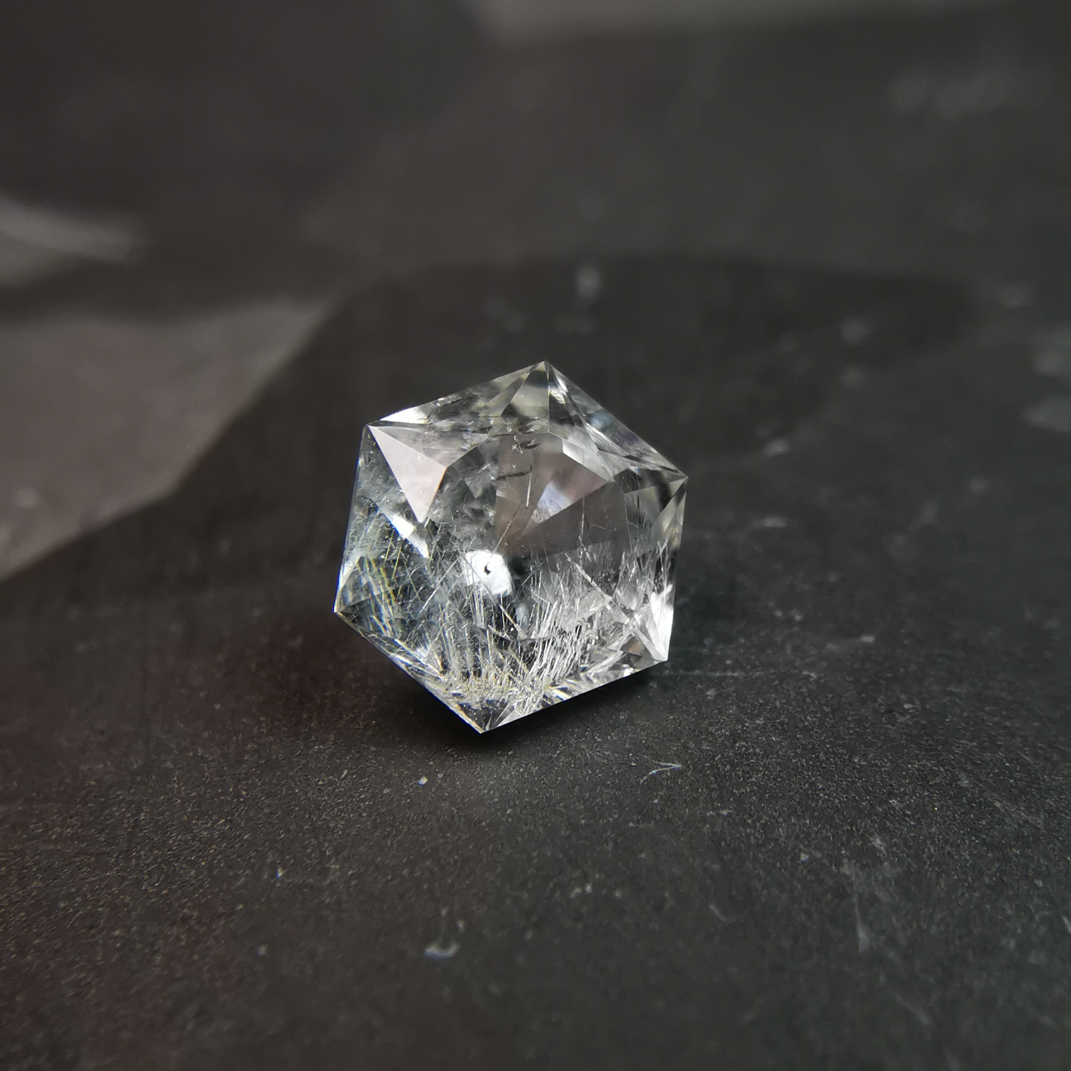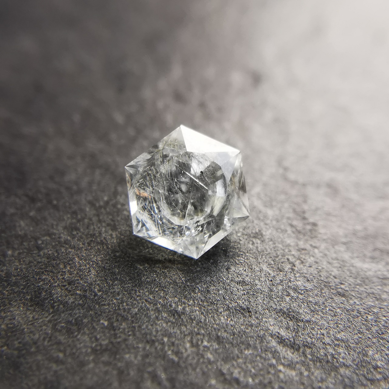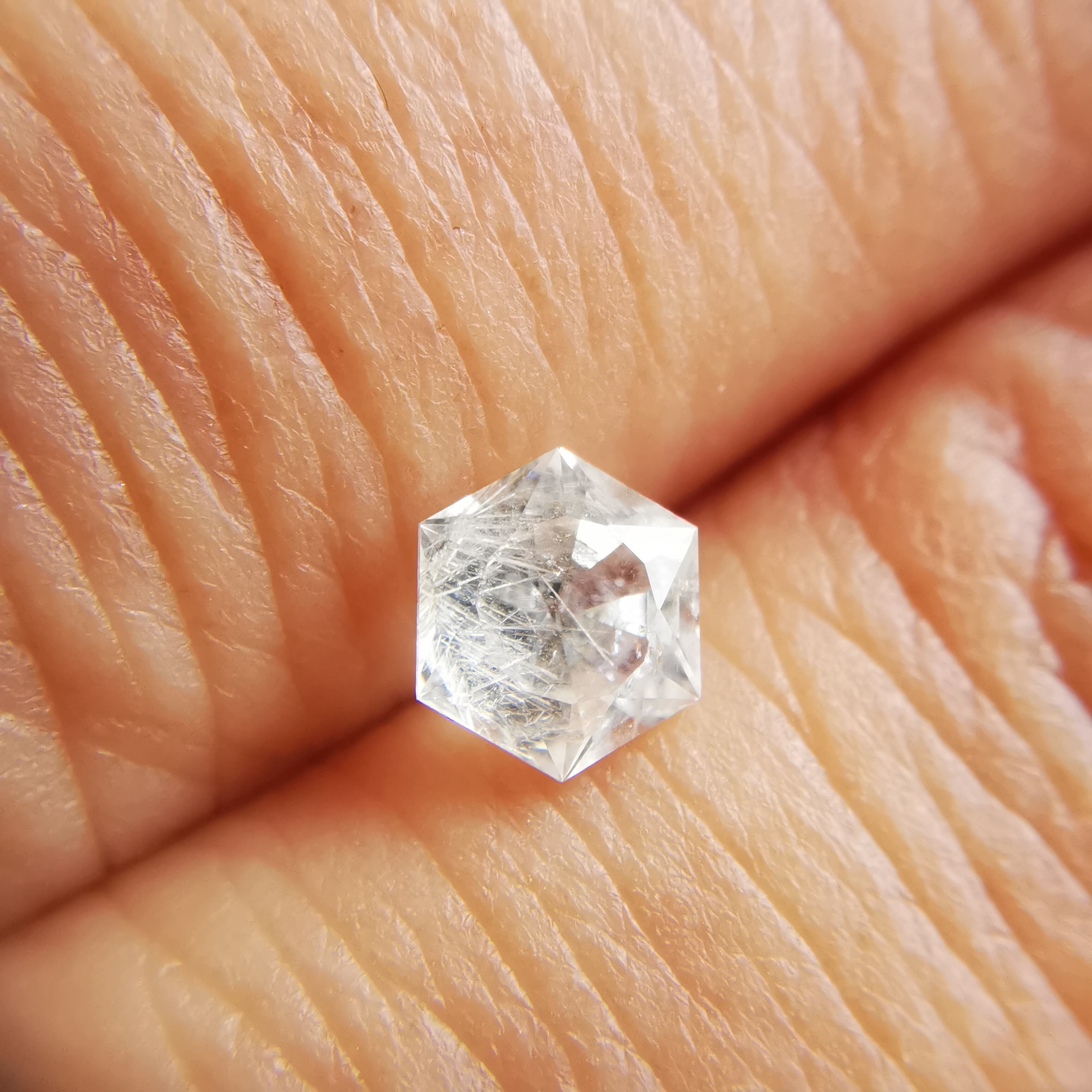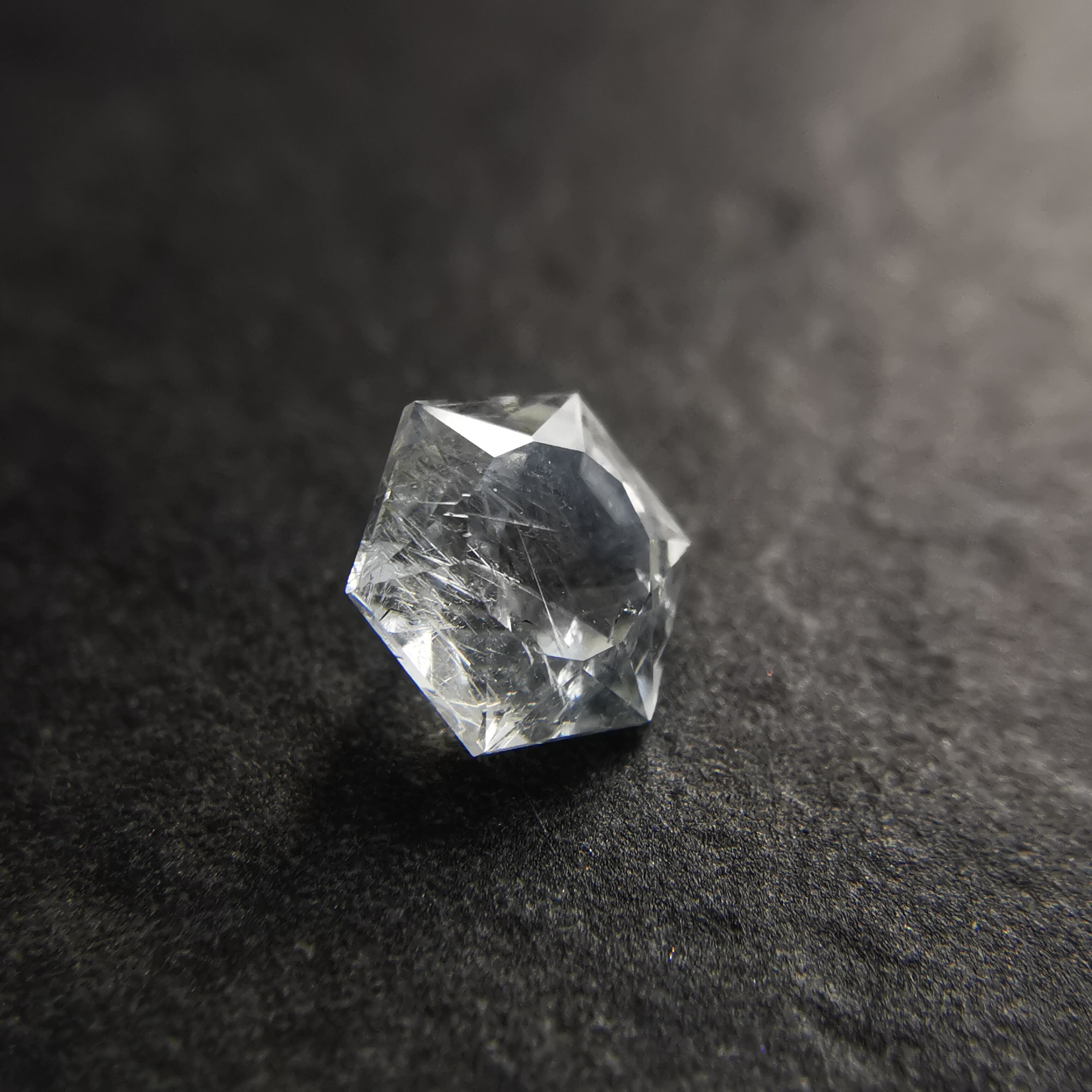 白っぽい針状のインクルージョンが入っているため、クリアと言うよりもホワイトと呼ぶのが相応しいです。