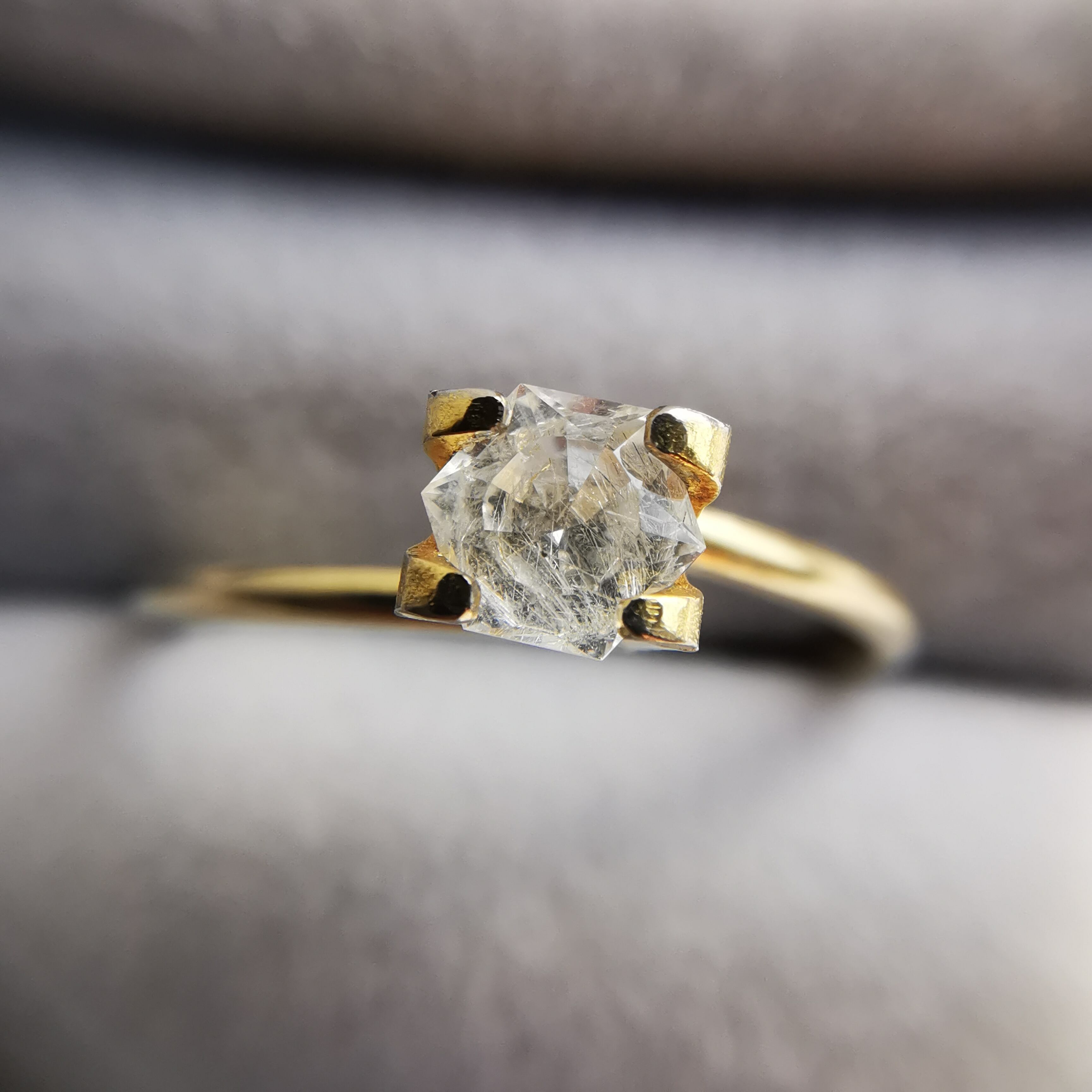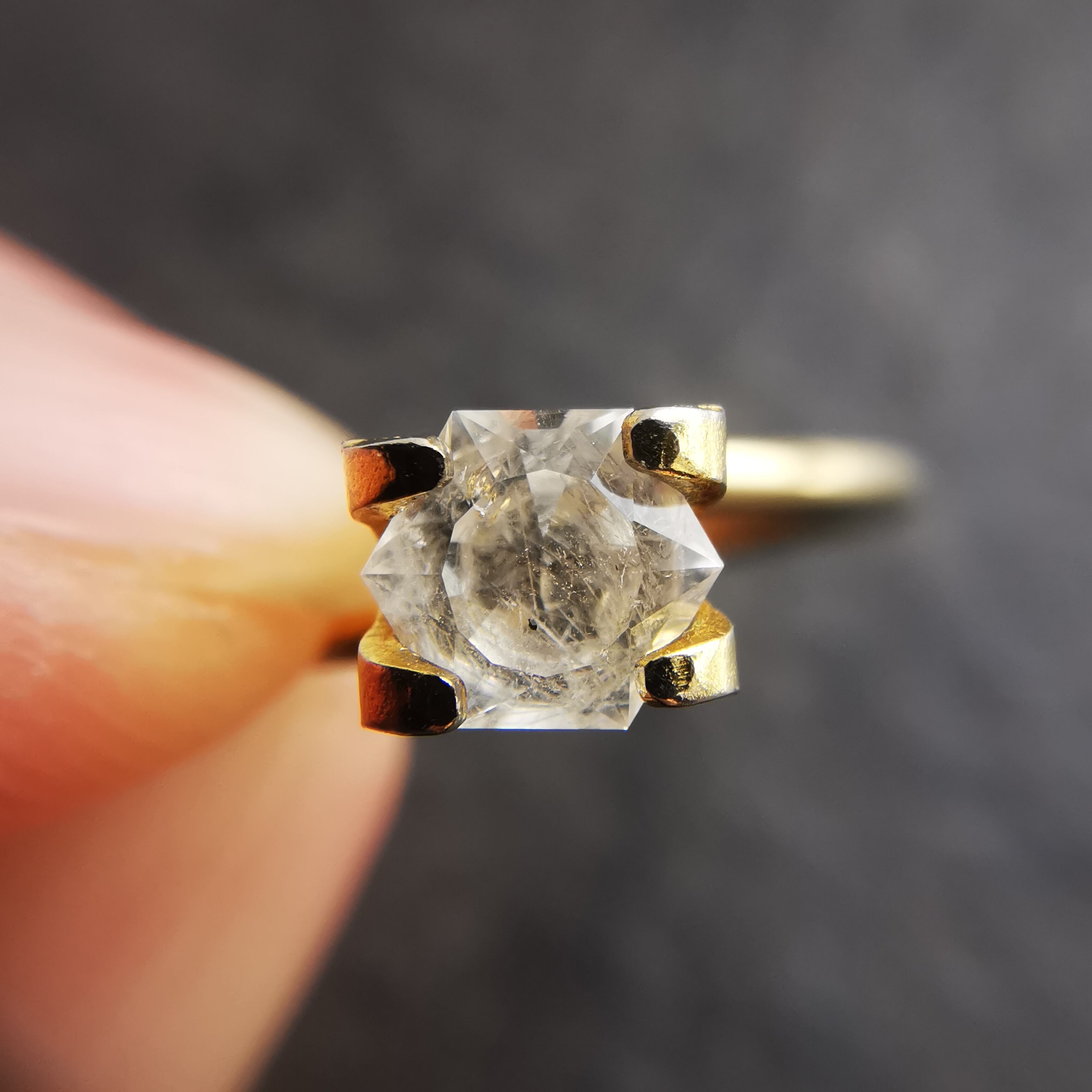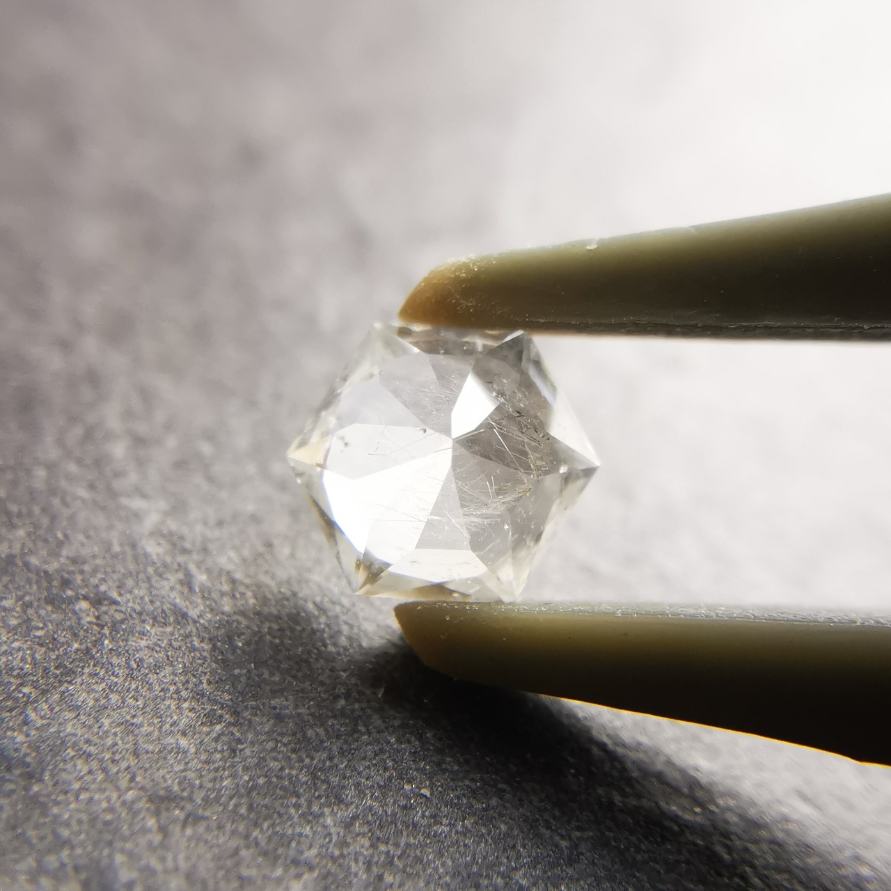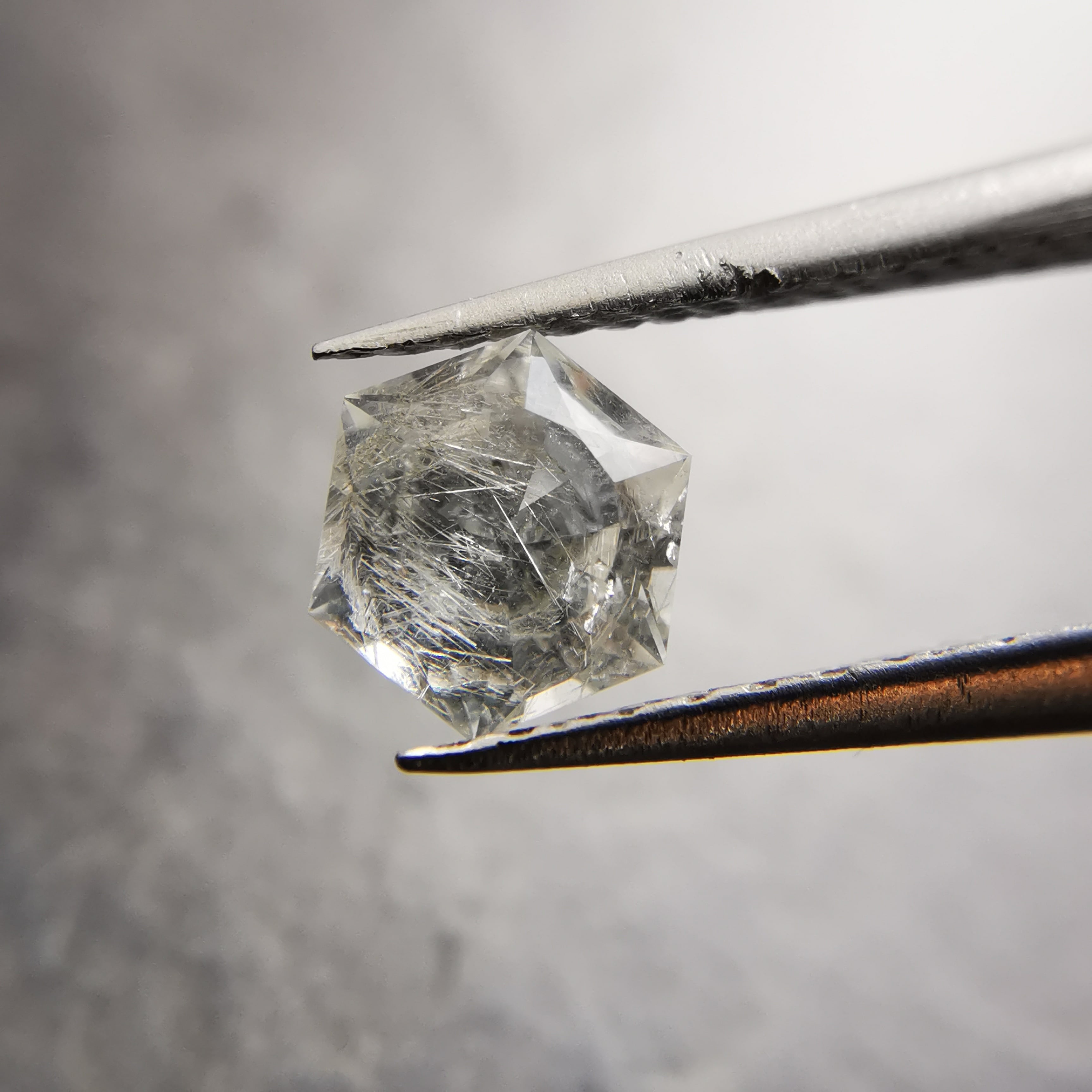 白っぽい針状のインクルージョンが入っているため、クリアと言うよりもホワイトと呼ぶのが相応しいです。