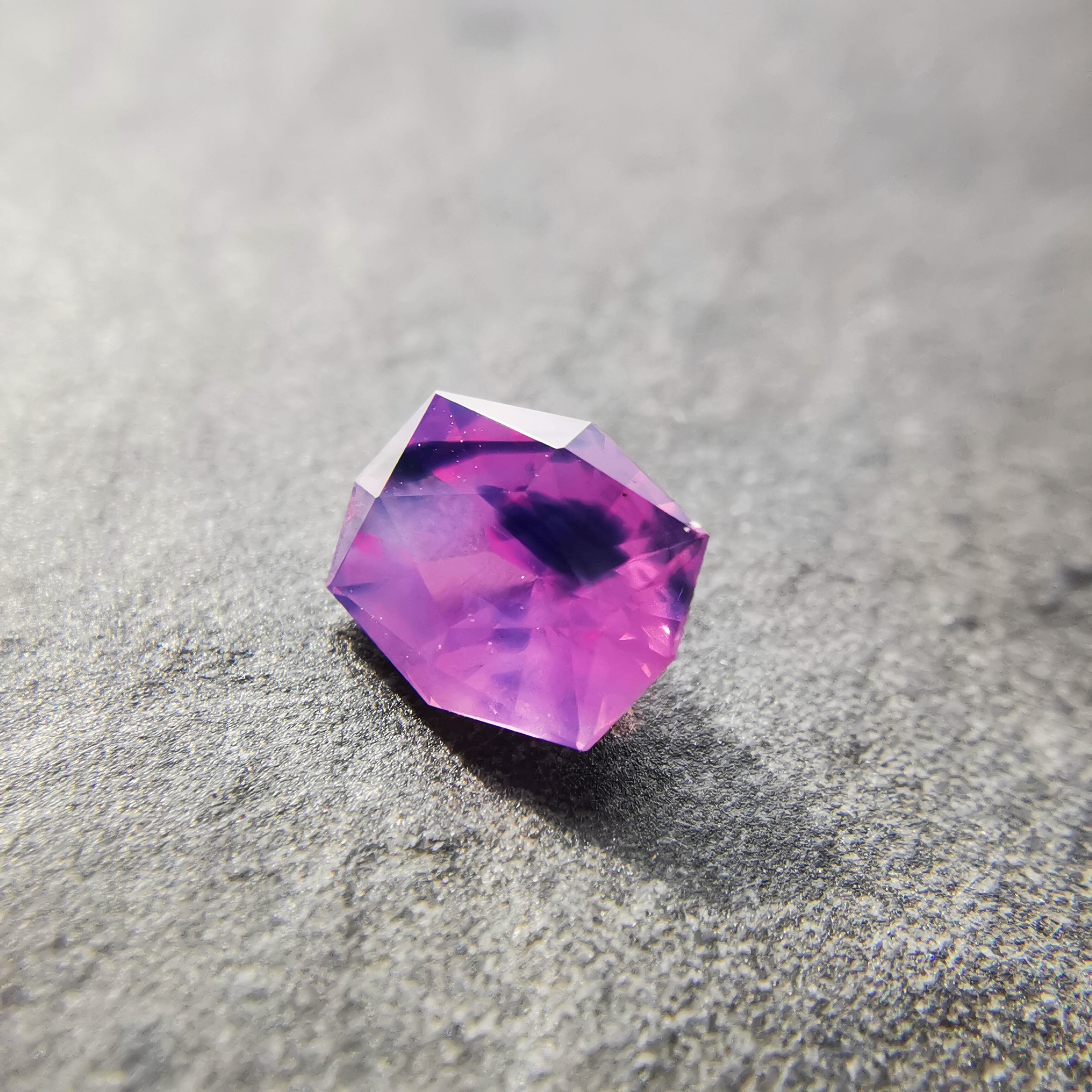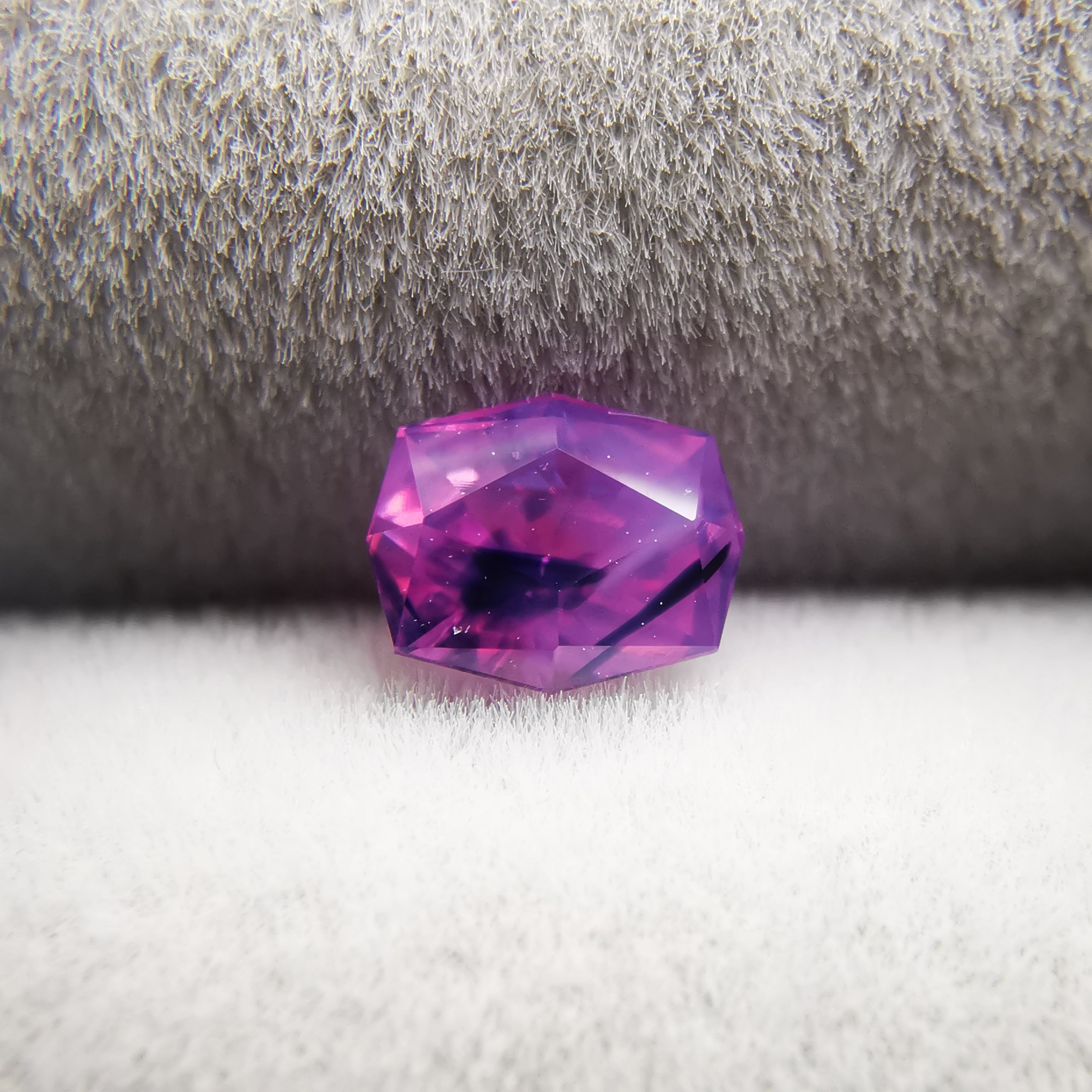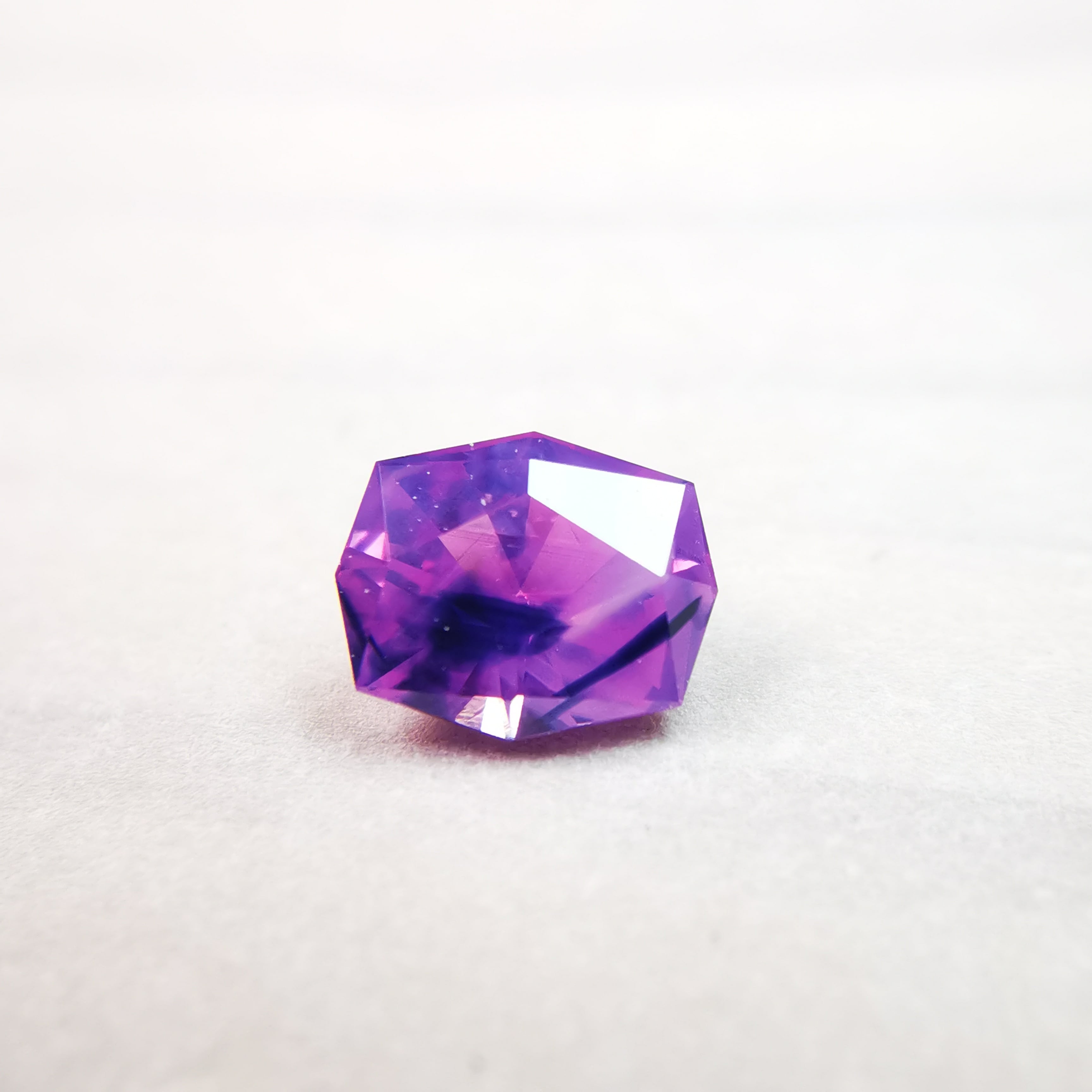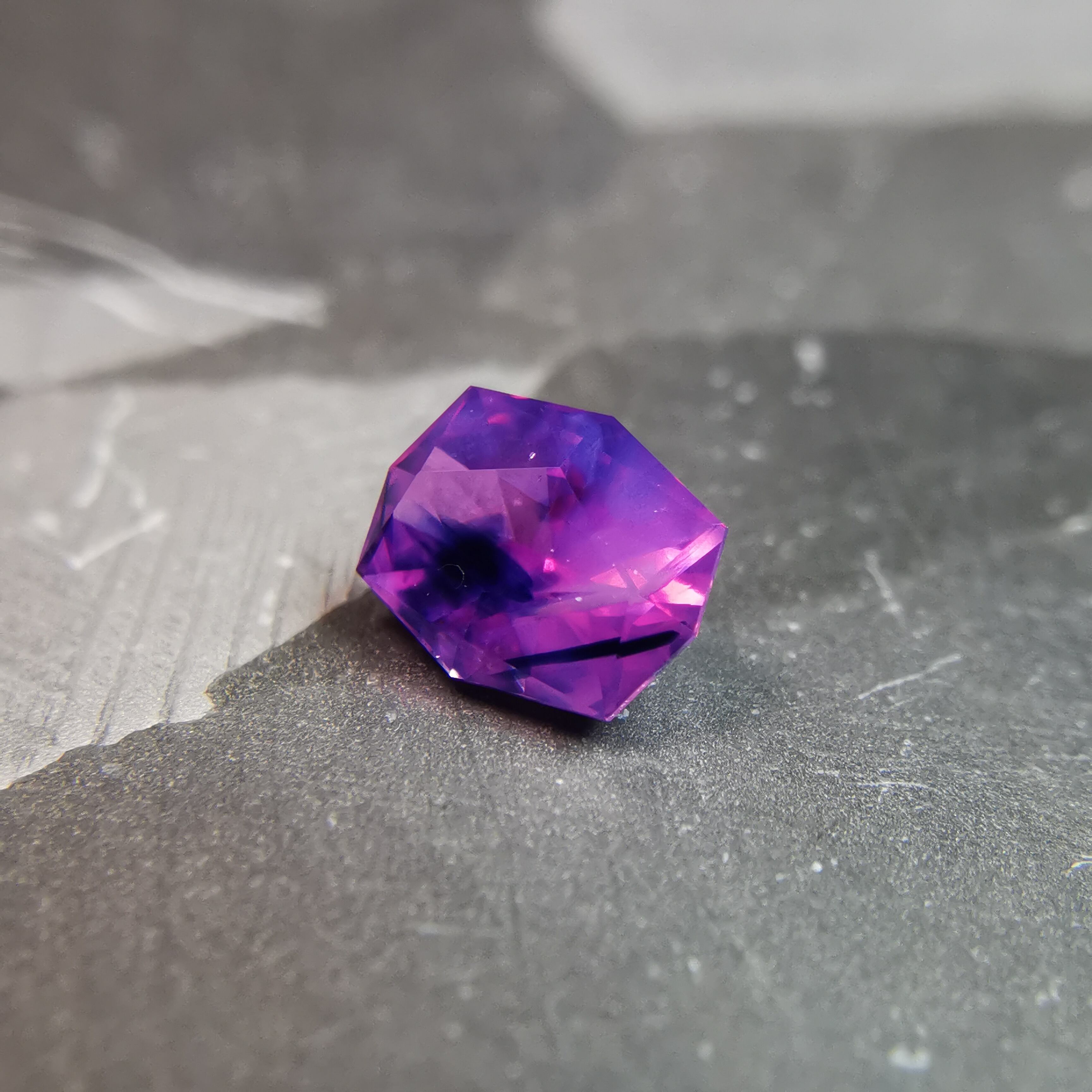 明るい赤紫/フクシアピンクと濃紺のざっくりとしたバイカラーに、ミルクを一滴垂らしたようなサファイアです。
