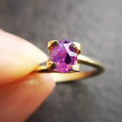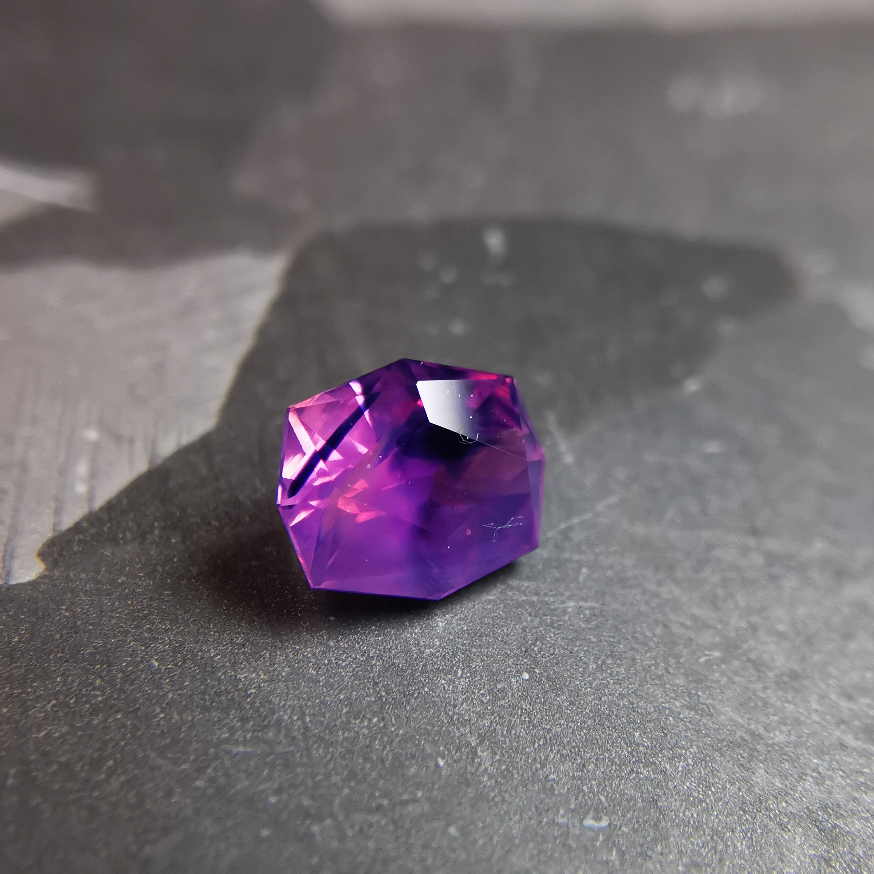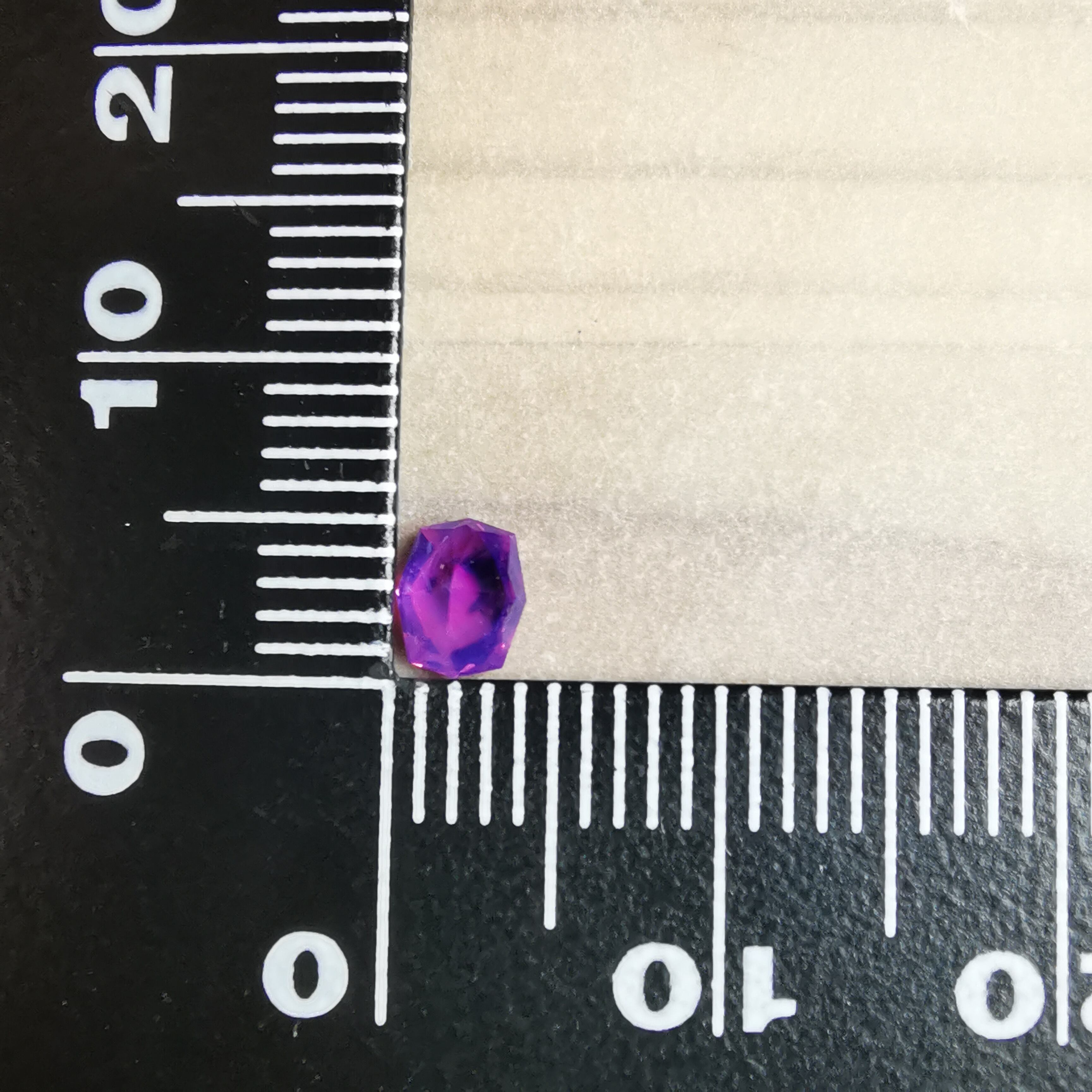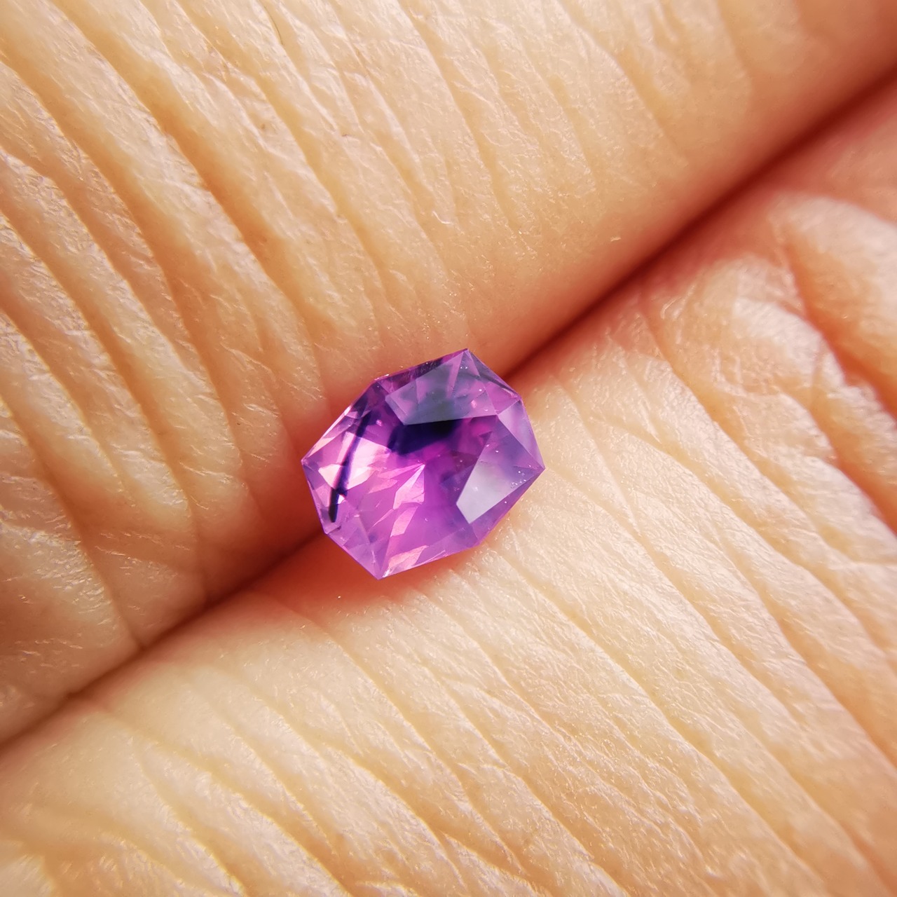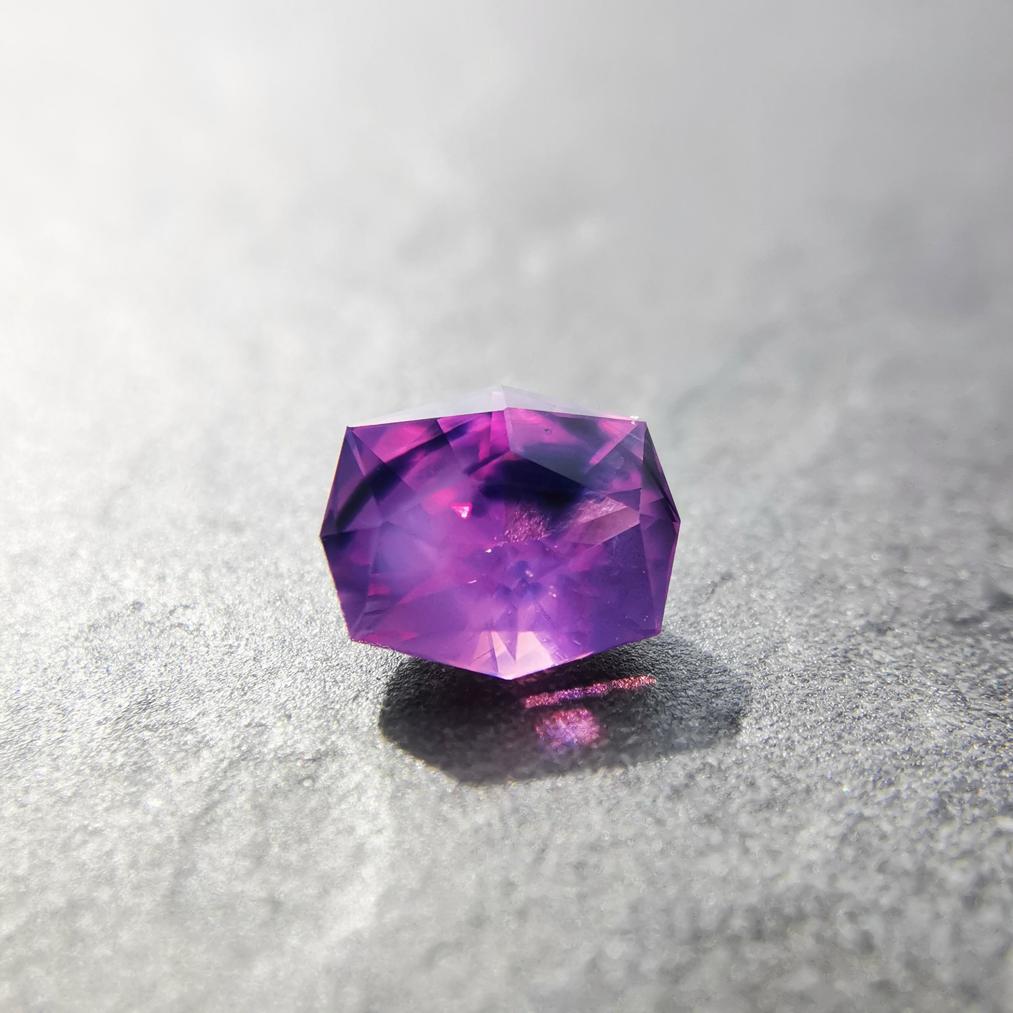 明るい赤紫/フクシアピンクと濃紺のざっくりとしたバイカラーに、ミルクを一滴垂らしたようなサファイアです。