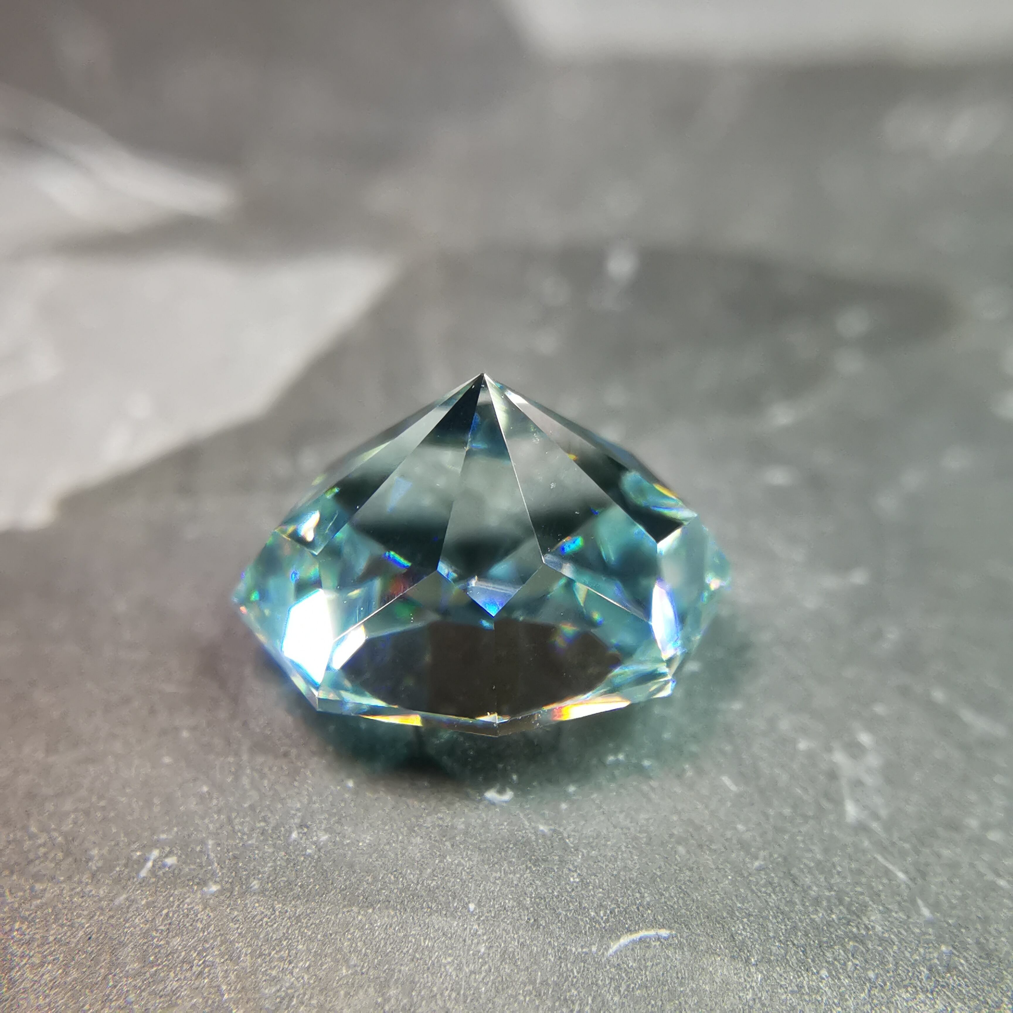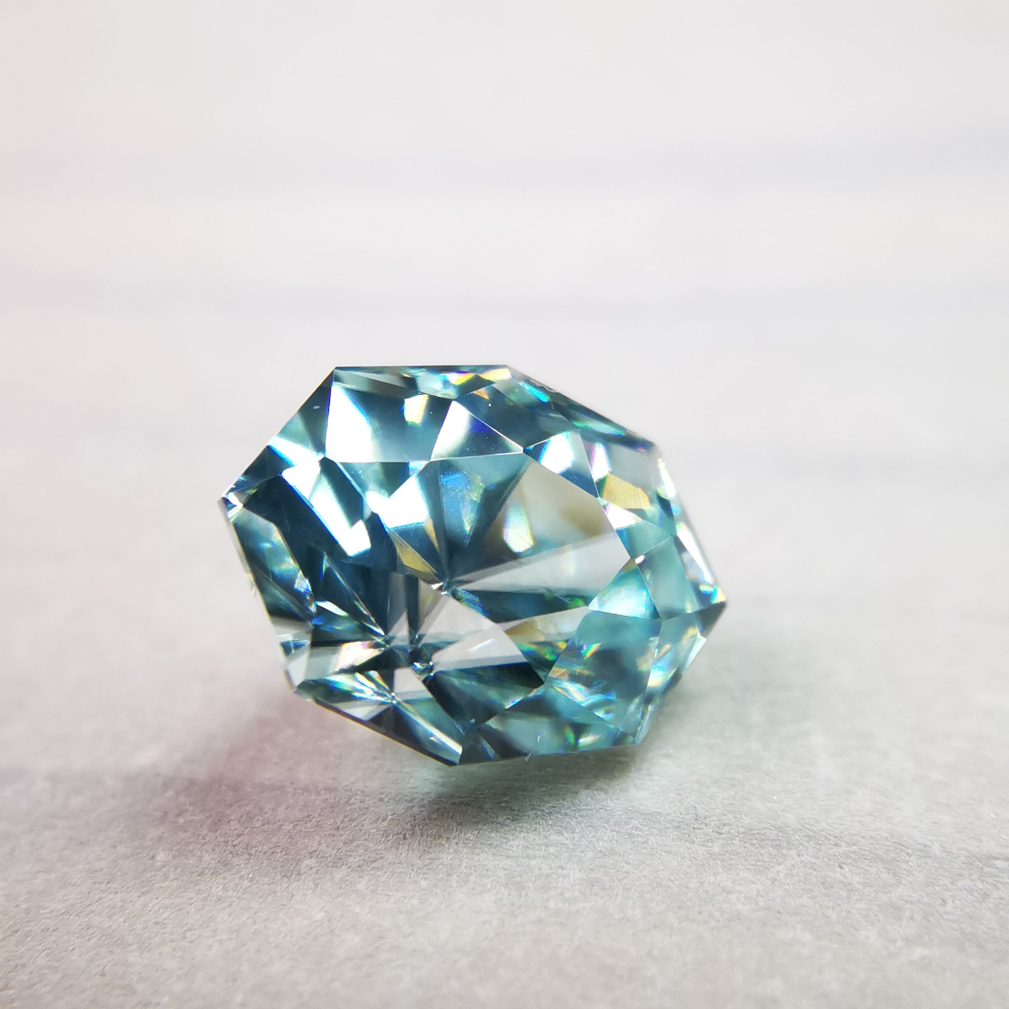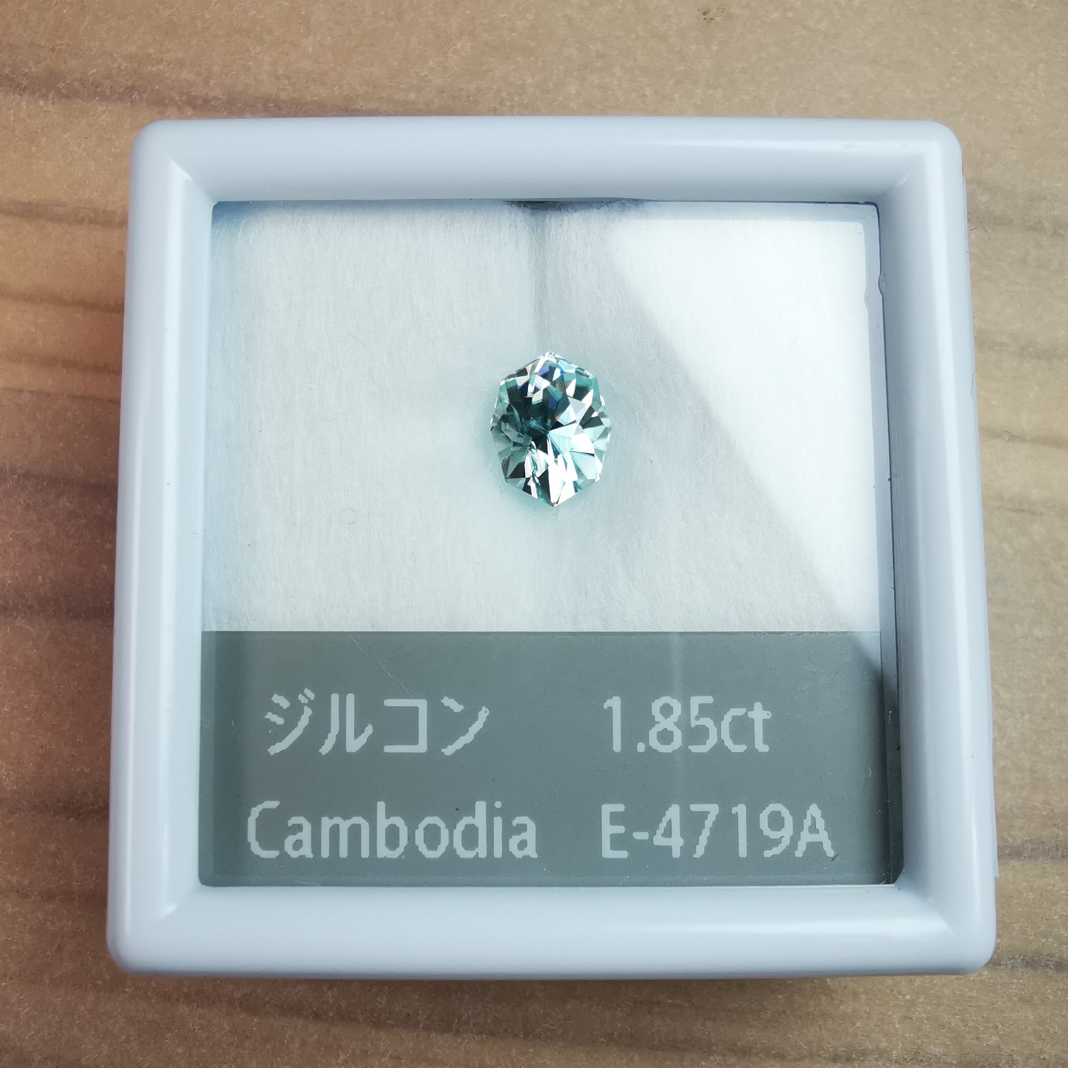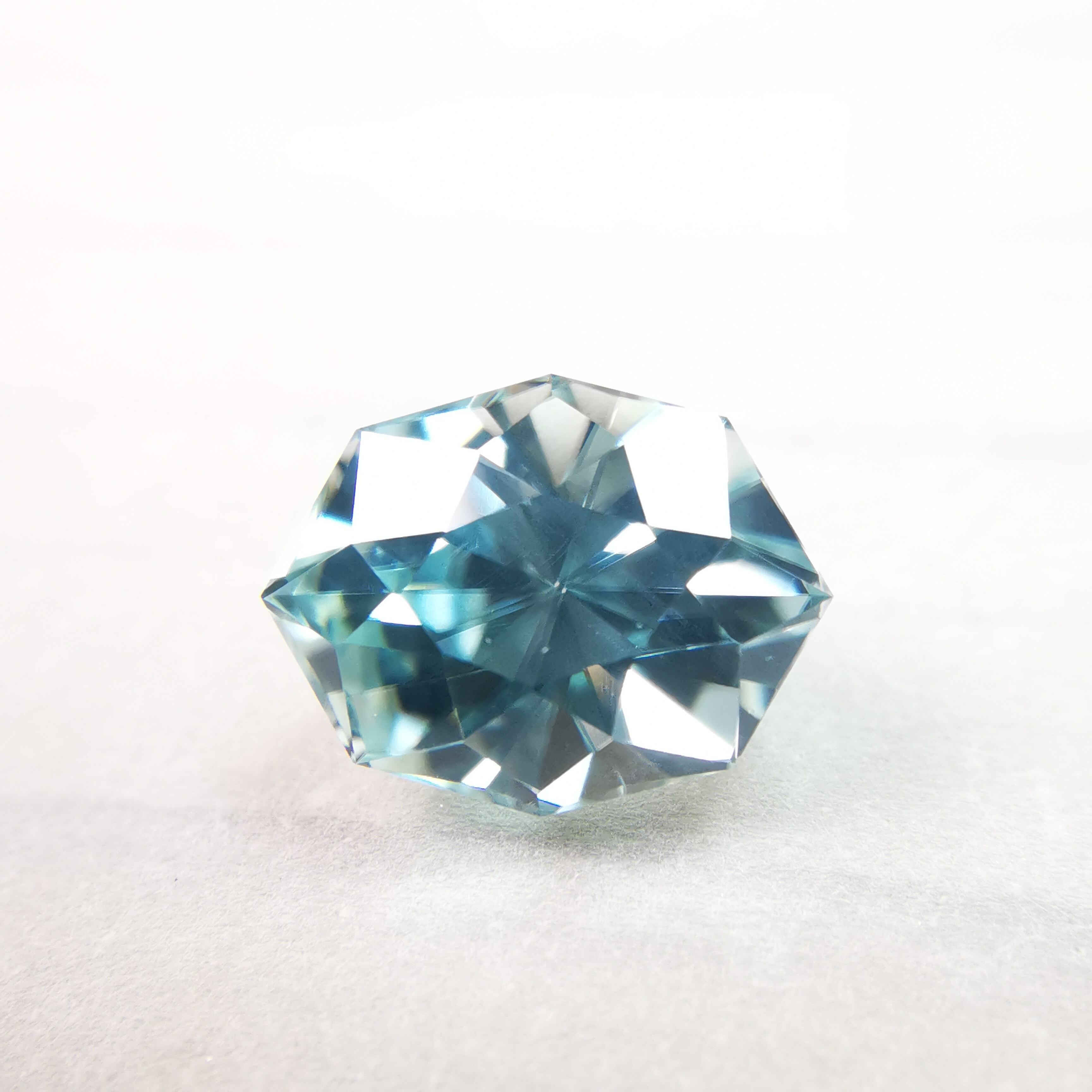 ごく淡くホワイトに近い薄い緑みの青/水色のジルコンです。