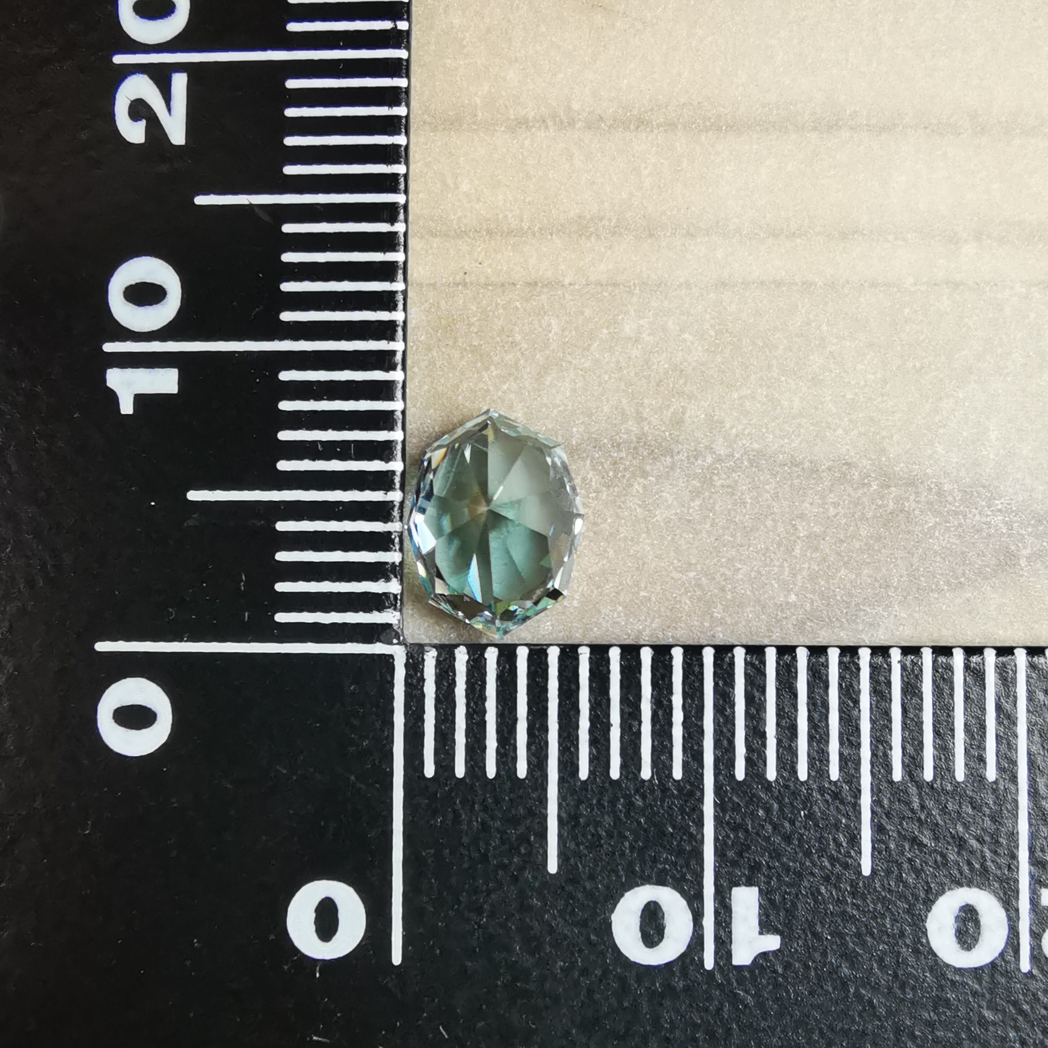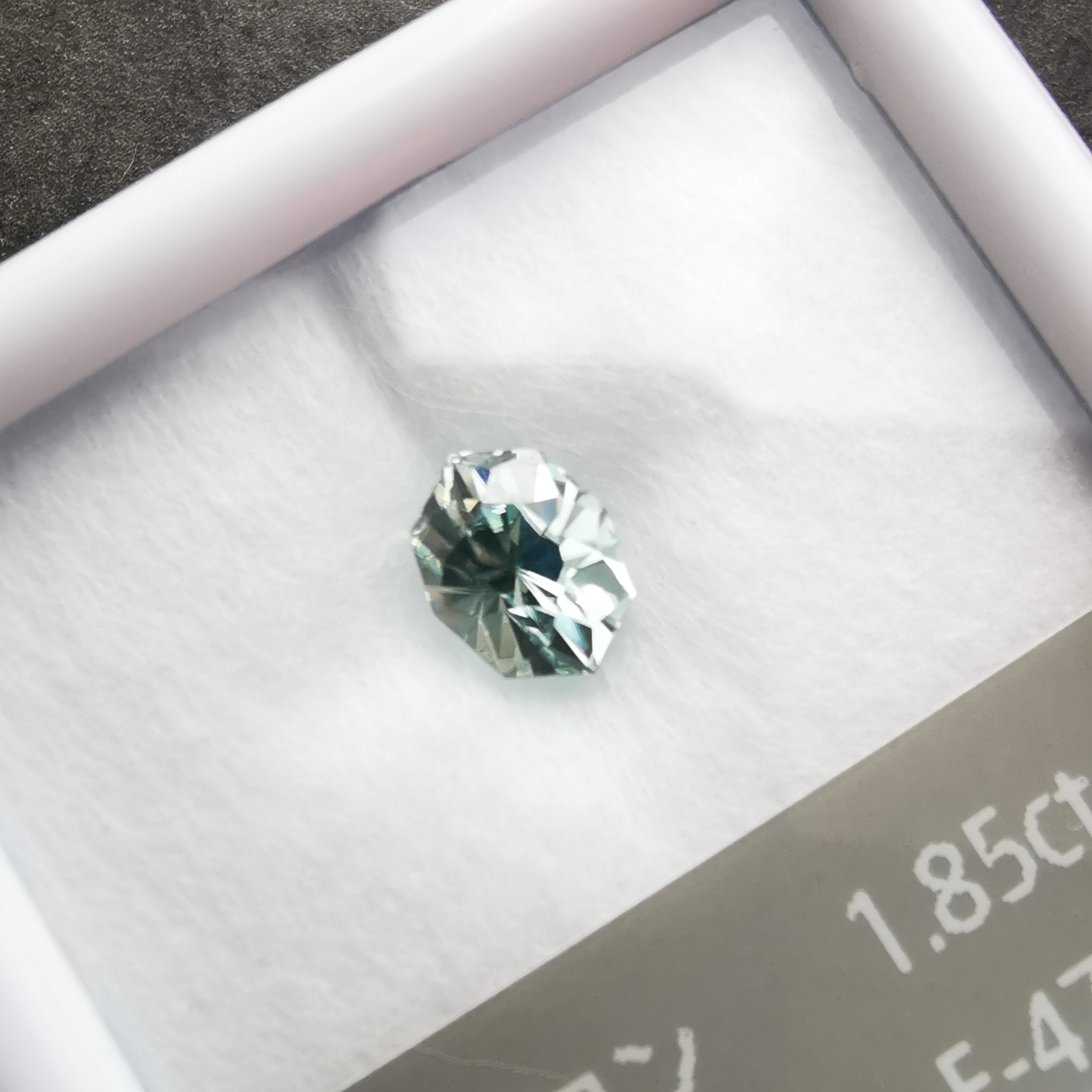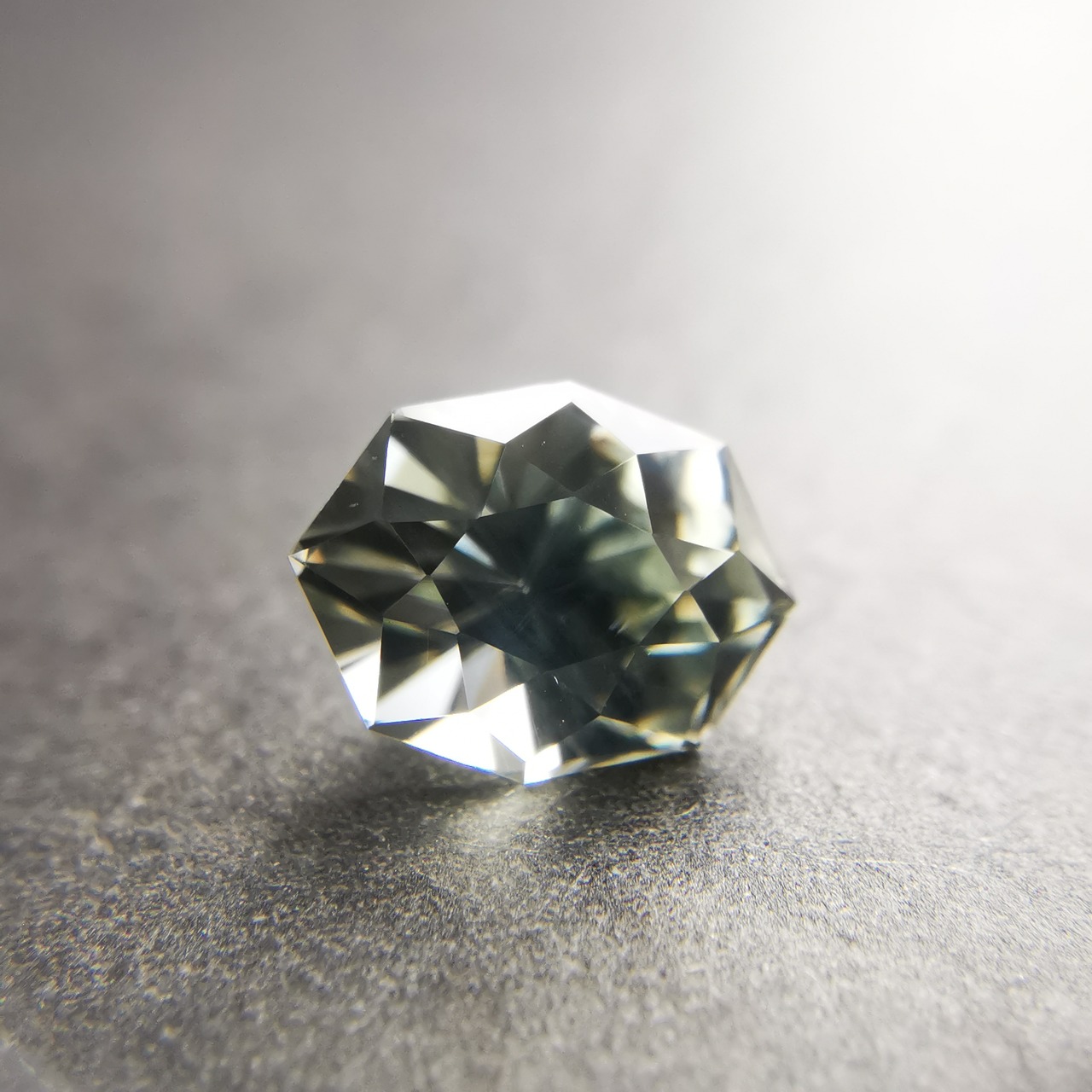 ごく淡くホワイトに近い薄い緑みの青/水色のジルコンです。