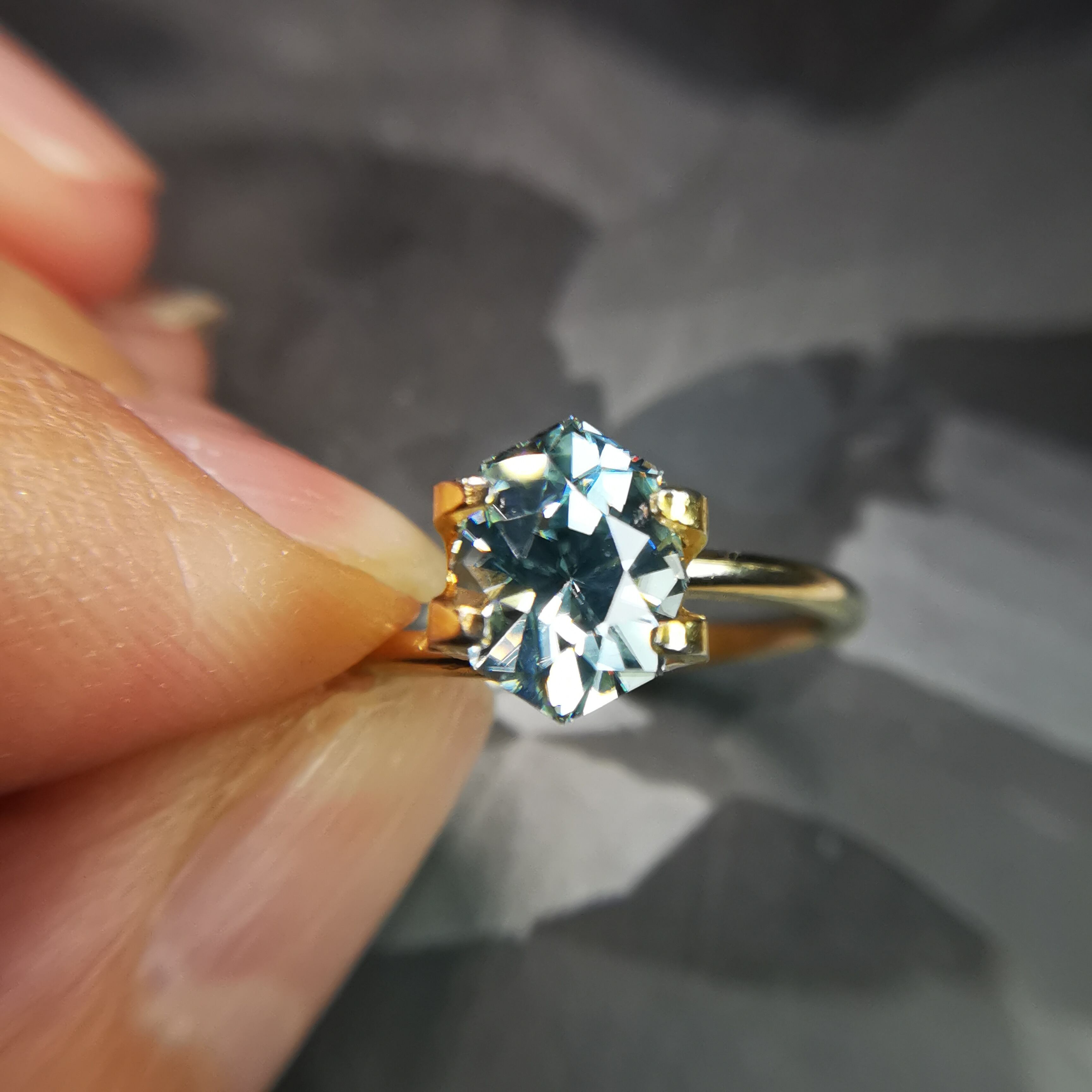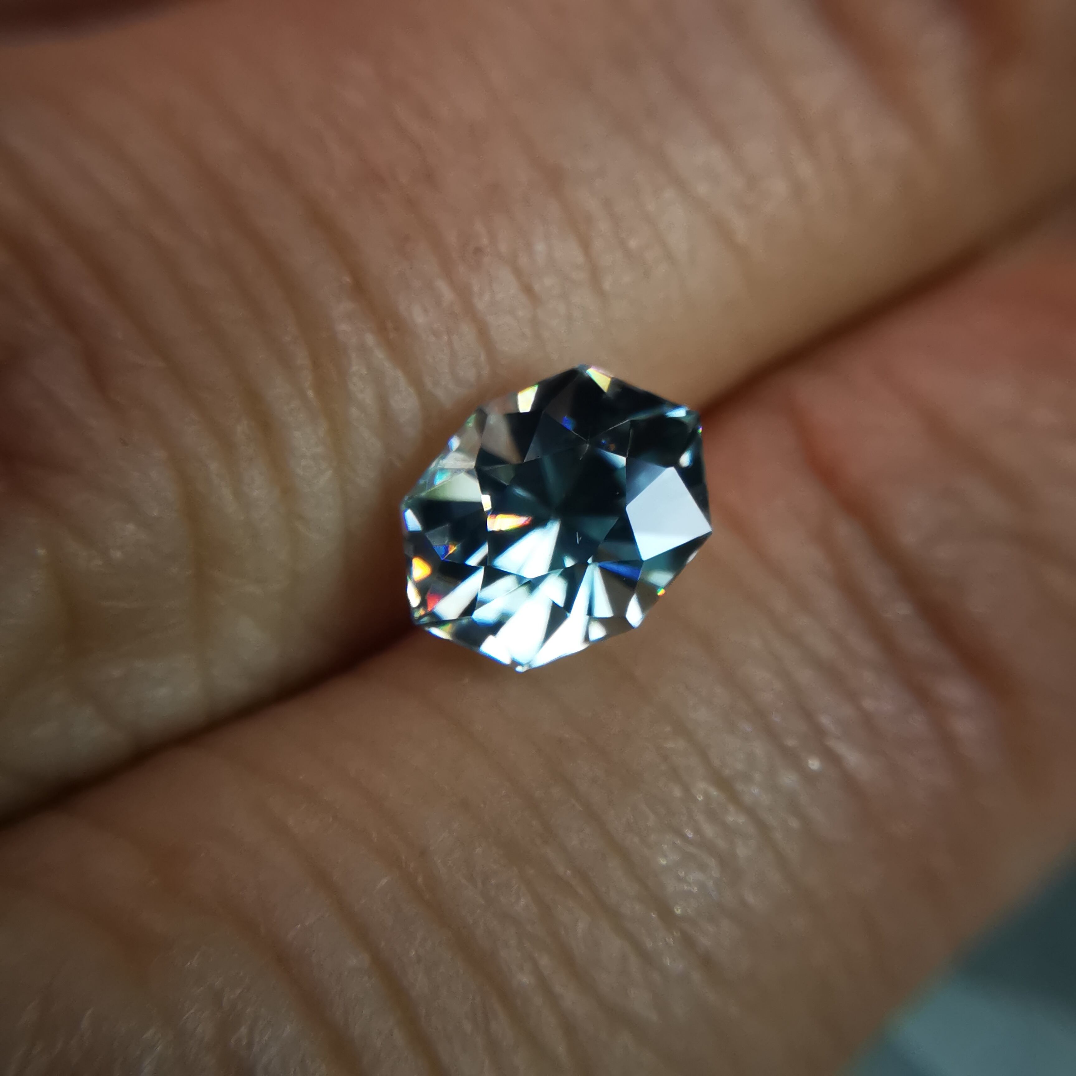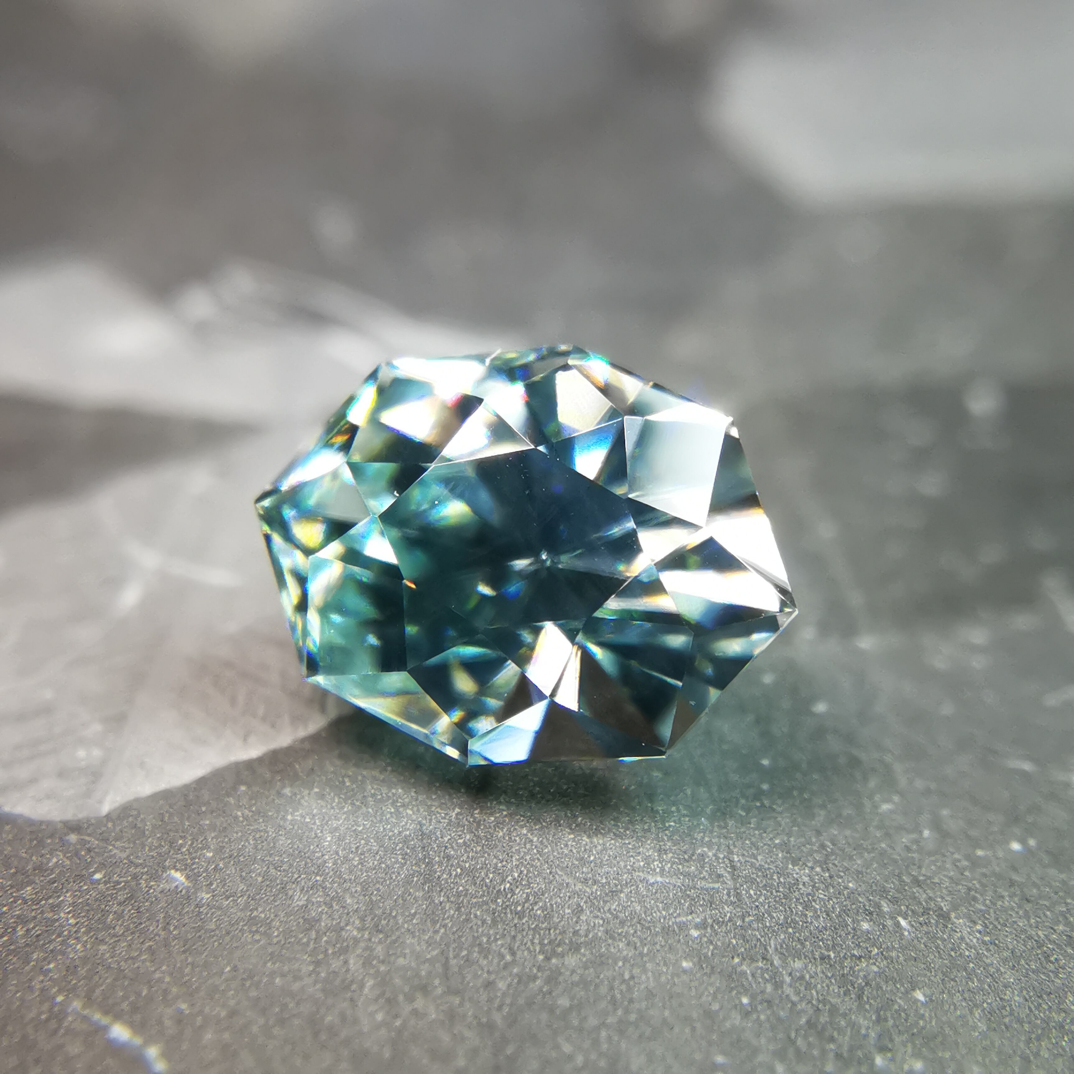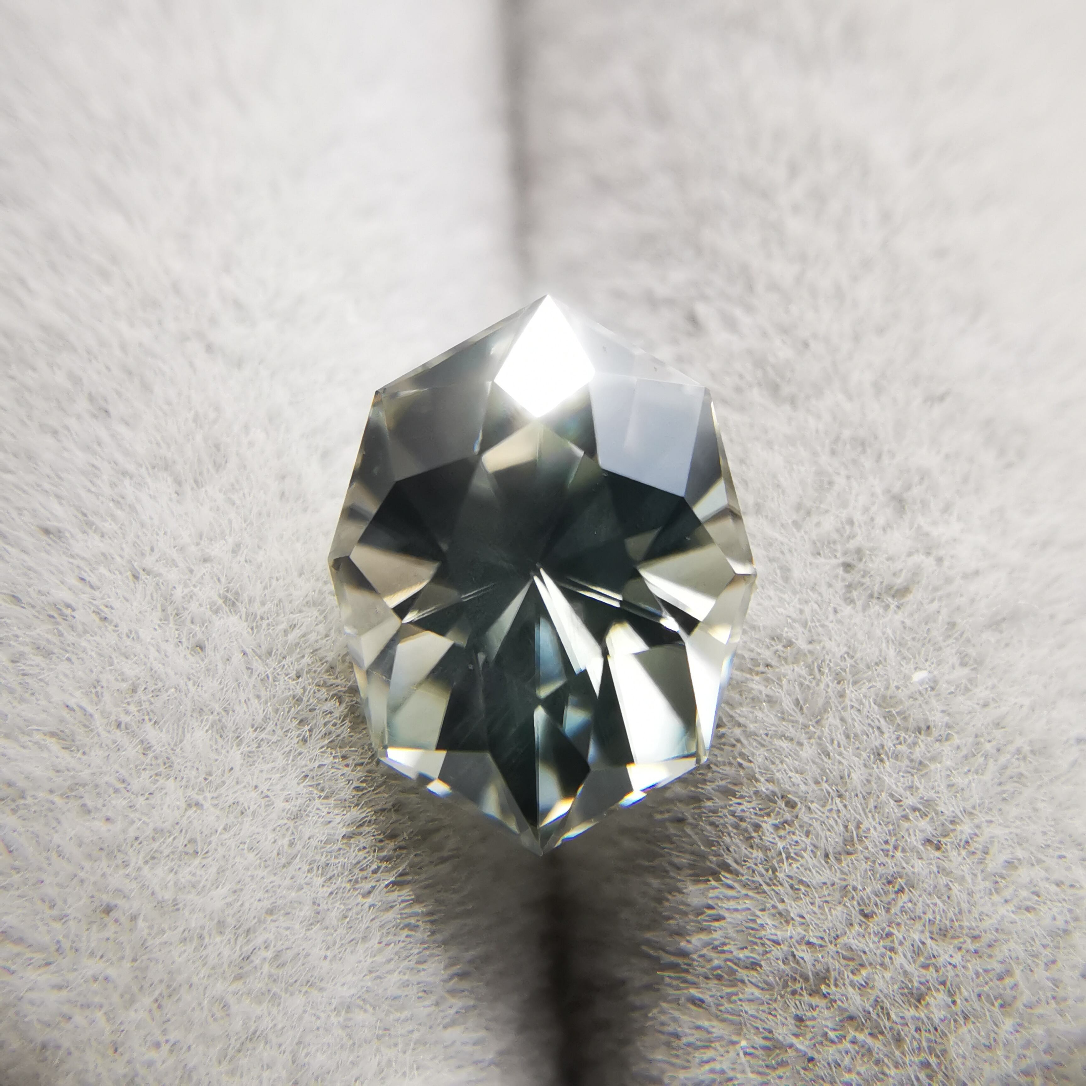 ごく淡くホワイトに近い薄い緑みの青/水色のジルコンです。