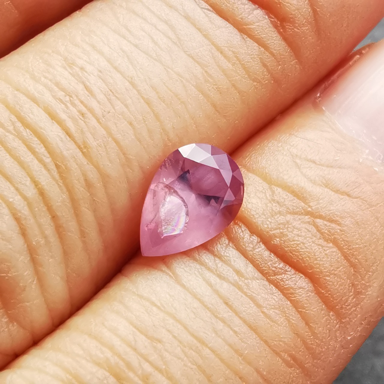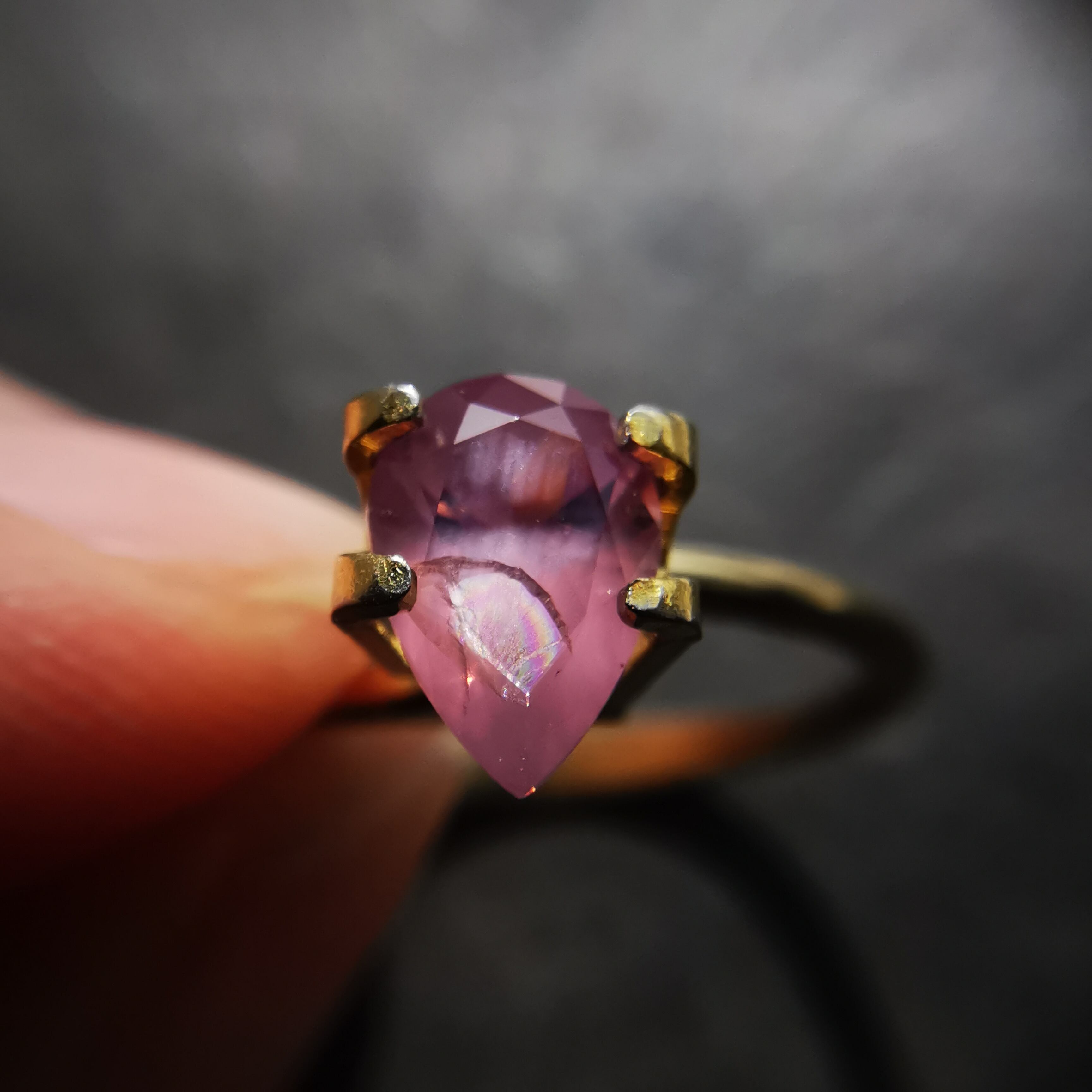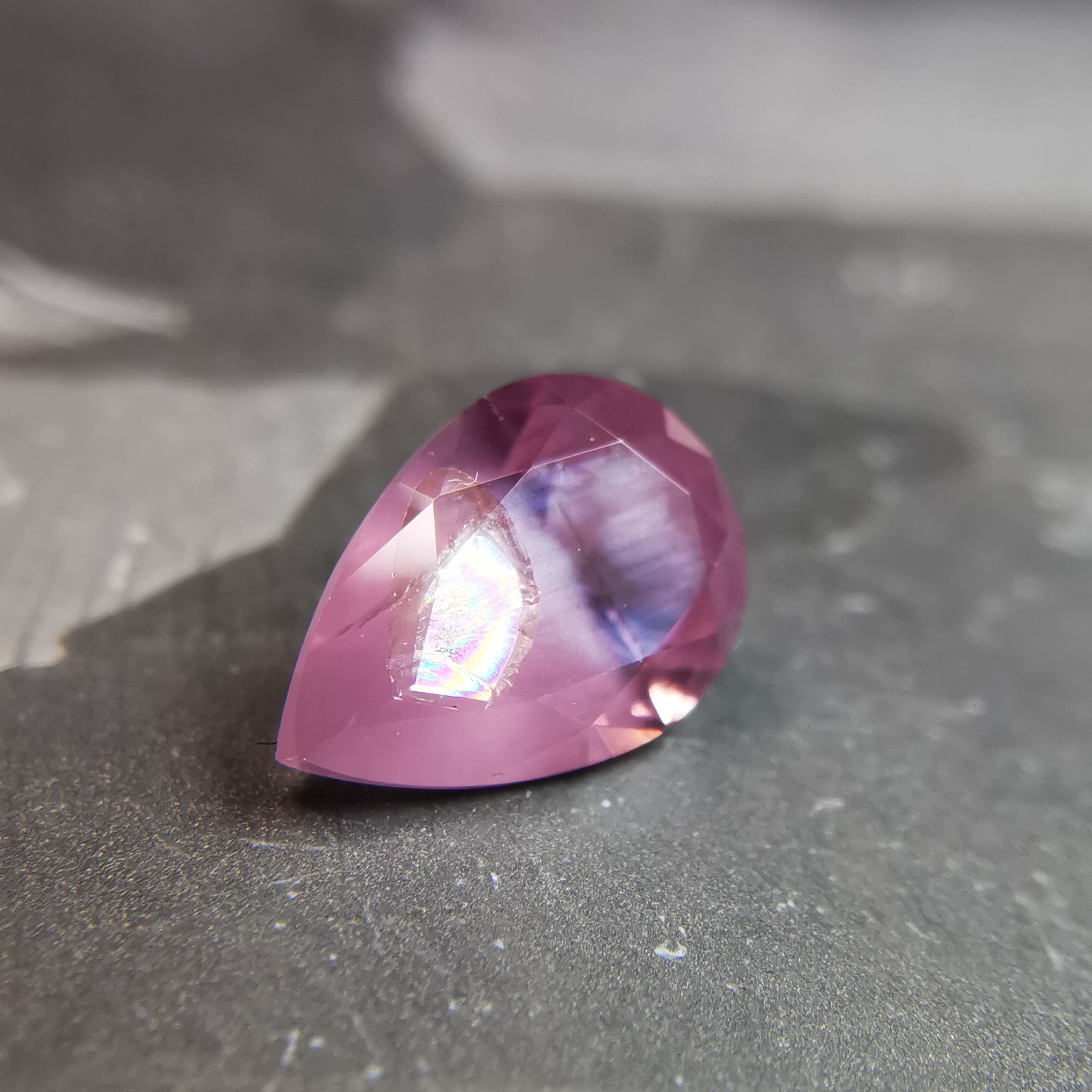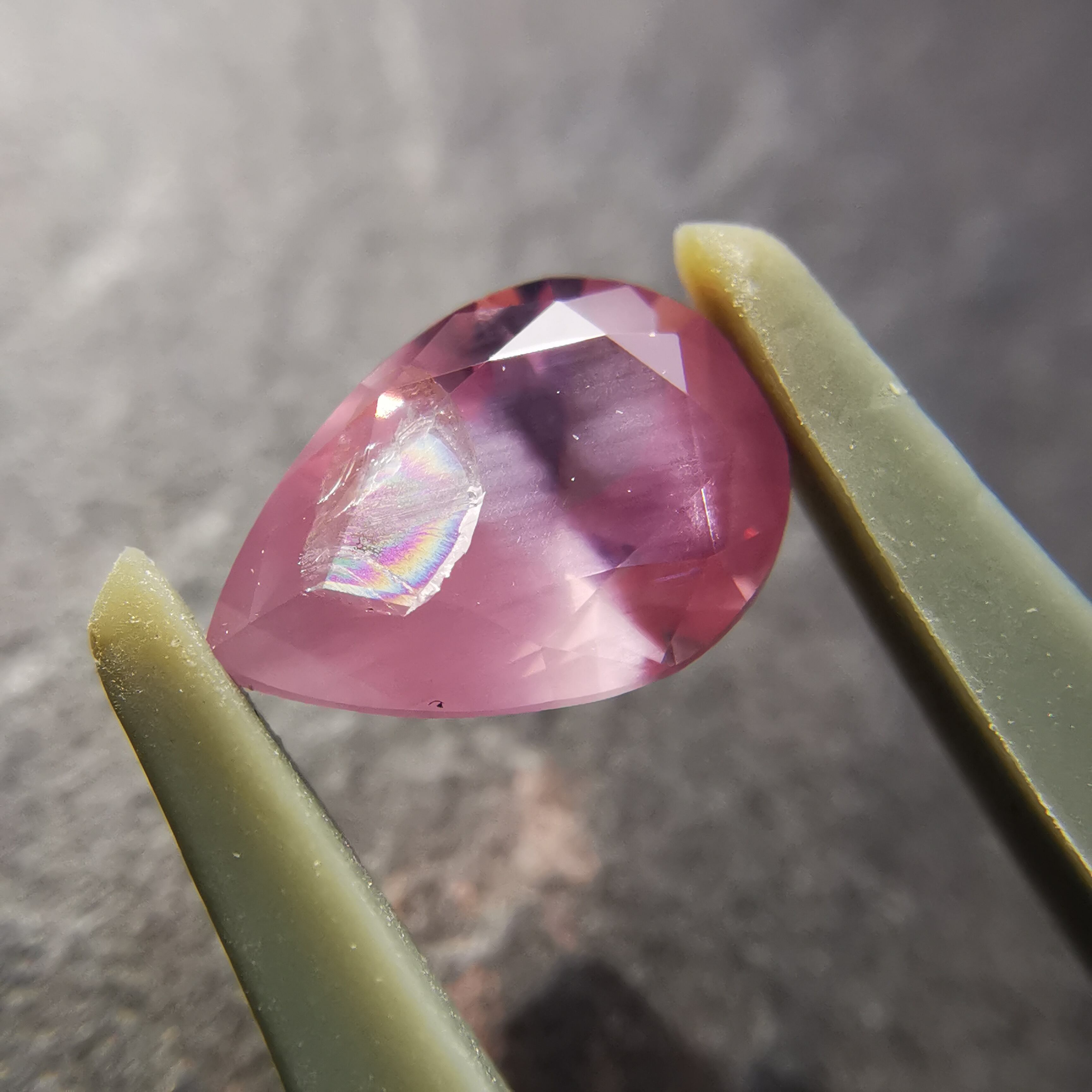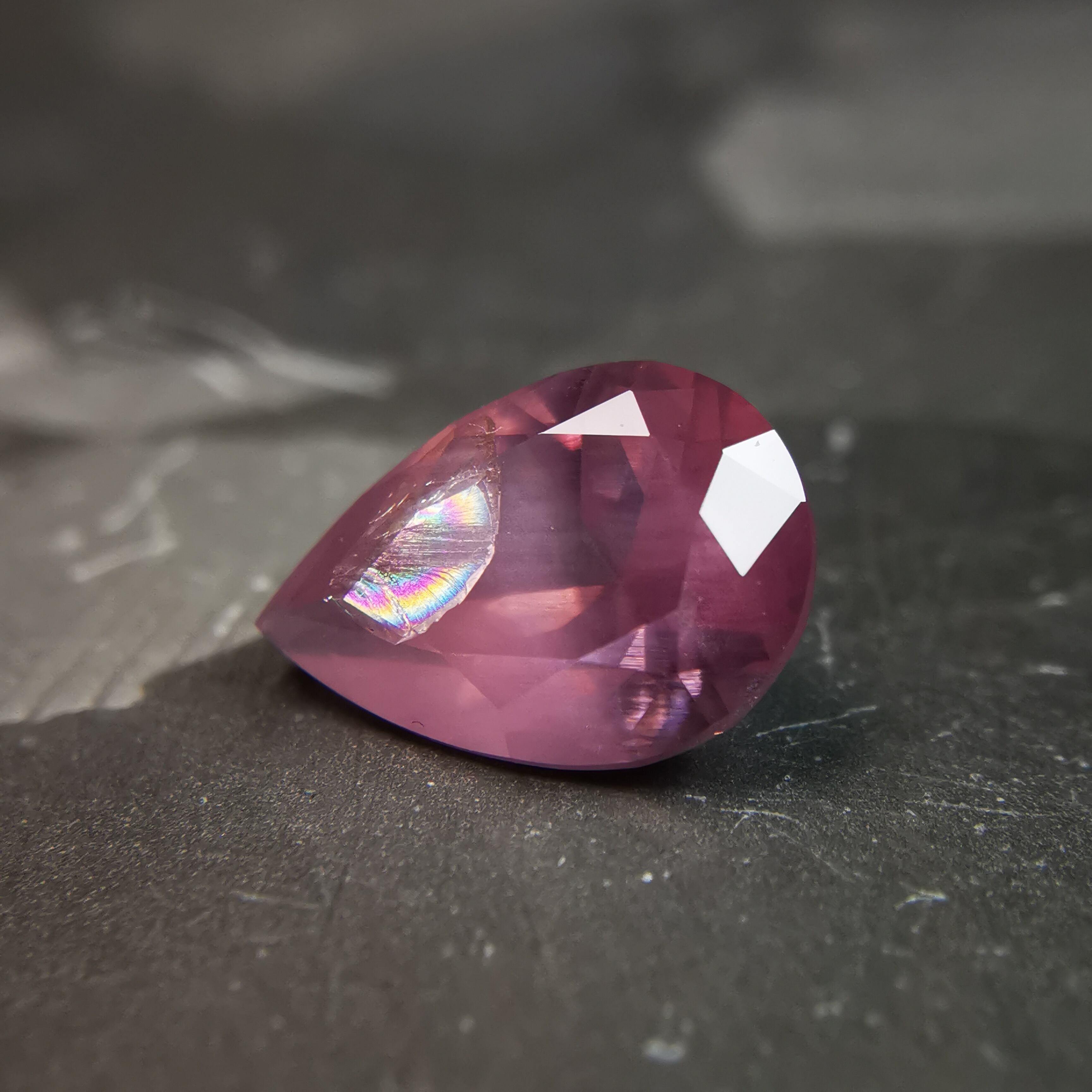 灰みのピンク/梅鼠色のシルキーなスピネルです。