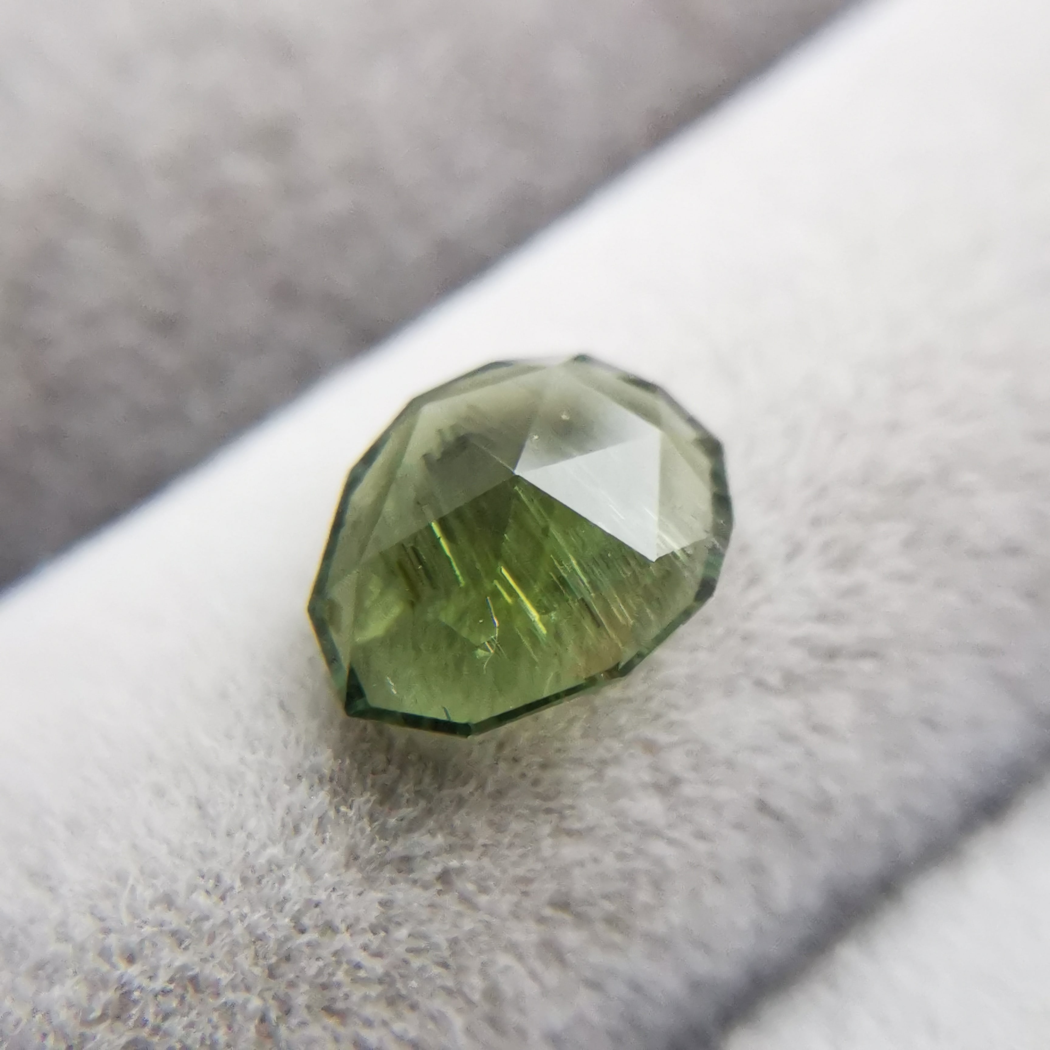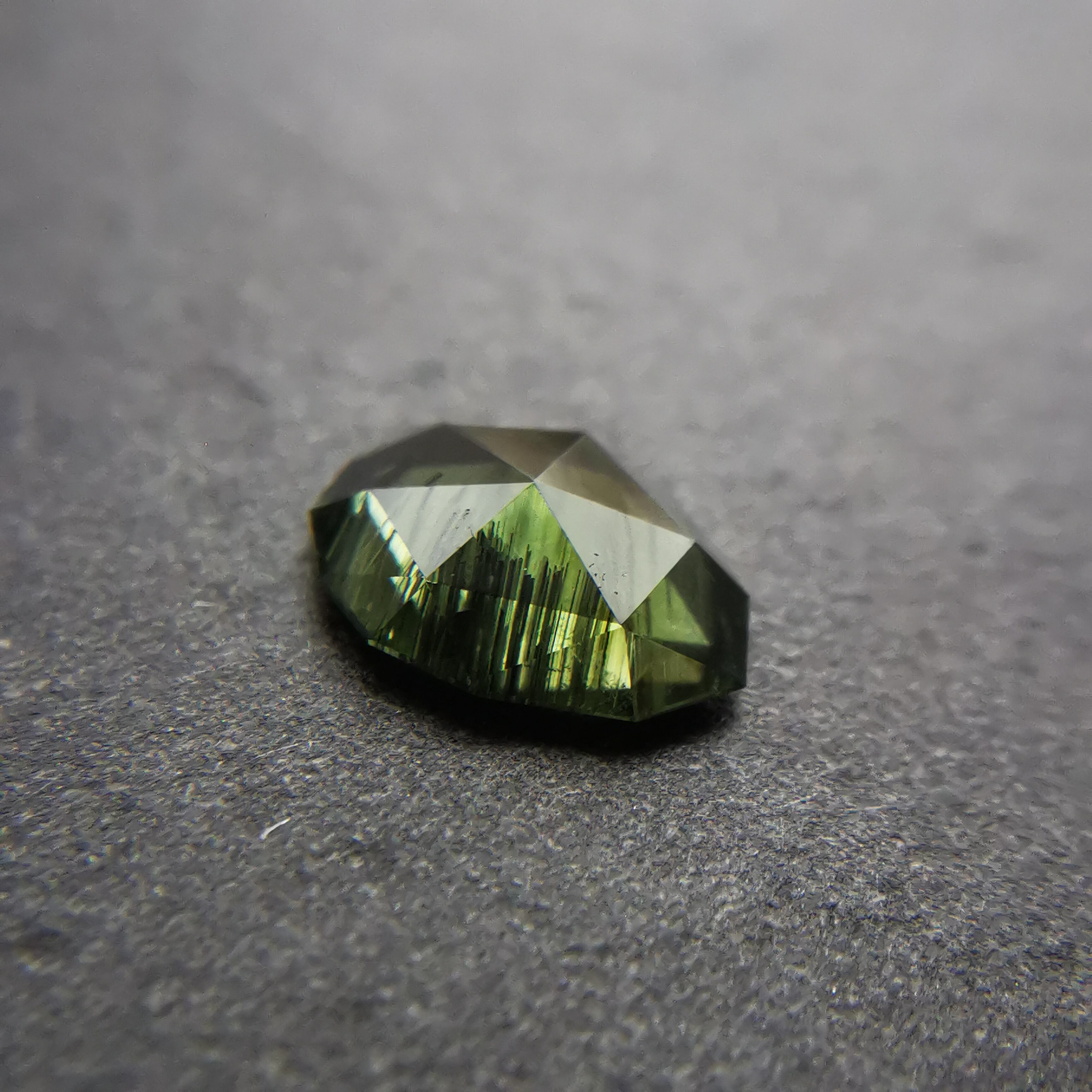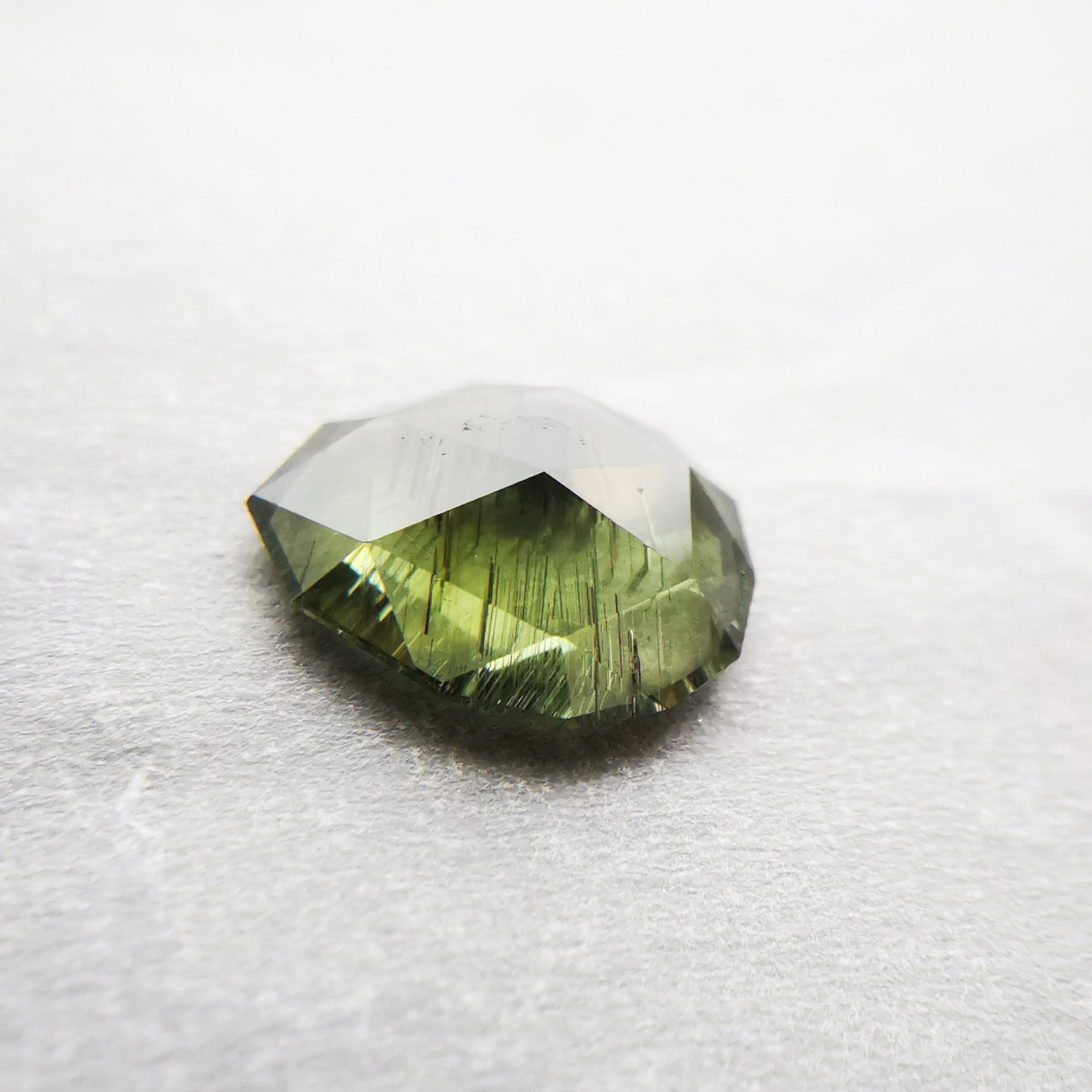トルマリンキャッツアイに見られるような、針状のインクルージョン、チューブインクルージョンが全体にまばらに入っています。