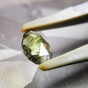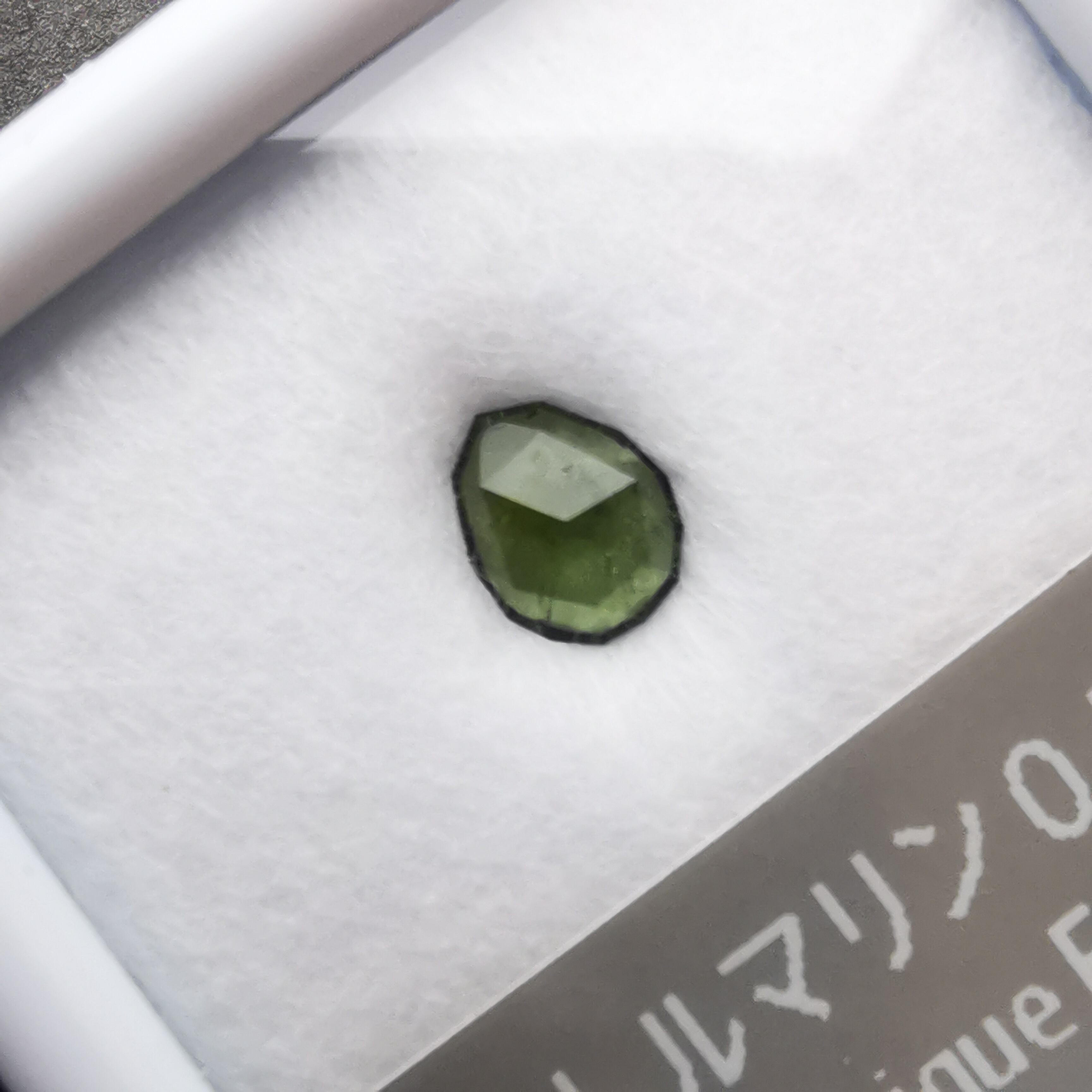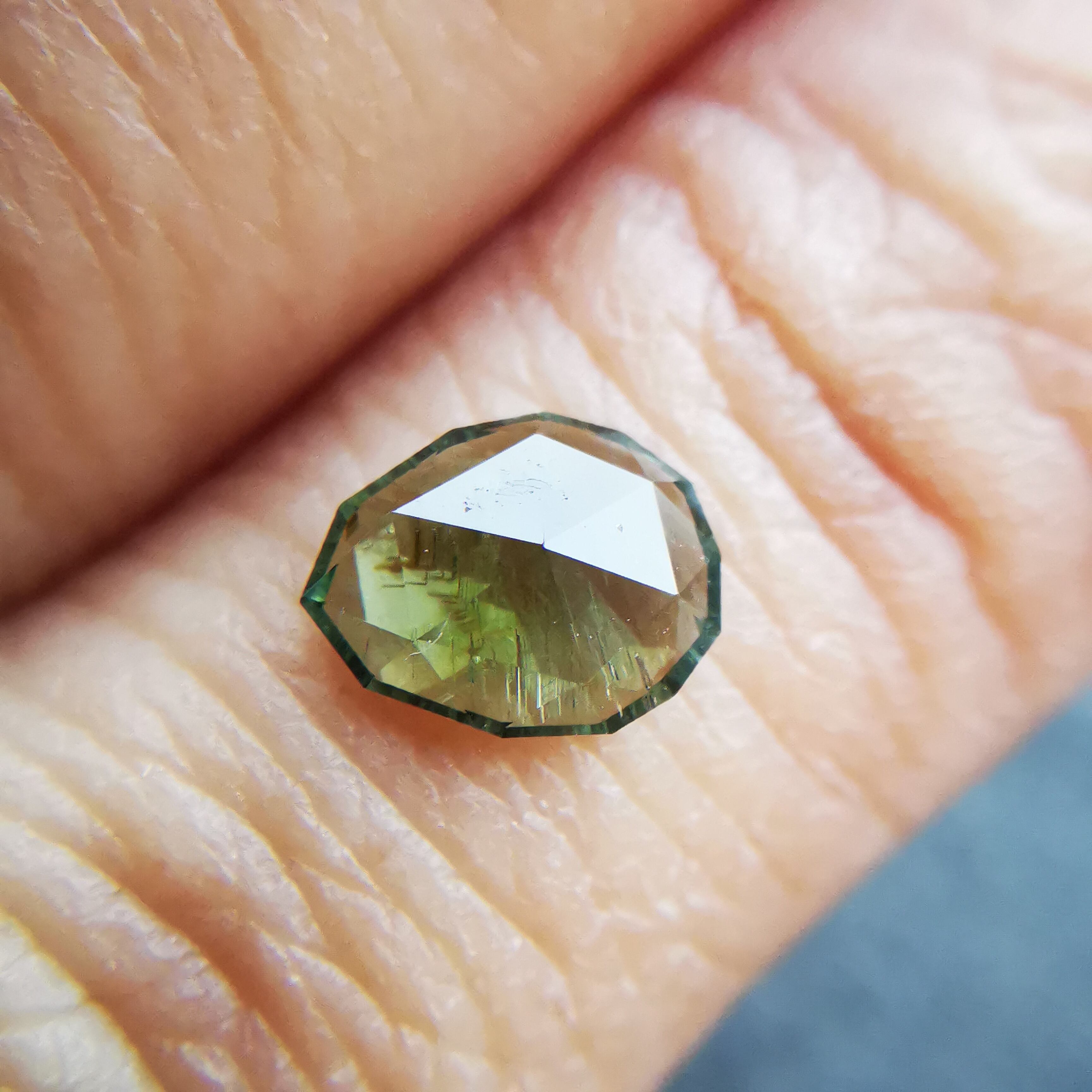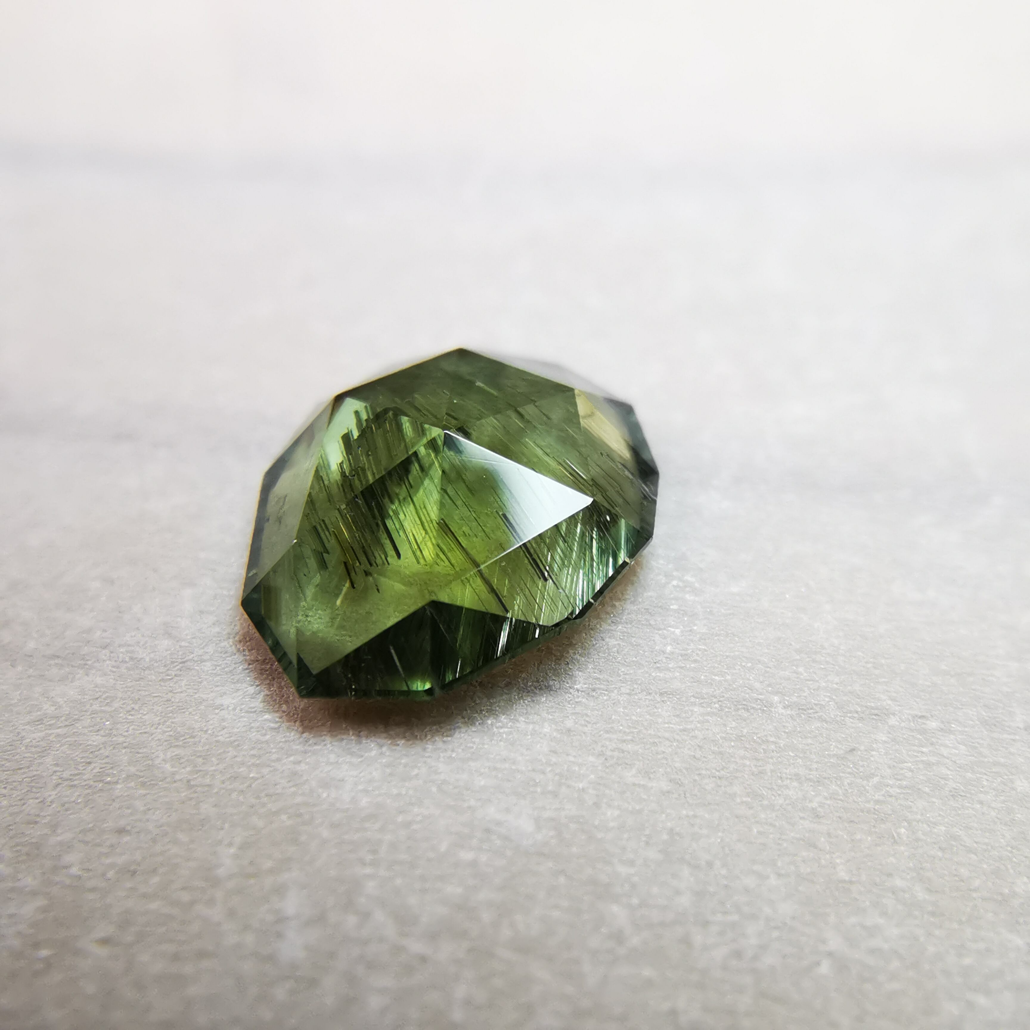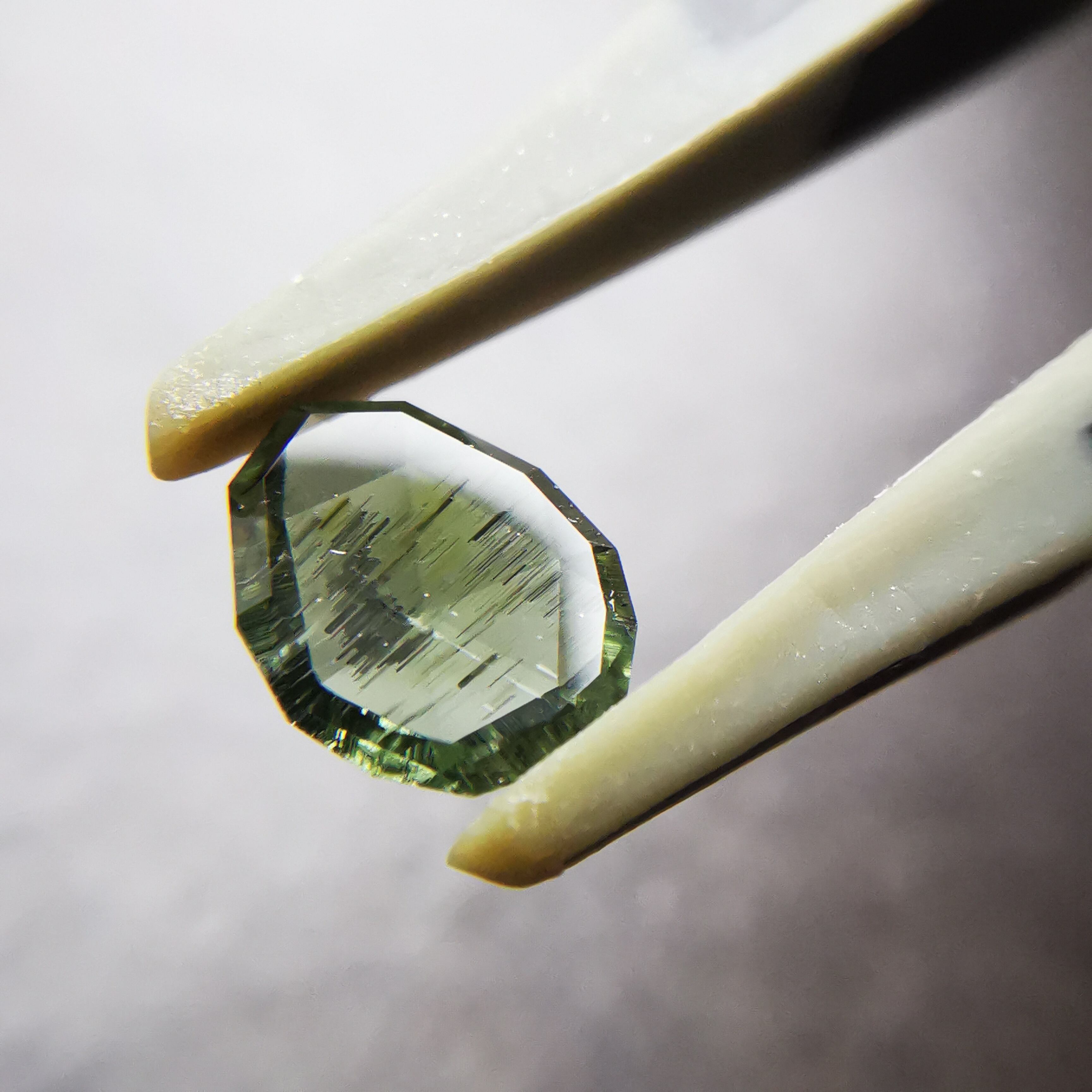 トルマリンキャッツアイに見られるような、針状のインクルージョン、チューブインクルージョンが全体にまばらに入っています。